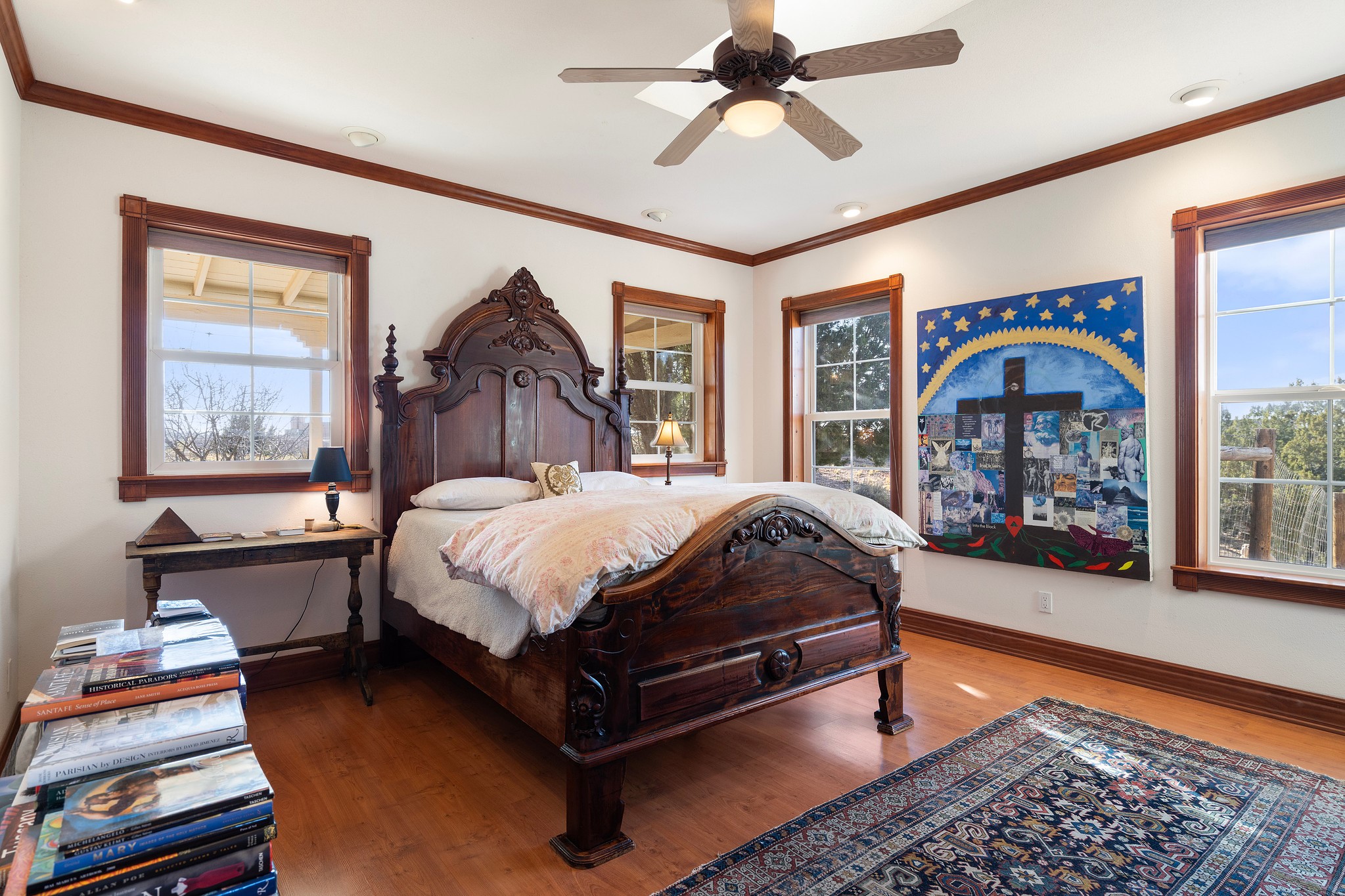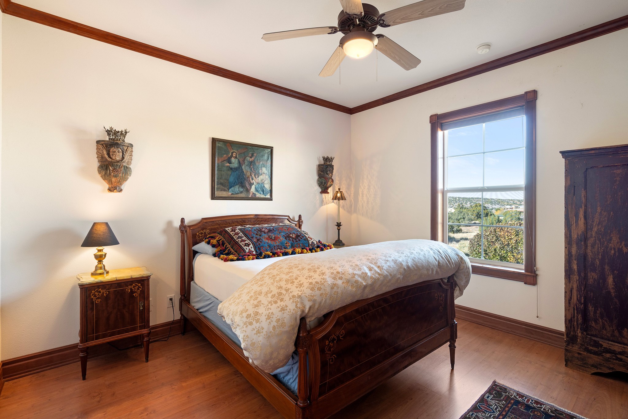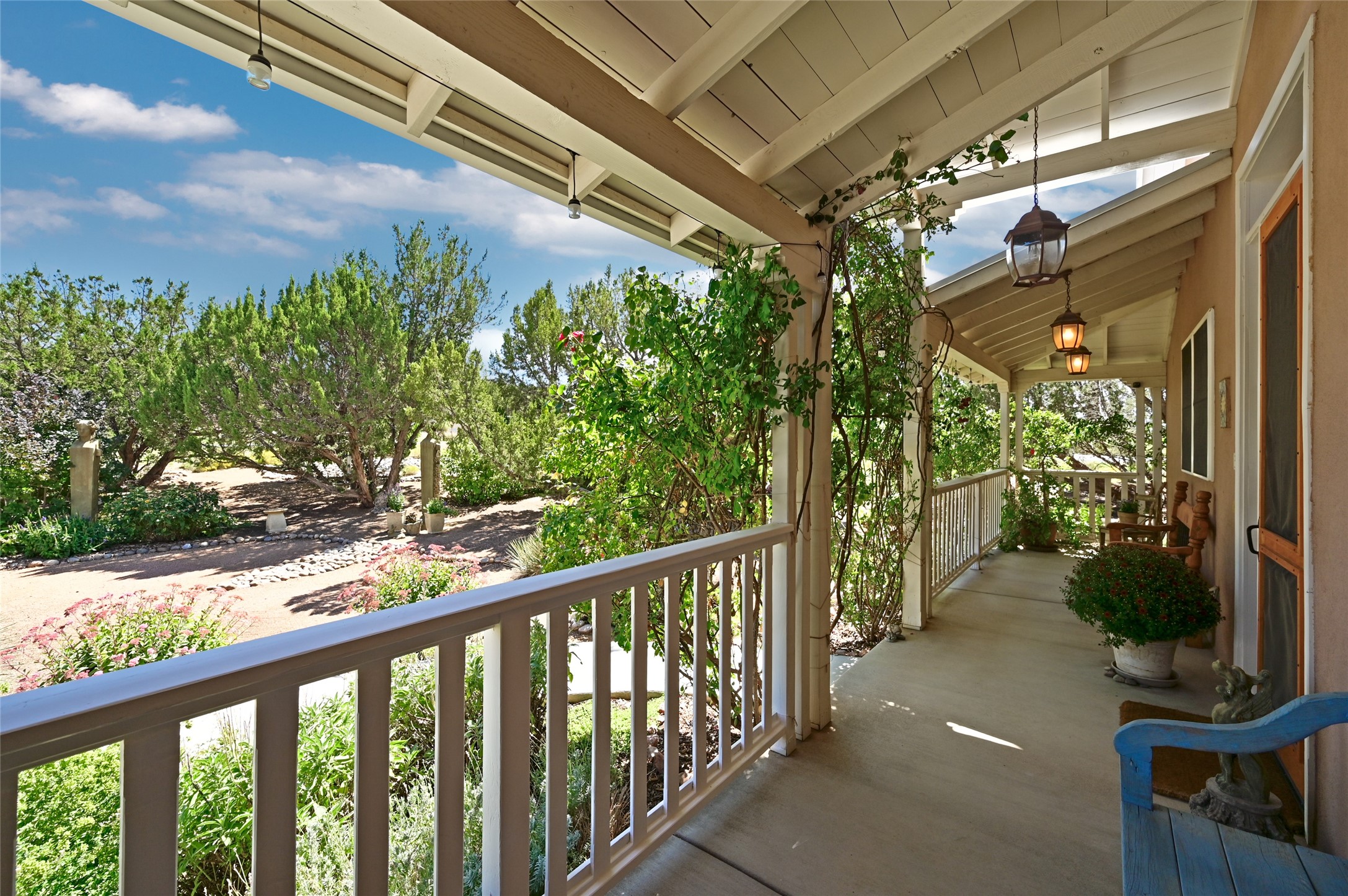 Welcome to 3 Vista Lagunitas: A classic old world style home that truly is set apart from the rest. The builder of this 3 bedroom 2.5 bath custom-crafted home originally built it for himself and it shows. From the vaulted wooden ceilings and custom-fit trim molding, to the choice solid wood doors throughout the home, you will find unparalleled quality at every corner. The northern New Mexico style exterior blends in well amongst the mature Juniper and Pinon Trees that populate the spacious and private 1.155 acre lot. You'll enjoy the best of outdoor living underneath the shady portal spaces and the established gardening locations are a joy to be had. What a fantastic opportunity to own a beautiful home in such an ideal setting. This is the dream home you've been waiting for!