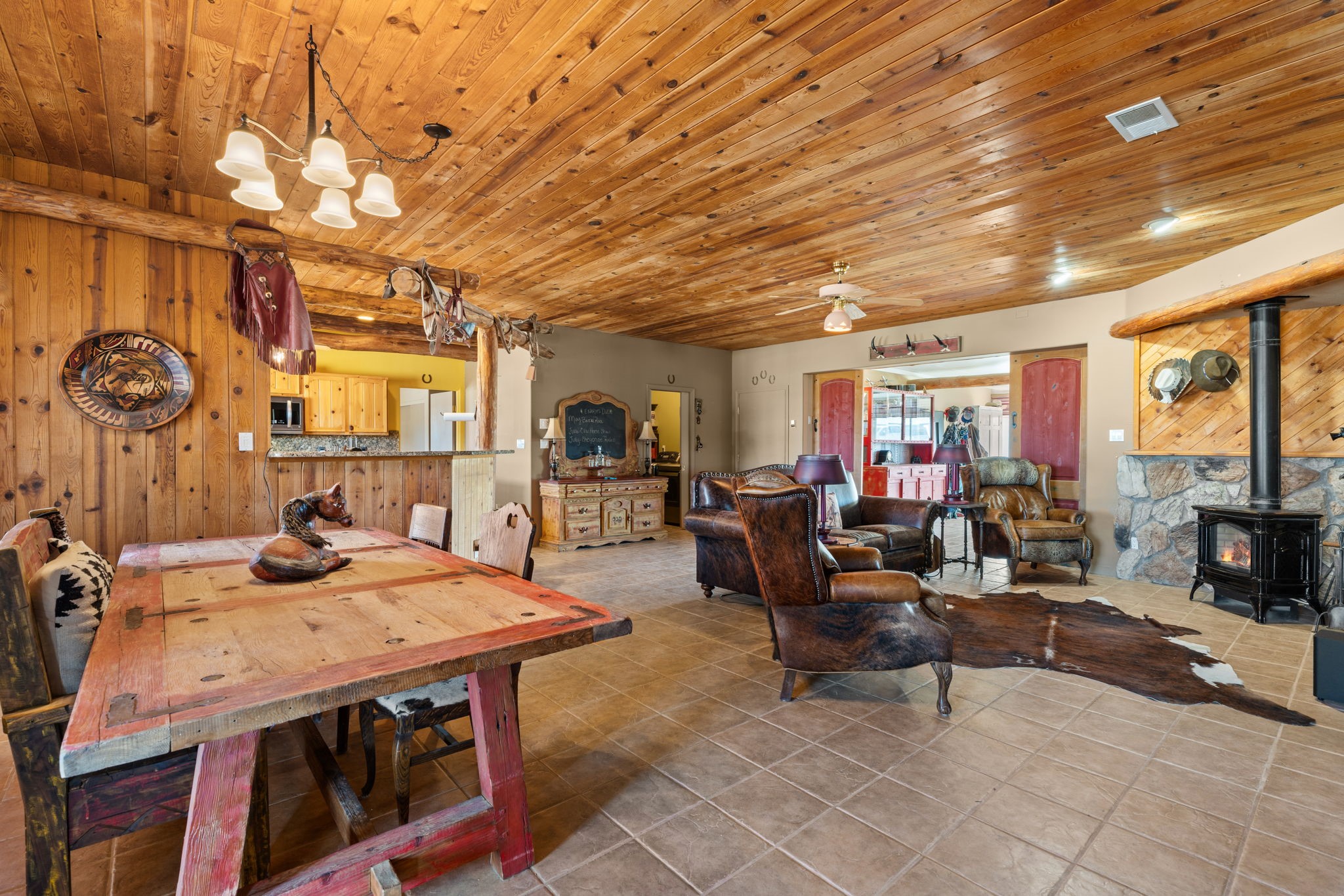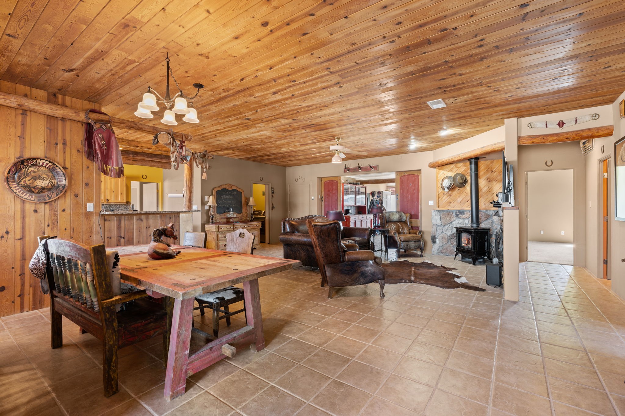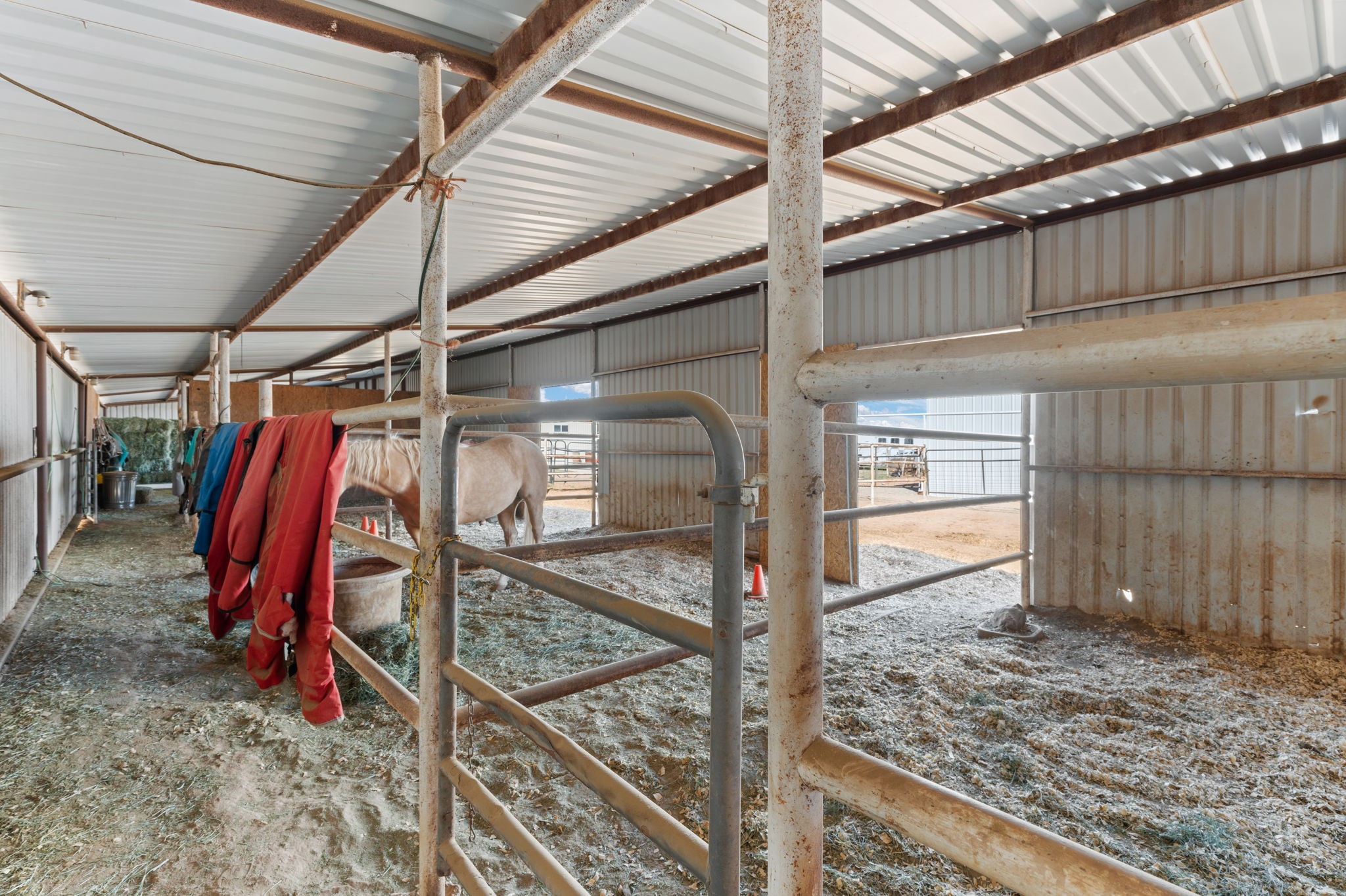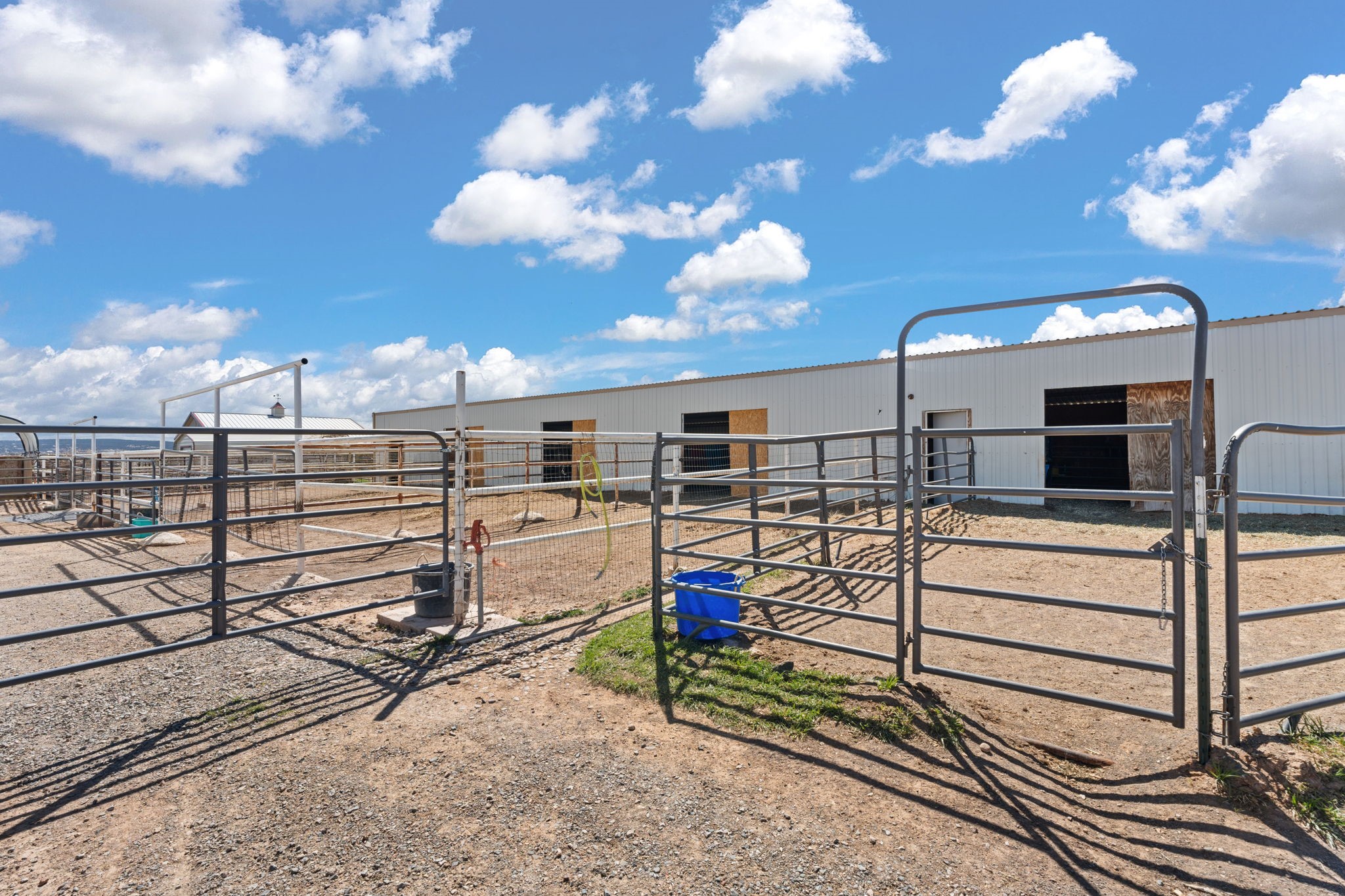 Equestrian Dream Property. This stunning 4-bed, 2-bath southwestern ranch home on 5.1 fully fenced acres with an indoor arena is a horse lover's Desire! The spacious kitchen features stainless steel appliances, granite countertops, and vigas on the ceiling. The cozy living room has tongue-and-groove ceilings and a gas stove. Radiant in-floor heat ensures comfort throughout. The master suite includes a luxurious bath with a Jacuzzi tub and double-head shower. The property also has a heated sunroom, backup Generac generator, and horse facilities, including a 66' x 80' indoor arena w/ entire east side ''hangar'' door that opens up to outdoor arena, 5-stall horse barn, multiple turnout pens, a 40' x 60' shop and 2 RV plug-ins. Community Water and Natural Gas. See attached Amenities List!