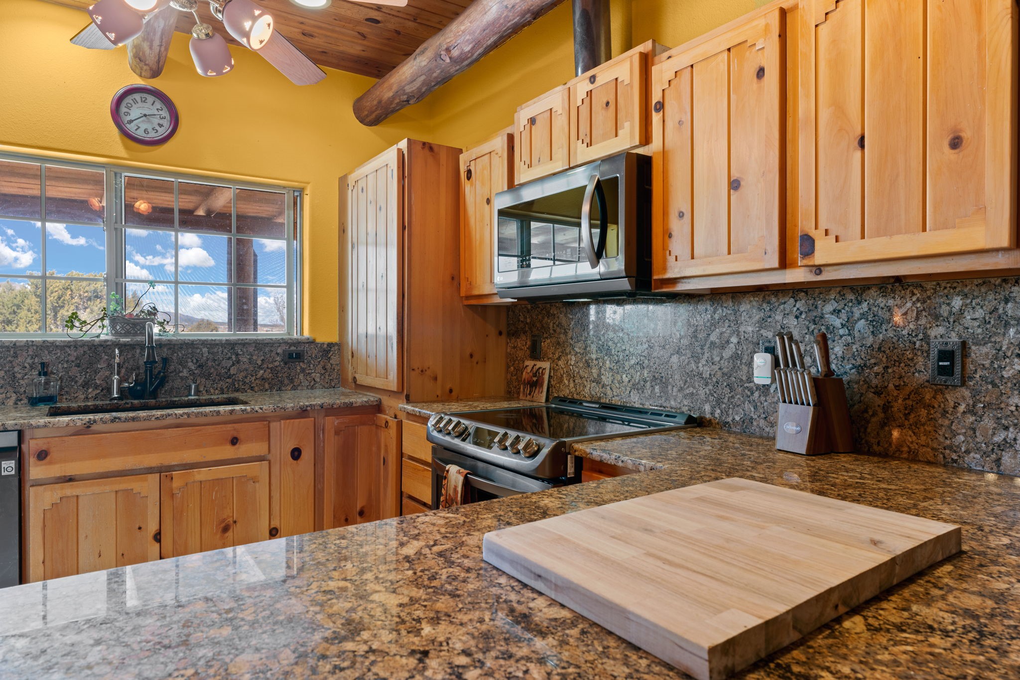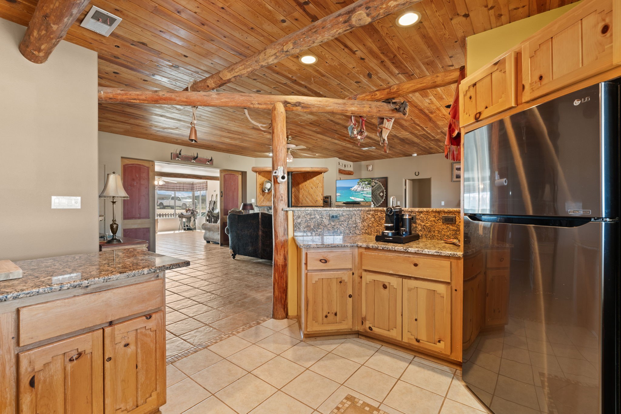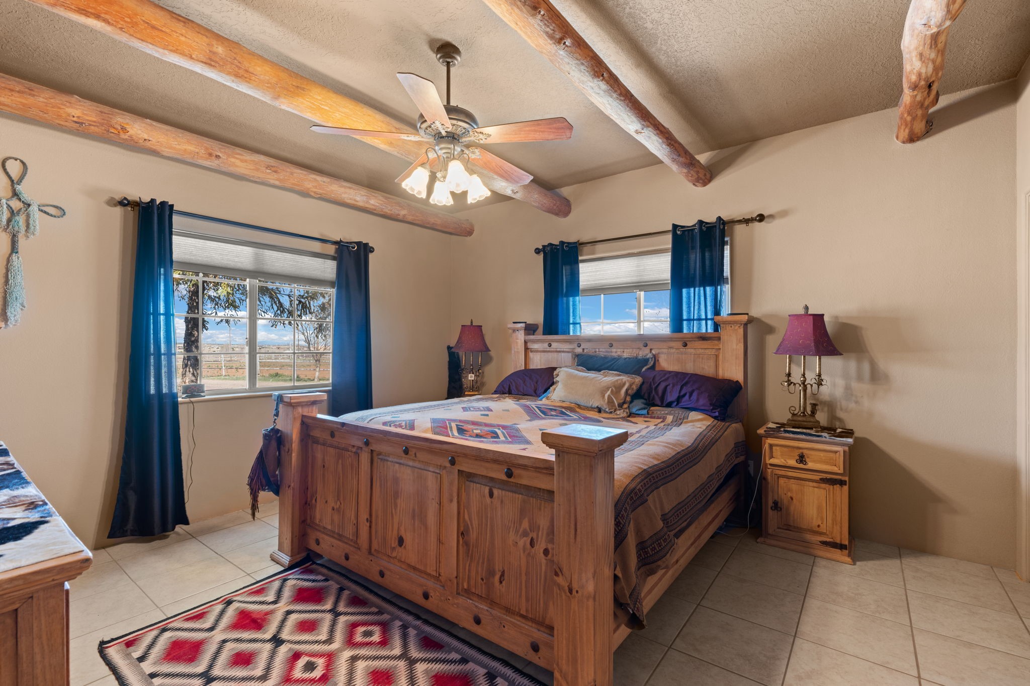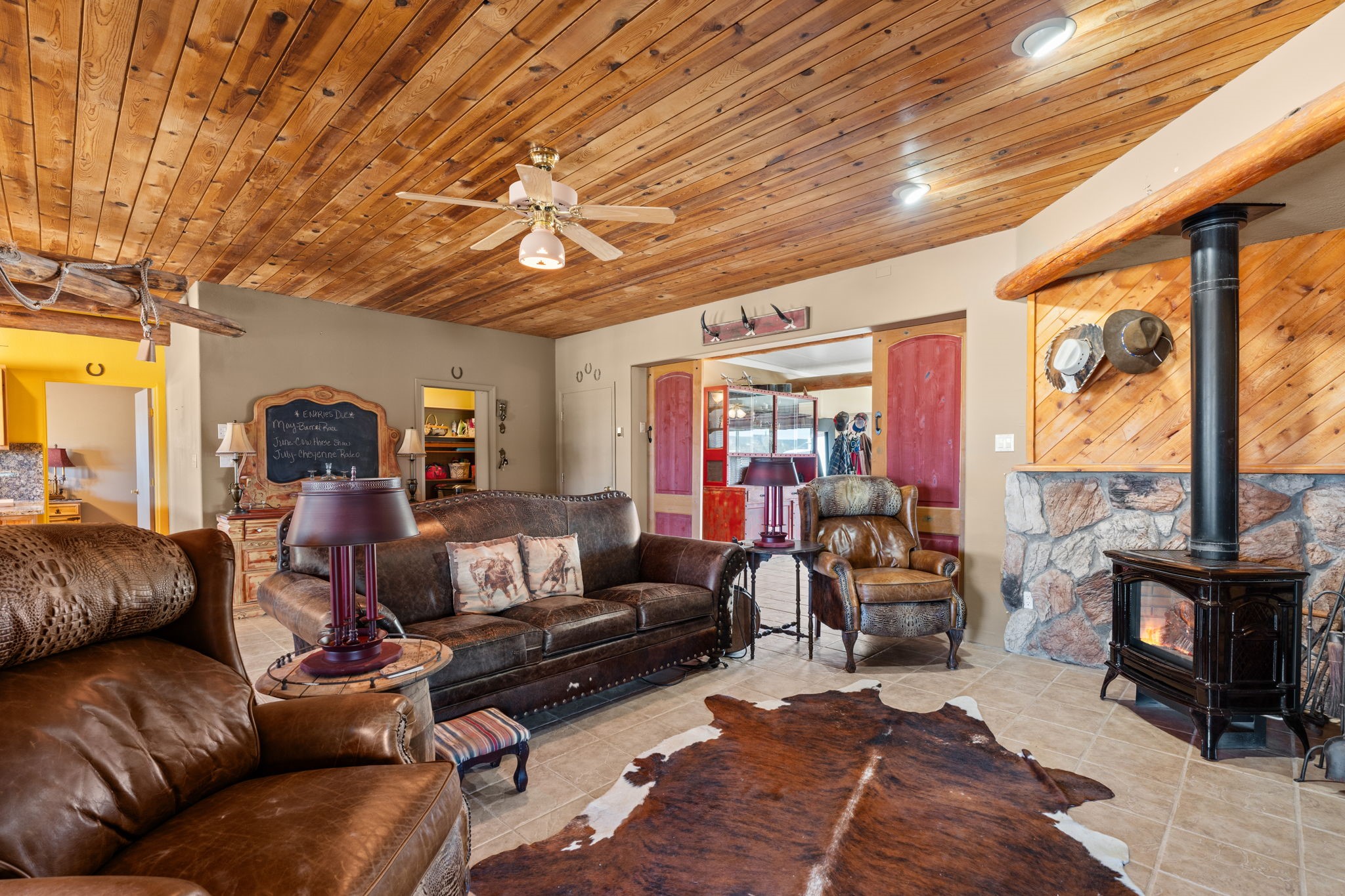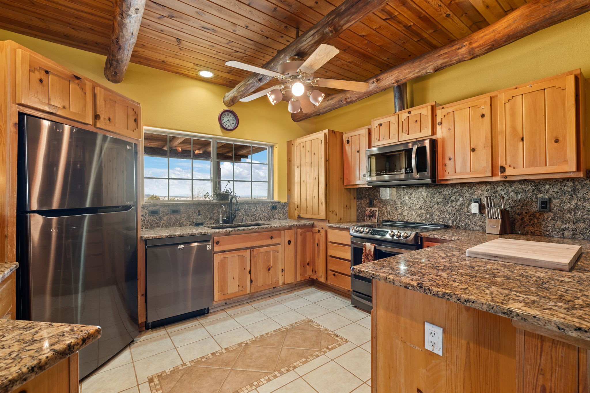 Equestrian Dream Property. This stunning 4-bed, 2-bath southwestern ranch home on 5.1 fully fenced acres with an indoor arena is a horse lover's Desire! The spacious kitchen features stainless steel appliances, granite countertops, and vigas on the ceiling. The cozy living room has tongue-and-groove ceilings and a gas stove. Radiant in-floor heat ensures comfort throughout. The master suite includes a luxurious bath with a Jacuzzi tub and double-head shower. The property also has a heated sunroom, backup Generac generator, and horse facilities, including a 66' x 80' indoor arena w/ entire east side ''hangar'' door that opens up to outdoor arena, 5-stall horse barn, multiple turnout pens, a 40' x 60' shop and 2 RV plug-ins. Community Water and Natural Gas. See attached Amenities List!