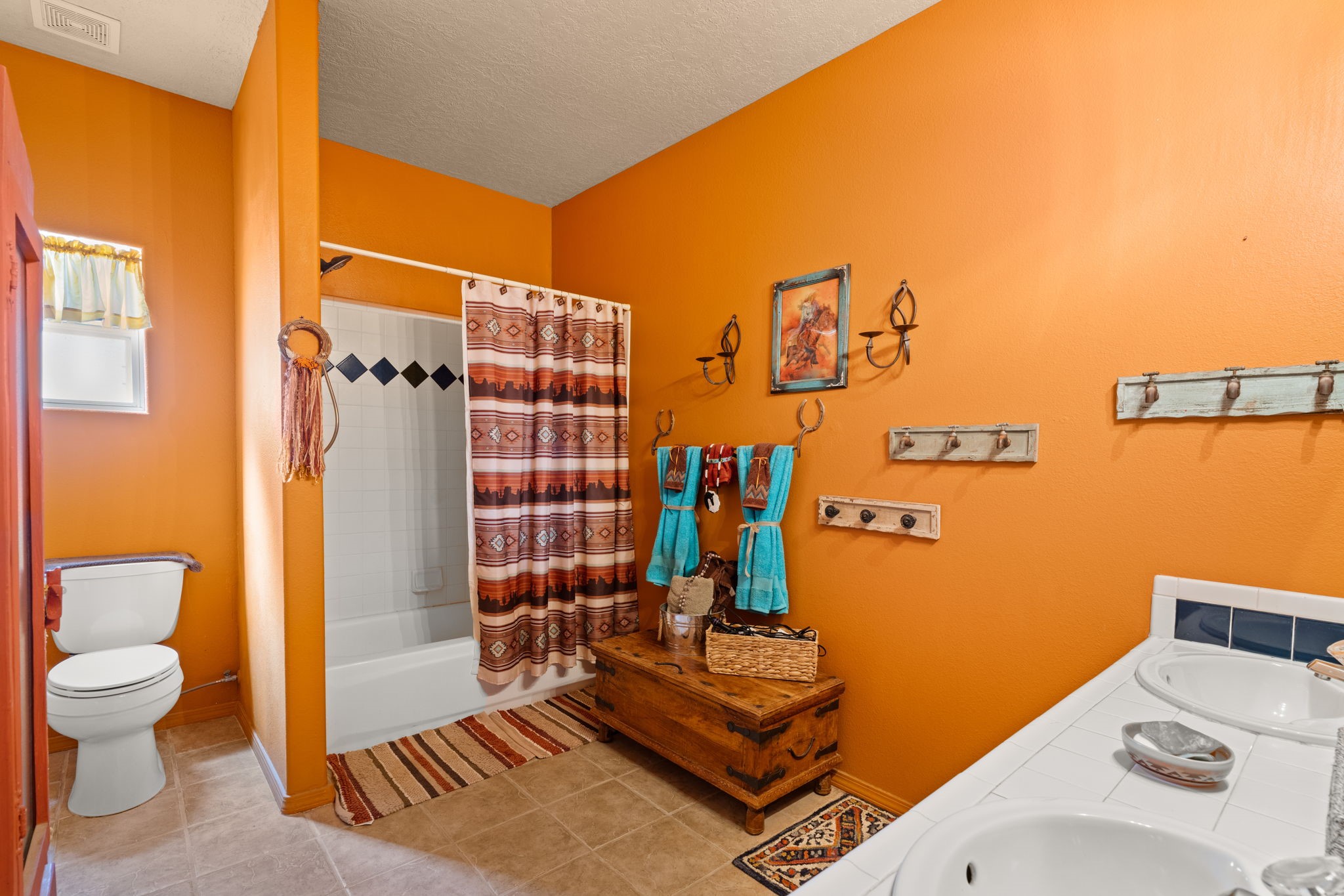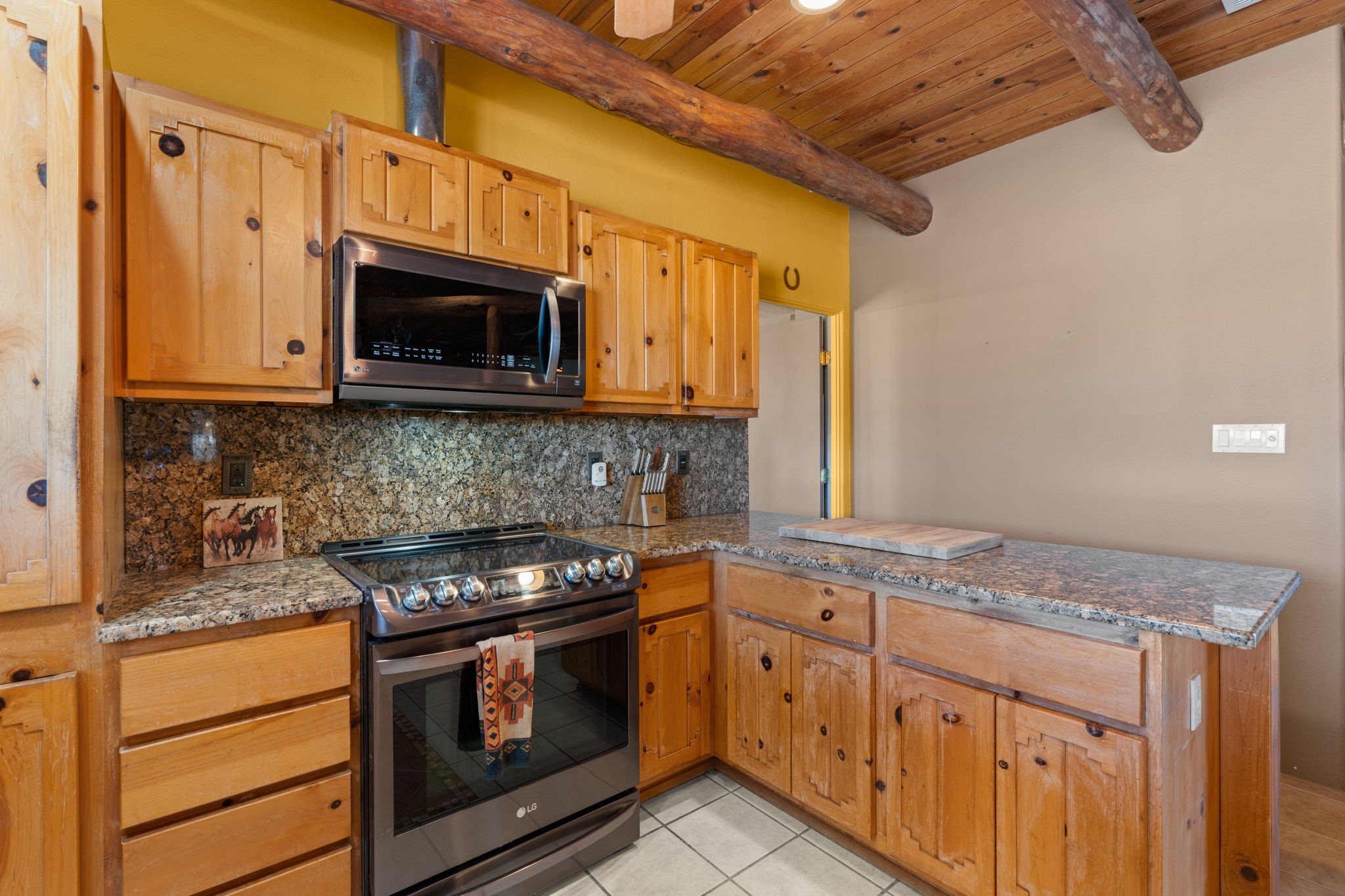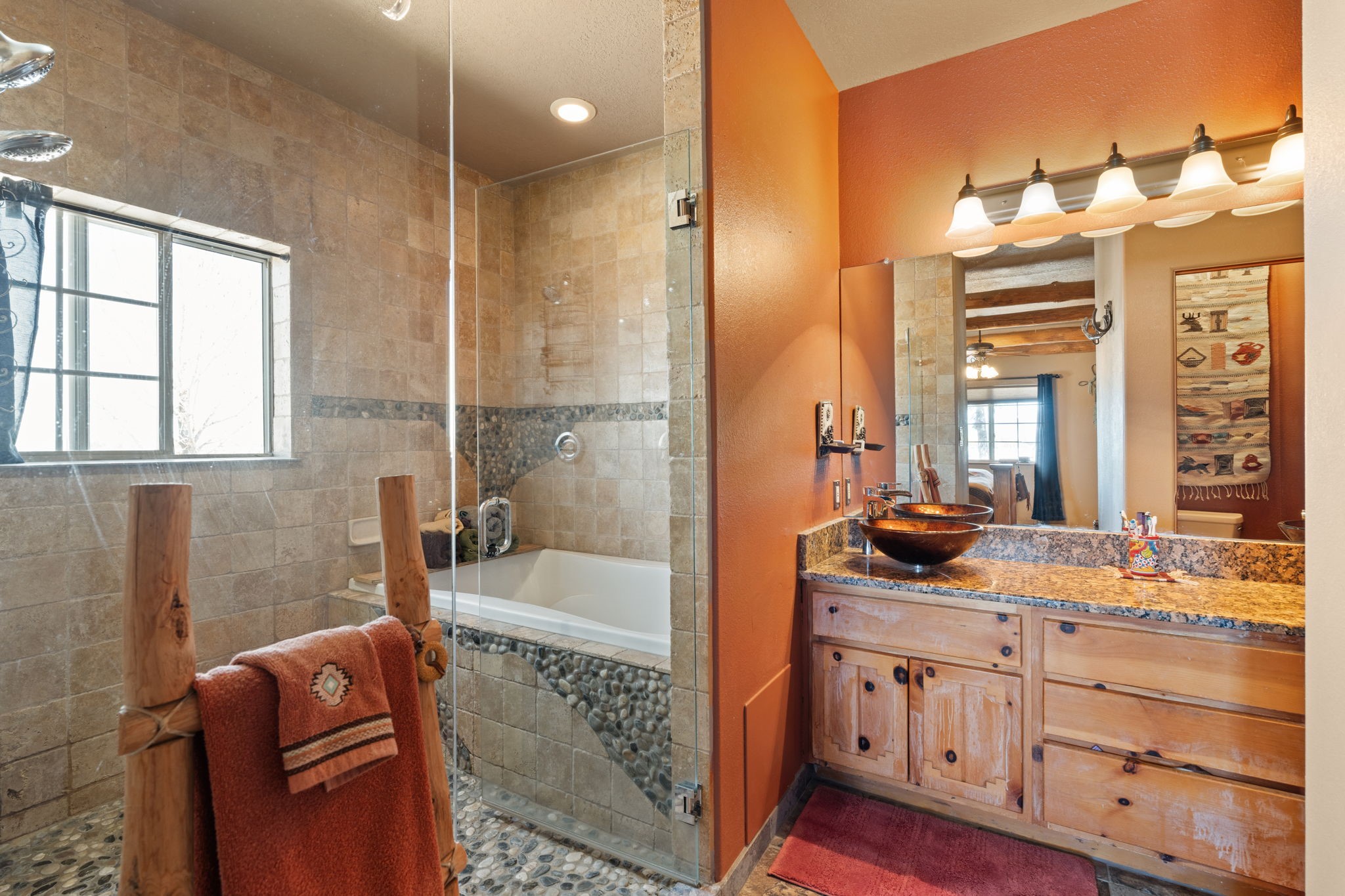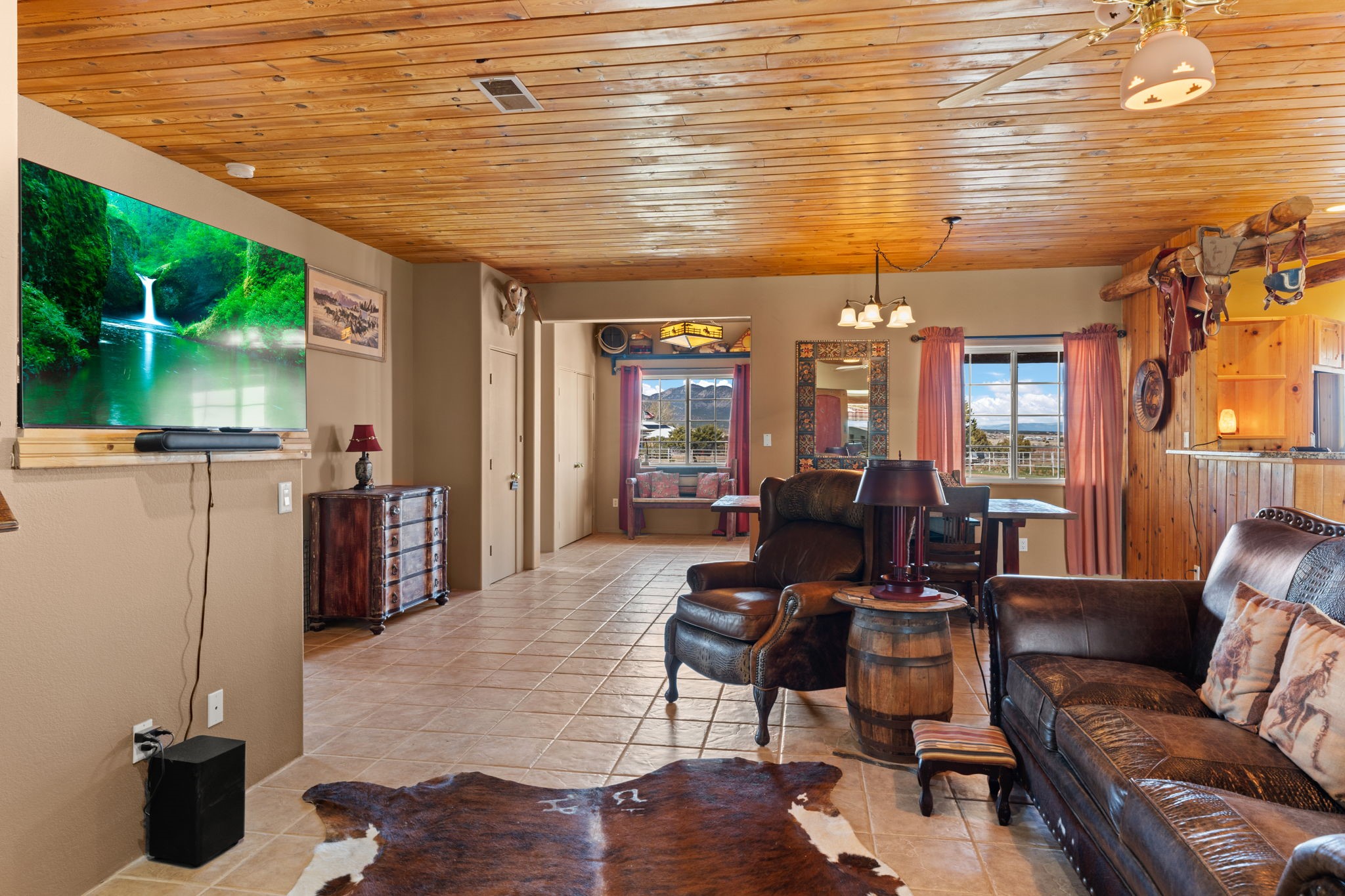 Equestrian Dream Property. This stunning 4-bed, 2-bath southwestern ranch home on 5.1 fully fenced acres with an indoor arena is a horse lover's Desire! The spacious kitchen features stainless steel appliances, granite countertops, and vigas on the ceiling. The cozy living room has tongue-and-groove ceilings and a gas stove. Radiant in-floor heat ensures comfort throughout. The master suite includes a luxurious bath with a Jacuzzi tub and double-head shower. The property also has a heated sunroom, backup Generac generator, and horse facilities, including a 66' x 80' indoor arena w/ entire east side ''hangar'' door that opens up to outdoor arena, 5-stall horse barn, multiple turnout pens, a 40' x 60' shop and 2 RV plug-ins. Community Water and Natural Gas. See attached Amenities List!