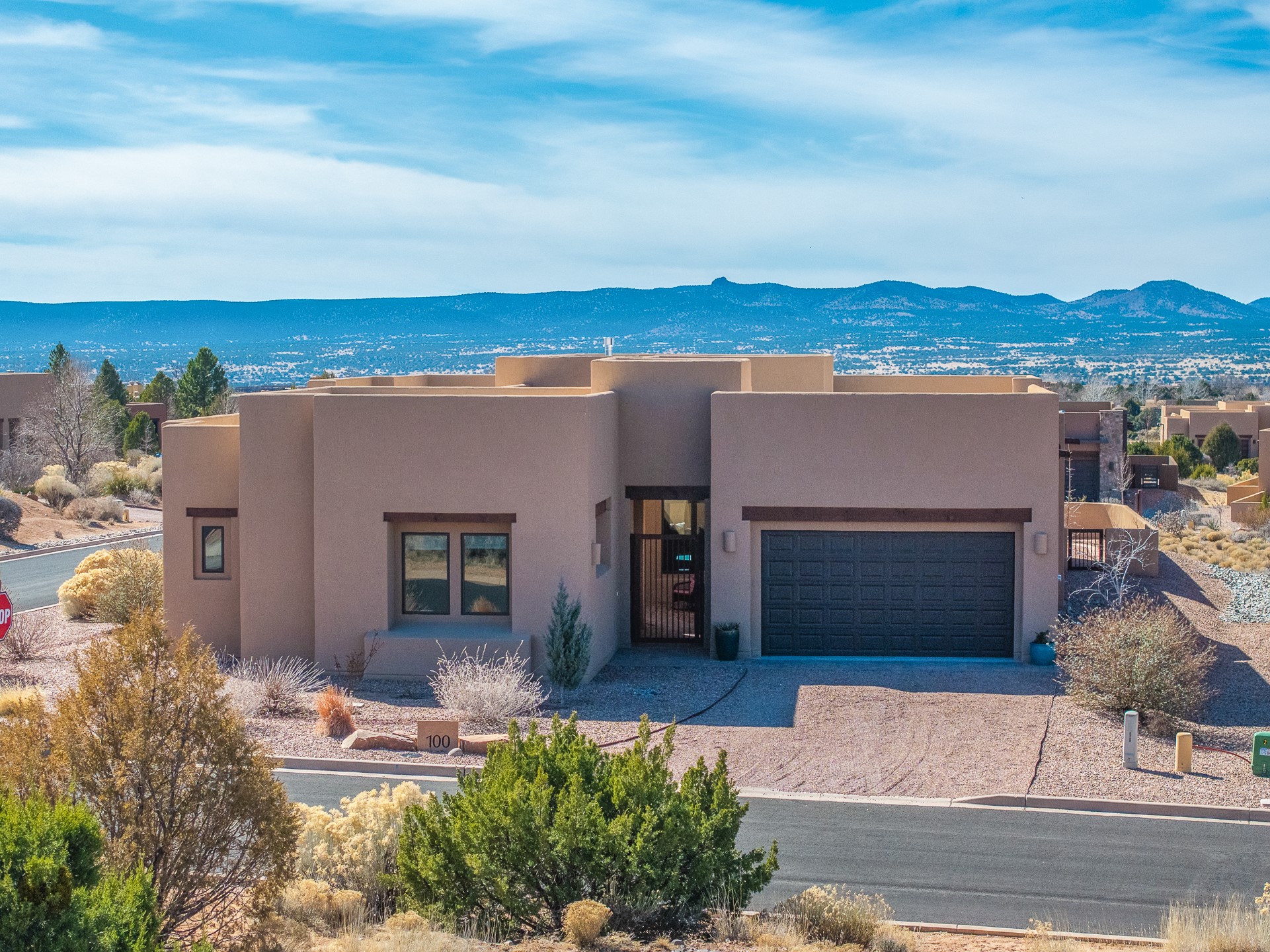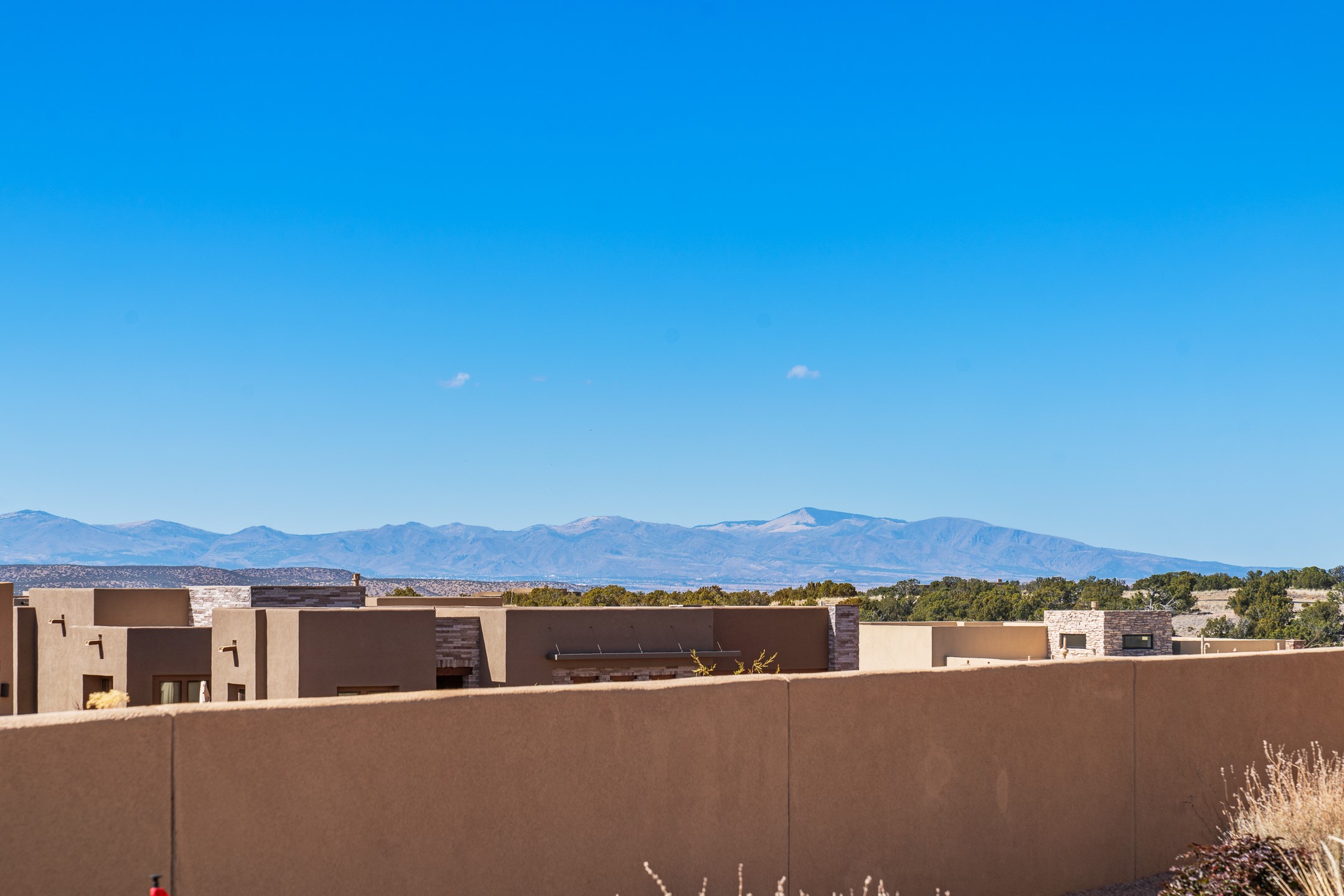 Exceptional value on this move in ready Las Campanas Contemporary Pueblo RetreatWhere contemporary design meets timeless Santa Fe elegance, this 3,523-square-foot single-level residence offers the perfect balance of sophistication, privacy, and sweeping mountain views. Completed in 2023, this home features upgraded modern finishes and is nicely sited on a corner lot -- backing to open space to the west.Light-filled and beautifully proportioned, the open-concept layout flows effortlessly between the living, dining, and outdoor spaces. The great room features beamed ceilings, a sleek gas fireplace, and panoramic views of the Jemez Mountains--capturing Santa Fe's legendary sunsets in every season.At the heart of the home, the chef's kitchen is both striking and functional, equipped with upgraded Wolf, Sub-Zero, and Asko appliances - including a six-burner double oven range, built-in convection oven and microwave, and dual dishwashers. Granite countertops, crisp white cabinetry, and a generous island create a gathering space as stylish as it is practical.The primary suite is a private sanctuary with breathtaking mountain views and a spa-like bath featuring dual vanities, a dedicated makeup area, and luxurious finishes. A separate guest suite with its own living area offers comfort and independence for visitors, while a dedicated office adds flexibility for work or creative pursuits.Outdoors, beautifully landscaped patios extend the living space--perfect for dining al fresco, entertaining, or simply enjoying the quiet beauty of the high desert. An oversized two-car garage offers abundant space for vehicles and storage.Located just minutes from The Club at Las Campanas, where fine dining, golf, fitness, and spa amenities await (membership optional), this residence embodies modern Santa Fe luxury--panoramic views, refined design, and tranquil living in one of the city's most prestigious communities.