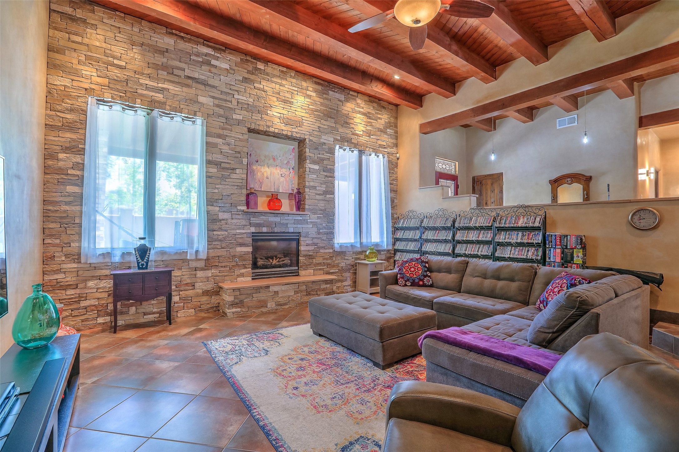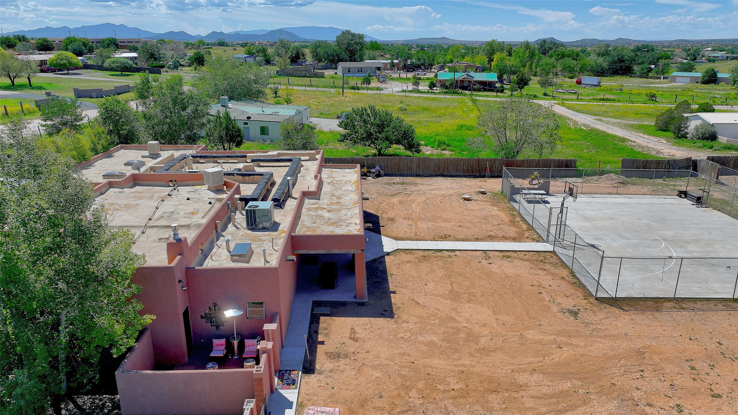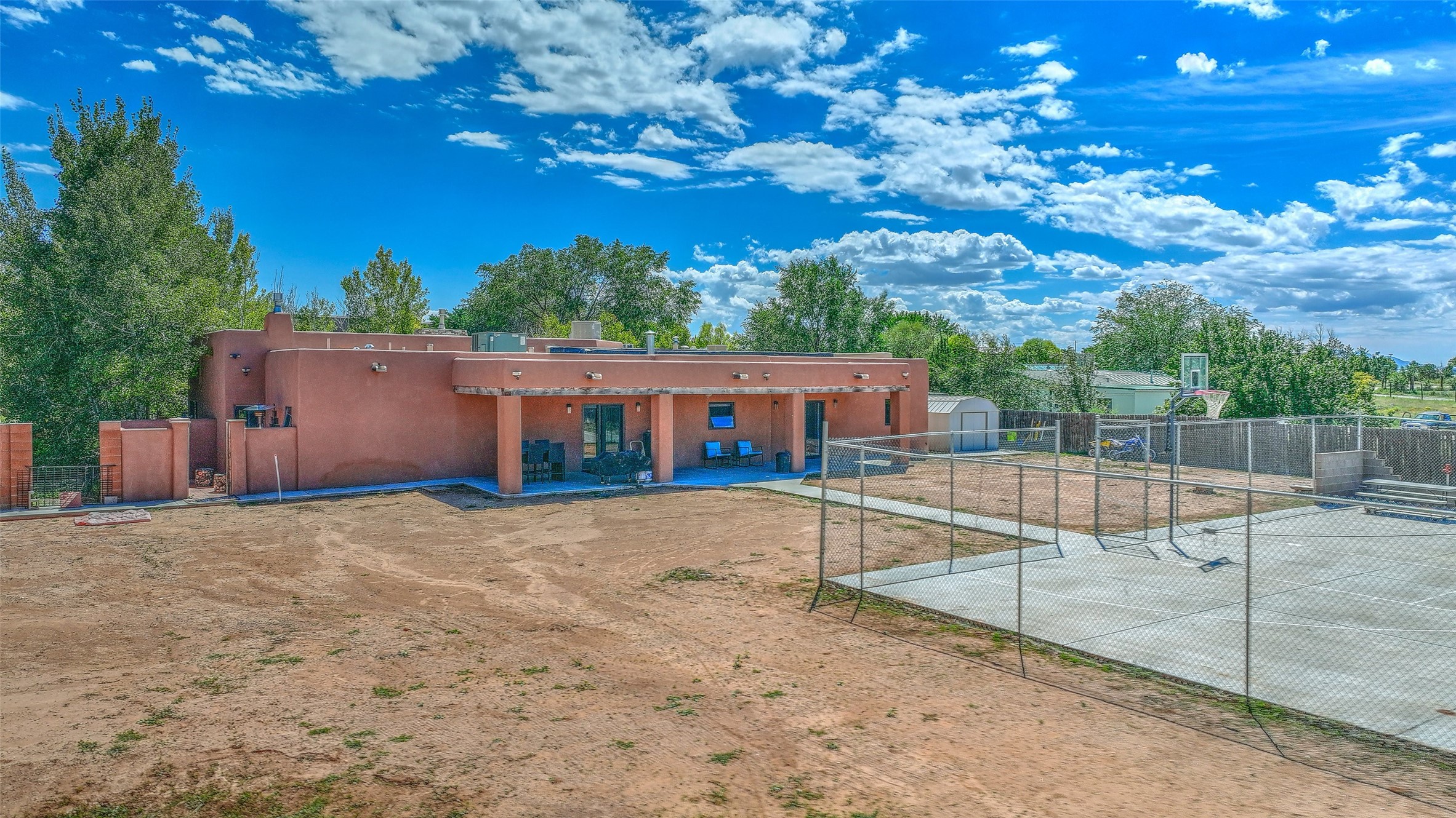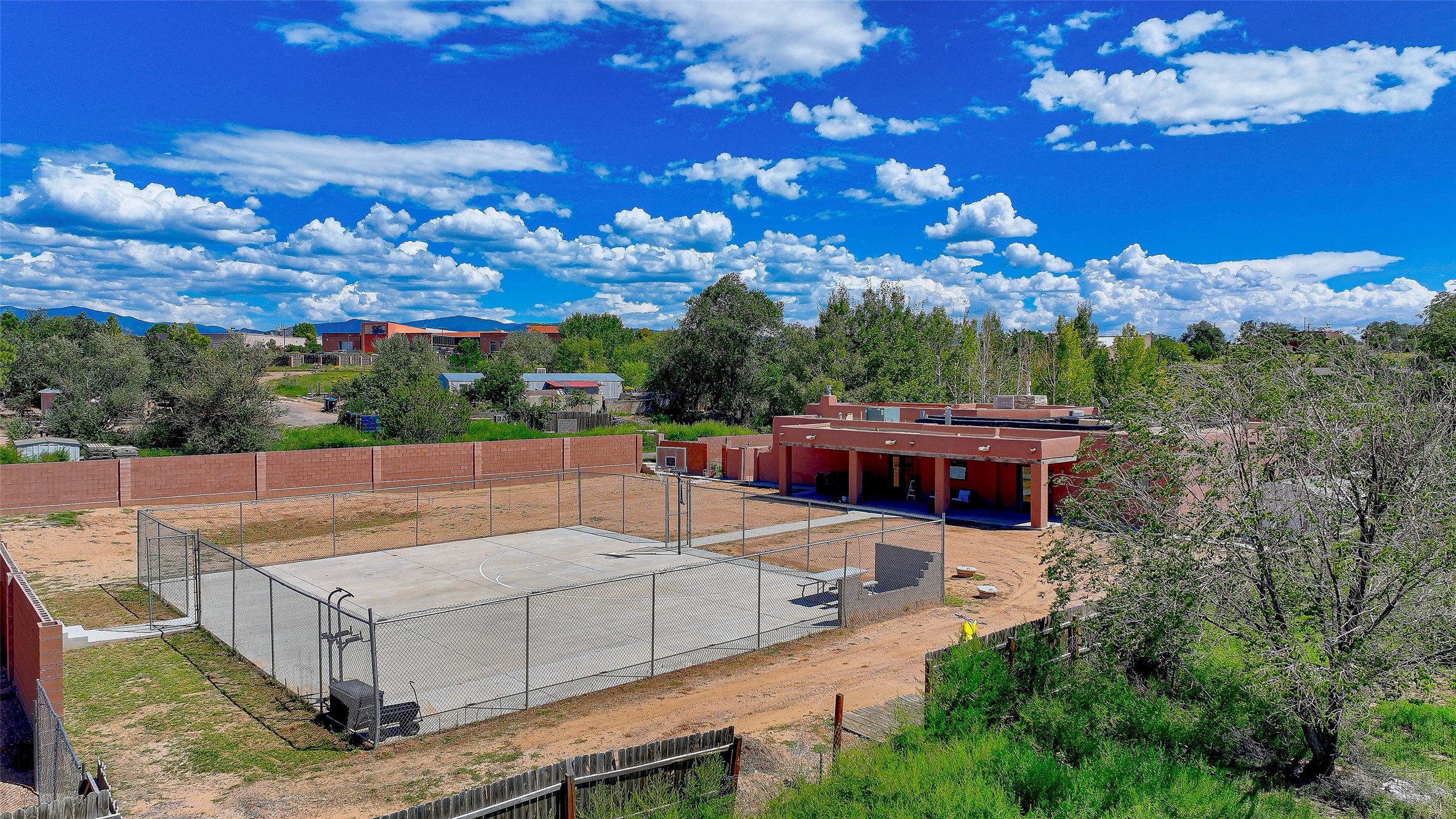 No showings until Mon Jan. 12th. Priced to sell! Don't miss our on this opportunity!!! Absolute Stunner in Santa Fe! Perfect for a Large Family or Investor. Walk into the 2,764 SF 3 Bedroom, 3.5 Bath Primary Home and be greeted with Luxury! A Huge Sunken Family Room creates a Cozy and Intimate Atmosphere for Family Gatherings centered around a Fireplace accented with a Stonewall covering the entire South Wall. Magnificent Vigas and Diamond Finish Walls provide the Perfect Touch! The Kitchen is a True Chefs Delight! The Main Home includes an En Suite, Office, Radiant Floor Heating, Central Vac System, Water Softener System, and a High Efficiency Tankless Water Heater. The Comfy Primary Suite is equipped with its own Fireplace offering the Ultimate Relaxation. Attached to the Main Home is a Fabulous 1,008 SF Efficiency Suite with its own Private Entrance and includes 1 Bedroom, 1 Bath, Office, Full Kitchen, Laundry Room and Living Area. Behind the Full Size Enclosed Basketball Court you will find an additional 1,560 SF Guest Home that was built in 2022. This Modern New Home offers 4 Bedrooms; a Primary Suite, an En Suite, and 2 Guest Rooms and 3 Baths. Features include all Tile Flooring, Tankless Water Heater, TPO Roof, Fenced Yard and its own Private Road. The Two Large (480 SF Each) Utility Sheds/Carports also convey. Don't Miss Out on this One of a Kind Opportunity!!