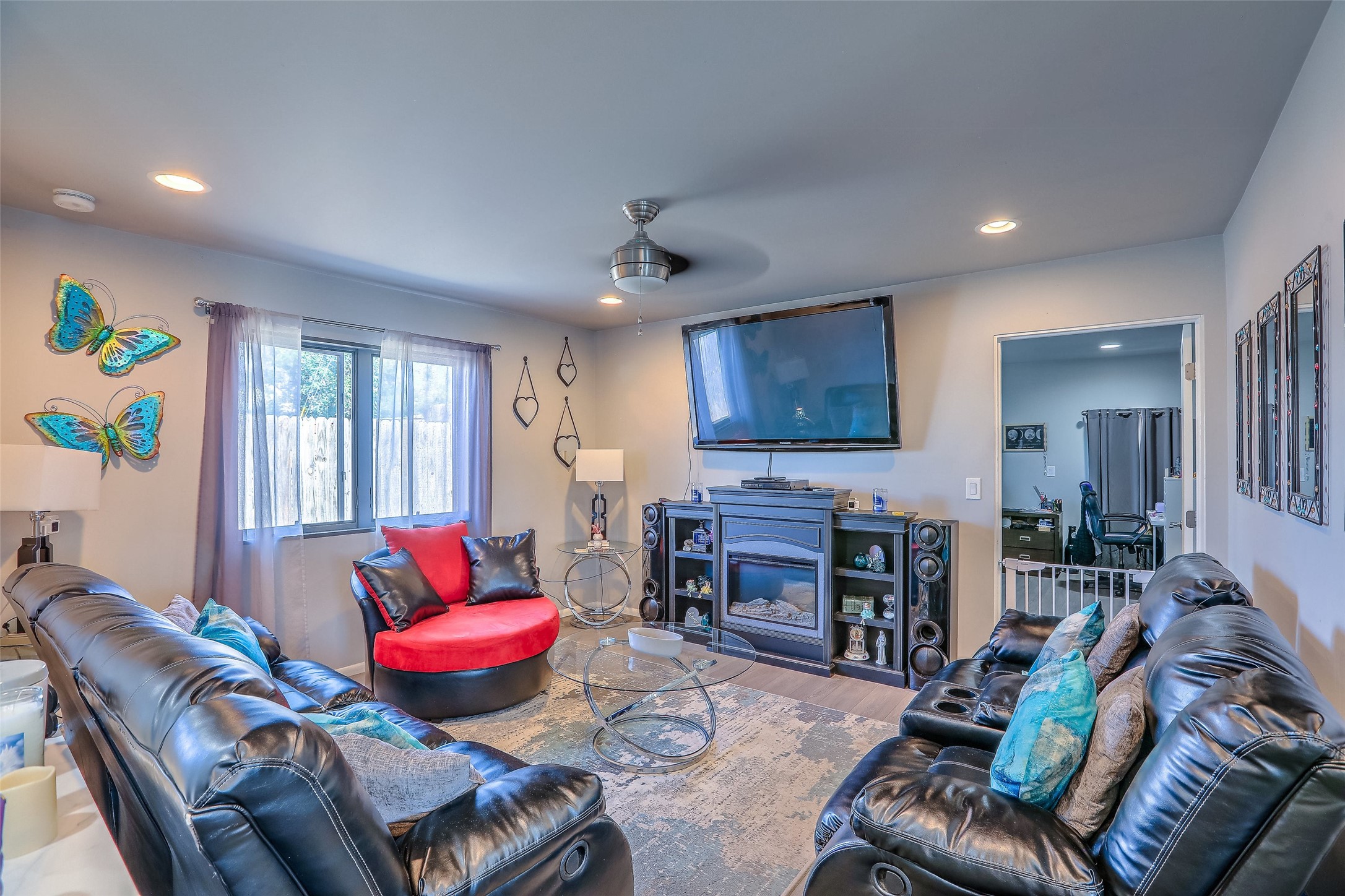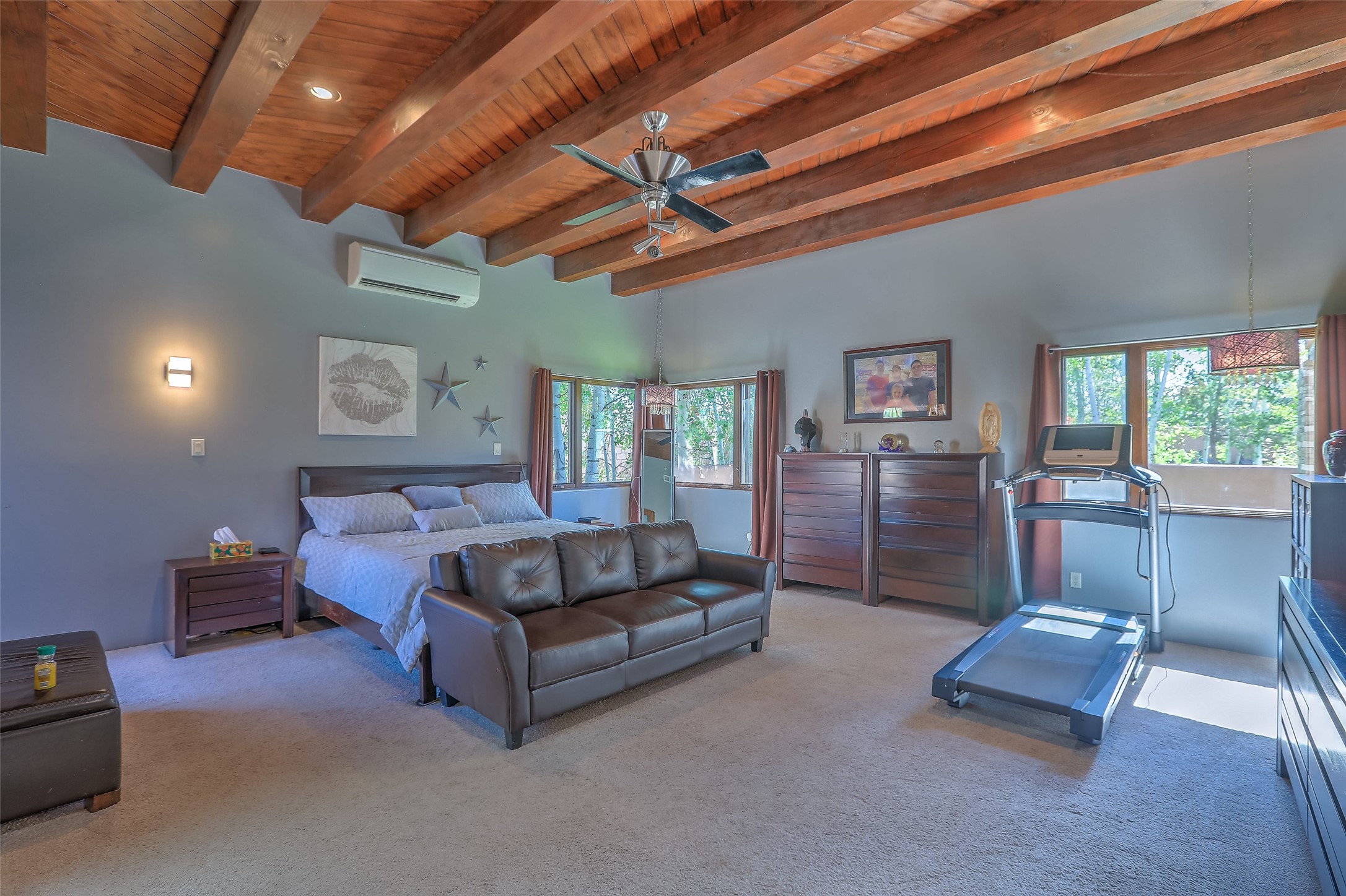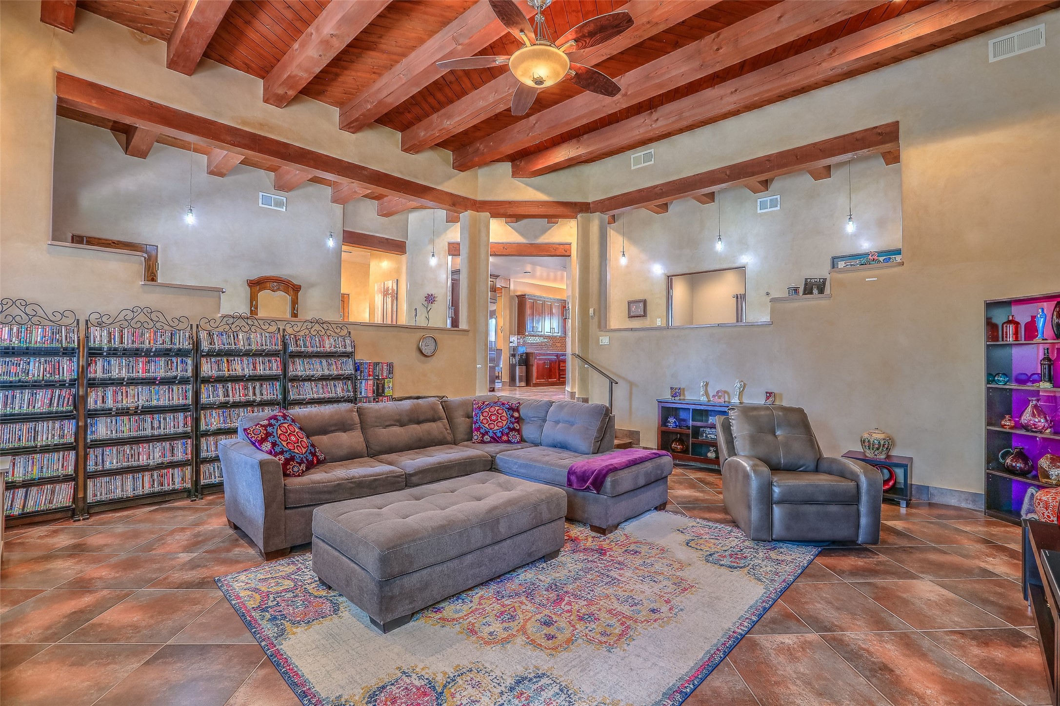 No showings until Mon Jan. 12th. Priced to sell! Don't miss our on this opportunity!!! Absolute Stunner in Santa Fe! Perfect for a Large Family or Investor. Walk into the 2,764 SF 3 Bedroom, 3.5 Bath Primary Home and be greeted with Luxury! A Huge Sunken Family Room creates a Cozy and Intimate Atmosphere for Family Gatherings centered around a Fireplace accented with a Stonewall covering the entire South Wall. Magnificent Vigas and Diamond Finish Walls provide the Perfect Touch! The Kitchen is a True Chefs Delight! The Main Home includes an En Suite, Office, Radiant Floor Heating, Central Vac System, Water Softener System, and a High Efficiency Tankless Water Heater. The Comfy Primary Suite is equipped with its own Fireplace offering the Ultimate Relaxation. Attached to the Main Home is a Fabulous 1,008 SF Efficiency Suite with its own Private Entrance and includes 1 Bedroom, 1 Bath, Office, Full Kitchen, Laundry Room and Living Area. Behind the Full Size Enclosed Basketball Court you will find an additional 1,560 SF Guest Home that was built in 2022. This Modern New Home offers 4 Bedrooms; a Primary Suite, an En Suite, and 2 Guest Rooms and 3 Baths. Features include all Tile Flooring, Tankless Water Heater, TPO Roof, Fenced Yard and its own Private Road. The Two Large (480 SF Each) Utility Sheds/Carports also convey. Don't Miss Out on this One of a Kind Opportunity!!