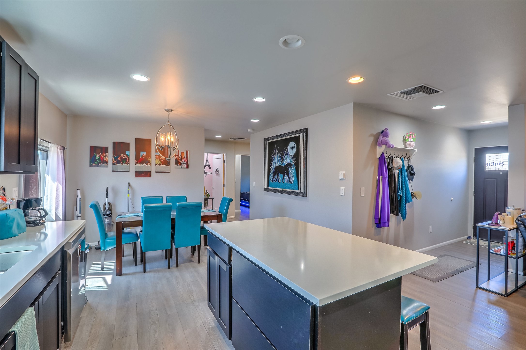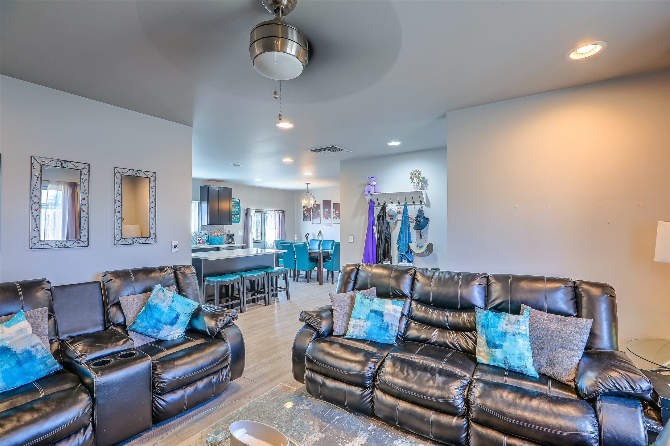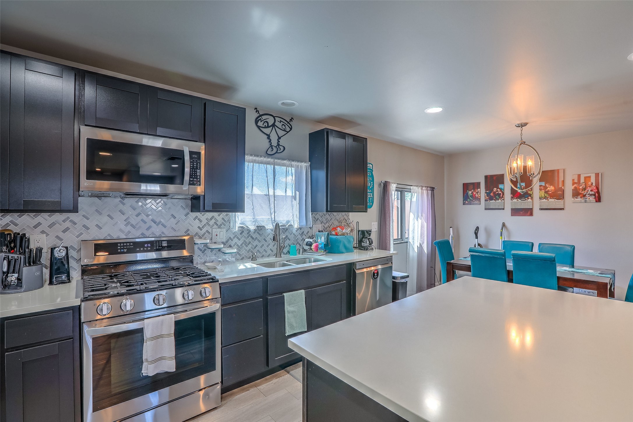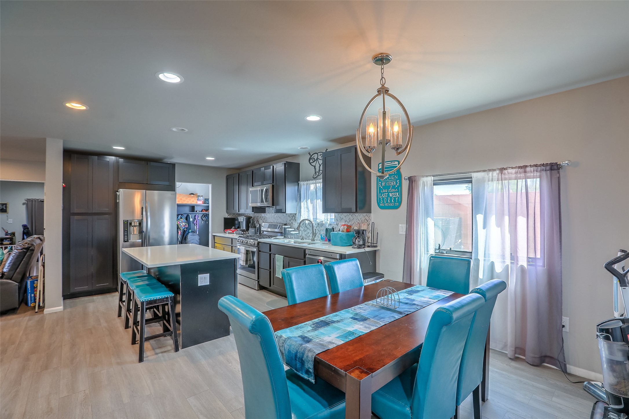 No showings until Mon Jan. 12th. Priced to sell! Don't miss our on this opportunity!!! Absolute Stunner in Santa Fe! Perfect for a Large Family or Investor. Walk into the 2,764 SF 3 Bedroom, 3.5 Bath Primary Home and be greeted with Luxury! A Huge Sunken Family Room creates a Cozy and Intimate Atmosphere for Family Gatherings centered around a Fireplace accented with a Stonewall covering the entire South Wall. Magnificent Vigas and Diamond Finish Walls provide the Perfect Touch! The Kitchen is a True Chefs Delight! The Main Home includes an En Suite, Office, Radiant Floor Heating, Central Vac System, Water Softener System, and a High Efficiency Tankless Water Heater. The Comfy Primary Suite is equipped with its own Fireplace offering the Ultimate Relaxation. Attached to the Main Home is a Fabulous 1,008 SF Efficiency Suite with its own Private Entrance and includes 1 Bedroom, 1 Bath, Office, Full Kitchen, Laundry Room and Living Area. Behind the Full Size Enclosed Basketball Court you will find an additional 1,560 SF Guest Home that was built in 2022. This Modern New Home offers 4 Bedrooms; a Primary Suite, an En Suite, and 2 Guest Rooms and 3 Baths. Features include all Tile Flooring, Tankless Water Heater, TPO Roof, Fenced Yard and its own Private Road. The Two Large (480 SF Each) Utility Sheds/Carports also convey. Don't Miss Out on this One of a Kind Opportunity!!
