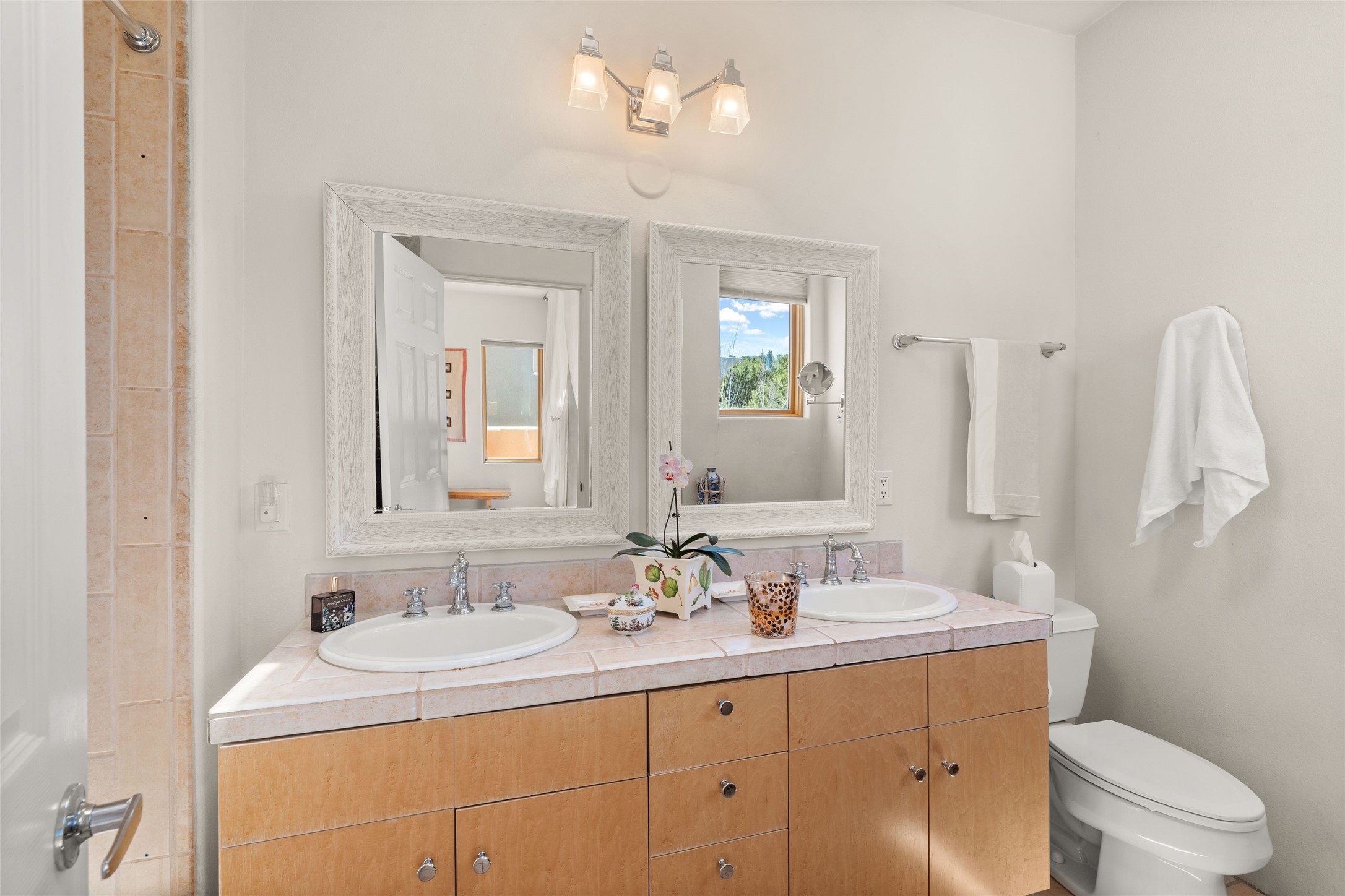 Northside 3-bedroom, 2.5-bath condominium offering captivating views and a thoughtfully designed multi-level layout. The first level features a two-car garage, mechanical room, and generous storage options. Move up to the second level, where the living area includes a welcoming fireplace, providing a focal point for relaxation. The open living room and kitchen design encourages easy interaction, complemented by a convenient half bath. Enjoy access to a private patio and outdoor area, perfect for unwinding or entertaining. On the third level, discover a guest bedroom, a laundry area, an office, and a full bath. A balcony enhances this level, offering an additional outdoor retreat. The primary suite occupies the fourth level, serving as a tranquil getaway. Recent updates add to this home's charm, featuring upgraded fireplace with granite, modern lighting, ceiling fans, and practical shelving. The addition of flagstone and aspen trees enhances the outdoor environment, creating a serene atmosphere. Conveniently located, this condo is just moments away from the DeVargas Center, Frank Ortiz Dog Park, Ft. Marcy Recreation Center, and the Historic Santa Fe Plaza.