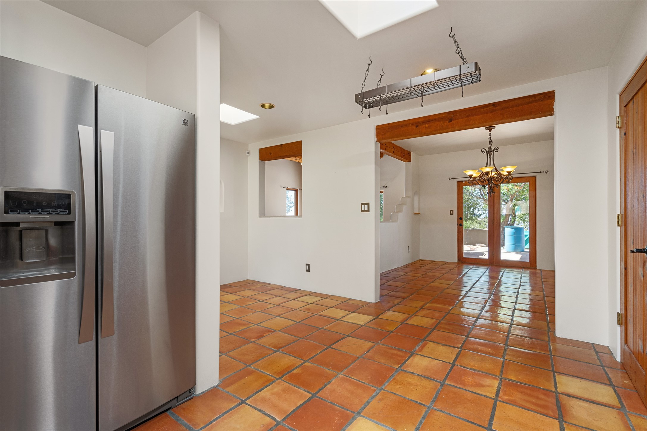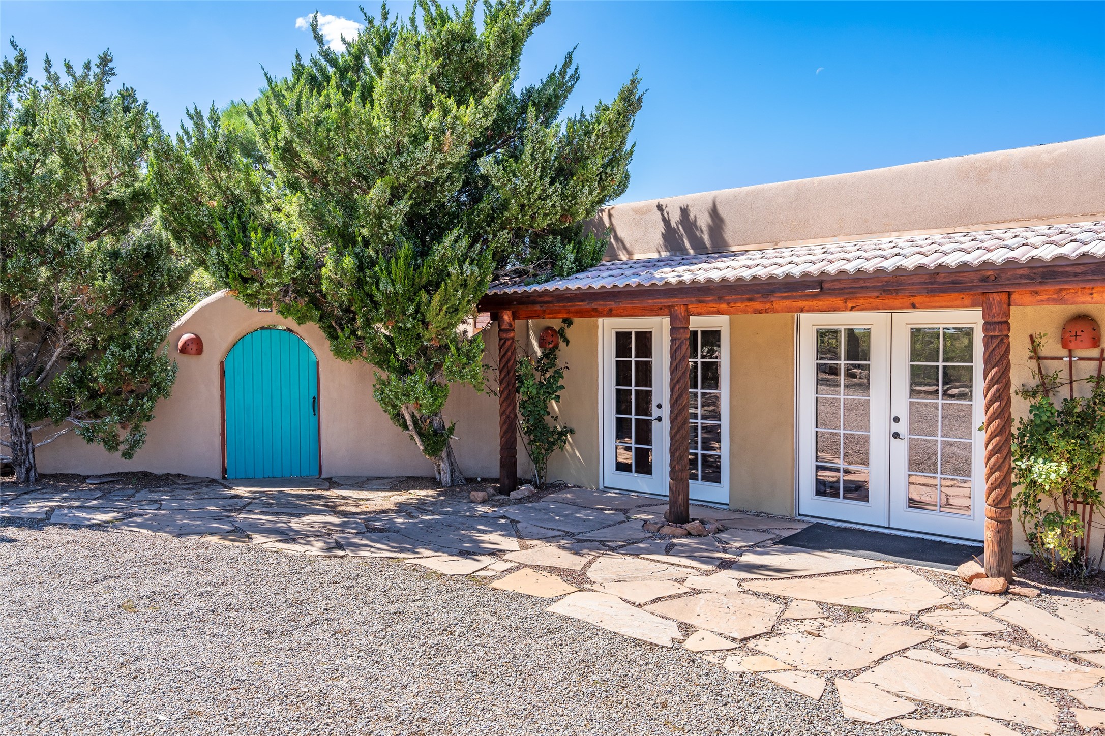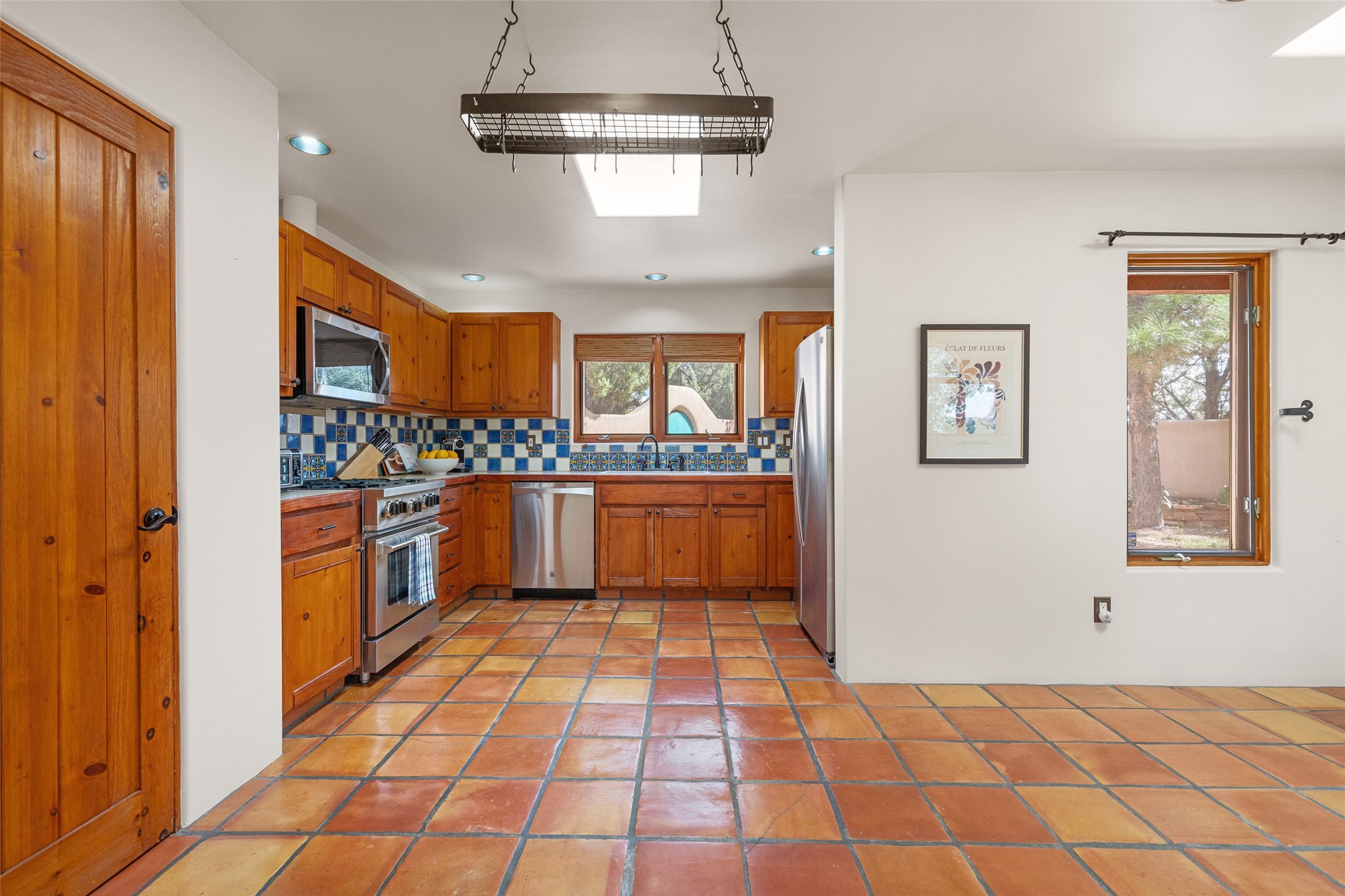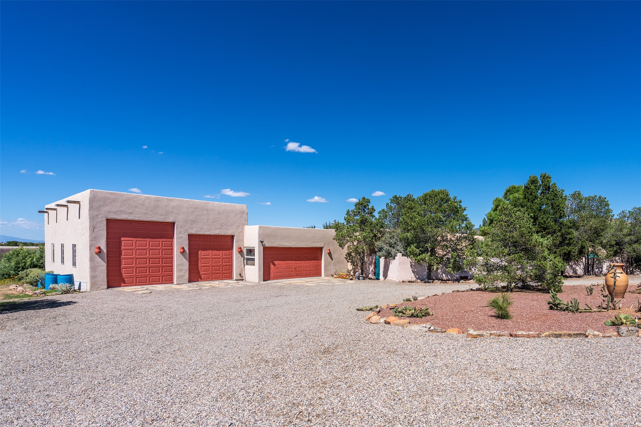 Located in the highly desirable Eldorado community just minutes from Santa Fe, 3-bedroom, 3-bath home perfectly blends classic Santa Fe style with thoughtful modern updates. From its warm Saltillo tile floors to its cork-floored bedrooms--ideal for comfort and allergy sensitivity--every detail invites relaxed, functional living.A standout feature of the home is the nearly 1,100 square feet of versatile flex space with its own private entrance--ideal for a studio, home office, guest suite, or creative retreat.The updated kitchen will impress, featuring a high-end Bluestar gas range, Kenmore Elite refrigerator, and stainless dishwasher. The guest and flex-space bathrooms have also been tastefully renovated, offering both style and comfort. A whole-house water filtration system adds an extra layer of wellness and convenience.Outdoors, mature landscaping frames a private front courtyard and a fully walled backyard oasis, where newly built decks and a relaxing hot tub create the perfect setting for entertaining or unwinding under the stars.For those who value space and storage, the property includes a rare, RV garage--approximately 25' x 40'--in addition to 3 additional car bays, offering ample room for vehicles, projects, or recreational gear.Living in Eldorado means access to miles of scenic walking paths, a welcoming community center, pool, tennis courts, and more--all within a vibrant neighborhood that embodies the best of Santa Fe living.This home is more than just a place to live--it's an inviting canvas for your lifestyle.