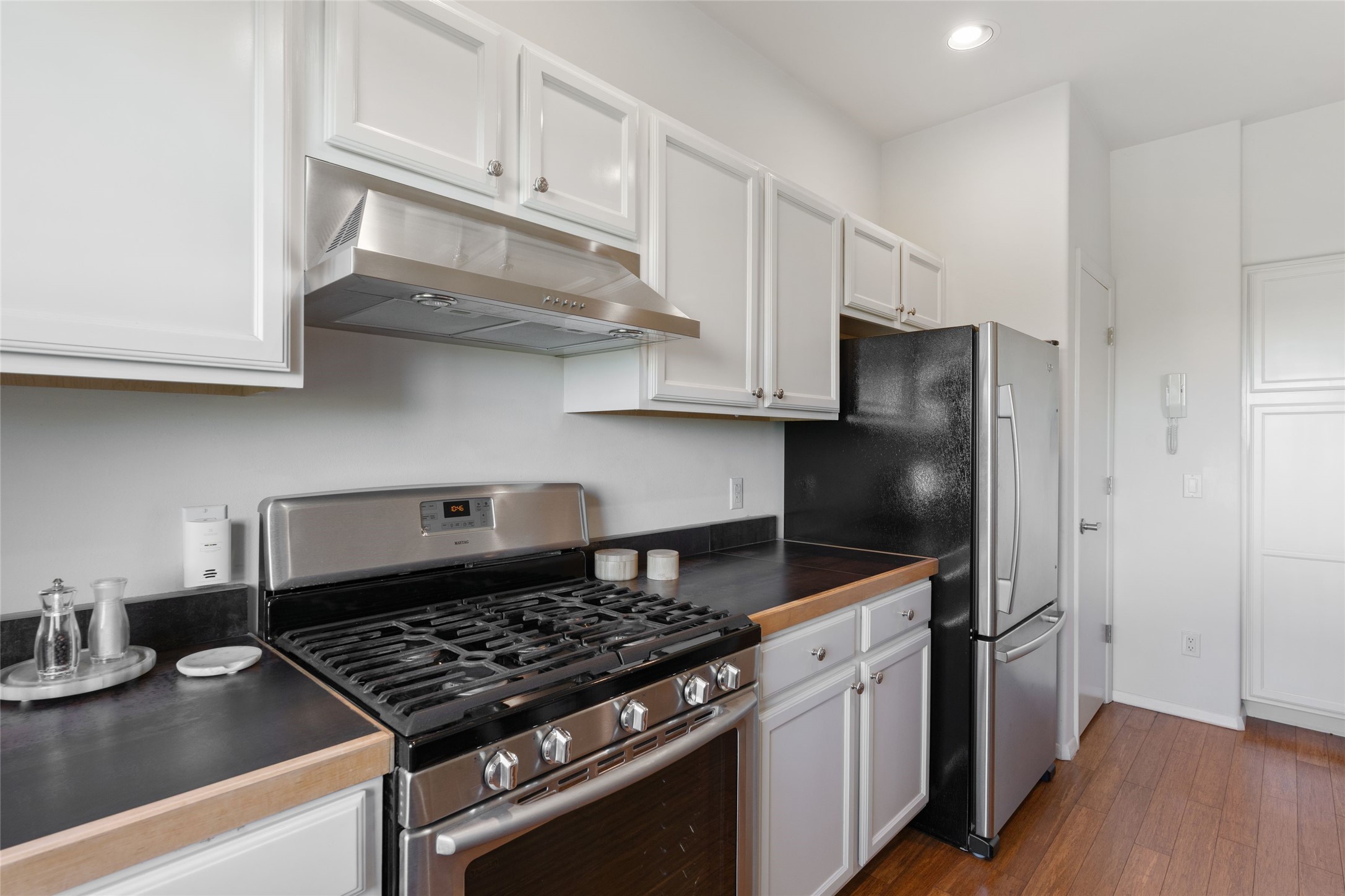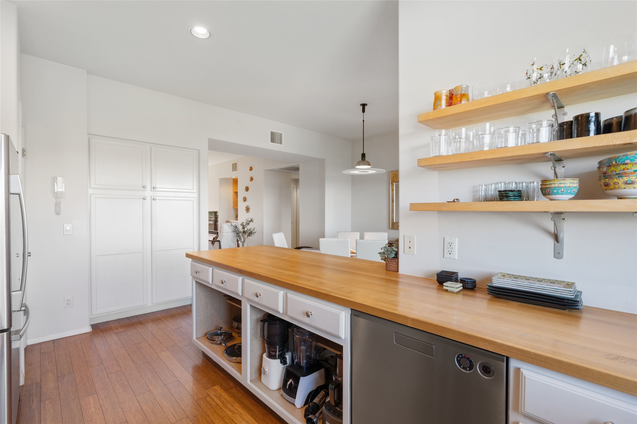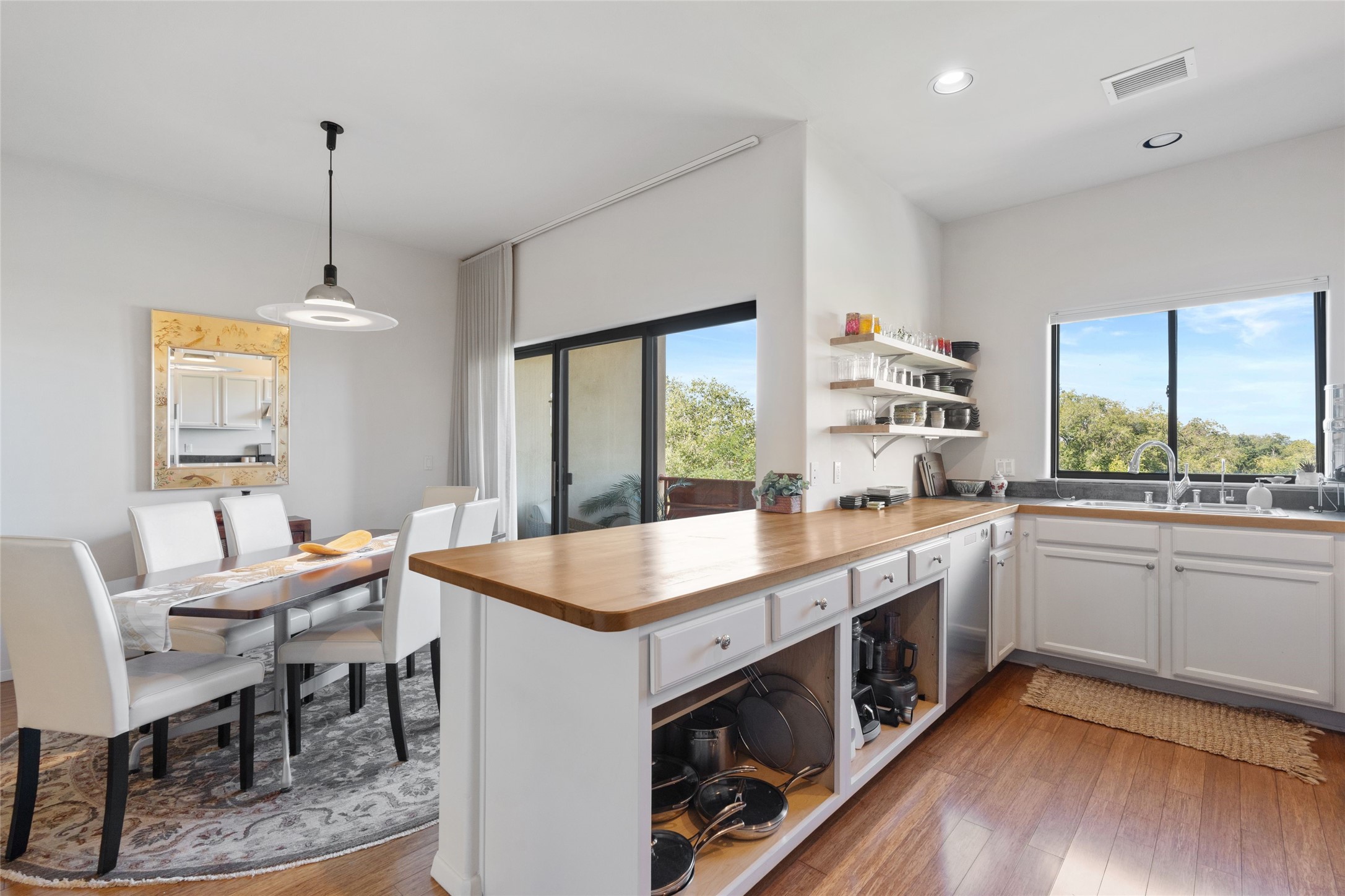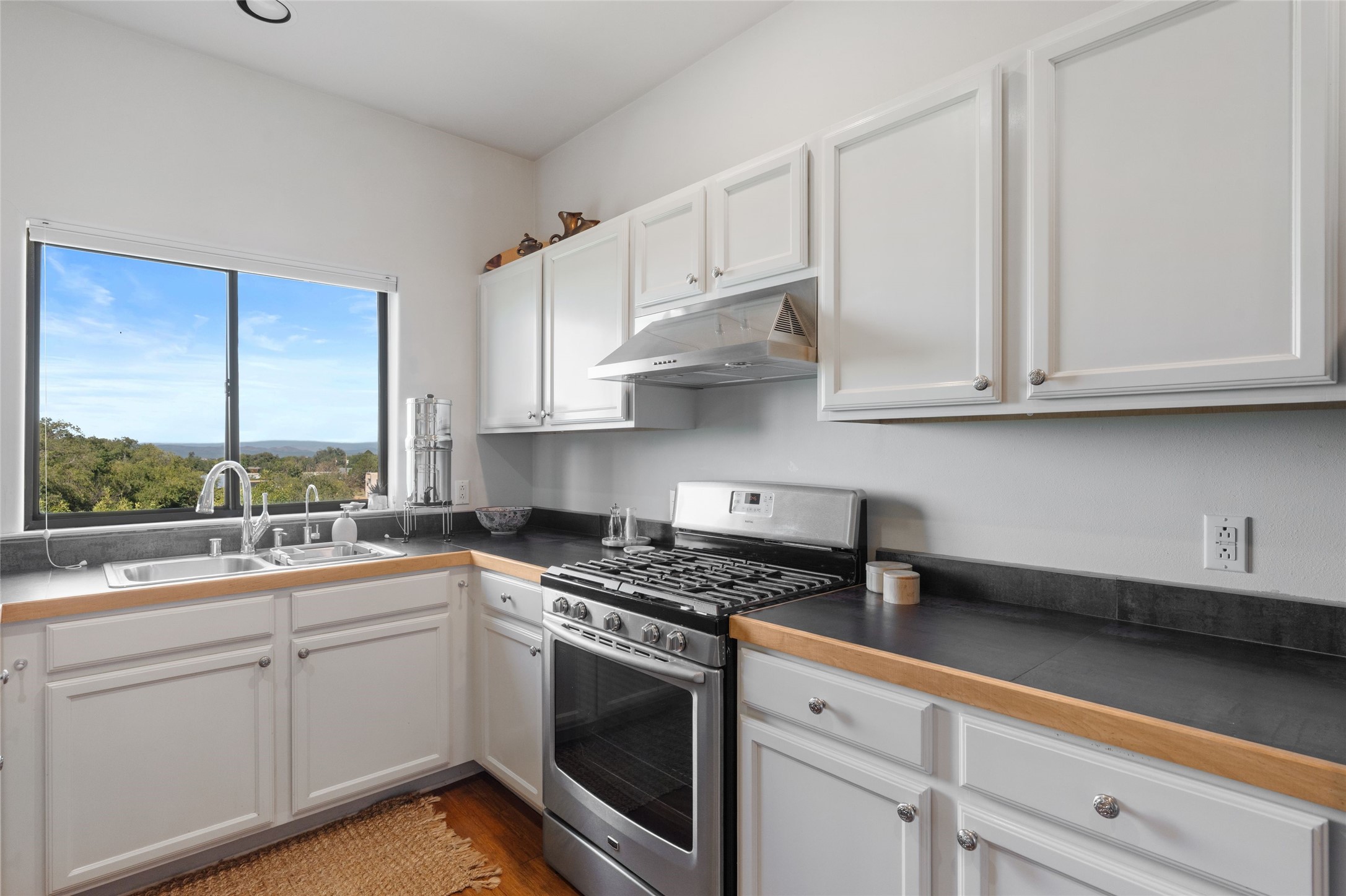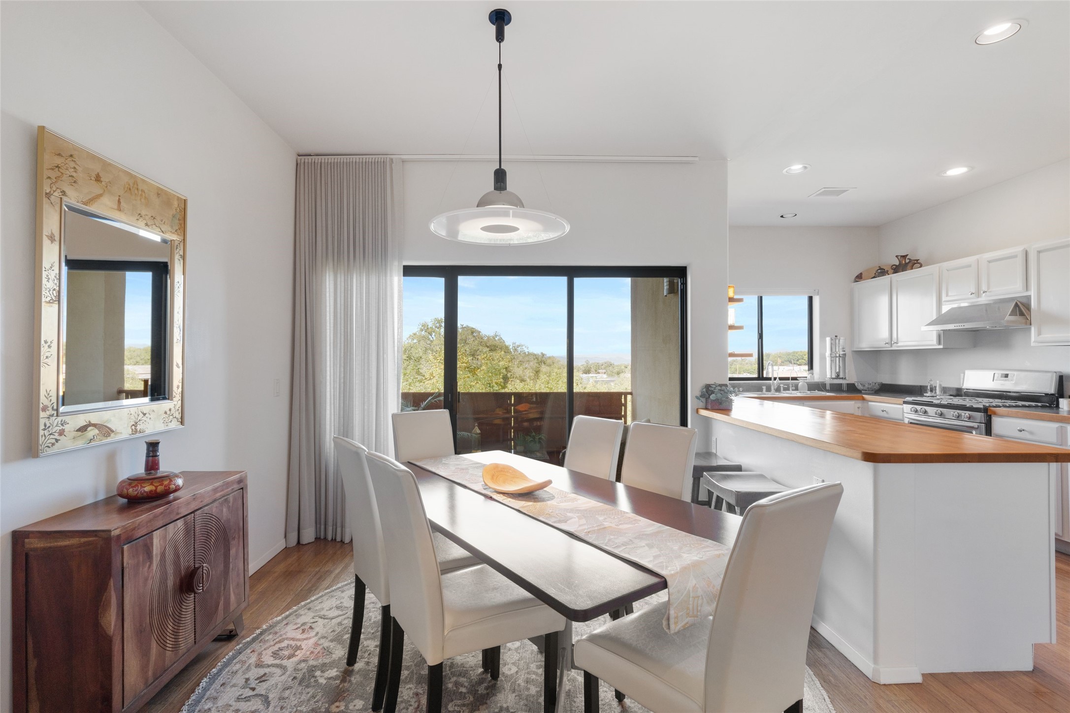 Classic urban oasis surrounded by mature trees, La Remuda Condominium is located on the edge of Midtown where you can walk to relaxed eateries featuring global cuisine and local flair. Not far from theRailyard, quick stops to Trader Joe's and Whole Foods. The central location is convenientfor a fast commute to Los Alamos or I-25. This bright and airy condo features an open floor plan with sliding glass doors at each end of the living/dining rooms with access to the 2 balconies. The kitchen is well designed, with exceptional storage, high quality stainless steel appliances, butcher block on one side of the counter and Italian tile on the other. Other features include: central air conditioning and heating installed in 2023, 9 foot ceilings, beautiful bamboo floors, custom drapes, custom dividedclosets, custom cabinets in living room and office, private storage: 5.5' x 17', Asko washer and dryer, whole house water filtration system installed in 2025, 2 under cover designated parking spots with direct entrance to the secure building, upper floor unit with no interior steps, new roof in 2024 and refreshed stucco in 2025. One of the two only units at La Remuda with 3 bedrooms. Included are two covered tandem parking spaces and a spacious storage unit. This condo is on the second floor and stairs are required to access it.