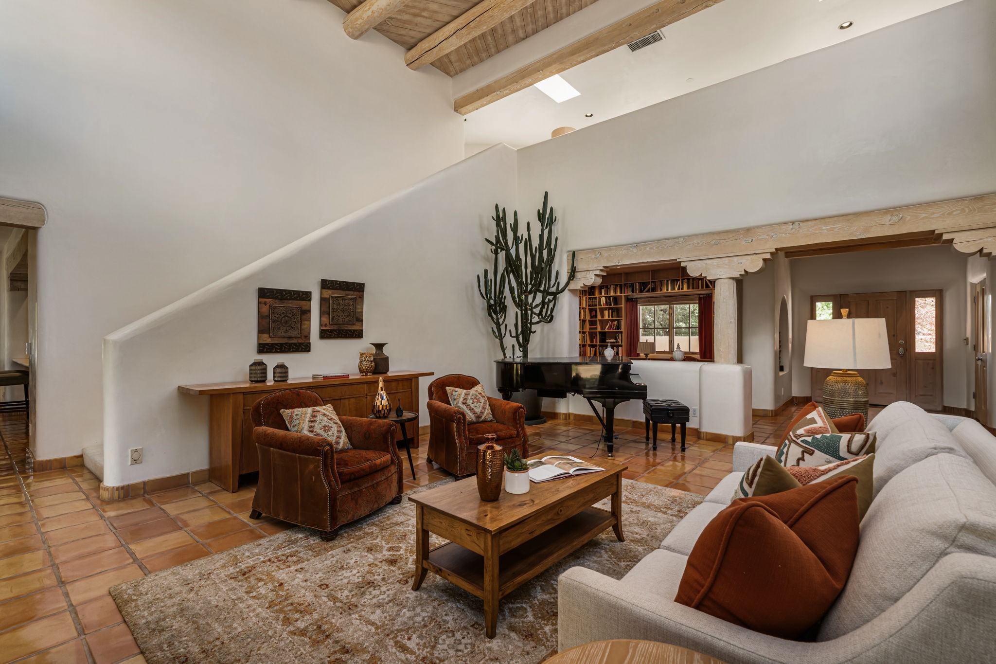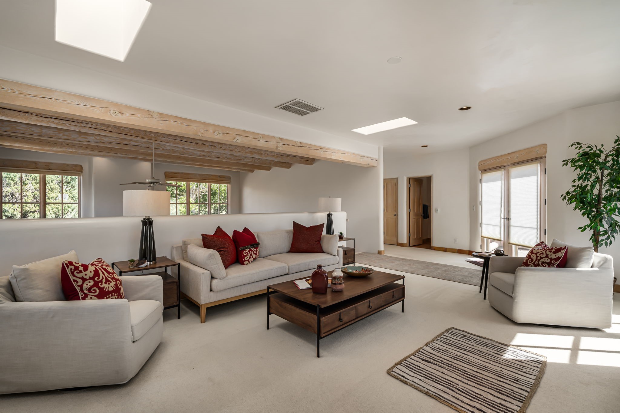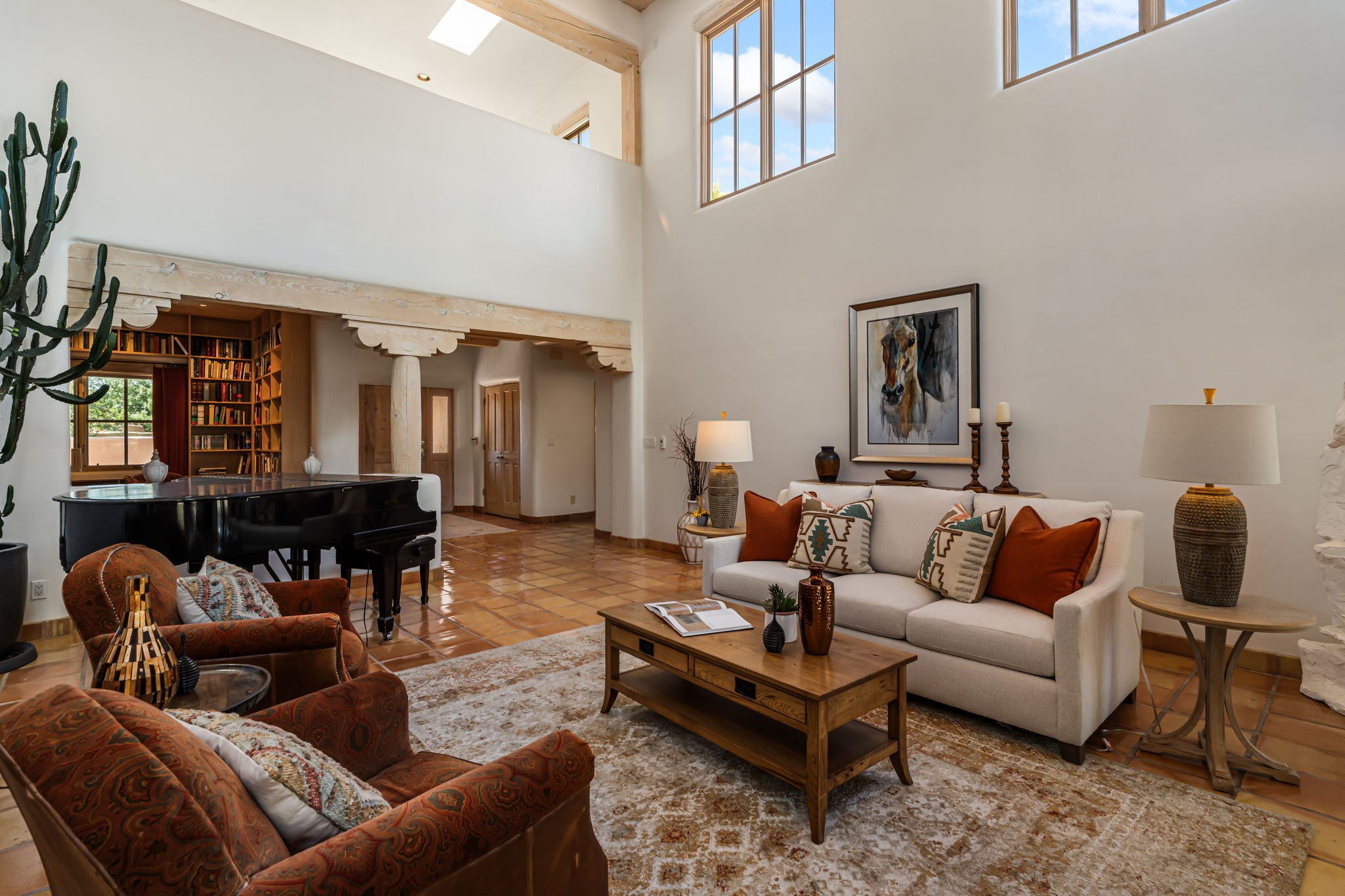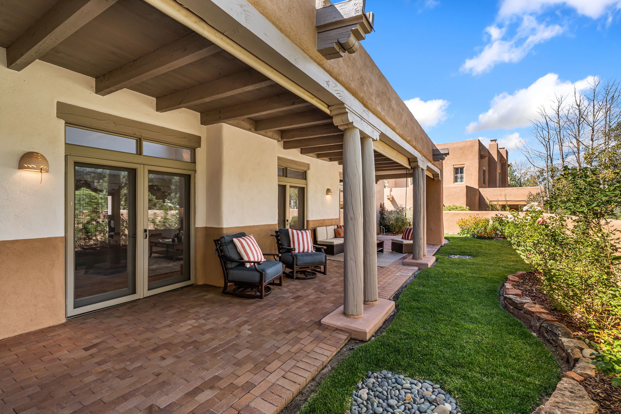 One of the larger and more beautiful freestanding homes available in Quail Run, unit 632 is bathed in natural light from the double-height ceilings facing east toward the Sangre de Cristo Mountains. This particular unit has 3 very generous bedrooms, each with its own bathroom, in addition to a powder room available to guests.The living room accommodates a grand piano or multiple seating areas, and is complemented by an adjacent library with custom-built bookshelves.The kitchen features an updated appliance wall with high-end built-ins, including a Sub-Zero refrigerator with bottom drawer freezer. Custom shelving maximizes storage in the walk-in pantry. The generous master bedroom with its own door out to the east portal, has a soaking tub and two walk-in closets in its en-suite bathroom.The second downstairs bedroom includes a retrofitted accessible bathtub - ideal for guests or aging in place.Upstairs, a spacious loft area overlooks the living room and leads to a private bedroom, full bath, and a balcony perfect for sunset viewing.The main east portal has a bank of established rose bushes producing an abundance of blooms that can be cut for bouquets. With access to the kitchen area, French doors to the living room, and a sliding door into the master bedroom, the main portal is large enough for multiple sitting or eating areas.The west patio is a custom designed Zen garden with enough space to sit or eat under a traditional southwest portal. A beautiful house with all the amenities that Quail Run has to offer: a clubhouse with extensive exercise rooms, equipment, and classes, a swimming pool for laps and a warm therapy pool, two hot tubs, entertainment, restaurant, activities, golf, tennis and pickle ball courts, maintenance crew on call, housekeeping services available, all exterior maintenance taken care of.Come see this particular unit - everyone who does loves it for its space, light, and orientation within the Quail Run community.