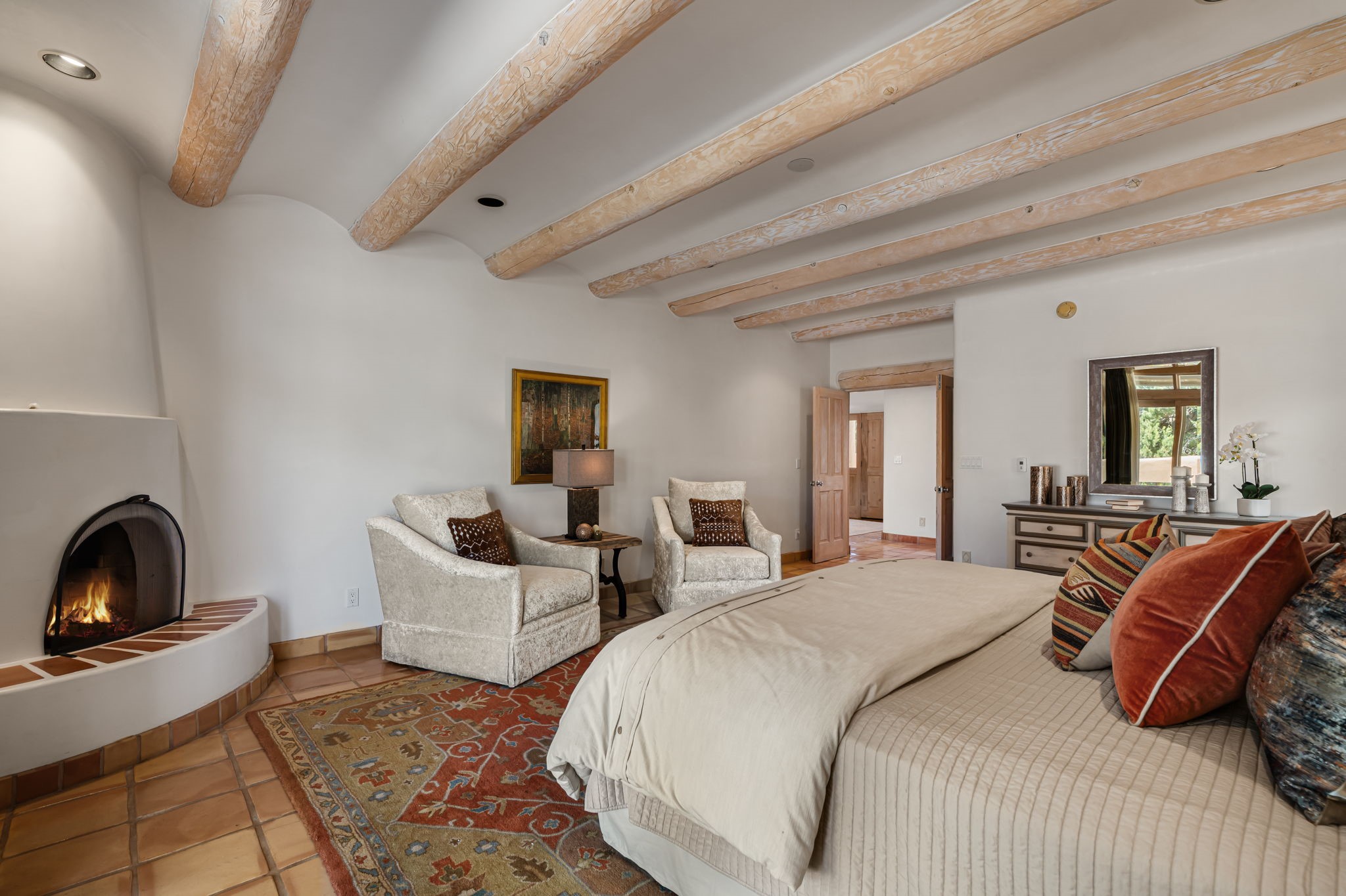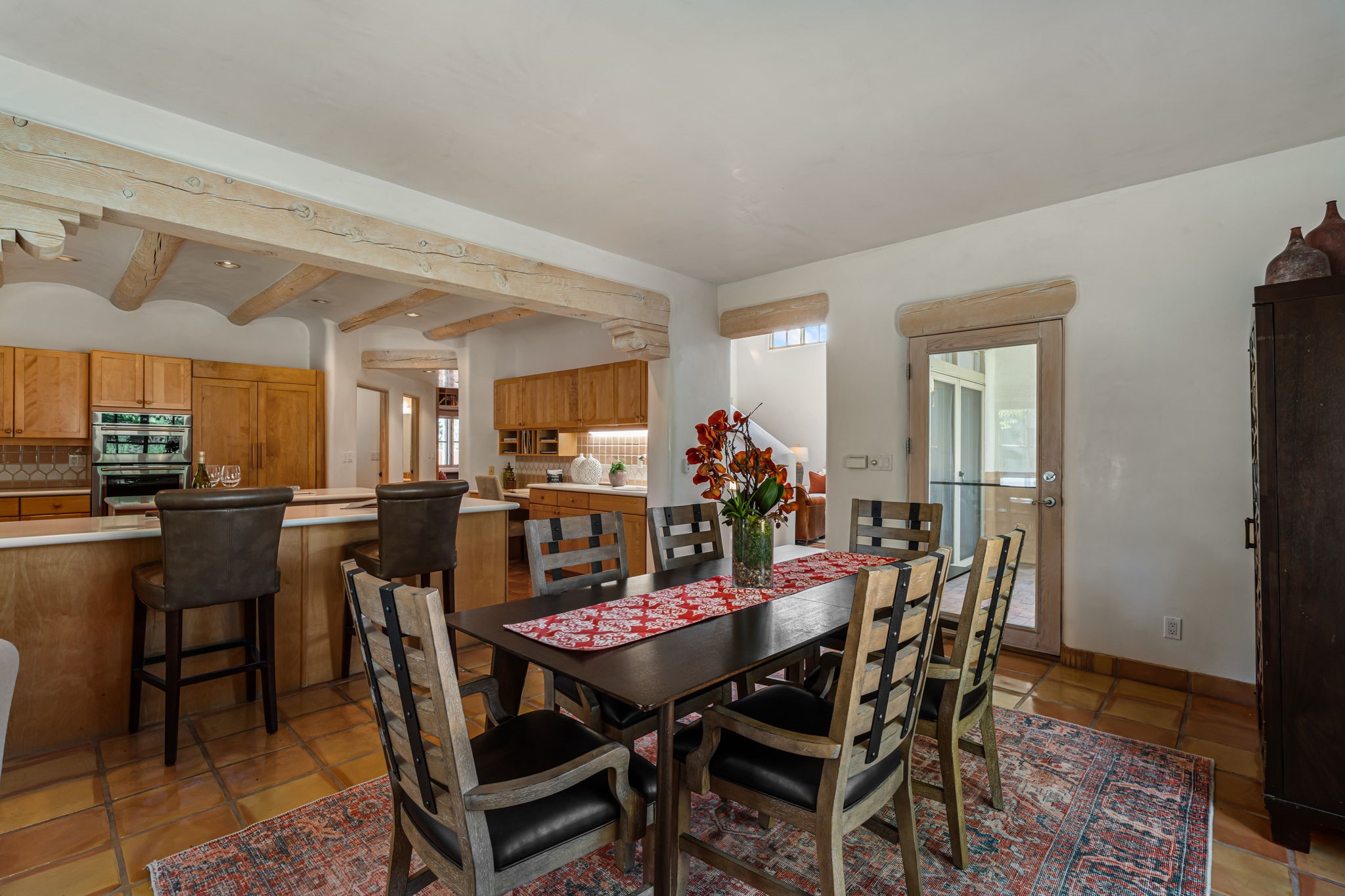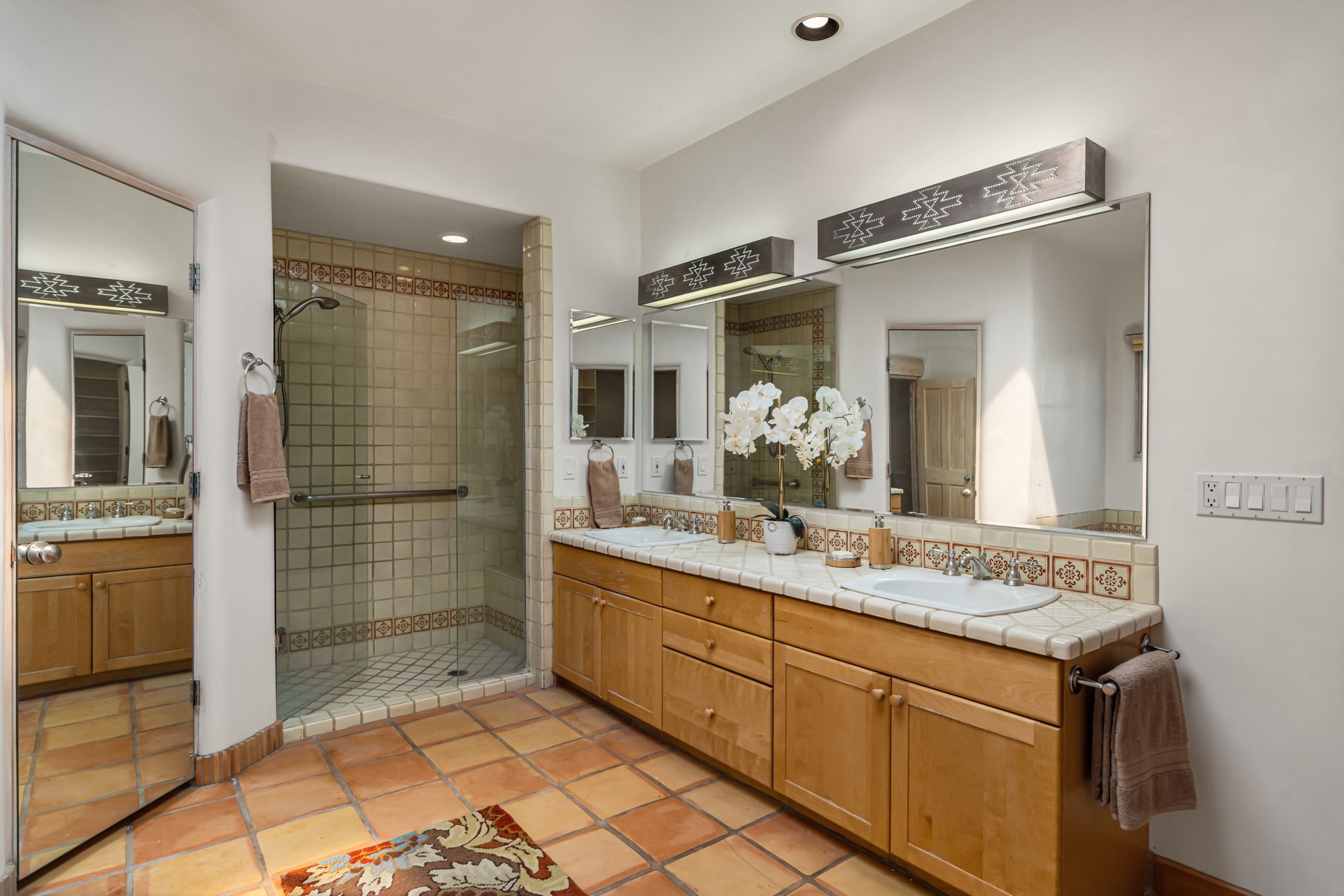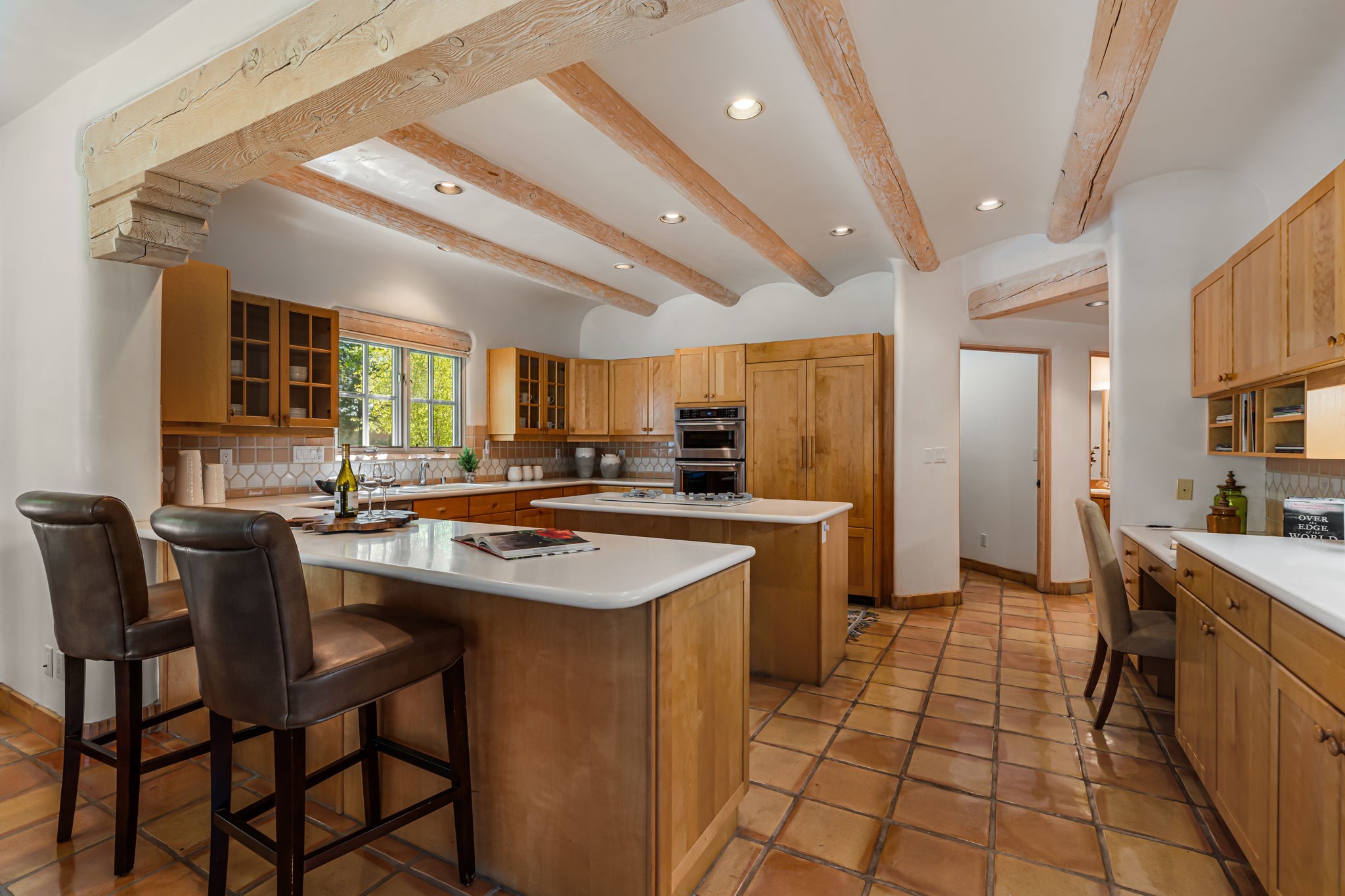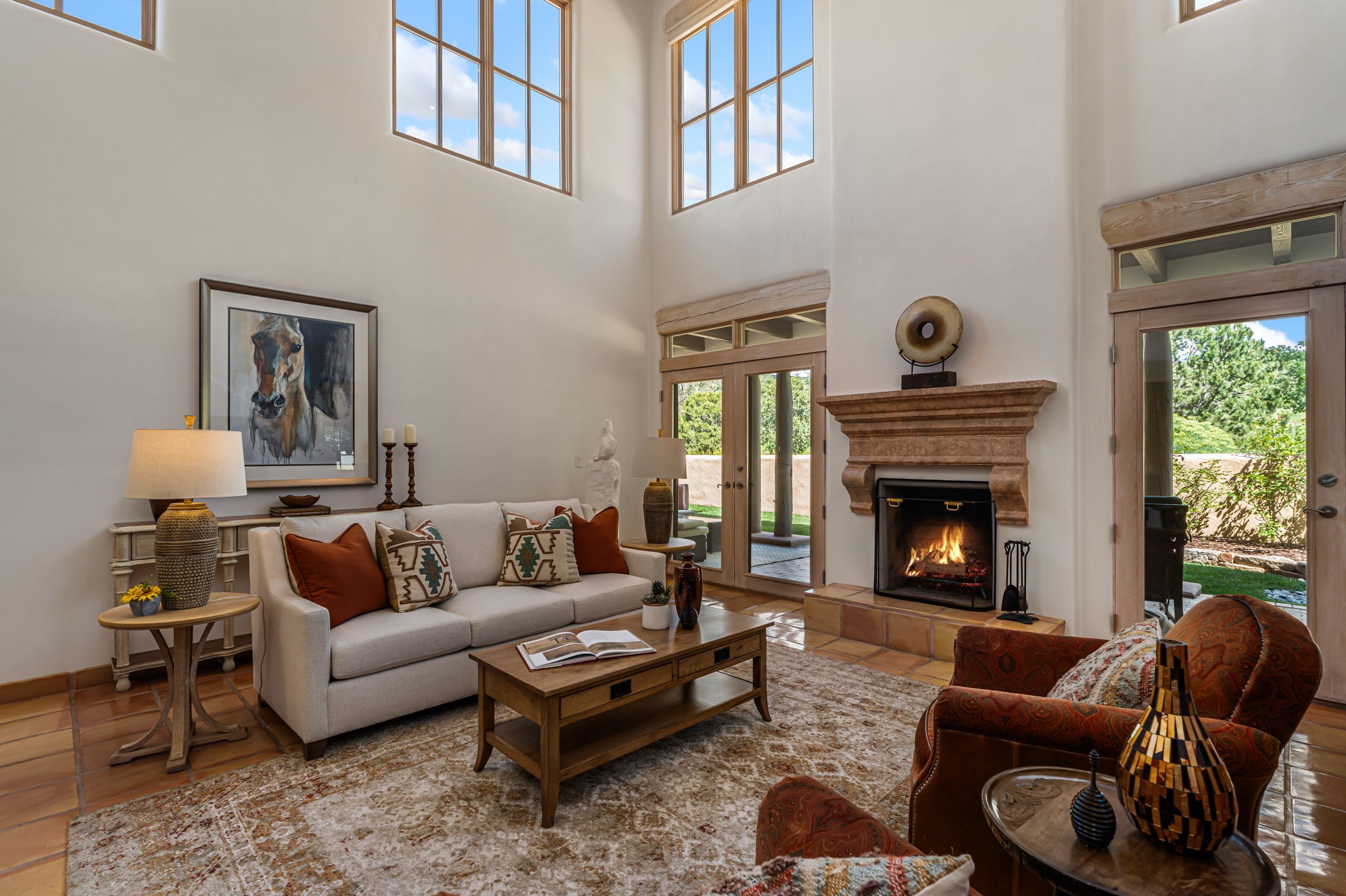 One of the larger and more beautiful freestanding homes available in Quail Run, unit 632 is bathed in natural light from the double-height ceilings facing east toward the Sangre de Cristo Mountains. This particular unit has 3 very generous bedrooms, each with its own bathroom, in addition to a powder room available to guests.The living room accommodates a grand piano or multiple seating areas, and is complemented by an adjacent library with custom-built bookshelves.The kitchen features an updated appliance wall with high-end built-ins, including a Sub-Zero refrigerator with bottom drawer freezer. Custom shelving maximizes storage in the walk-in pantry. The generous master bedroom with its own door out to the east portal, has a soaking tub and two walk-in closets in its en-suite bathroom.The second downstairs bedroom includes a retrofitted accessible bathtub - ideal for guests or aging in place.Upstairs, a spacious loft area overlooks the living room and leads to a private bedroom, full bath, and a balcony perfect for sunset viewing.The main east portal has a bank of established rose bushes producing an abundance of blooms that can be cut for bouquets. With access to the kitchen area, French doors to the living room, and a sliding door into the master bedroom, the main portal is large enough for multiple sitting or eating areas.The west patio is a custom designed Zen garden with enough space to sit or eat under a traditional southwest portal. A beautiful house with all the amenities that Quail Run has to offer: a clubhouse with extensive exercise rooms, equipment, and classes, a swimming pool for laps and a warm therapy pool, two hot tubs, entertainment, restaurant, activities, golf, tennis and pickle ball courts, maintenance crew on call, housekeeping services available, all exterior maintenance taken care of.Come see this particular unit - everyone who does loves it for its space, light, and orientation within the Quail Run community.