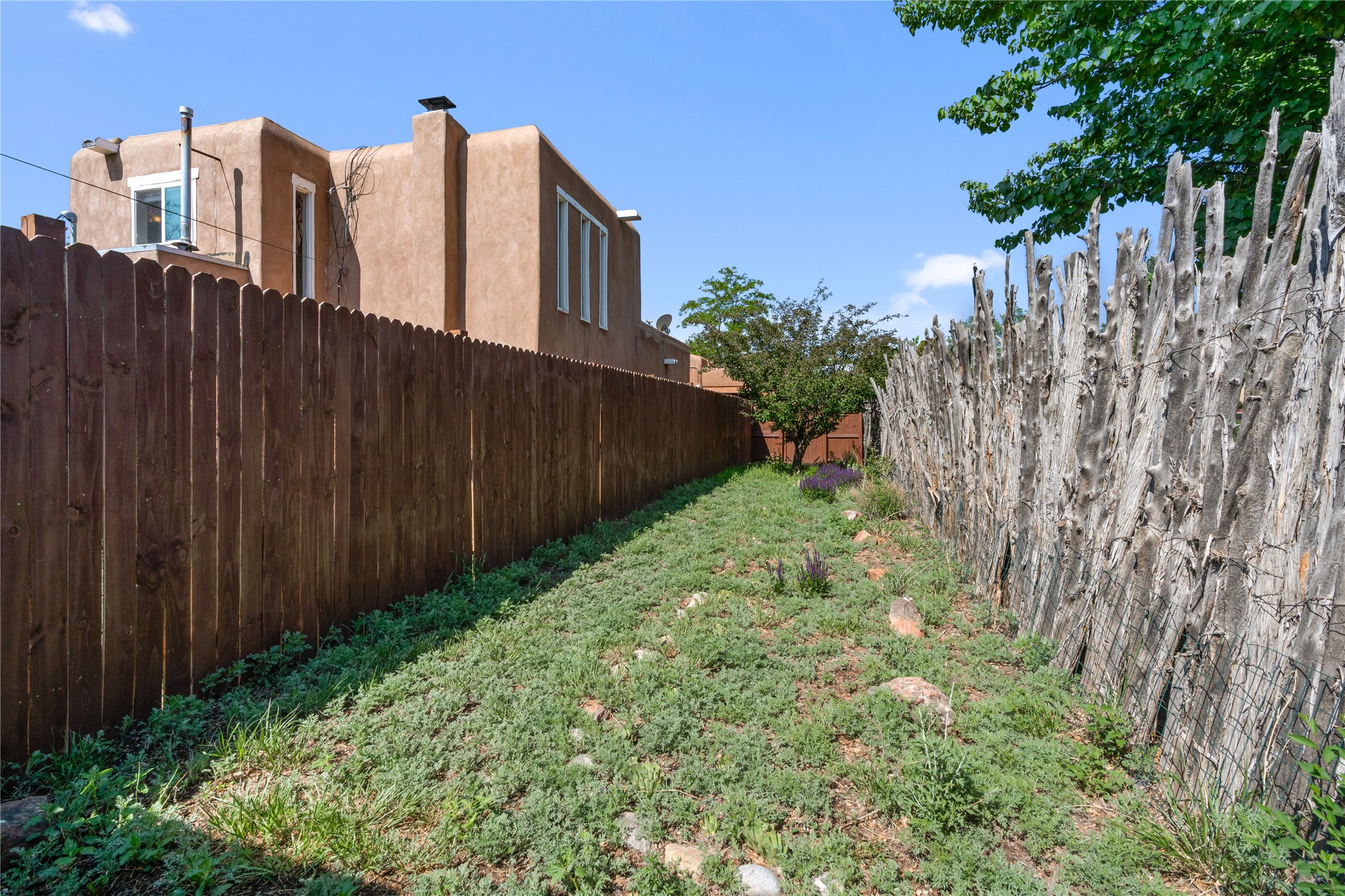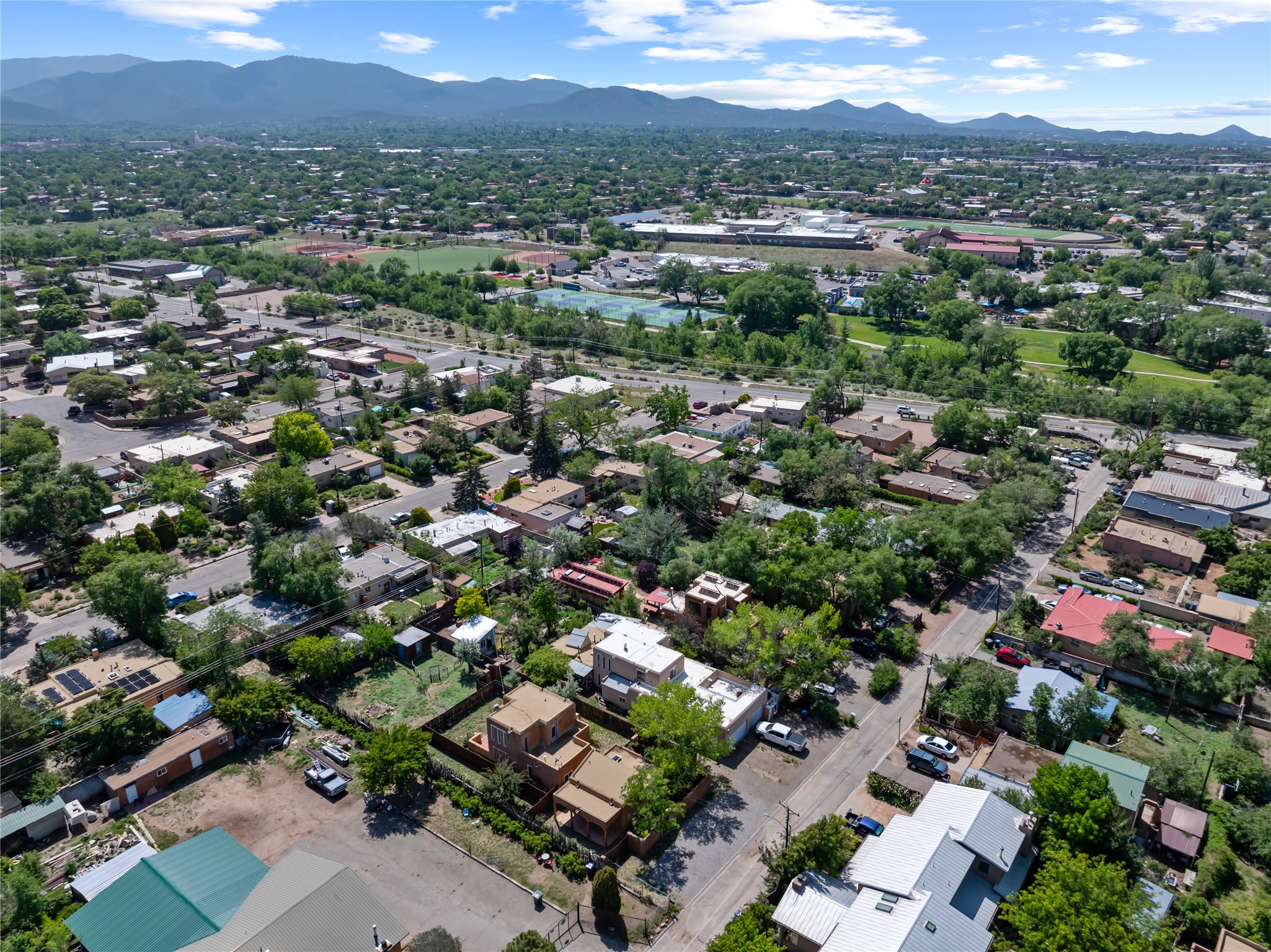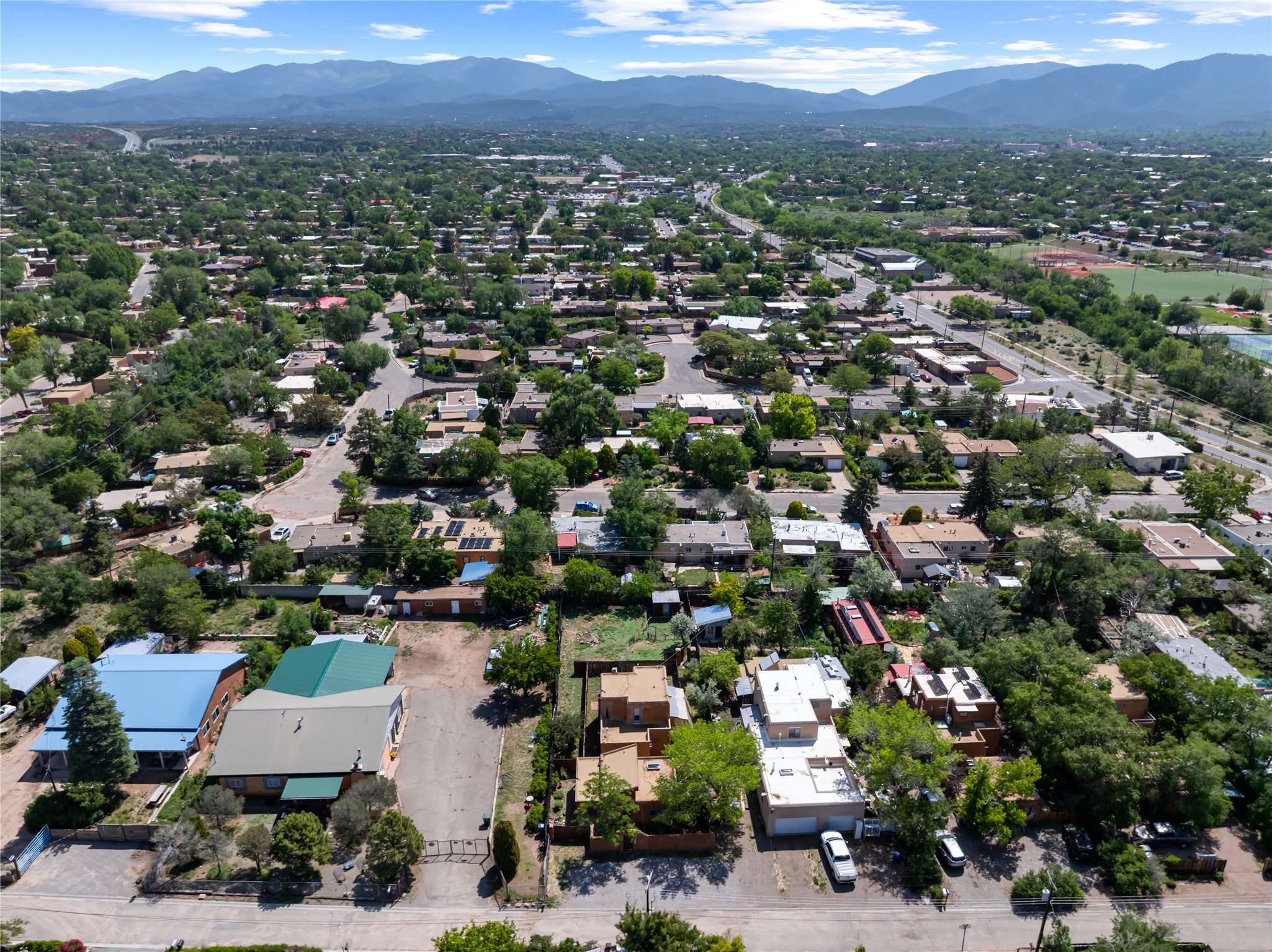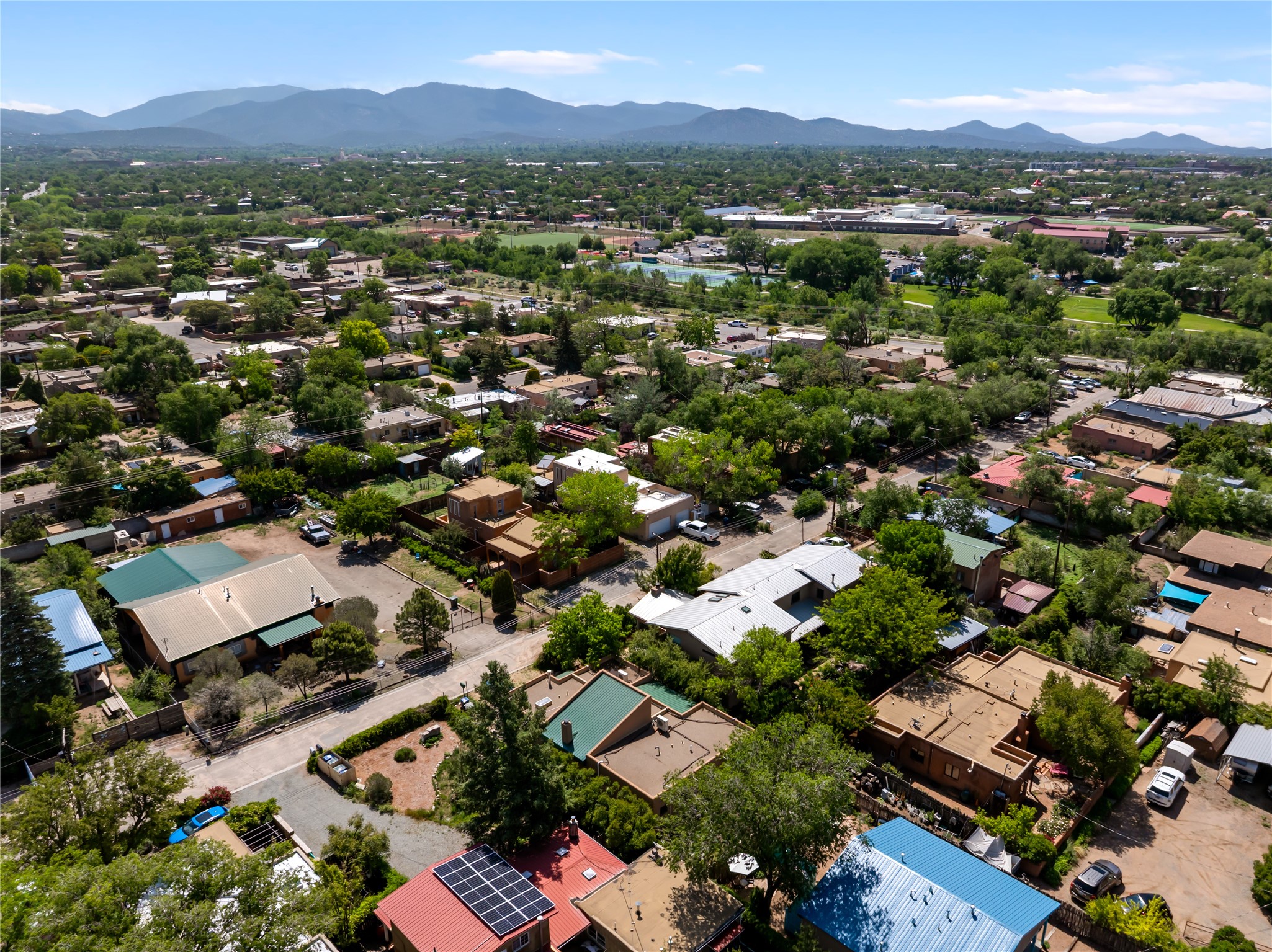 Located only 1.8 miles from the Santa Fe Plaza, this 4-bedroom house and guest house offer both privacy and convenience on a generous lot with future building potential. At the end of a quiet dead-end lane, the home enjoys direct access to beloved community amenities, including Frank Ortiz Dog Park, the Santa Fe River Trail, and Alto Park with its pool and tennis courts. The main residence features authentic adobe construction on the ground floor and custom design details including vigas, handcrafted solid-wood cabinetry, striking sunrises over the Sangre de Cristo Mountains and sunset views from a private deck.A separate passive-solar adobe casita enhances the property's versatility, ideal for guests, extended family, or a private studio; it includes a gas fireplace, cast-iron soaking tub, tile flooring, clerestory windows, sleeping loft, and its own fenced yard. A gated front courtyard and ample off-street parking complete this rare offering. With its blend of traditional charm, thoughtful details and location, this home is truly a Santa Fe gem.