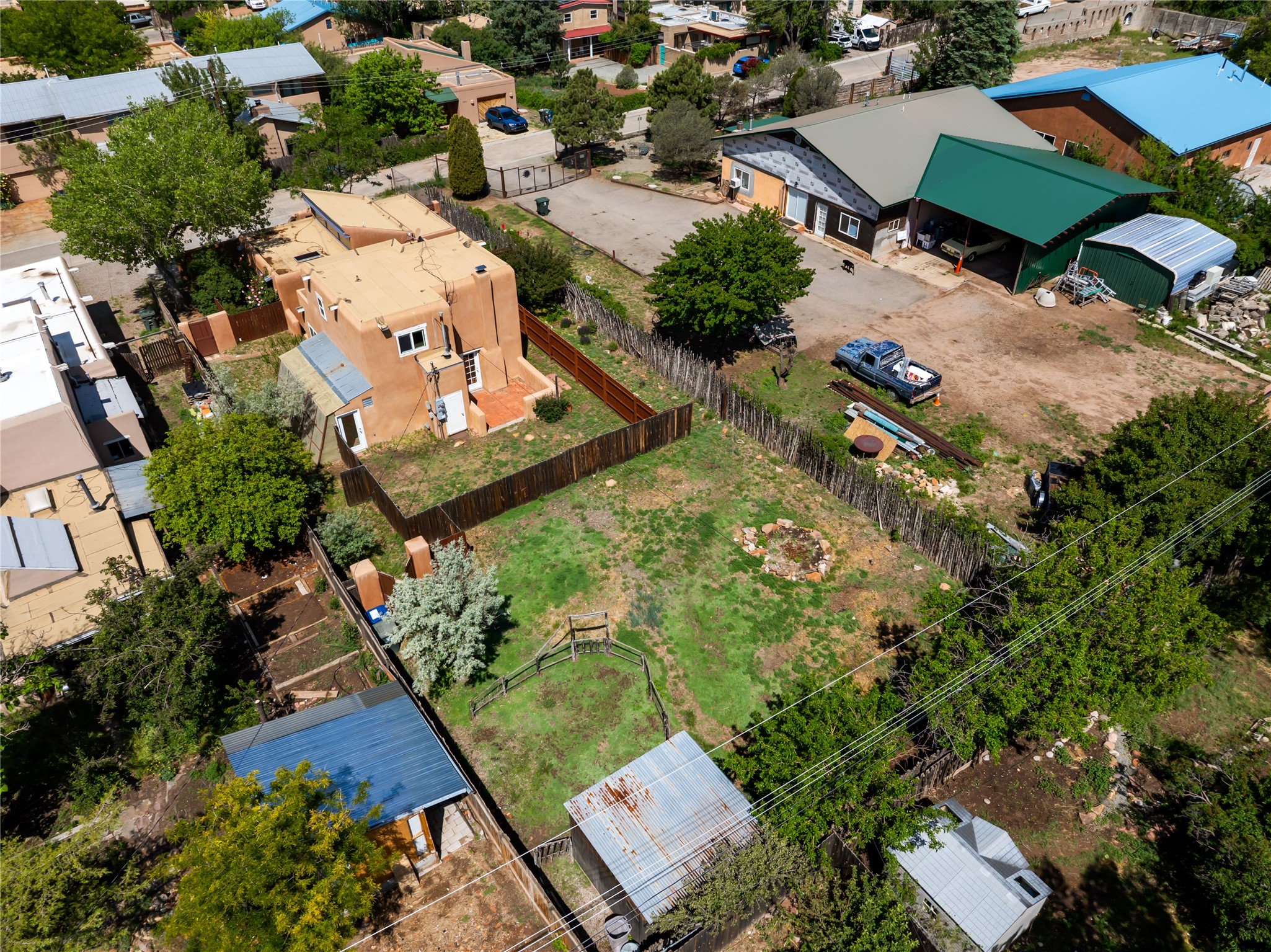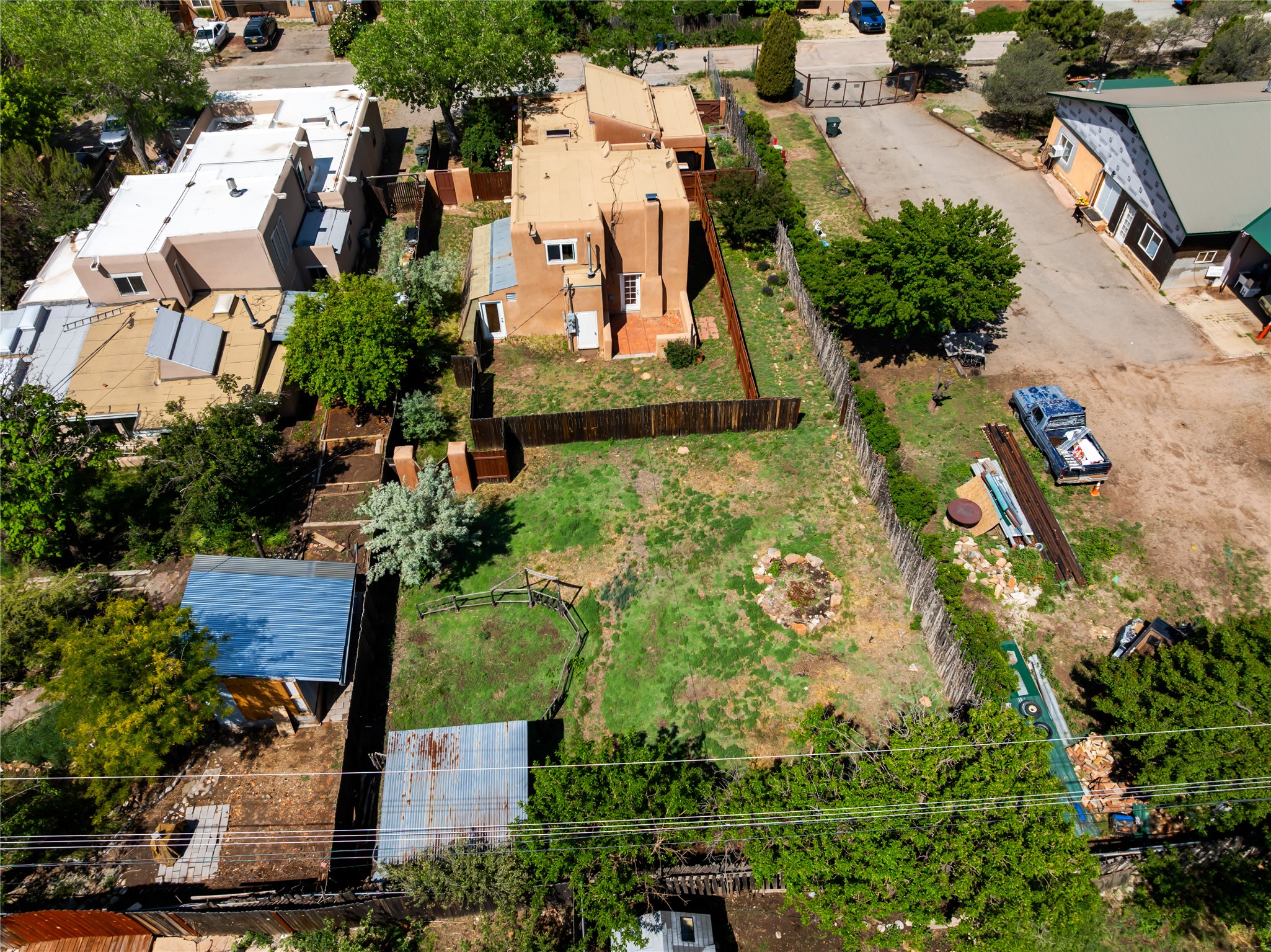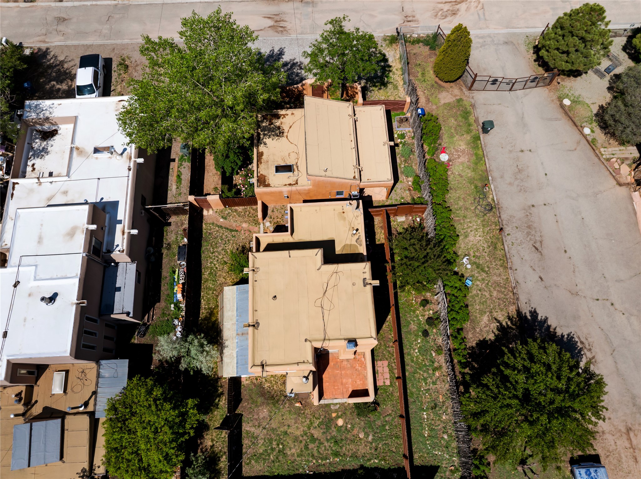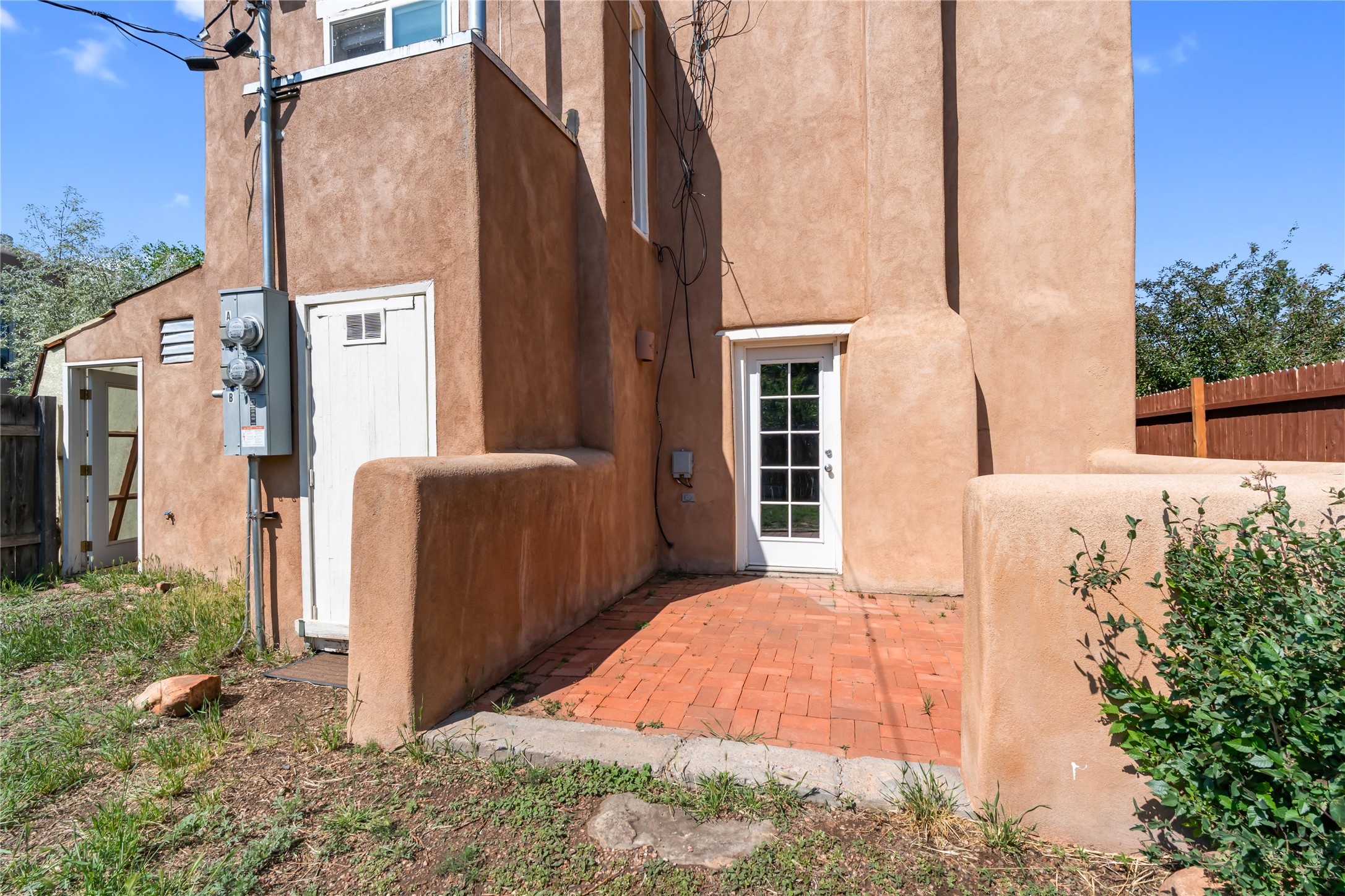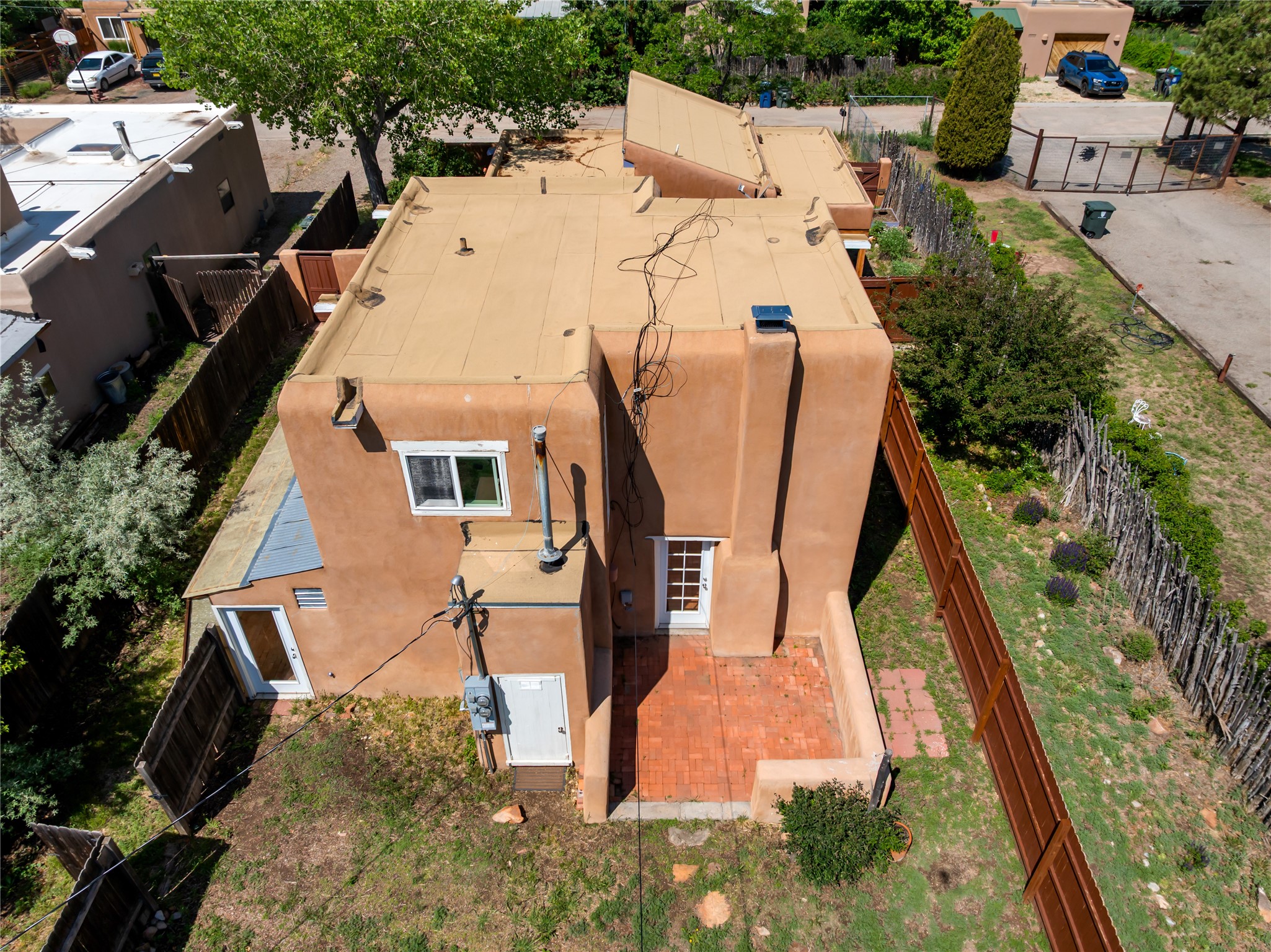 Located only 1.8 miles from the Santa Fe Plaza, this 4-bedroom house and guest house offer both privacy and convenience on a generous lot with future building potential. At the end of a quiet dead-end lane, the home enjoys direct access to beloved community amenities, including Frank Ortiz Dog Park, the Santa Fe River Trail, and Alto Park with its pool and tennis courts. The main residence features authentic adobe construction on the ground floor and custom design details including vigas, handcrafted solid-wood cabinetry, striking sunrises over the Sangre de Cristo Mountains and sunset views from a private deck.A separate passive-solar adobe casita enhances the property's versatility, ideal for guests, extended family, or a private studio; it includes a gas fireplace, cast-iron soaking tub, tile flooring, clerestory windows, sleeping loft, and its own fenced yard. A gated front courtyard and ample off-street parking complete this rare offering. With its blend of traditional charm, thoughtful details and location, this home is truly a Santa Fe gem.