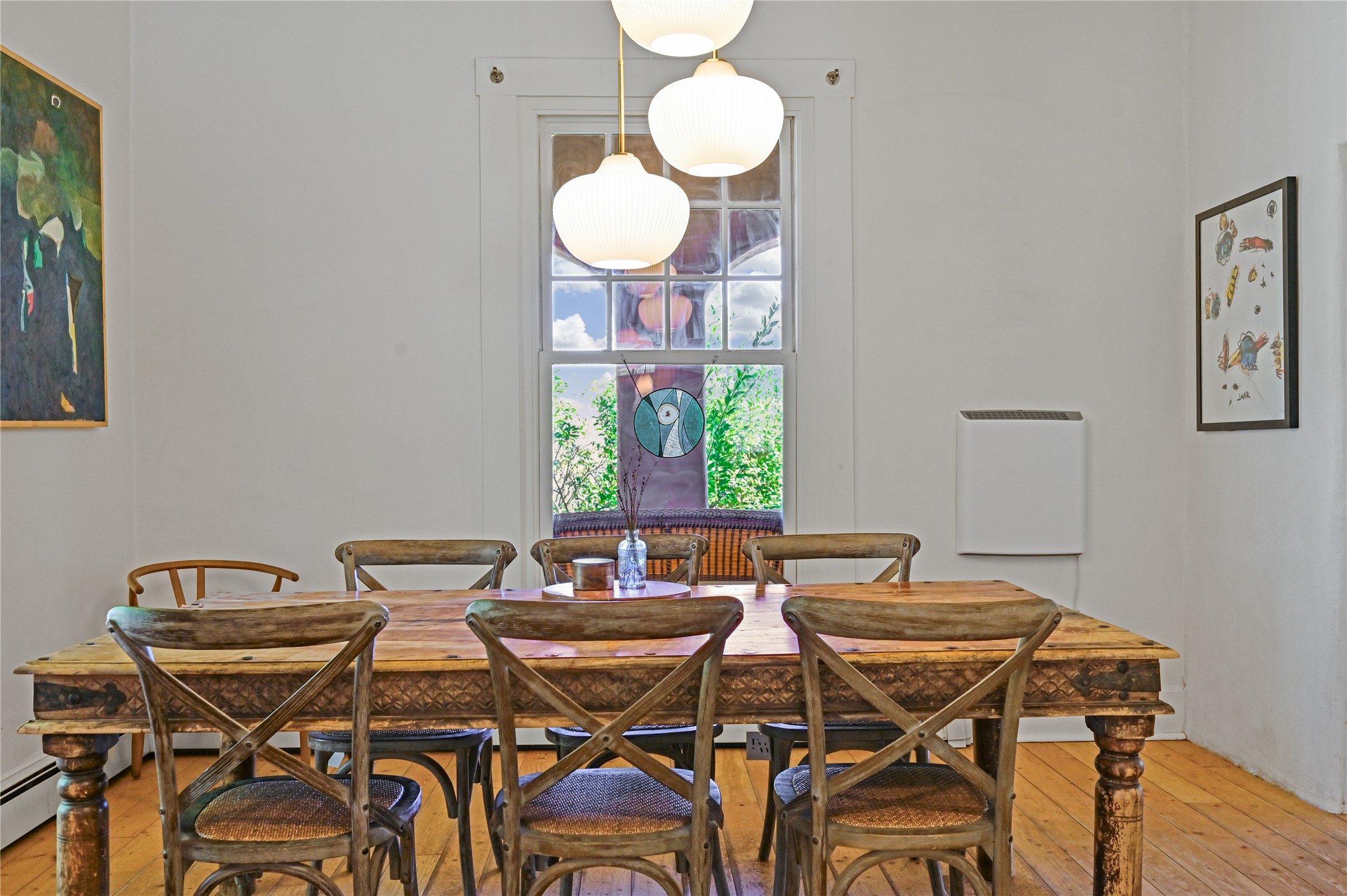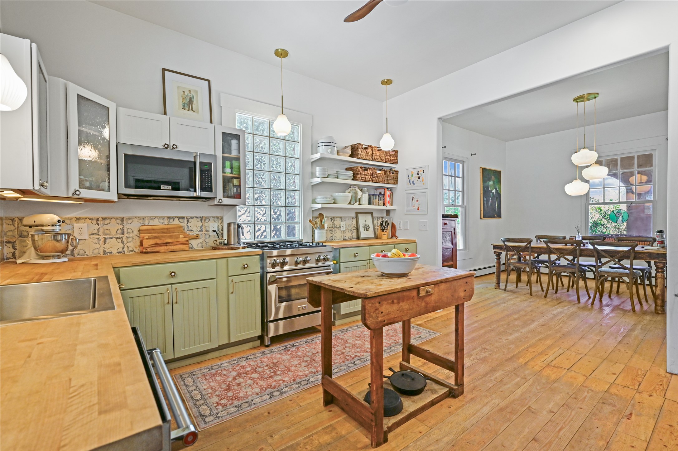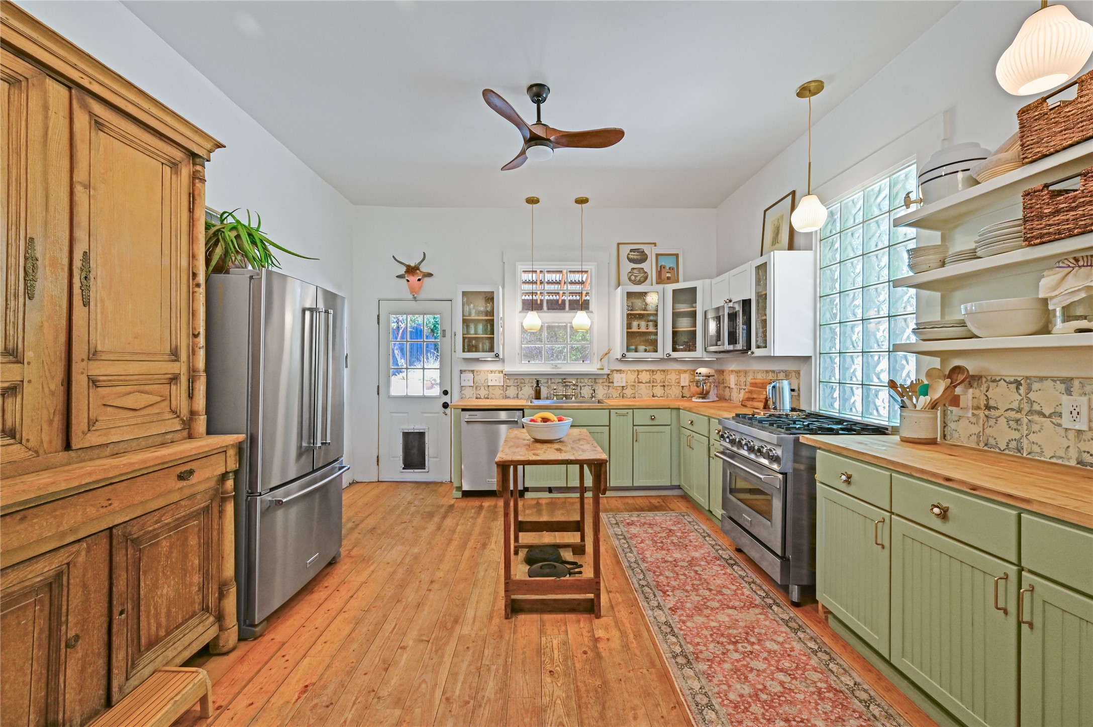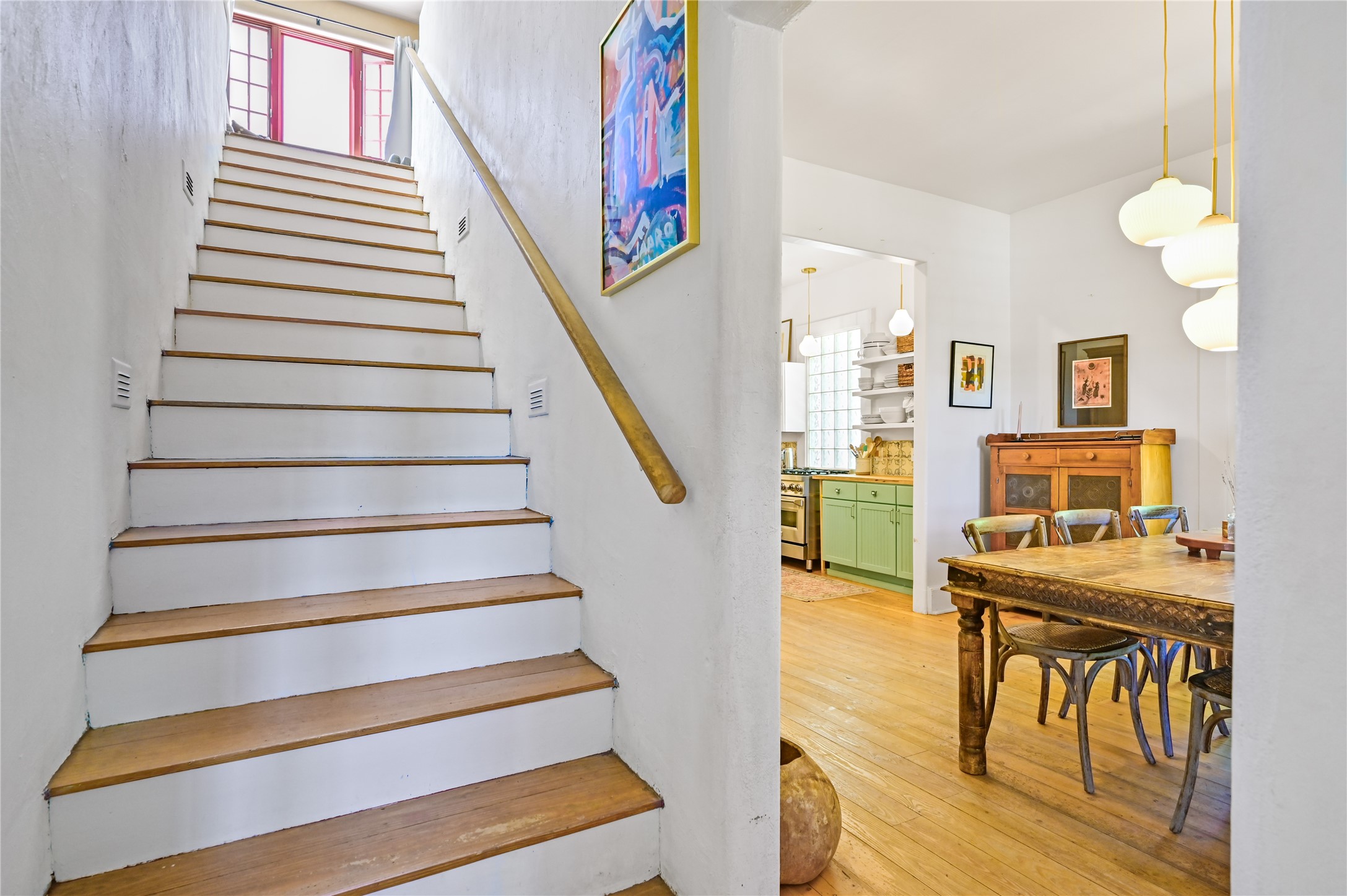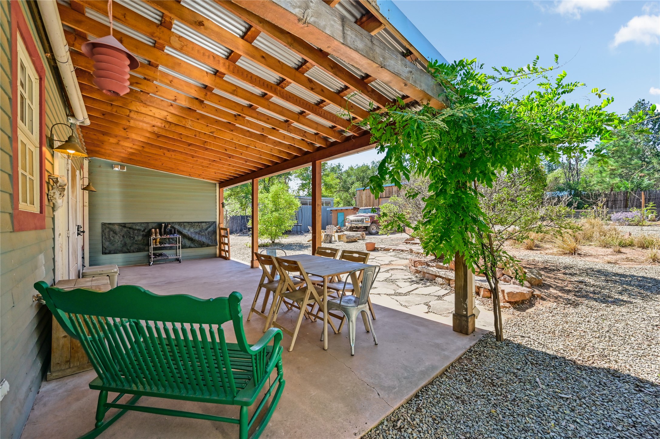 Step into Northern New Mexico history with this beautifully restored 1904 farmhouse, perfectly situated in the Village of Pecos--just a short walk to the Pecos River and a scenic 25-minute drive from Santa Fe. This spacious and thoughtfully updated home features 4 bedrooms (with a possible 5th), 3 full baths, and a classic country kitchen that blends timeless charm with modern comfort. Flexible living areas and abundant storage make it ideal for families, creatives, or anyone seeking room to grow. The expansive lot includes a large garage and workshop, a detached studio, garden beds, a chicken coop, and a small greenhouse--perfect for sustainable living. Each morning greets you with stunning mountain sunrises from the front porch or living room, and in summer, you can stroll across the street to the Pecos Farmers Market for fresh produce, live music, and community gatherings. When the snow falls, enjoy cozy winter nights by the warmth of a Norwegian wood stove. Here, adventure and tranquility meet - explore the breathtaking trails of the Pecos Wilderness and the Sangre de Cristo Mountains, or hit the world-class biking routes at Glorieta Adventure Camps, only five minutes away. Come experience the best of Northern New Mexico living--natural beauty, small-town charm, and easy access to everything Santa Fe has to offer. Imagine the Possibilities and schedule your showing today!