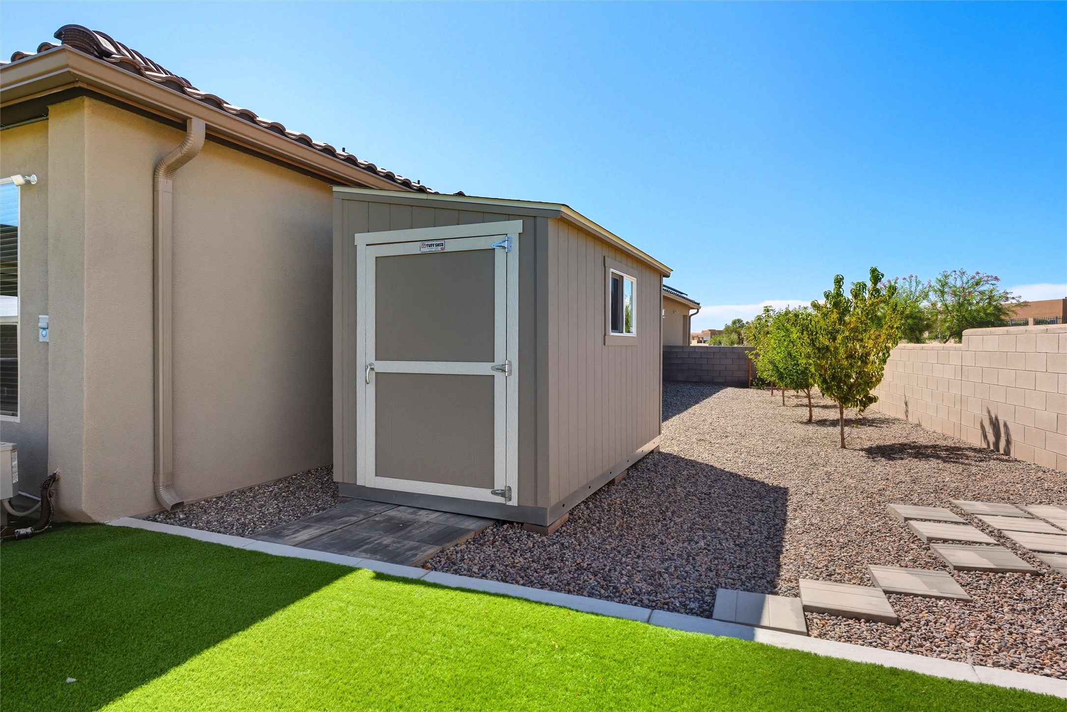 Discover luxury and comfort in this stunning single-story Hakes Brothers home tucked away at the end of a cul-de-sac. Just 3 minutes to Unser and under 20 minutes to I-25, this 4-bedroom, 2-bathroom home offers both convenience and elegance. The community features a park, pool, and outdoor water feature, with the fire department only 2 minutes away. The exterior showcases stacked stone accents and a custom metal entry gate. Inside, soaring 7-foot doors and an open floor plan set the tone. The gourmet kitchen includes a walk-in pantry, gas cook top, large island, and flows seamlessly into the living area, while the split primary suite ensures privacy. Step outside to your backyard retreat on a nearly -acre lot with no rear neighbors. Enjoy a large covered patio designed for entertaining with a built-in griddle, 5' gas fireplace, oversized 80'' fan, and a fully automated commercial-grade screen system that blocks sun and wind for year-round comfort and privacy. Additional features include a 220-volt EV outlet in the garage, a fully paid-off solar system, and over $160,000 in custom upgrades that make this home stand out. At only 3 years old, this home truly has it all! Schedule your walk through today!!!