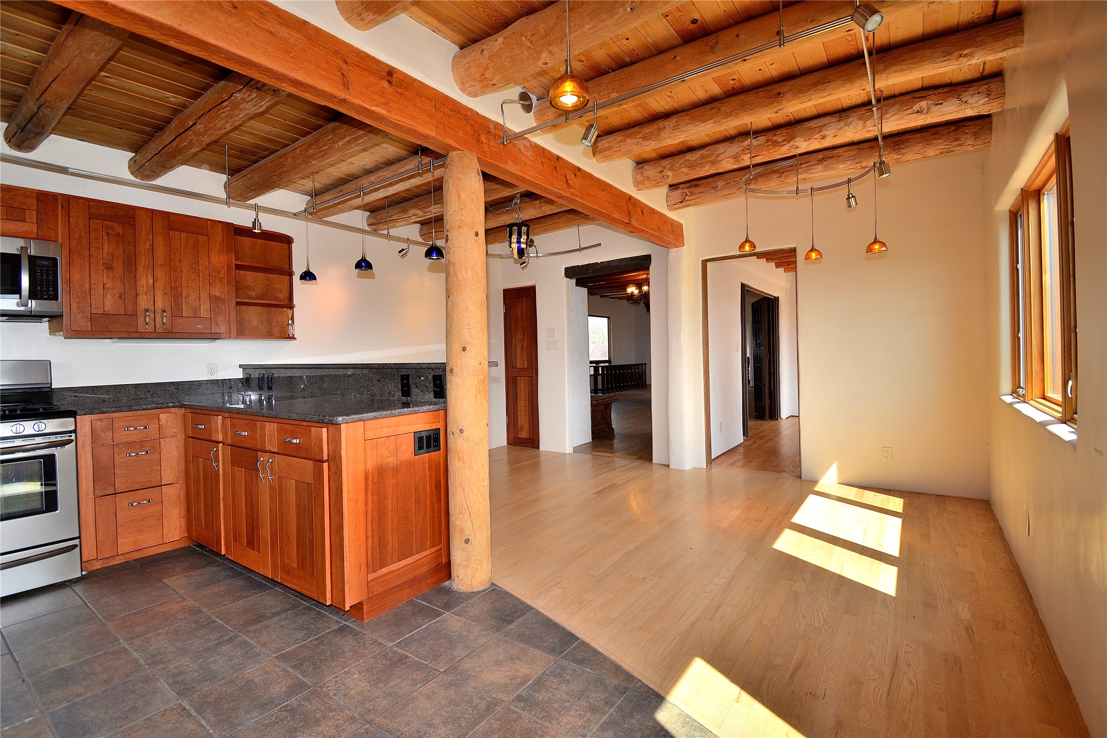 A Home of Love, Possibility, and New Beginnings Welcome, my friend. I have been waiting for you. I have long stood beneath the Santa Fe sky, a sanctuary of sunlight and silence, creativity and connection. Within me, stories have unfolded, art has taken shape, and laughter has lingered like music in the air. Now, I am ready to open my heart again.Step inside, and you'll feel my warmth. Light pours through my skylights, lifting the spirit. My open kitchen invites conversation, while my spacious rooms offer both comfort and inspiration. Enjoy my four bedrooms and attached one-bedroom apartment. Wander into my studio, and you may find your creativity stirred; step outside to the labyrinth, and feel the grounding calm of reflection. When the day grows long, refresh yourself beneath my outdoor shower and breathe in the stillness of the land.I rest on nearly four acres of sunlit earth, close enough to the Plaza to feel Santa Fe's heartbeat, yet far enough to give you peace and space. In total, I hold five bedrooms, two full baths, and one three-quarter bath, a garage, and two carports--all waiting to serve your everyday needs with ease. A recently installed septic system can accommodate an additional bathroom.I am a home of love and possibility, ready to welcome new laughter, new dreams, new beginnings. Come, walk through my doors, and let me be your place of belonging.With love,Your Home