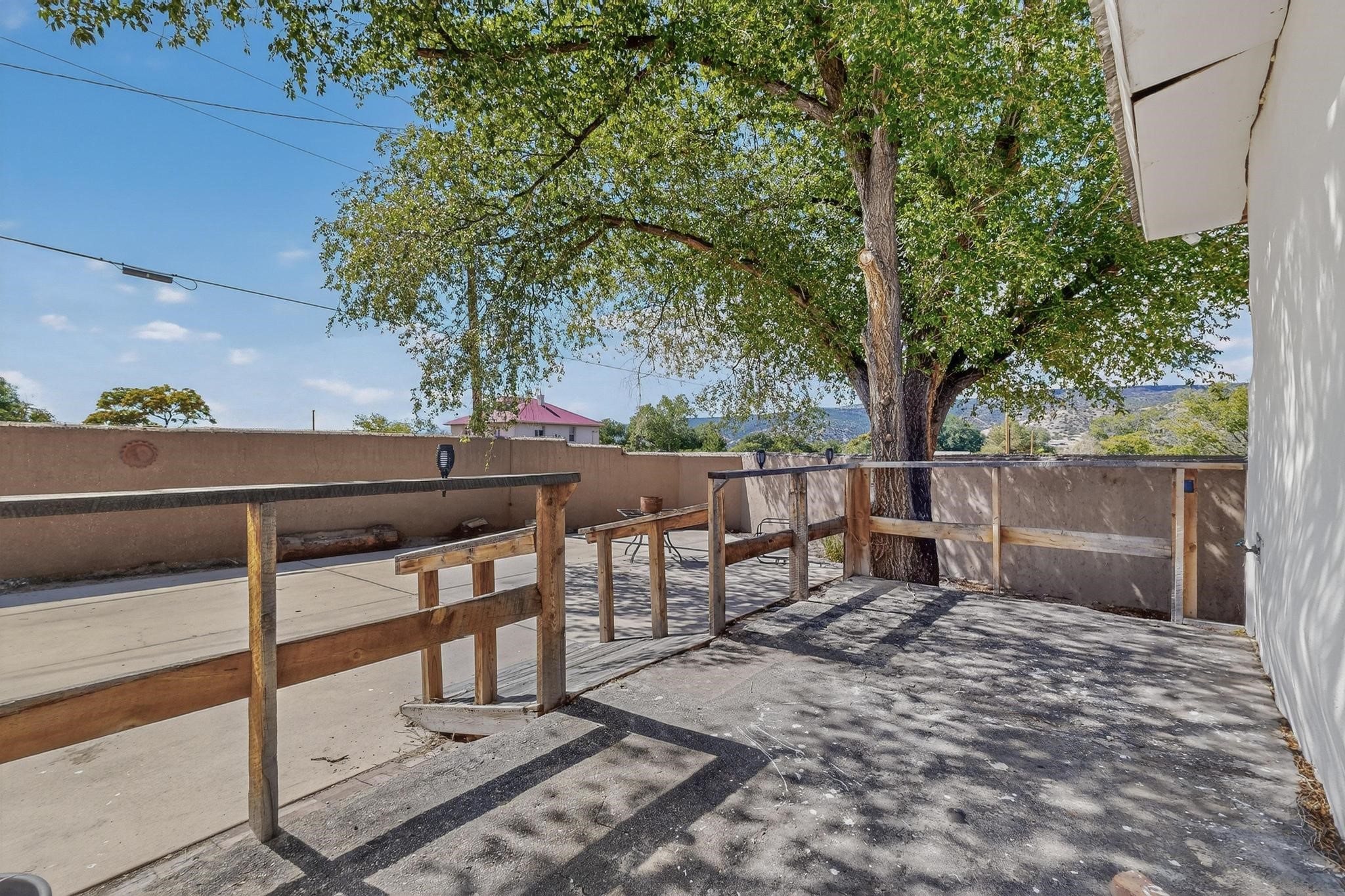 Historic Adobe Charm, home and workshop studio. The original 2950 sq ft. Adobe was built in 1910 as a community dance hall. The walls are 2' thick adobe with the ceiling height of 12'. The tin roof and tin ceiling were delivered on the old Chile line Railroad. This unique adobe building in Northern New Mexico has a rich history, having served various purposes over the years. From a Dancehall and a rollerskating rink in the 1950s to a pub in the 1960s and 1980s it has seen it all. More recently, it housed a custom cabinet shop with a show room, and then a winery. Over the past century, additional rooms have been added increasing the livable area to 5427 ft.. As well as an Adobe wall enclosed patio of 1650 ft. This home could be used as a live workspace with plenty of room to spread out. Located just east of the Rio Grande and east of the Black Mesa with its many petroglyphs, bountiful orchards, and thriving Apple production. It's amazing to think about all the stories these walls could tell, and I'm sure the new owners will be ready to make their own history here.