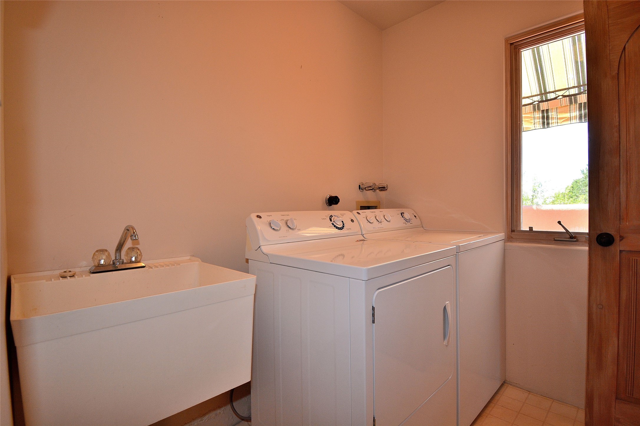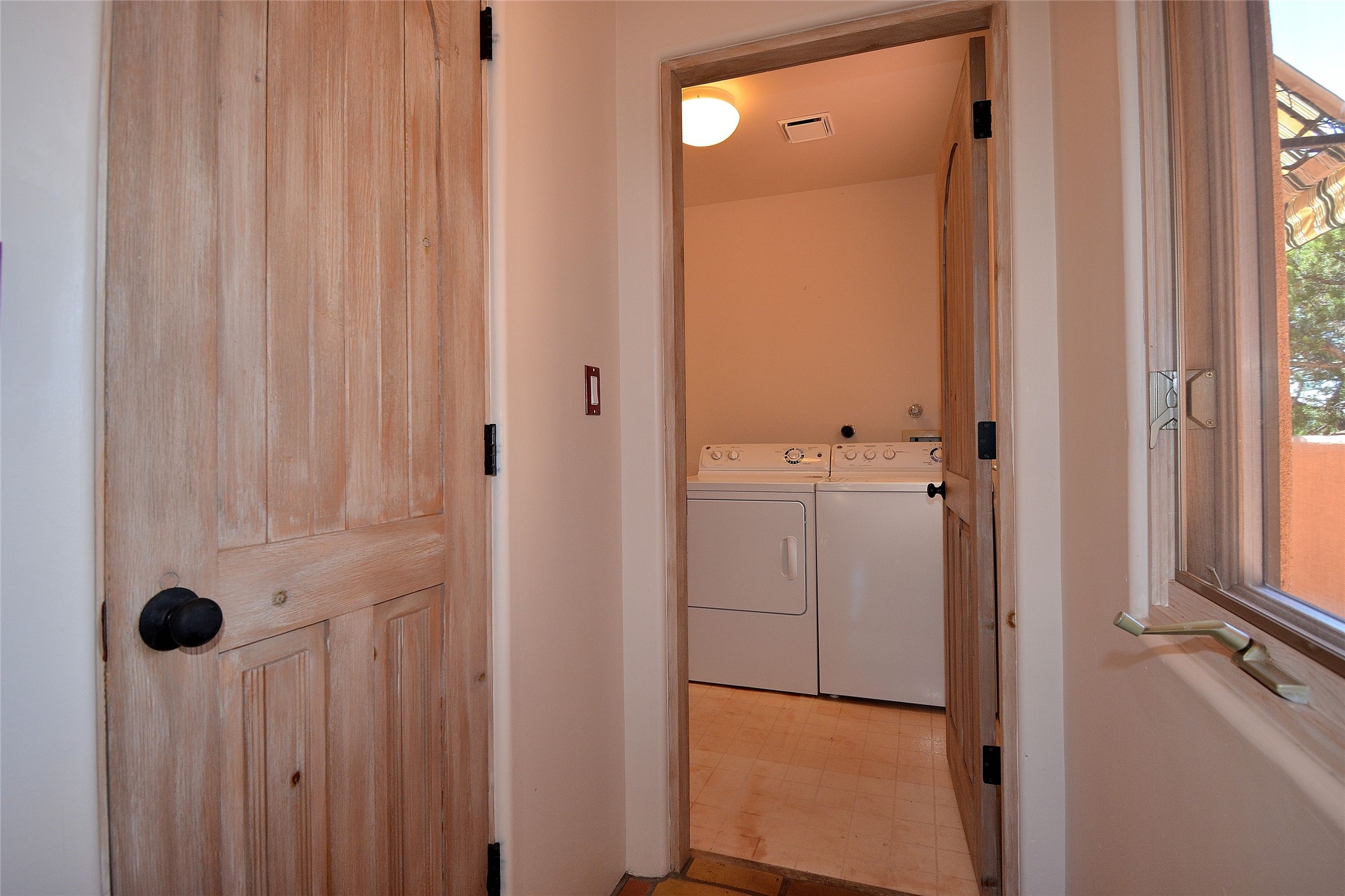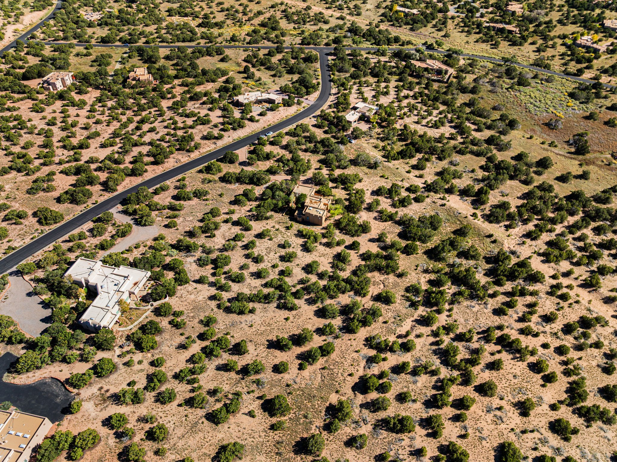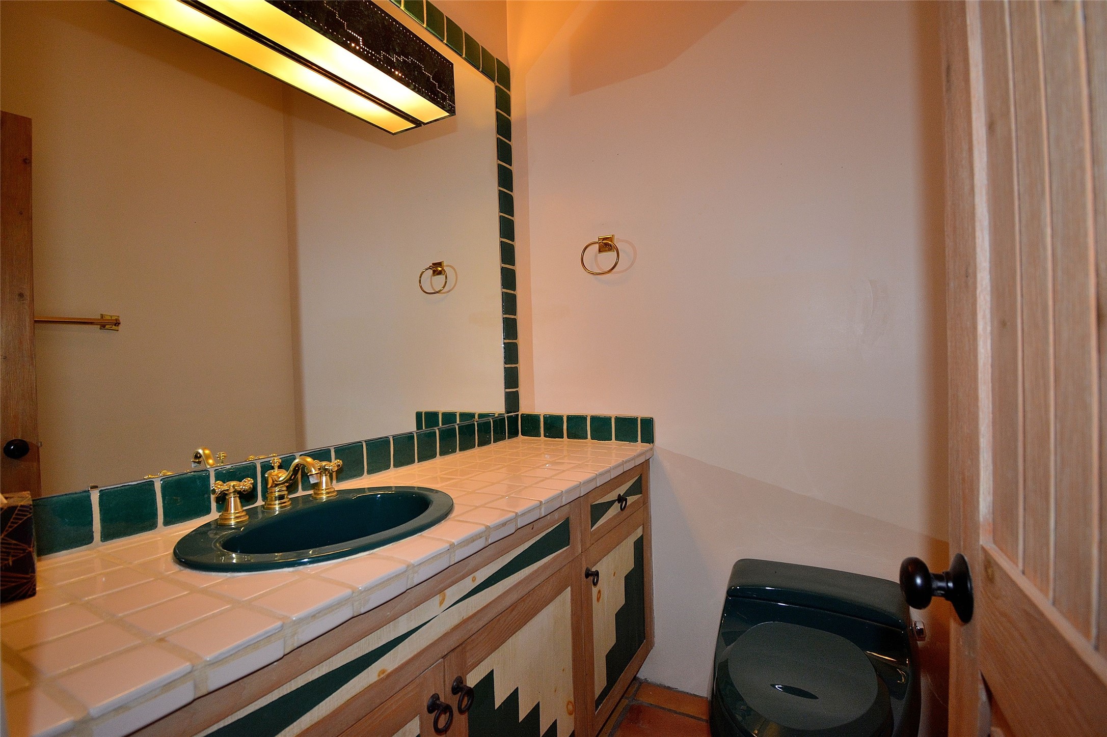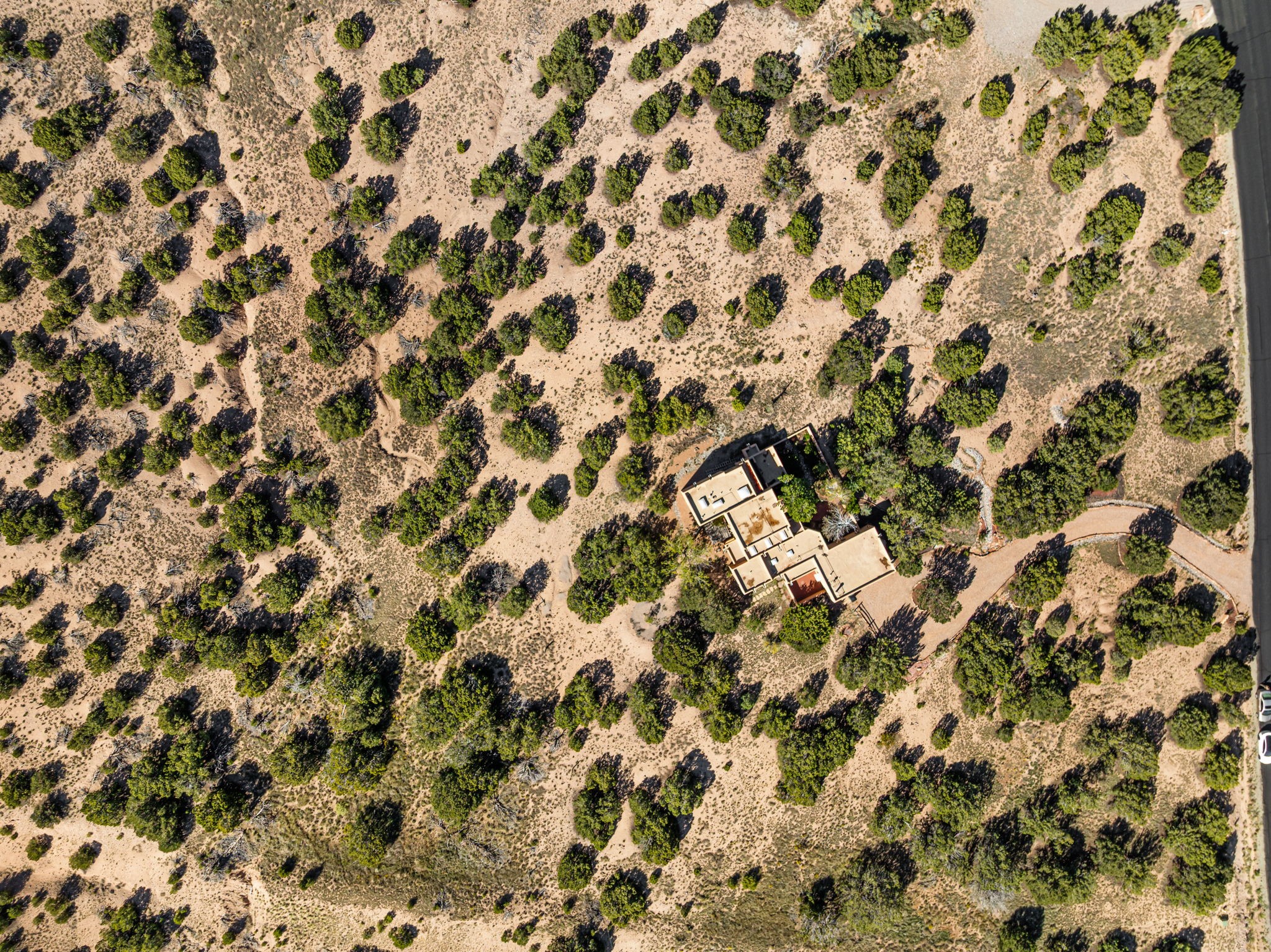 Nestled on two acres dotted with pion and juniper, this inviting Santa Fe-style home blends traditional charm with modern comforts. A gravel driveway leads to a graceful walkway, which in turn leads to a beautifully landscaped, enclosed front yard, The house features plastered walls, and the ground-level floors are adorned with traditional Saltillo tiles, except for the guest bedroom, which has carpet and an en-suite bathroom. The living and dining rooms feature soaring ceilings with vigas. A gas fireplace in the living room adds ambiance during cold winter nights.The kitchen, featuring skylights, granite countertops, and a gas cooktop, microwave, oven, and fridge/freezer, opens to a breakfast nook on one side, complete with its own private patio. Continuing from the breakfast nook, you enter the laundry and then the garage. On the other side of the kitchen is the dining room. The main level also features a second guest room or den with a nearby half-bath. The downstairs has in-floor radiant heat.Upstairs, the spacious main bedroom offers vigas, a second gas fireplace, radiant baseboard heat, and mountain views on one side and a deck on the other. The adjoining bath offers dual sinks, a Jacuzzi-style tub, a shower with seating, and a walk-in cedar closet.A new septic tank was installed in late November 2025With an alarm system and thoughtful storage throughout, this home offers a blend of traditional Santa Fe style and practicality in a serene setting, just a couple of minutes drive to 599 and access to Santa Fe (approx.10 minutes) or to Los Alamos, the Santa Fe airport, and Albuquerque.Adjacent to the subdivision is the La Tierra open space of almost 1500 acres, offering 25 miles of walking trails.