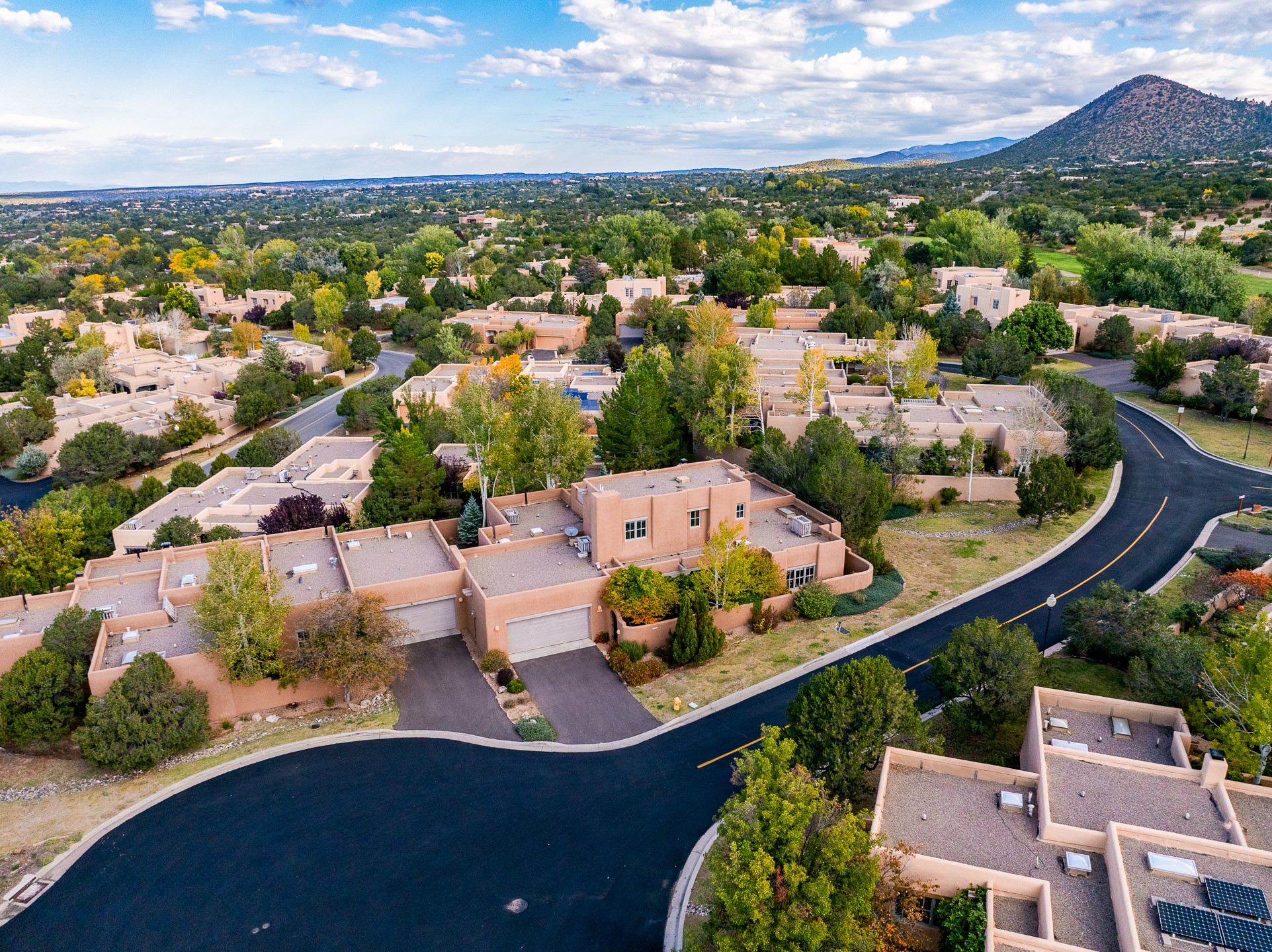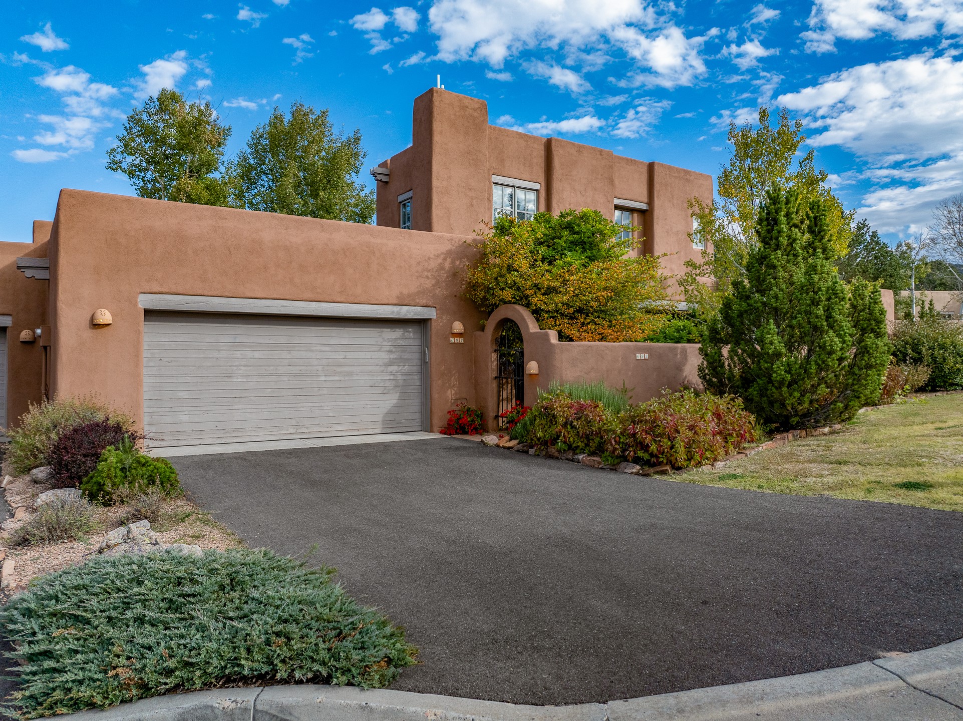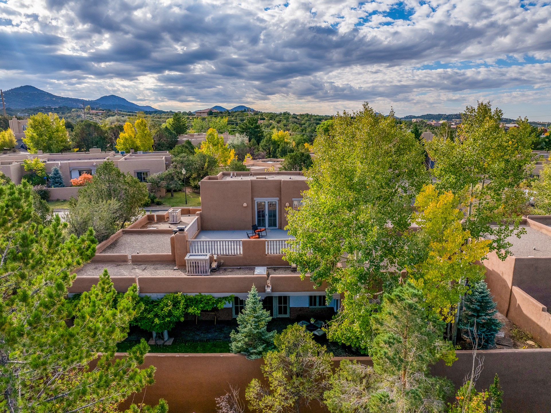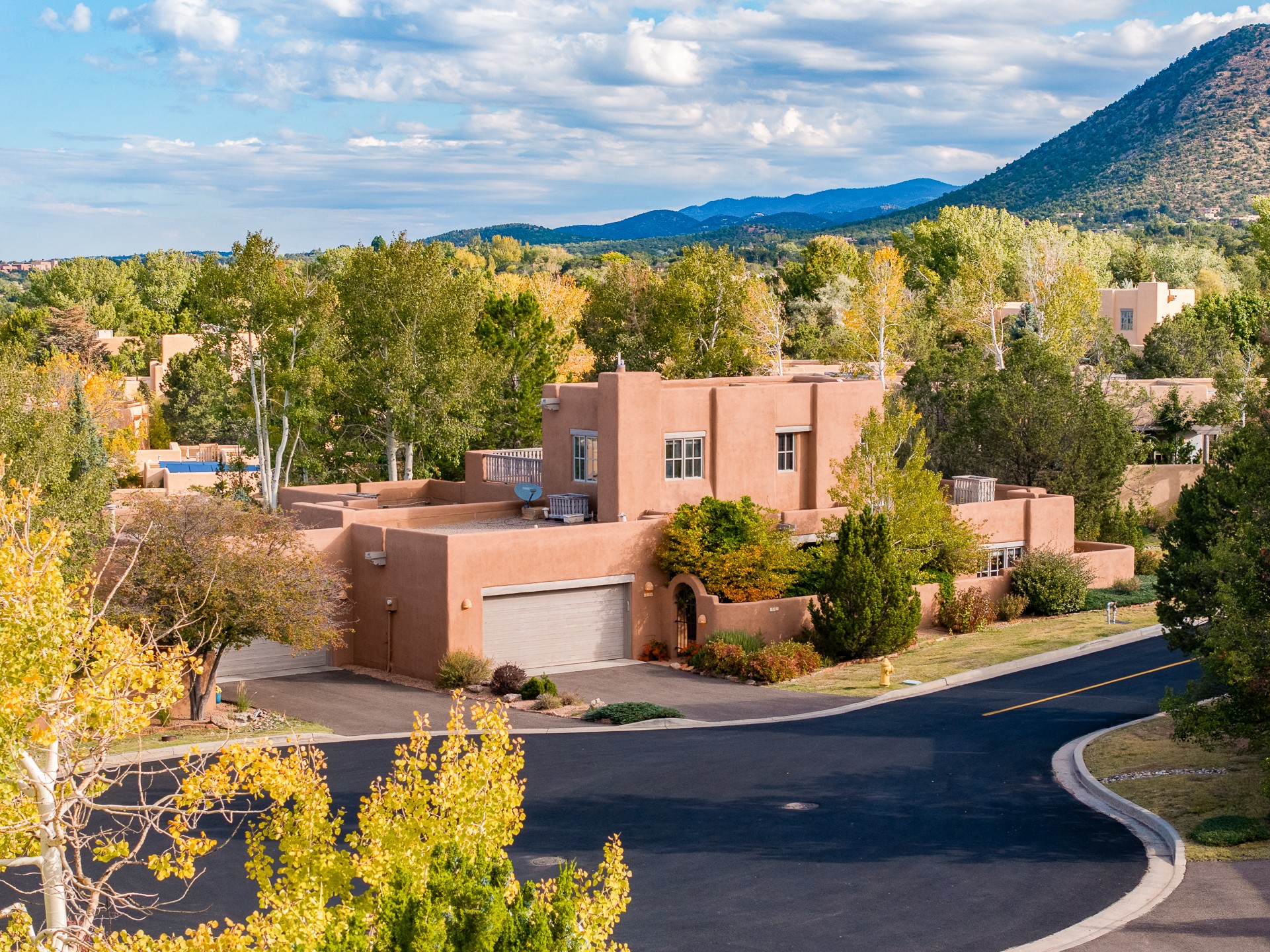 This beautifully updated Pion floor plan condo located in Pion Ridge at Quail Run offers exceptional comfort, design, and access to resort-style amenities. The home features two full primary suites on the main level, plus a third bedroom or office, with a fourth bedroom upstairs--perfect for guests or a second workspace. Nearly all daily living can be enjoyed on the main floor. The renovated kitchen showcases custom cabinetry, a new center island, Neolith countertops, and premium Sub-Zero and Wolf appliances. Bathrooms have been tastefully updated, including a luxurious primary bath with a rain shower and hand-held sprays. Both primary closets include custom built-ins and generous storage. Additional highlights include diamond plaster walls, enhanced art lighting, ductless A/C, and refreshed landscaping. Residents enjoy exclusive access to Quail Run's resort-style amenities, including a clubhouse with dining, fitness center, golf course, tennis courts, swimming pool, and 24-hour security. The HOA covers exterior maintenance, roof, and more, offering peace of mind and effortless living. Situated on a quiet cul-de-sac, this move-in-ready home embodies the best of Santa Fe comfort and style. Imagine the Possibilities and schedule the showing today!