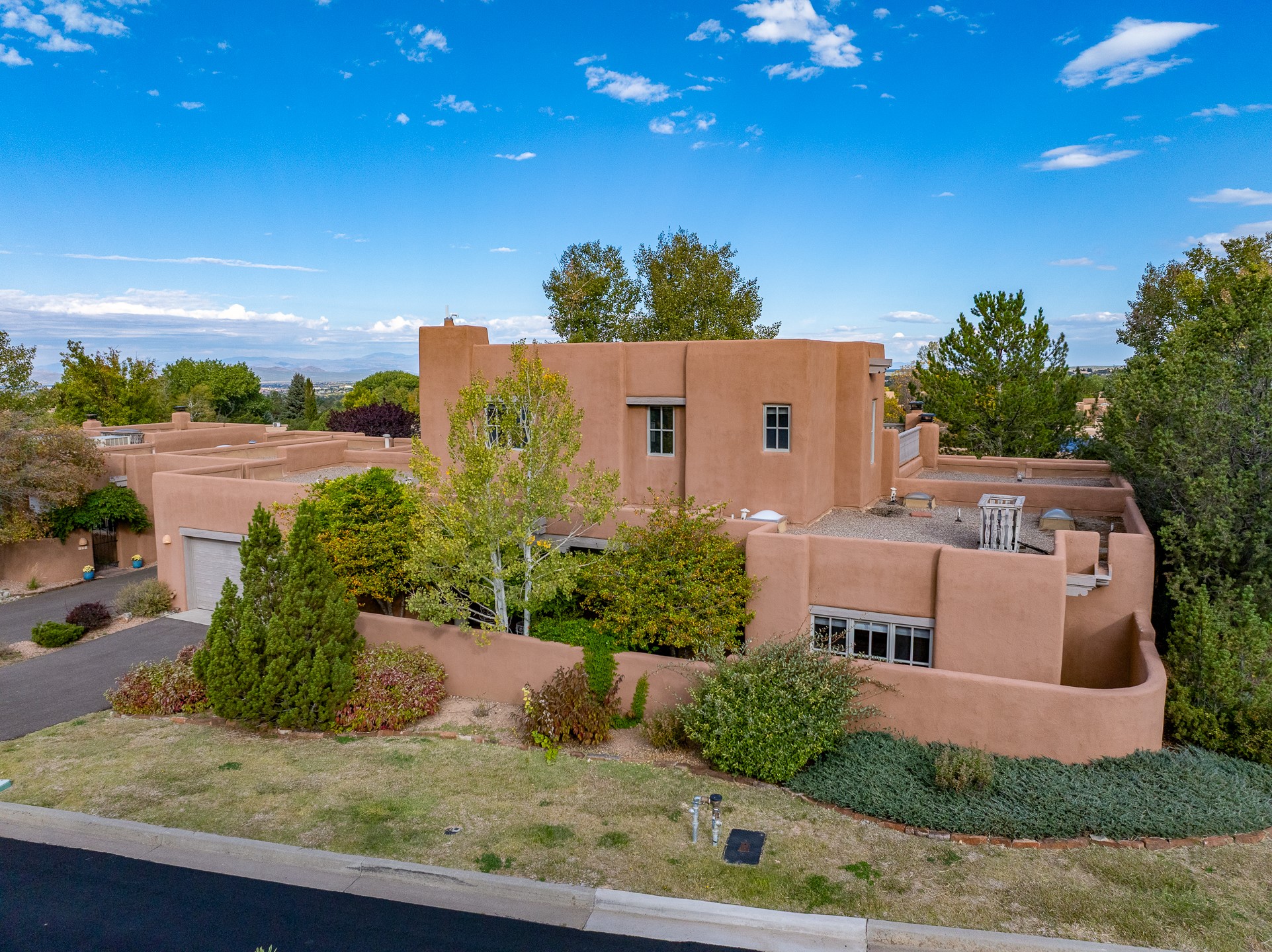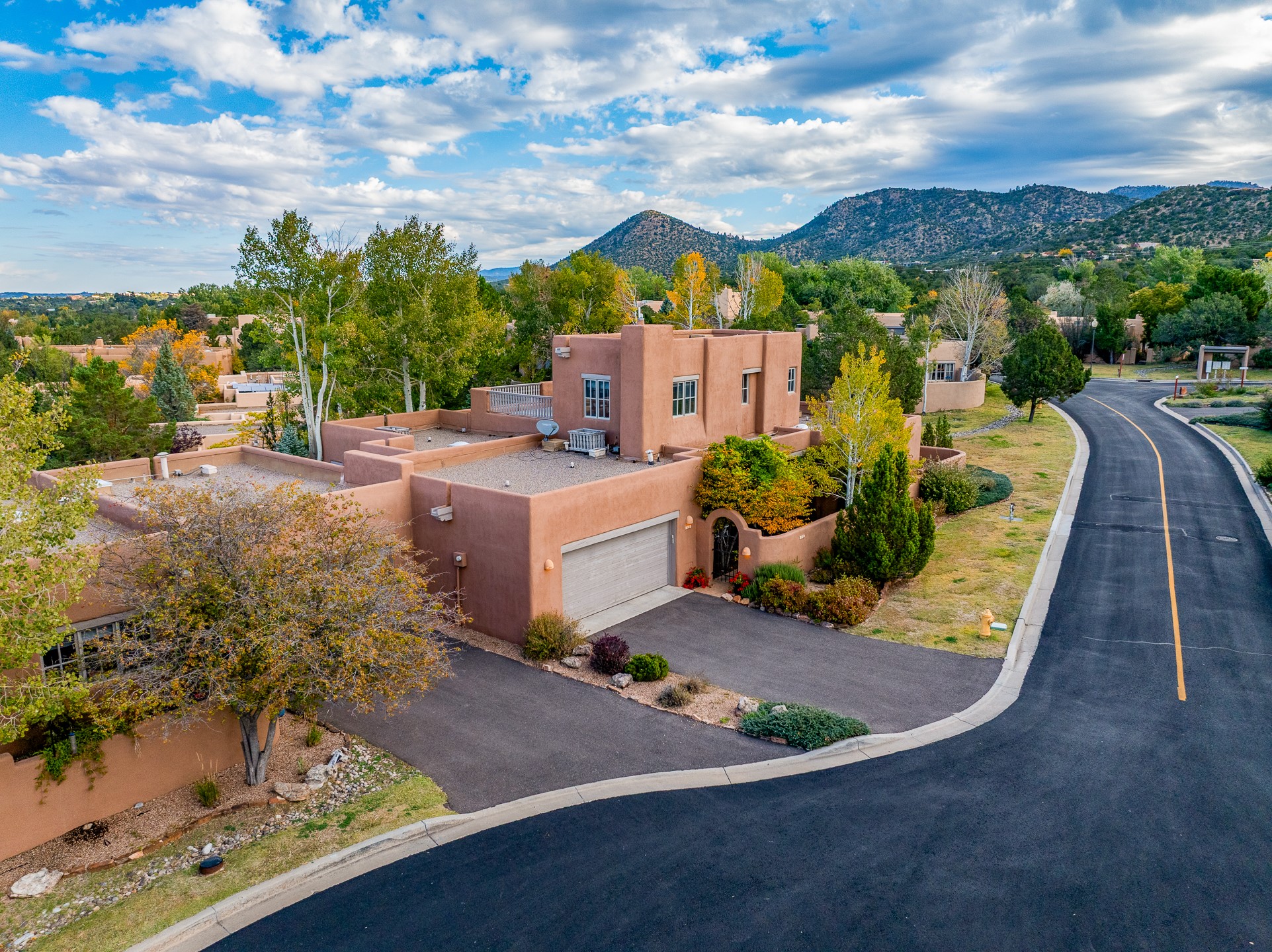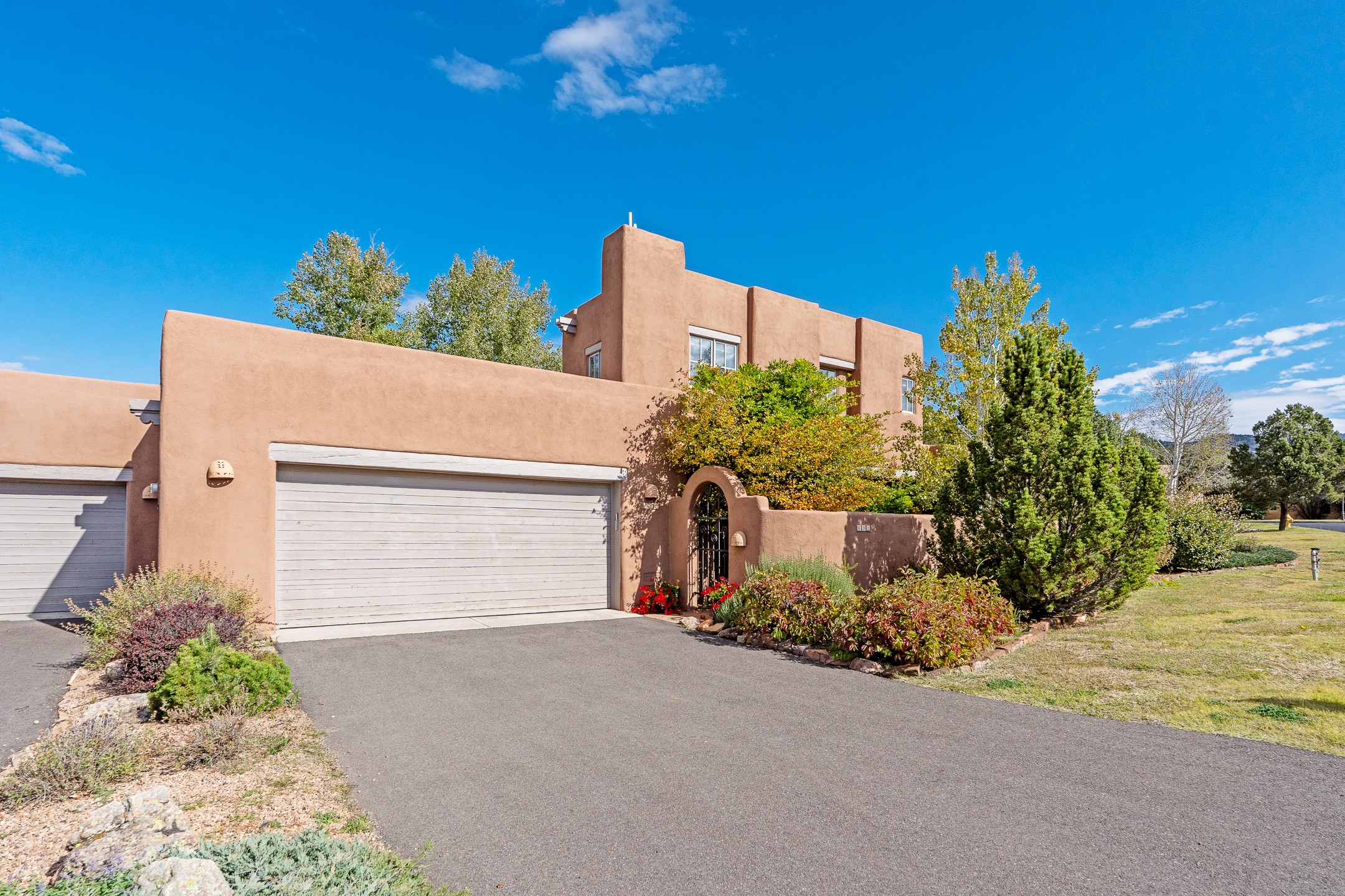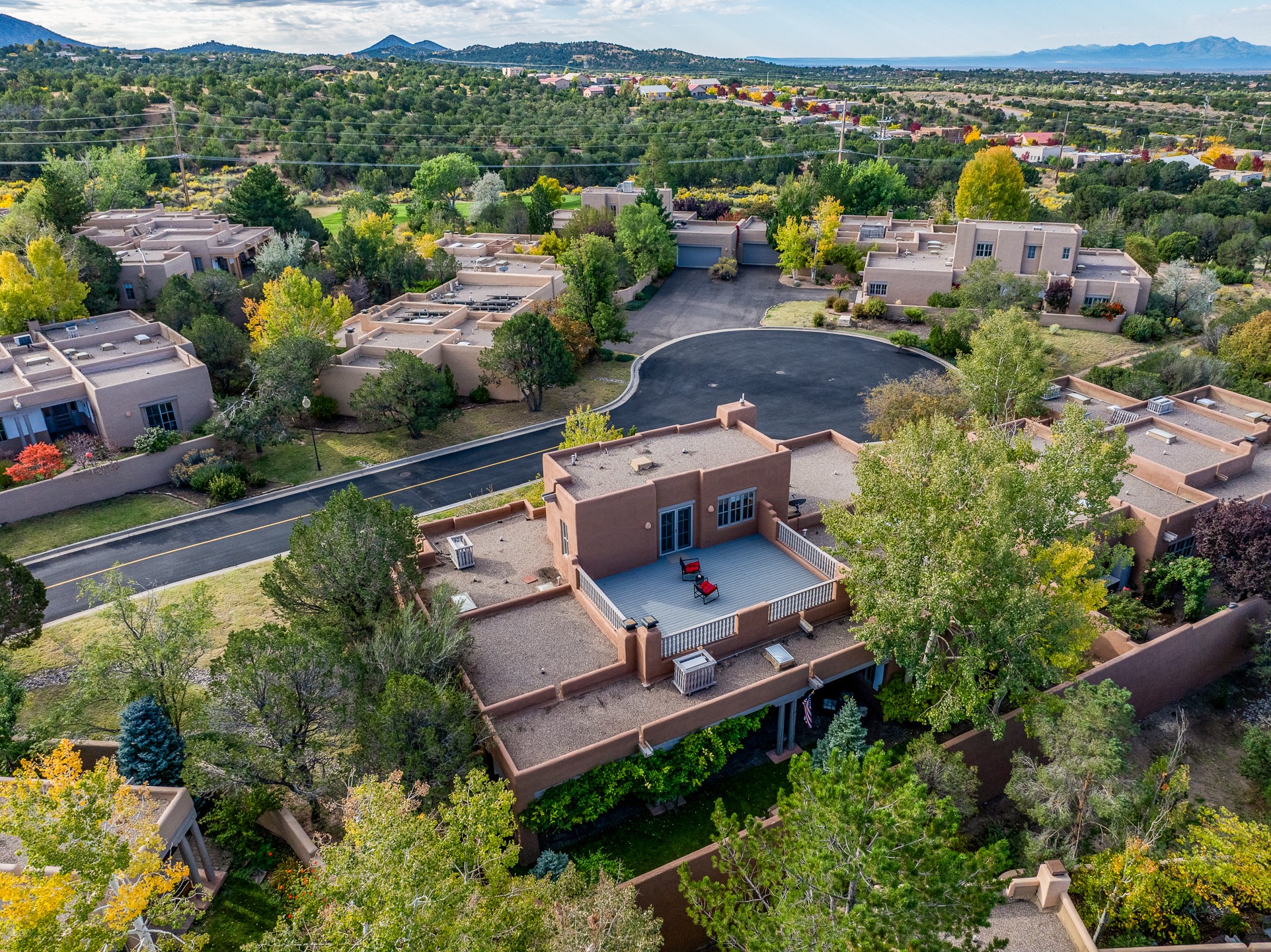 This beautifully updated Pion floor plan condo located in Pion Ridge at Quail Run offers exceptional comfort, design, and access to resort-style amenities. The home features two full primary suites on the main level, plus a third bedroom or office, with a fourth bedroom upstairs--perfect for guests or a second workspace. Nearly all daily living can be enjoyed on the main floor. The renovated kitchen showcases custom cabinetry, a new center island, Neolith countertops, and premium Sub-Zero and Wolf appliances. Bathrooms have been tastefully updated, including a luxurious primary bath with a rain shower and hand-held sprays. Both primary closets include custom built-ins and generous storage. Additional highlights include diamond plaster walls, enhanced art lighting, ductless A/C, and refreshed landscaping. Residents enjoy exclusive access to Quail Run's resort-style amenities, including a clubhouse with dining, fitness center, golf course, tennis courts, swimming pool, and 24-hour security. The HOA covers exterior maintenance, roof, and more, offering peace of mind and effortless living. Situated on a quiet cul-de-sac, this move-in-ready home embodies the best of Santa Fe comfort and style. Imagine the Possibilities and schedule the showing today!