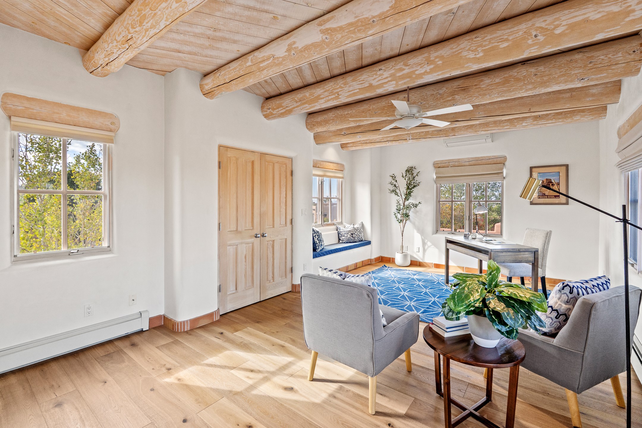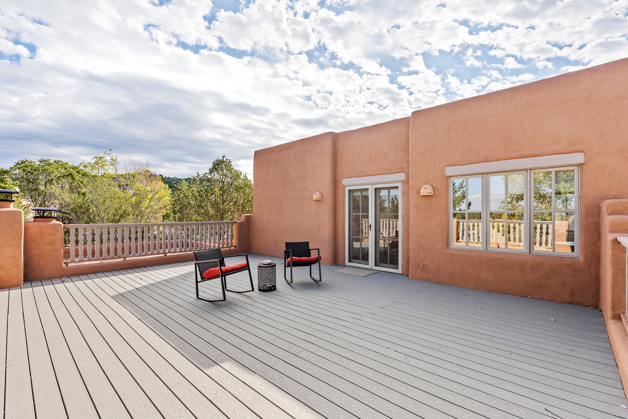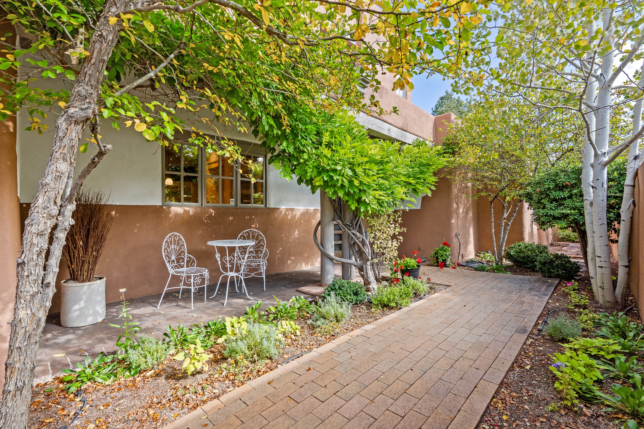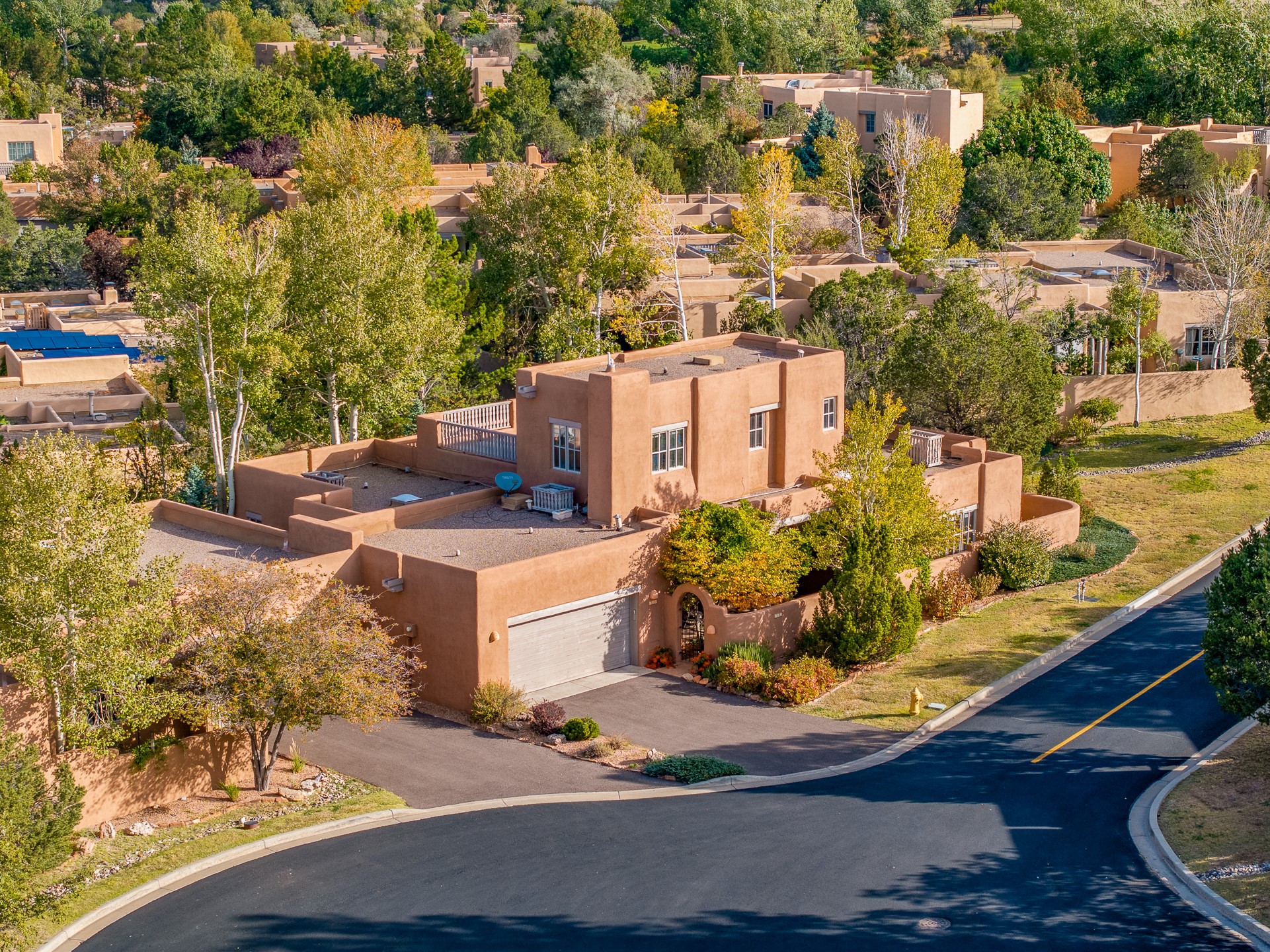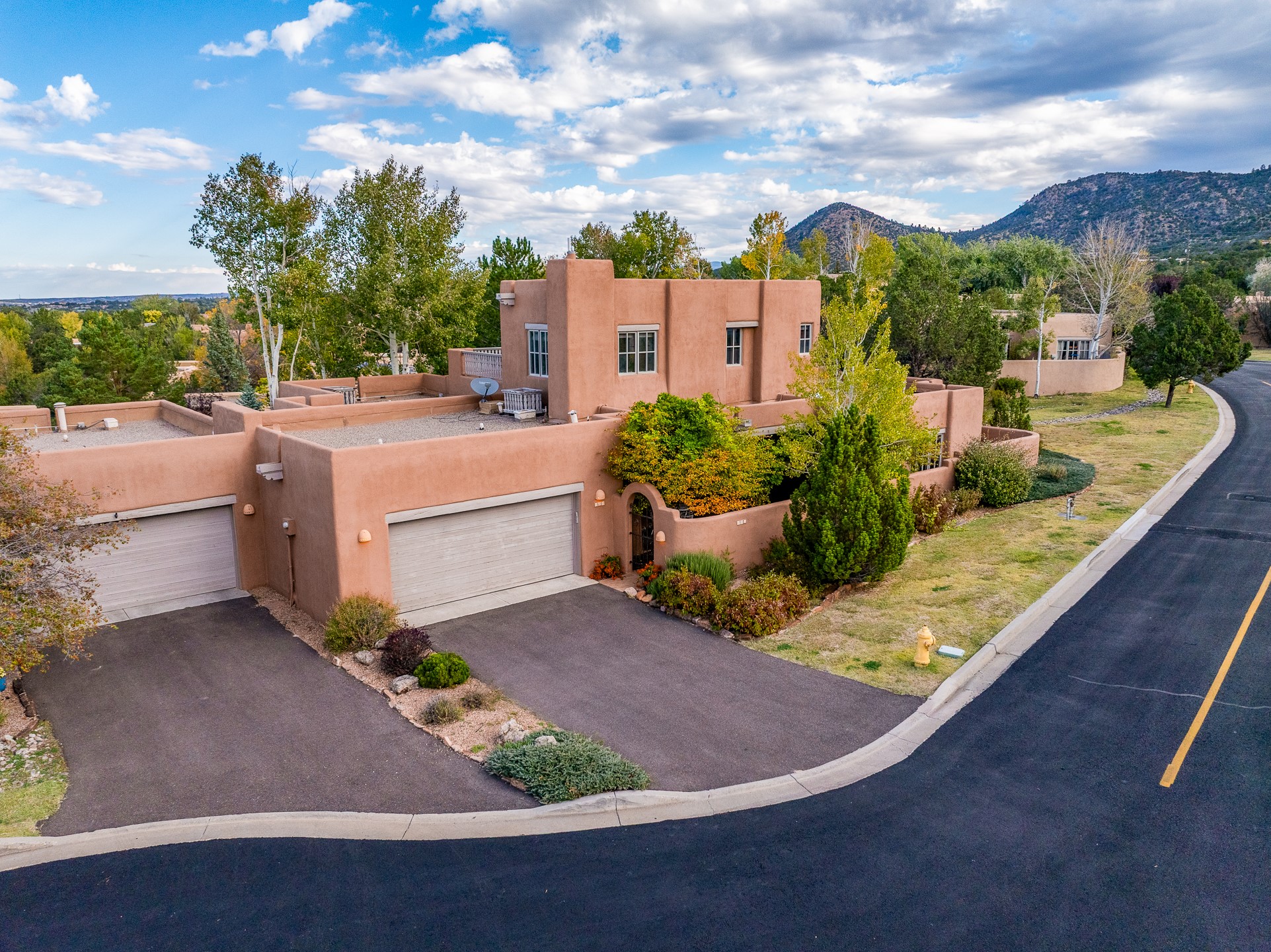 This beautifully updated Pion floor plan condo located in Pion Ridge at Quail Run offers exceptional comfort, design, and access to resort-style amenities. The home features two full primary suites on the main level, plus a third bedroom or office, with a fourth bedroom upstairs--perfect for guests or a second workspace. Nearly all daily living can be enjoyed on the main floor. The renovated kitchen showcases custom cabinetry, a new center island, Neolith countertops, and premium Sub-Zero and Wolf appliances. Bathrooms have been tastefully updated, including a luxurious primary bath with a rain shower and hand-held sprays. Both primary closets include custom built-ins and generous storage. Additional highlights include diamond plaster walls, enhanced art lighting, ductless A/C, and refreshed landscaping. Residents enjoy exclusive access to Quail Run's resort-style amenities, including a clubhouse with dining, fitness center, golf course, tennis courts, swimming pool, and 24-hour security. The HOA covers exterior maintenance, roof, and more, offering peace of mind and effortless living. Situated on a quiet cul-de-sac, this move-in-ready home embodies the best of Santa Fe comfort and style. Imagine the Possibilities and schedule the showing today!
