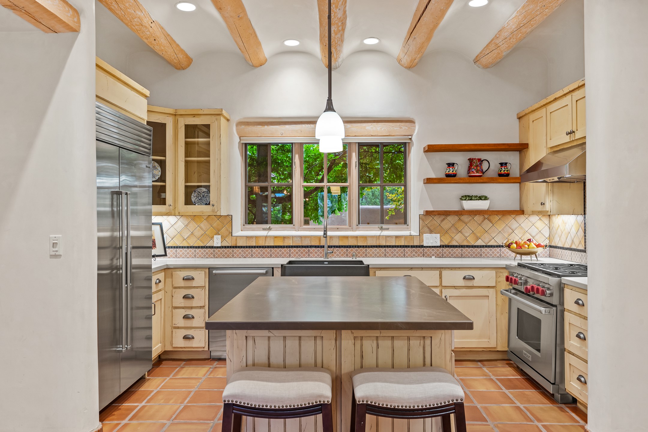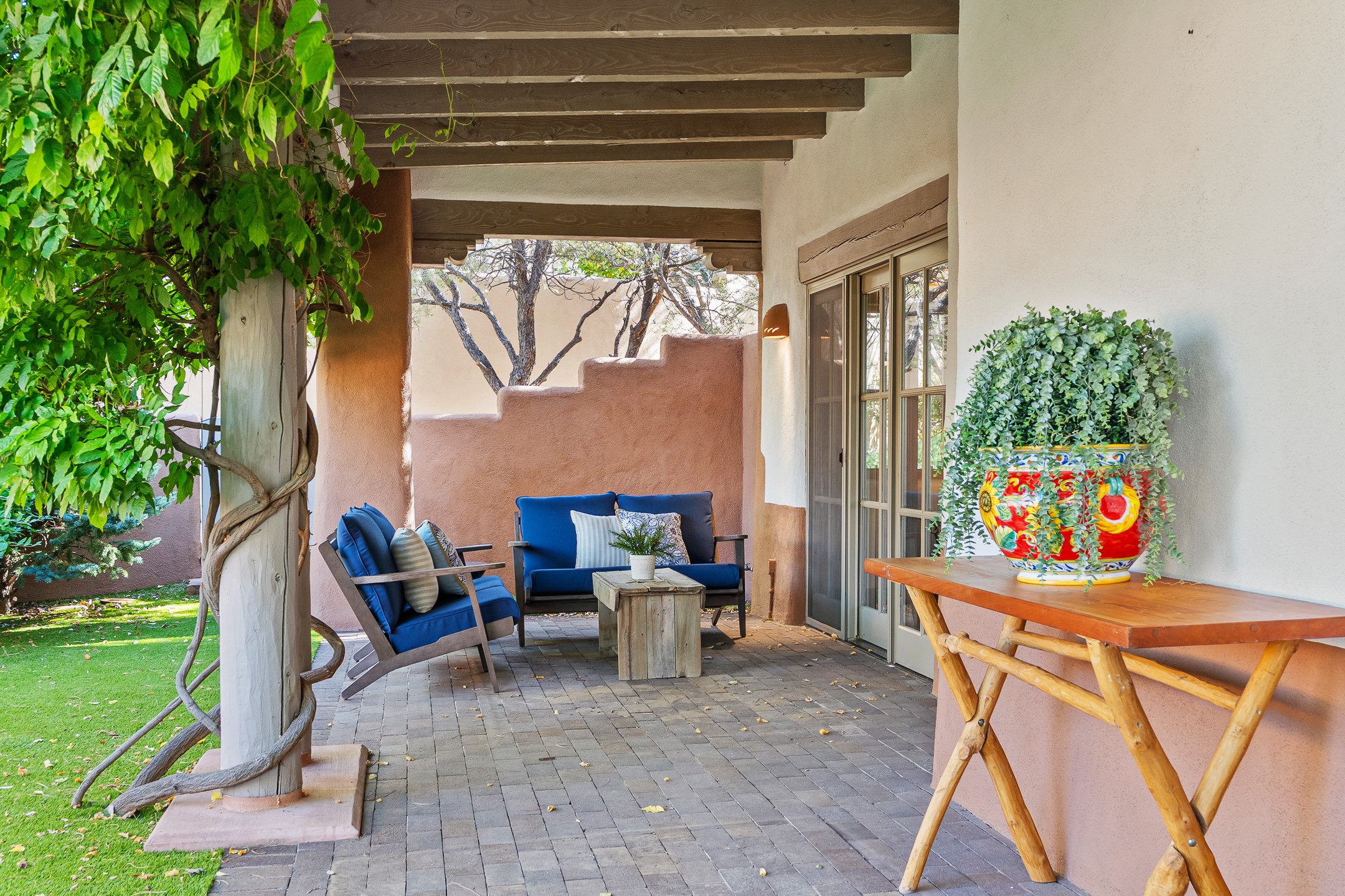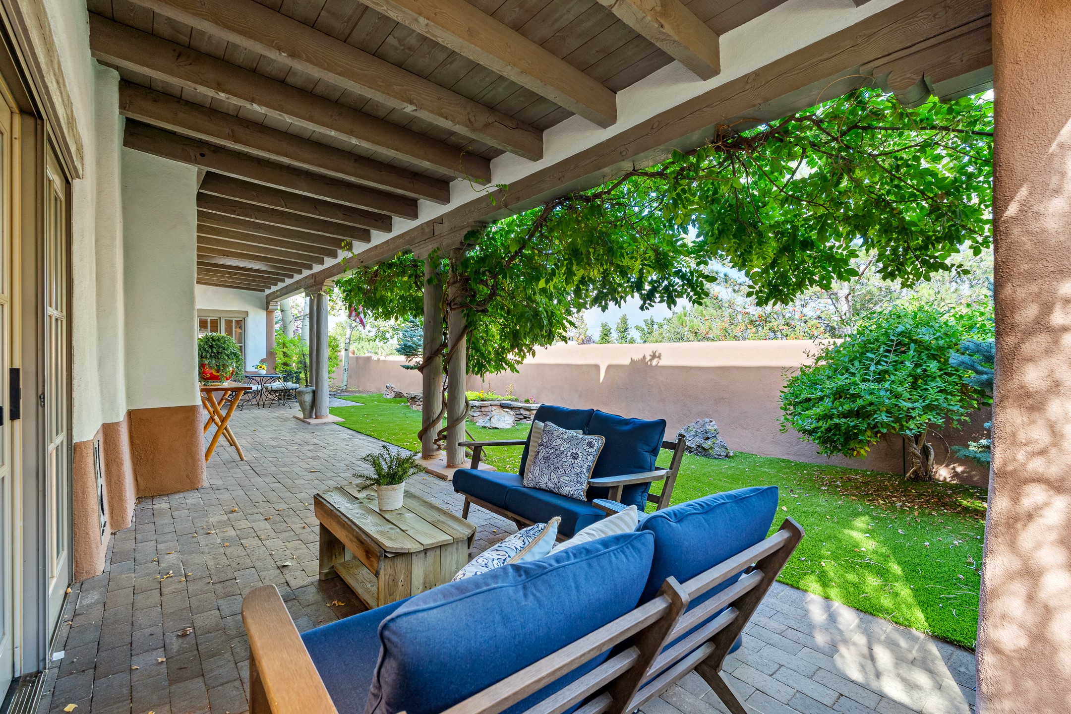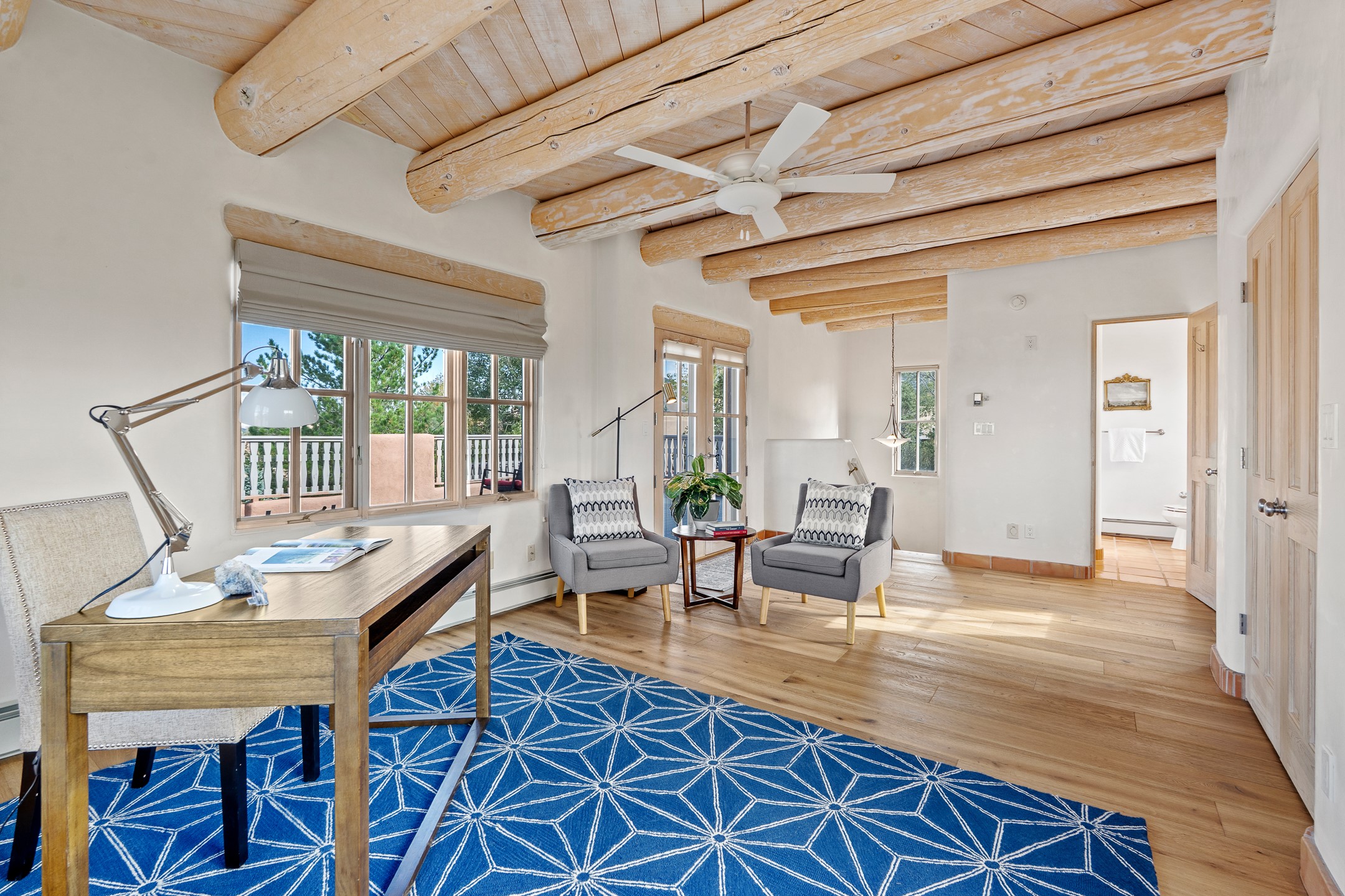 This beautifully updated Pion floor plan condo located in Pion Ridge at Quail Run offers exceptional comfort, design, and access to resort-style amenities. The home features two full primary suites on the main level, plus a third bedroom or office, with a fourth bedroom upstairs--perfect for guests or a second workspace. Nearly all daily living can be enjoyed on the main floor. The renovated kitchen showcases custom cabinetry, a new center island, Neolith countertops, and premium Sub-Zero and Wolf appliances. Bathrooms have been tastefully updated, including a luxurious primary bath with a rain shower and hand-held sprays. Both primary closets include custom built-ins and generous storage. Additional highlights include diamond plaster walls, enhanced art lighting, ductless A/C, and refreshed landscaping. Residents enjoy exclusive access to Quail Run's resort-style amenities, including a clubhouse with dining, fitness center, golf course, tennis courts, swimming pool, and 24-hour security. The HOA covers exterior maintenance, roof, and more, offering peace of mind and effortless living. Situated on a quiet cul-de-sac, this move-in-ready home embodies the best of Santa Fe comfort and style. Imagine the Possibilities and schedule the showing today!