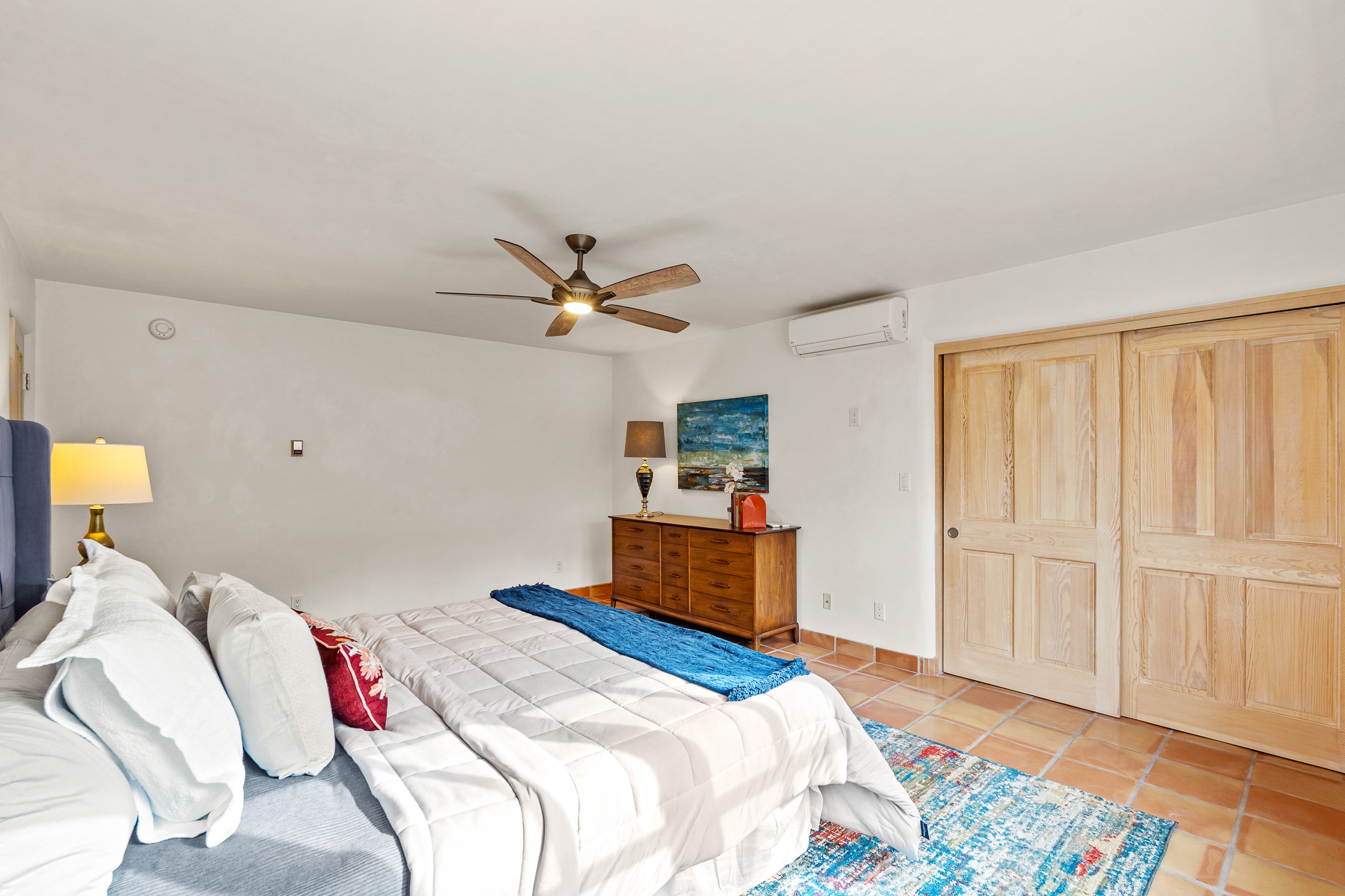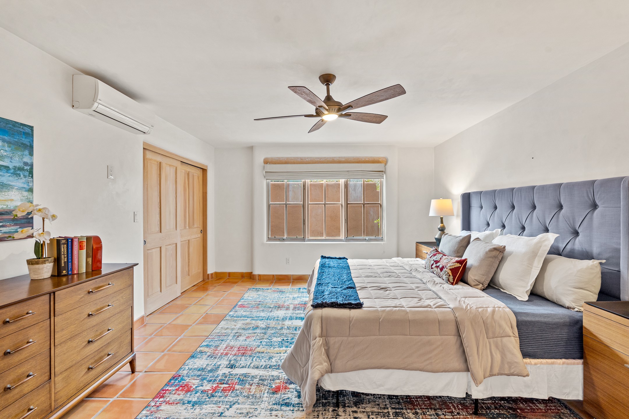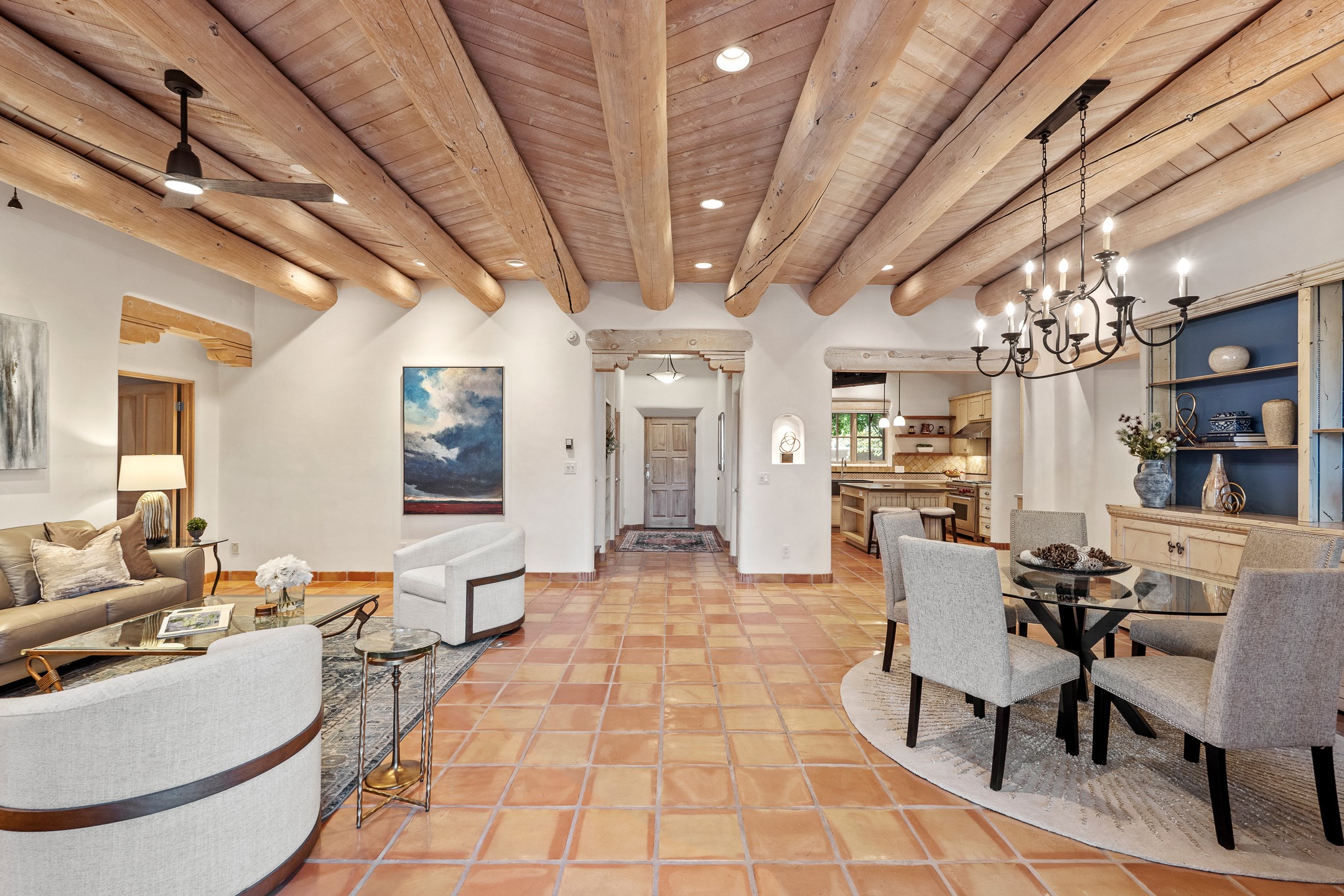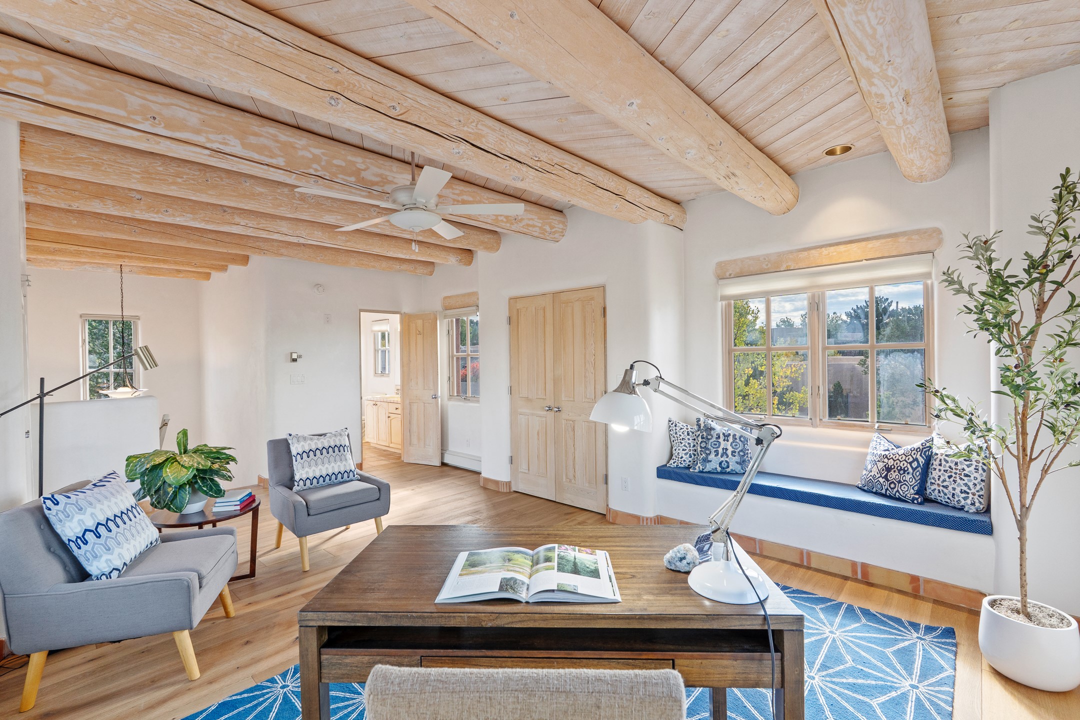 This beautifully updated Pion floor plan condo located in Pion Ridge at Quail Run offers exceptional comfort, design, and access to resort-style amenities. The home features two full primary suites on the main level, plus a third bedroom or office, with a fourth bedroom upstairs--perfect for guests or a second workspace. Nearly all daily living can be enjoyed on the main floor. The renovated kitchen showcases custom cabinetry, a new center island, Neolith countertops, and premium Sub-Zero and Wolf appliances. Bathrooms have been tastefully updated, including a luxurious primary bath with a rain shower and hand-held sprays. Both primary closets include custom built-ins and generous storage. Additional highlights include diamond plaster walls, enhanced art lighting, ductless A/C, and refreshed landscaping. Residents enjoy exclusive access to Quail Run's resort-style amenities, including a clubhouse with dining, fitness center, golf course, tennis courts, swimming pool, and 24-hour security. The HOA covers exterior maintenance, roof, and more, offering peace of mind and effortless living. Situated on a quiet cul-de-sac, this move-in-ready home embodies the best of Santa Fe comfort and style. Imagine the Possibilities and schedule the showing today!
