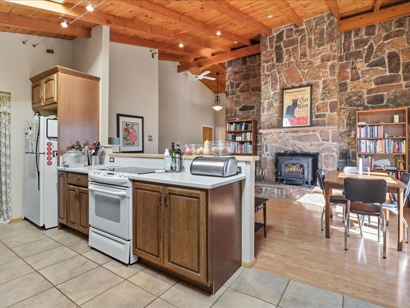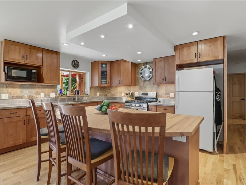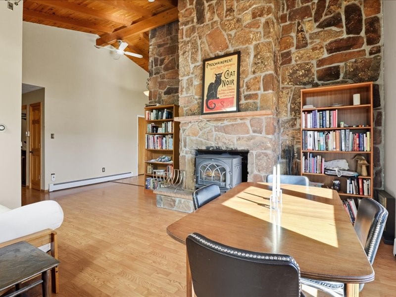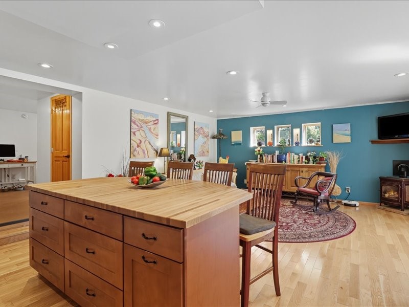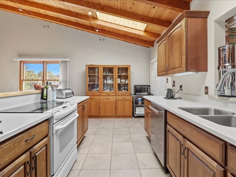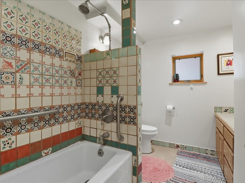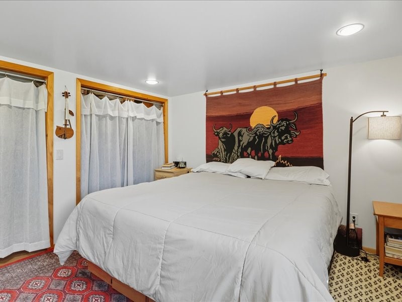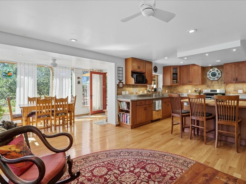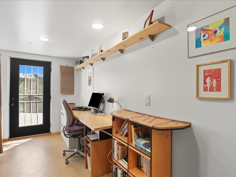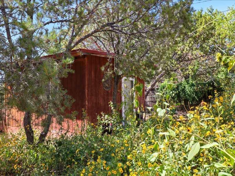 Welcome to this exceptional Santa Fe property, where classic brick construction meets timeless character and thoughtful updates. With 3242 sq ft of well-designed space, the property offers two connected but separate living quarters plus a charming studio, ideal for multigenerational living, rental income, or guest accommodations. Set on a lush lot, this is a true garden sanctuary, boasting a pitched metal roof, inviting brick exterior, fruit trees, greenhouse, water rights, and both city and well water. Multiple porches and patios extend the living space outdoors, perfect for enjoying Santa Fe's blue skies, and endless sunsets. A grey water system nourishes the gardens, while solar panels add efficiency. The upper 3-bedroom residence offers soaring ceilings with wood beams, recessed lighting, windows framing mountain views, and a striking interior rock wall with wood stove, brings rustic charm. Tile and laminate floors flow throughout. The primary suite features a full bath, while a second bath serves guests. A south-facing porch captures warmth and light.The lower 3-bedroom residence highlights warm wood details, butcher block and steel counters, and new windows. The main suite has a walk-in closet, patio access, and en-suite bath. Multiple heating zones, gas stove, and ceiling fans ensure year-round comfort. Additional highlights include 6 heat zones, rental history, and a flexible design perfect for live/rent or guest accommodations. There is also plenty of land to build an accessory dwelling unit. A separate utility meter enhances rental potential. Completing the property is a detached studio, perfect for an artist studio or private retreat. With its brick exterior, solar power, greenhouse, gardens, fruit trees, patios, hot tub, 2 car garage, ample storage, and mountain views, this home embodies the Santa Fe lifestyle. Whether envisioned as a family compound, income-producing property, or serene retreat, it offers unmatched character, flexibility, and lasting value.