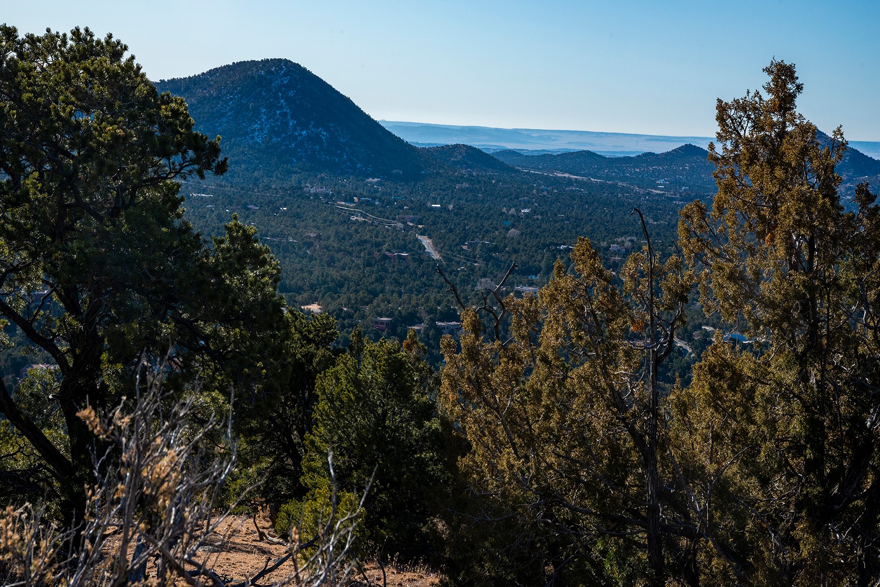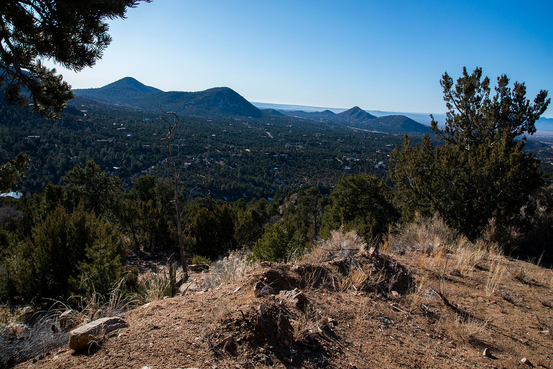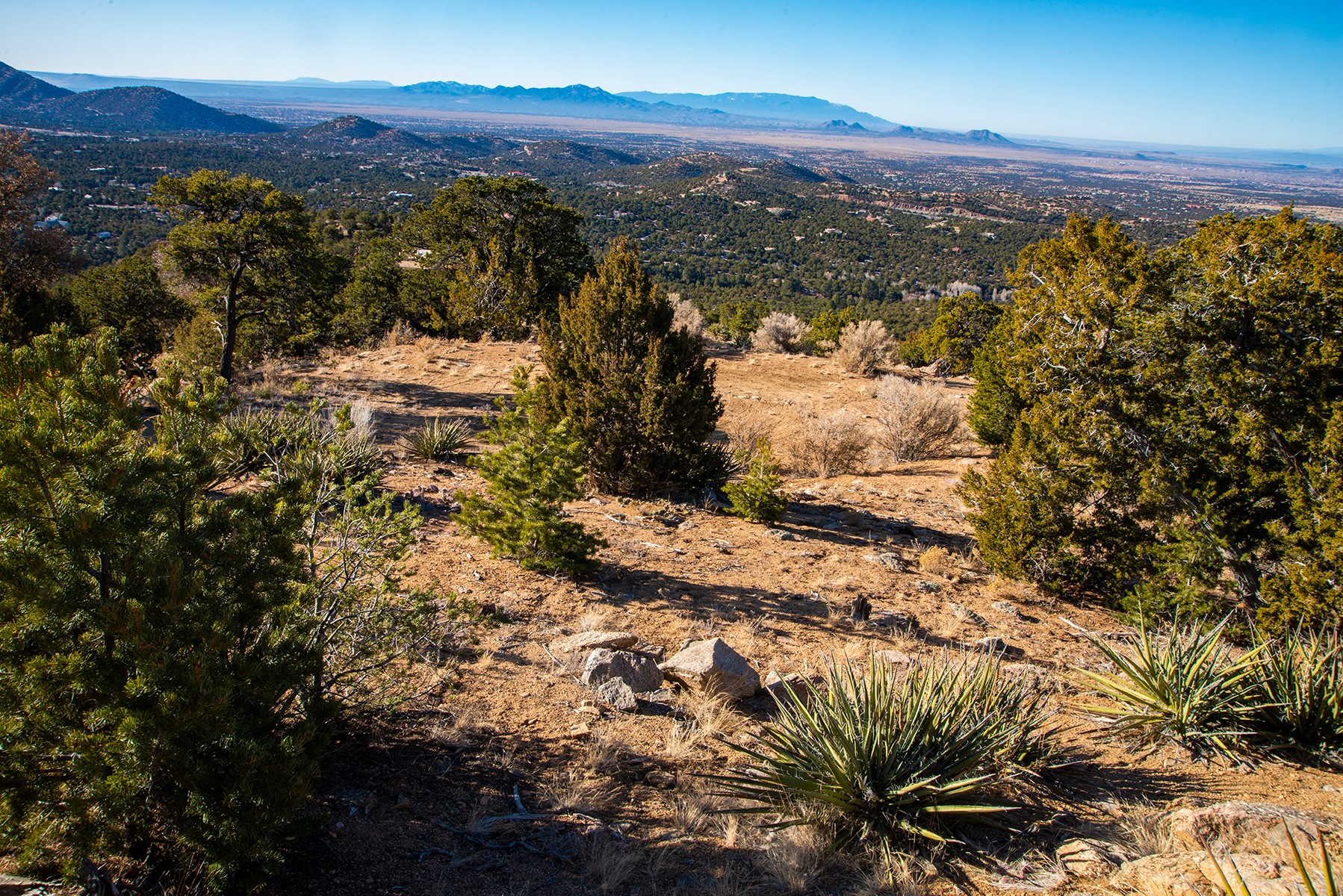 Panoramic views for miles from this elevated property high on the slopes of the Sangre De Cristo mountains. 5 acres on the highest lot on Coyote Mountain Road, with some dirt work done, shared well in place, and electrical transformer. 15 minutes from the Plaza, this can be the site for your top of the world sanctuary. Adjacent 5 acre parcel is for sale (MLS 202340314) for those wanting to combine the properties for more privacy and space. Beyond a locked gate, please make an appointment to see.