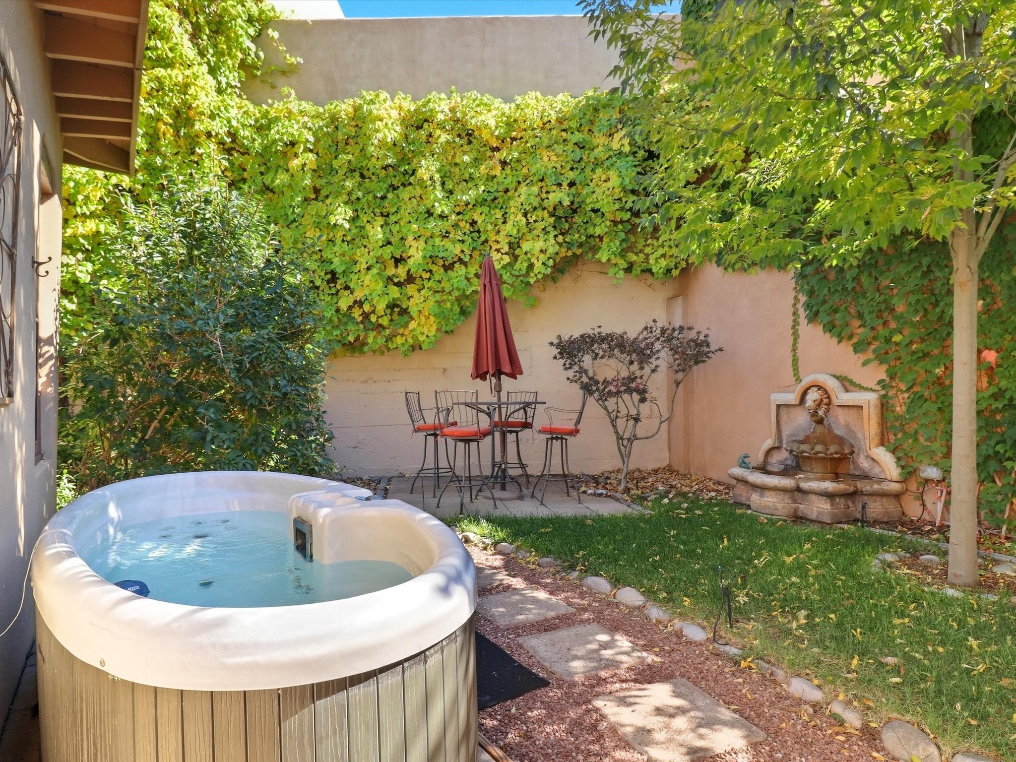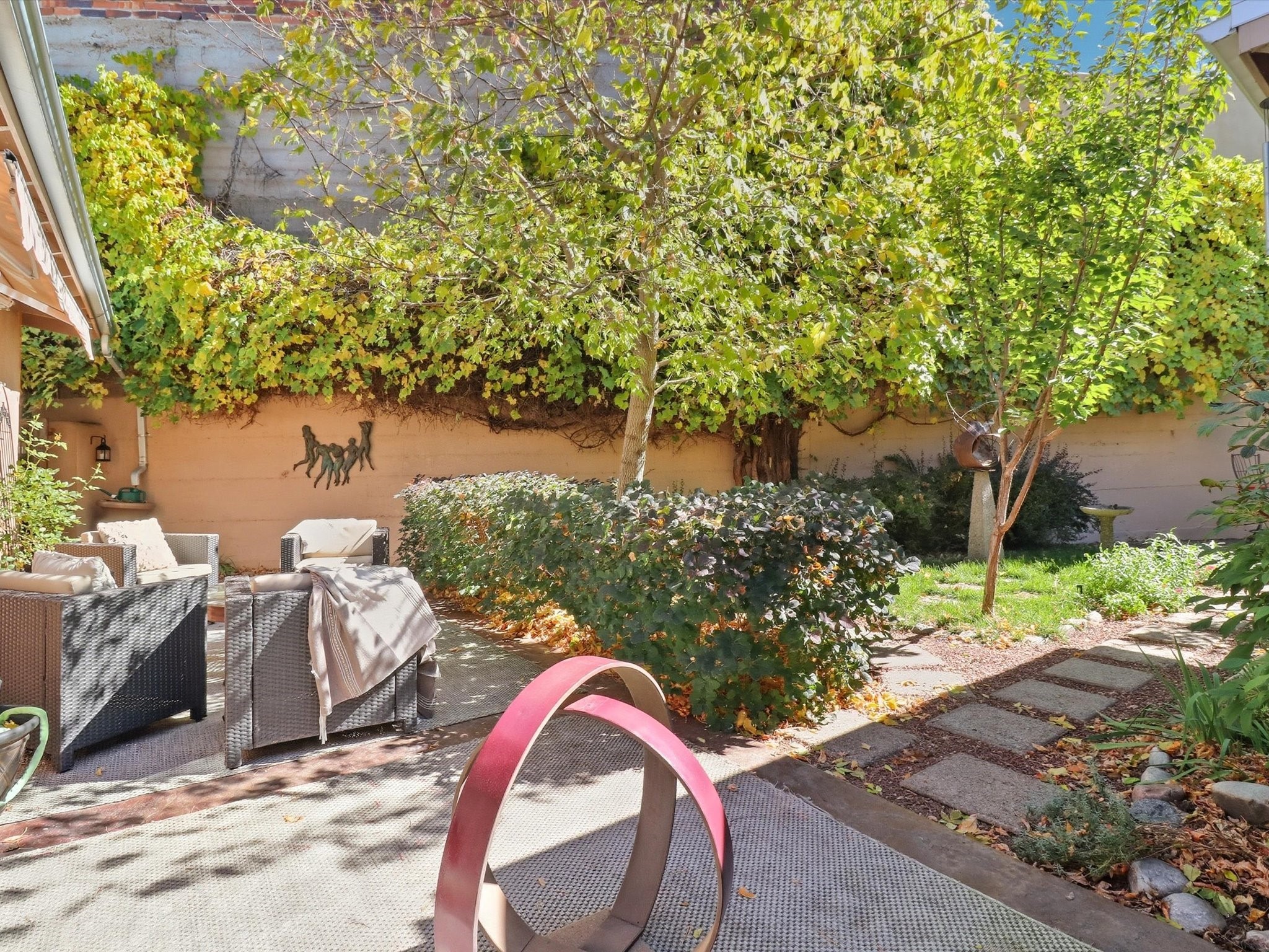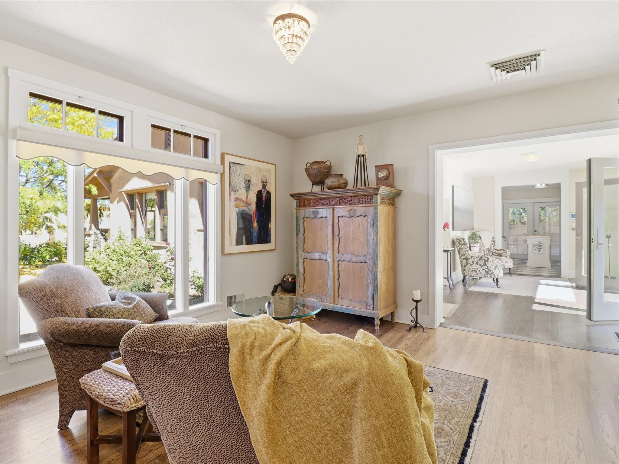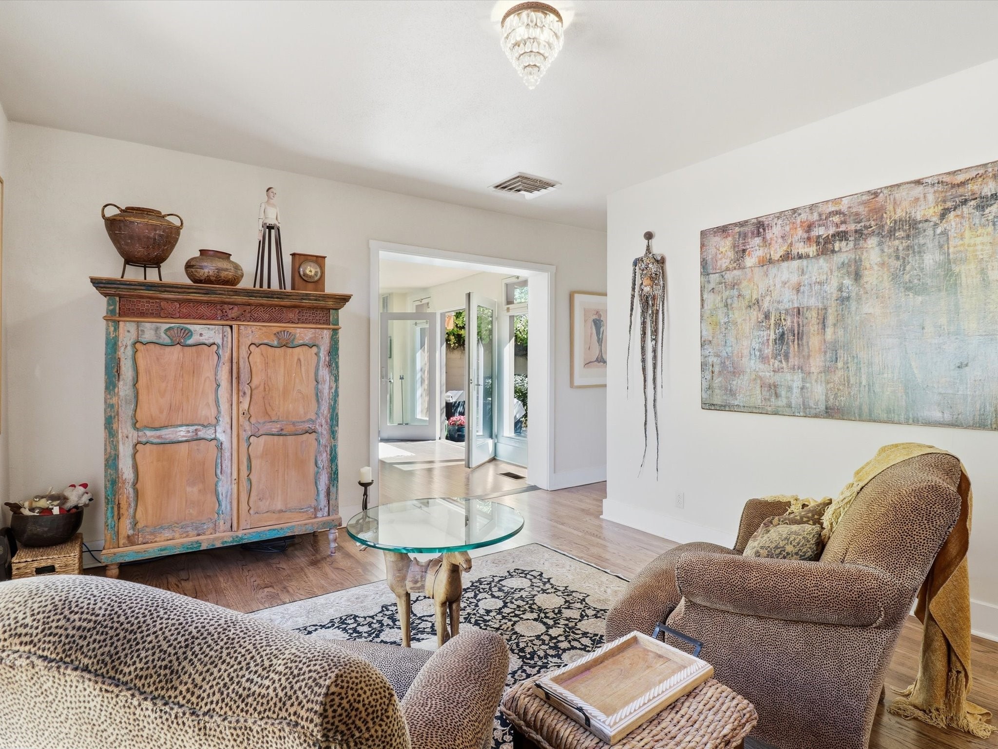 Price Adjustment! One of Santa Fe's most desirable locations. This historically 'contributing' home on East Agua Fria is a light-filled jewel. It is perfectly situated to enjoy all the vibrancy of Santa Fe's Railyard District and Santa Fe's Downtown. Imagine owning a property just blocks away from world-class art galleries, dining, shopping and music. The Santa Fe Farmers Market, a beloved community hub, is just a few blocks to the south. This charming 1900 Craftsman Bungalow home offers four bedrooms, 2 baths, many upgrades, double adobe construction creating a timeless, inviting and very quiet home. Additionally, this property offers remarkable flexibility with two distinct areas, each featuring separate street and garden entrances providing an excellent investor opportunity. The current owners have meticulously cultivated large romantic garden areas over many years, showcasing roses, shade trees and climbing vines, all maintained by an automatic drip system. Experience the unexpectedly large, very private rear patio - a secluded oasis ideal for entertaining or simply unwinding. Further enhancing convenience and livability is the unusually generous, gated off-street parking, a single-story design and a 200-square-foot storage area in the rear. Come see and be captivated! Seller will consider 5% Owner Financing and is offering a 15K seller credit to be used at the buyer's discretion. Neither Listing Brokers nor Seller warrants the square footage of the home or lot. If the size of the home or lot is of material consideration to the Buyer, then the Buyer should have them measured. Tax Levy is from the Assessor website. All fires depicted are photo-shopped. Buyer to verify the functionality of the fireplace.