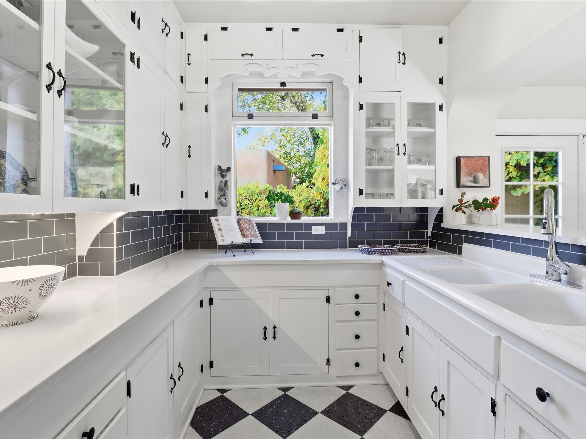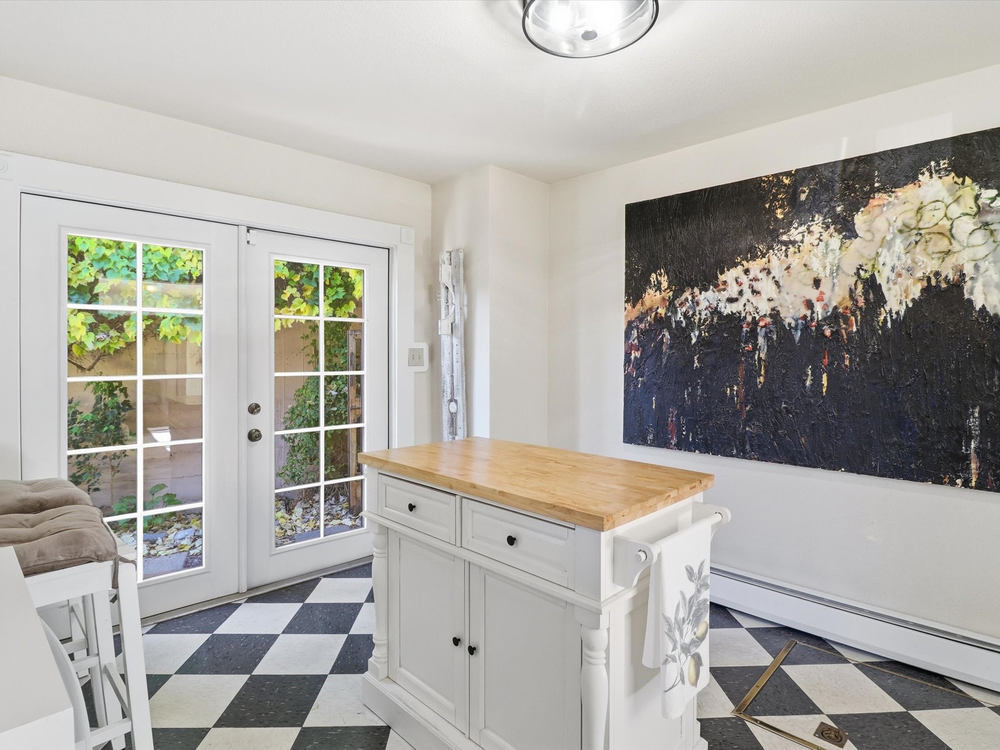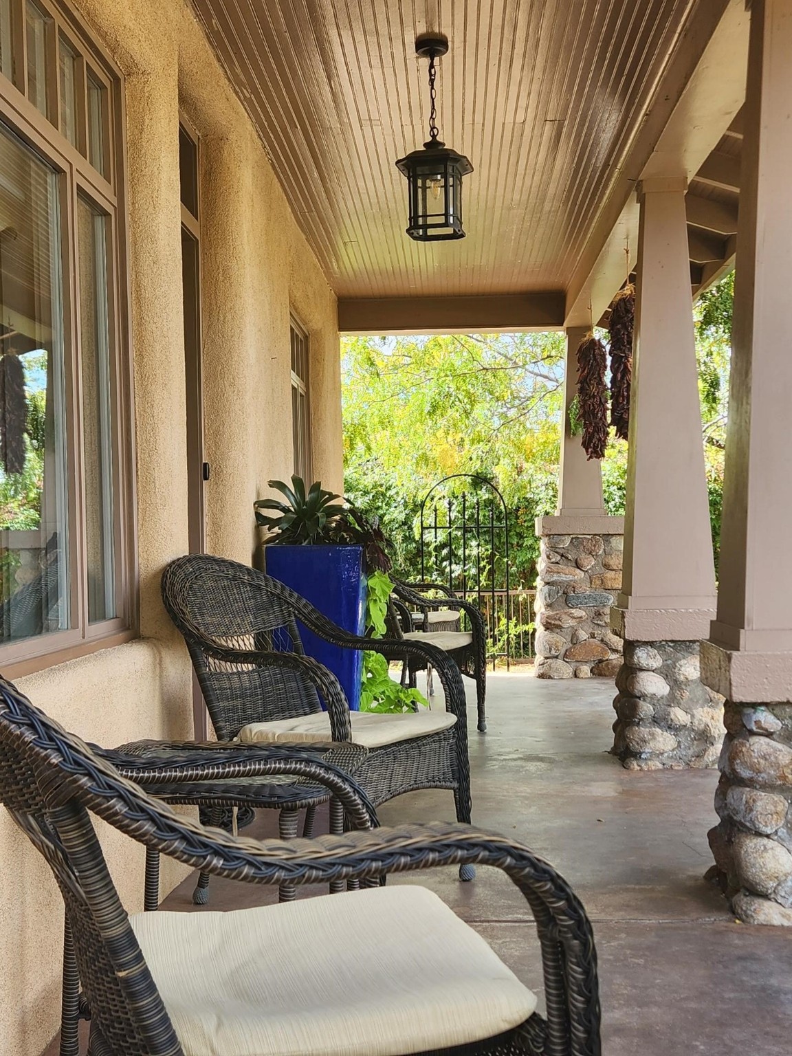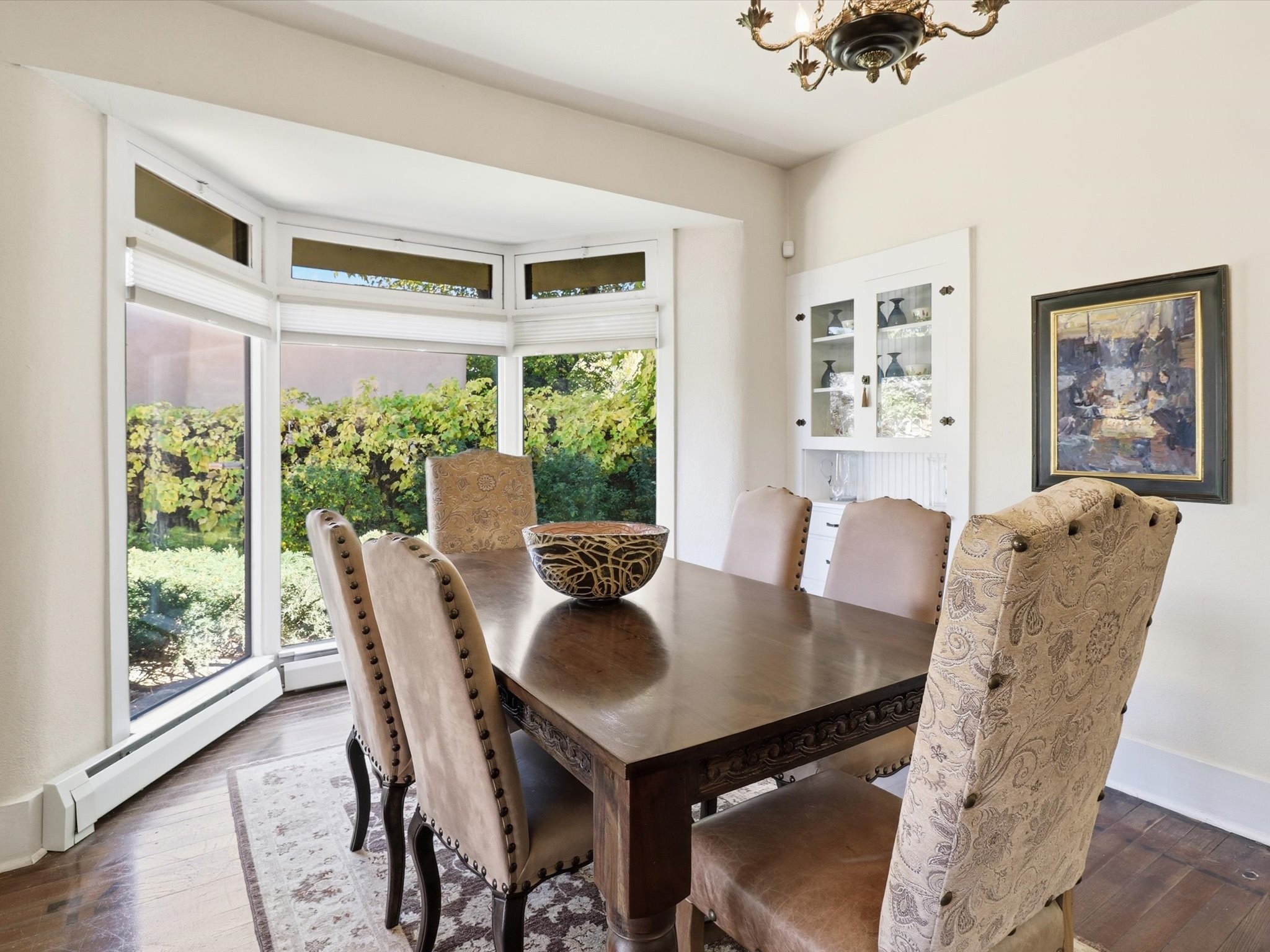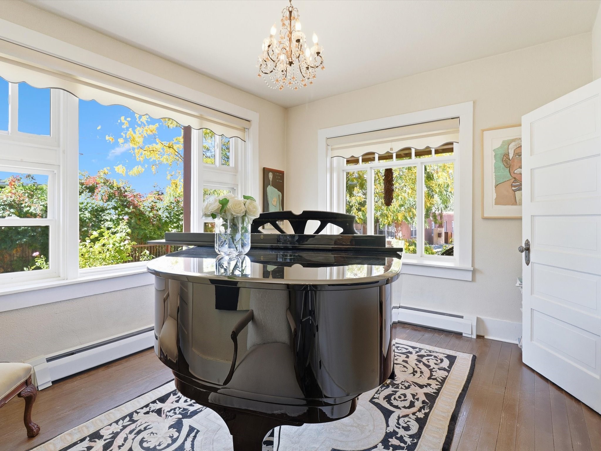 Price Adjustment! One of Santa Fe's most desirable locations. This historically 'contributing' home on East Agua Fria is a light-filled jewel. It is perfectly situated to enjoy all the vibrancy of Santa Fe's Railyard District and Santa Fe's Downtown. Imagine owning a property just blocks away from world-class art galleries, dining, shopping and music. The Santa Fe Farmers Market, a beloved community hub, is just a few blocks to the south. This charming 1900 Craftsman Bungalow home offers four bedrooms, 2 baths, many upgrades, double adobe construction creating a timeless, inviting and very quiet home. Additionally, this property offers remarkable flexibility with two distinct areas, each featuring separate street and garden entrances providing an excellent investor opportunity. The current owners have meticulously cultivated large romantic garden areas over many years, showcasing roses, shade trees and climbing vines, all maintained by an automatic drip system. Experience the unexpectedly large, very private rear patio - a secluded oasis ideal for entertaining or simply unwinding. Further enhancing convenience and livability is the unusually generous, gated off-street parking, a single-story design and a 200-square-foot storage area in the rear. Come see and be captivated! Seller will consider 5% Owner Financing and is offering a 15K seller credit to be used at the buyer's discretion. Neither Listing Brokers nor Seller warrants the square footage of the home or lot. If the size of the home or lot is of material consideration to the Buyer, then the Buyer should have them measured. Tax Levy is from the Assessor website. All fires depicted are photo-shopped. Buyer to verify the functionality of the fireplace.