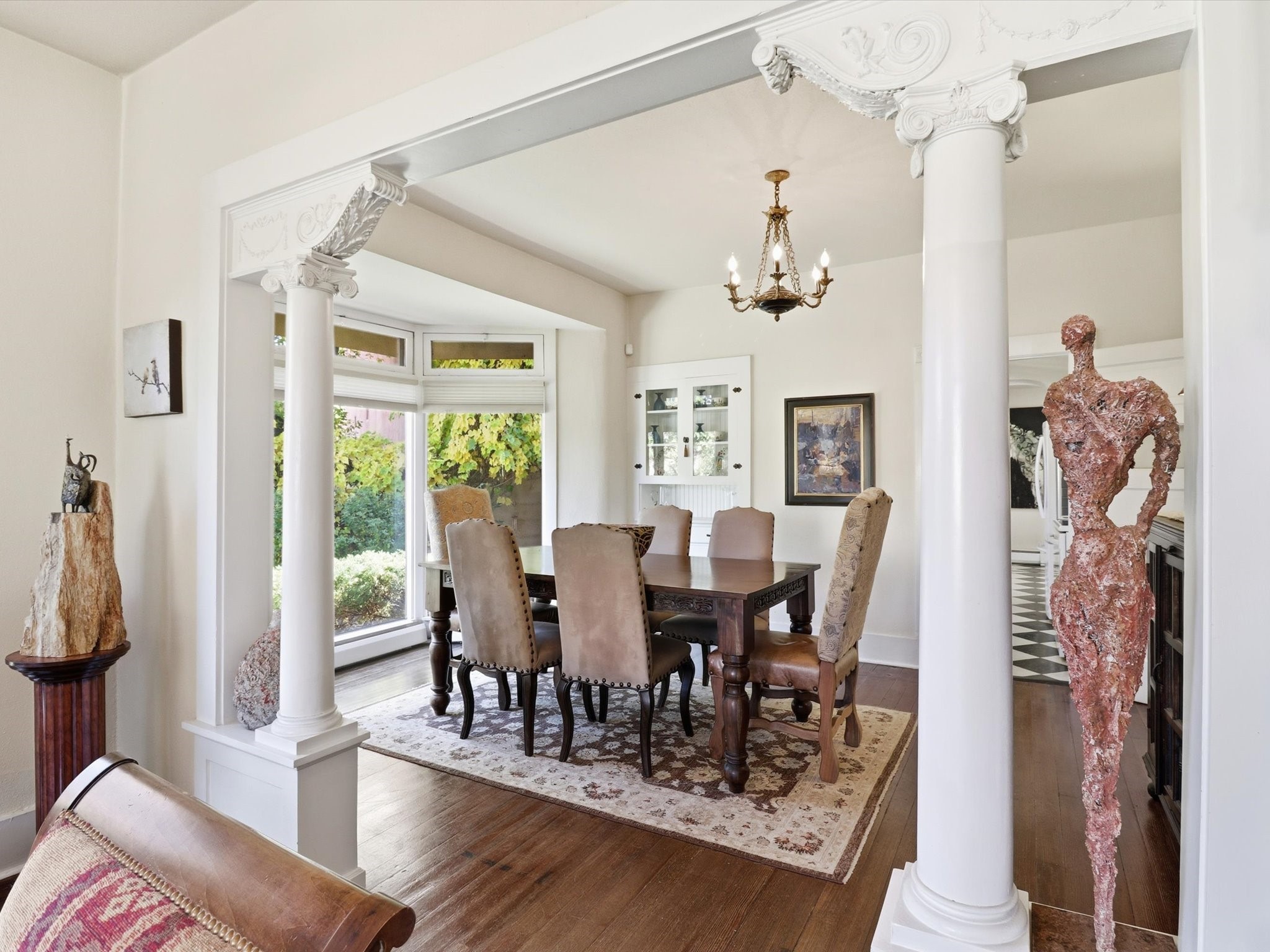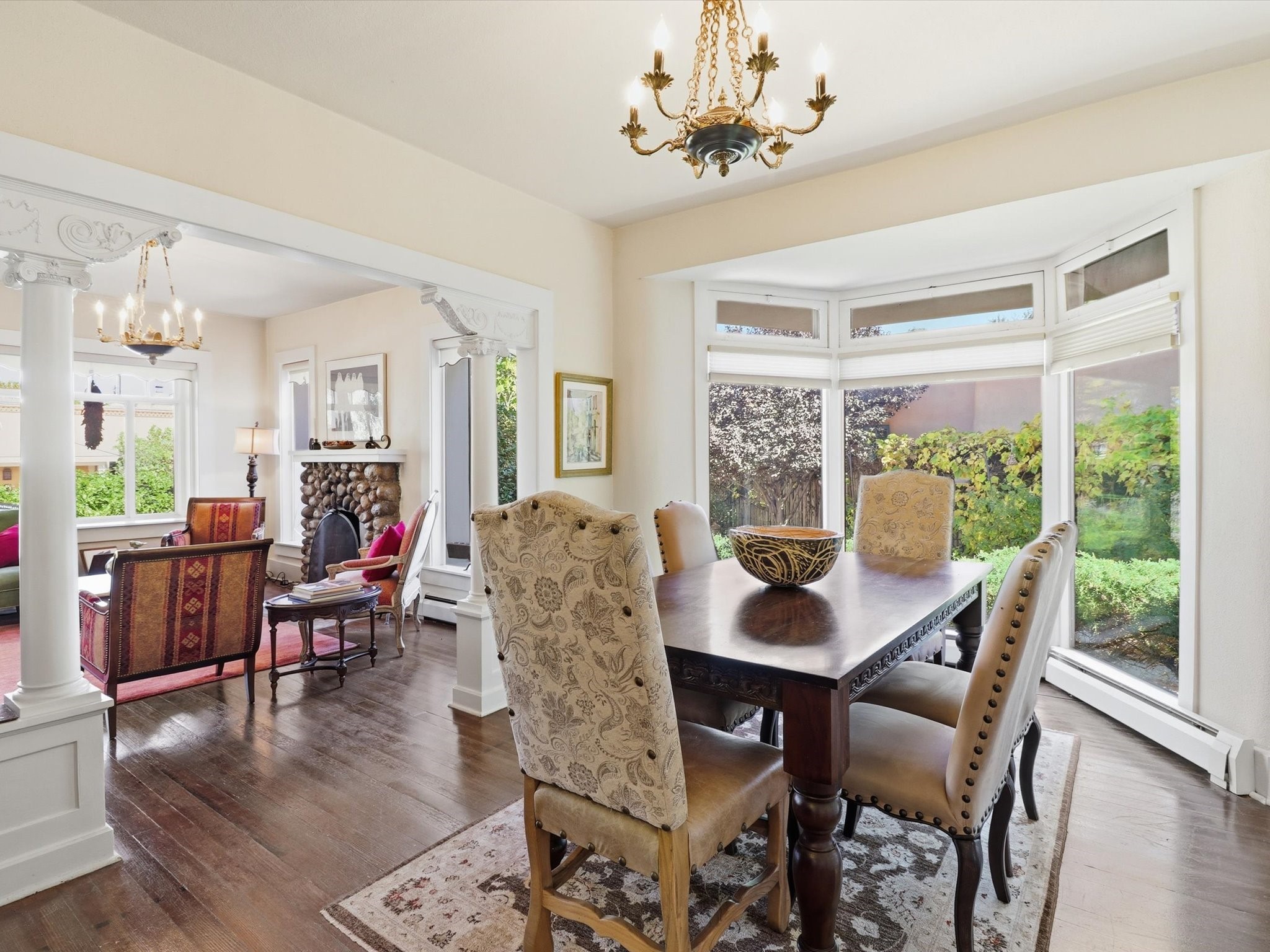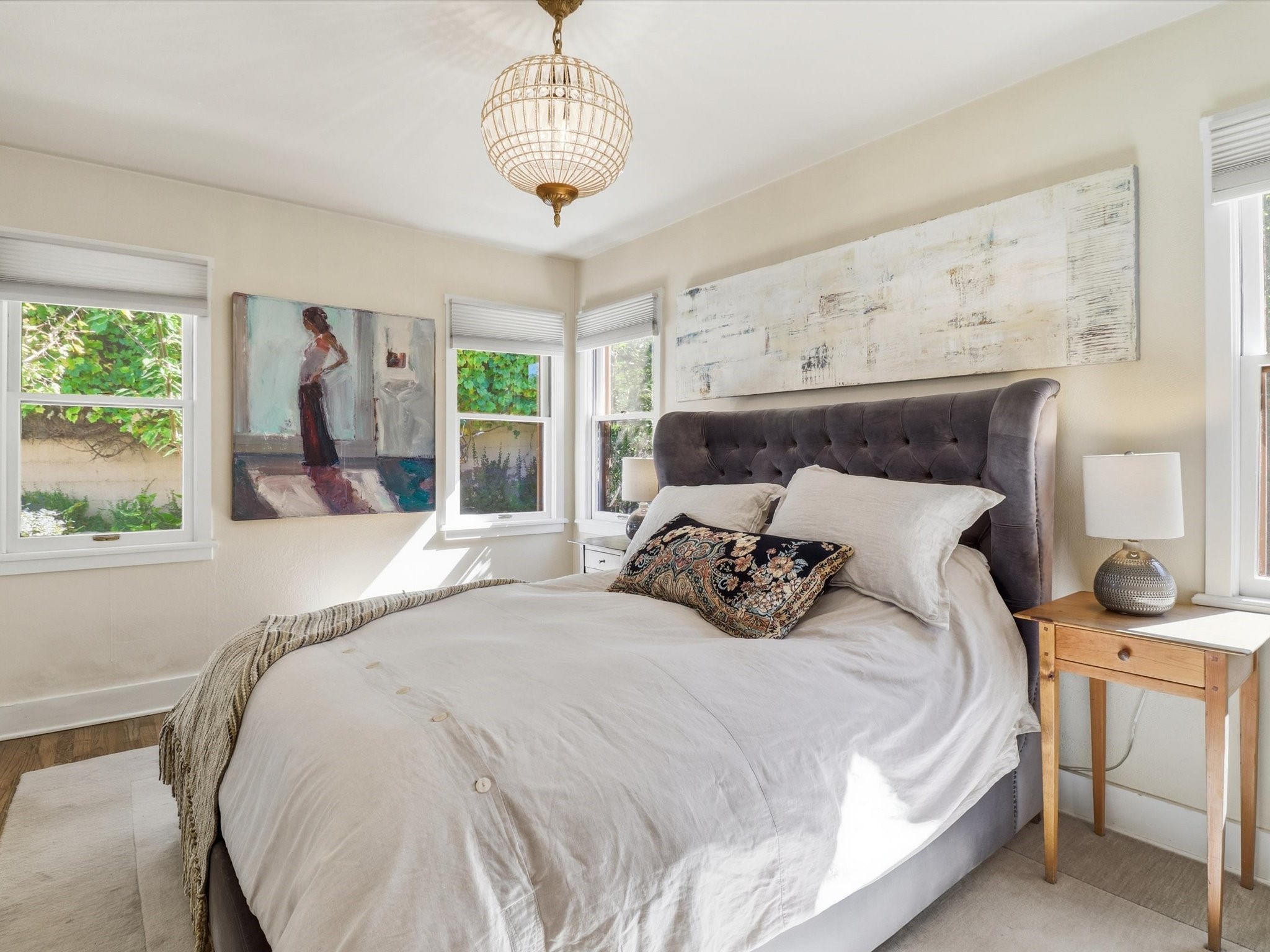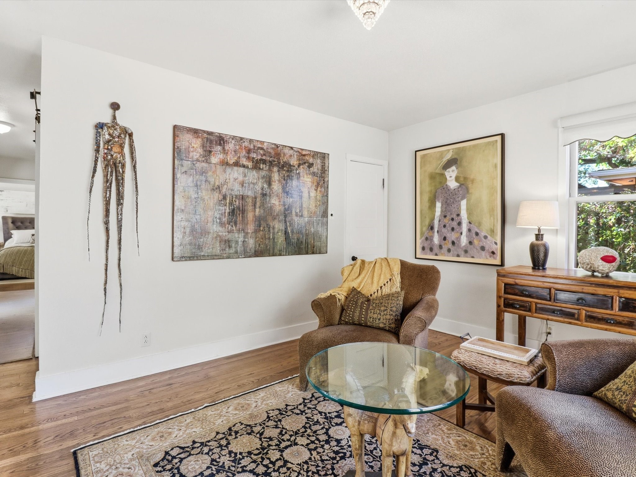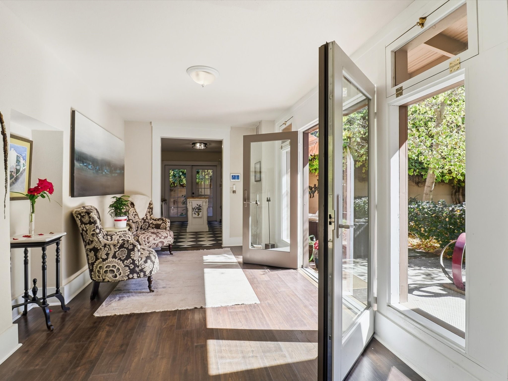 Price Adjustment! One of Santa Fe's most desirable locations. This historically 'contributing' home on East Agua Fria is a light-filled jewel. It is perfectly situated to enjoy all the vibrancy of Santa Fe's Railyard District and Santa Fe's Downtown. Imagine owning a property just blocks away from world-class art galleries, dining, shopping and music. The Santa Fe Farmers Market, a beloved community hub, is just a few blocks to the south. This charming 1900 Craftsman Bungalow home offers four bedrooms, 2 baths, many upgrades, double adobe construction creating a timeless, inviting and very quiet home. Additionally, this property offers remarkable flexibility with two distinct areas, each featuring separate street and garden entrances providing an excellent investor opportunity. The current owners have meticulously cultivated large romantic garden areas over many years, showcasing roses, shade trees and climbing vines, all maintained by an automatic drip system. Experience the unexpectedly large, very private rear patio - a secluded oasis ideal for entertaining or simply unwinding. Further enhancing convenience and livability is the unusually generous, gated off-street parking, a single-story design and a 200-square-foot storage area in the rear. Come see and be captivated! Seller will consider 5% Owner Financing and is offering a 15K seller credit to be used at the buyer's discretion. Neither Listing Brokers nor Seller warrants the square footage of the home or lot. If the size of the home or lot is of material consideration to the Buyer, then the Buyer should have them measured. Tax Levy is from the Assessor website. All fires depicted are photo-shopped. Buyer to verify the functionality of the fireplace.