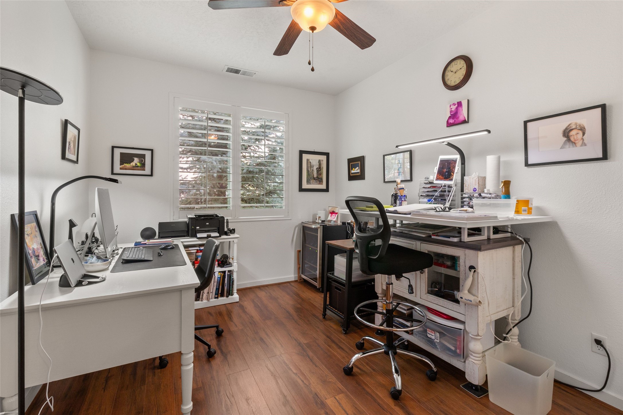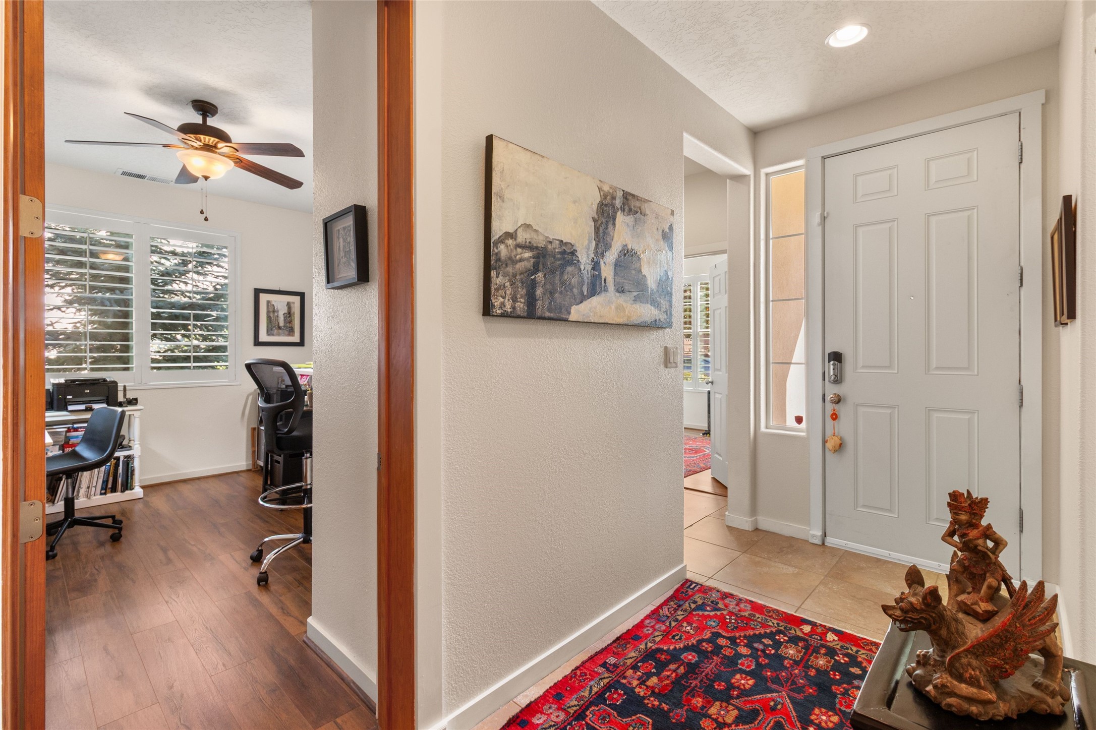 Beautifully upgraded and meticulously maintained single-level home blending exceptional comfort, style, and privacy. Recent improvements include a TPO roof, stucco, HVAC compressor, new appliances, and more -- providing true peace of mind. This 3-bedroom, 2-bath residence features a desirable open floor plan with high ceilings, arched thresholds and abundant natural light throughout.The living room is anchored by a wood-burning kiva fireplace, white plantation shutters frame the dining area's corner windows, and sliding doors lead to the inviting portal. The open-concept kitchen is ideal for both daily living and entertaining, featuring stainless steel appliances, custom cabinetry, pantry and functional island.The spacious primary suite offers a custom-organized walk-in closet and a well-appointed spa bath with double sinks, soaking tub and separate shower. A flexible studio space functions perfectly as a third bedroom, home office or den.Outdoor living is enhanced by a generous covered portal equipped with a built-in heater for year-round enjoyment, and the fully enclosed, landscaped yard features colorful, mature plantings and a recently upgraded drip irrigation system. Ideally situated on a premium lot adjacent to open space, the home enjoys exceptional privacy.Warm, inviting and truly move-in ready, this home is located in the thoughtfully planned Rancho Viejo community, renowned for preserved open spaces, greenbelts and miles of paved trails.
