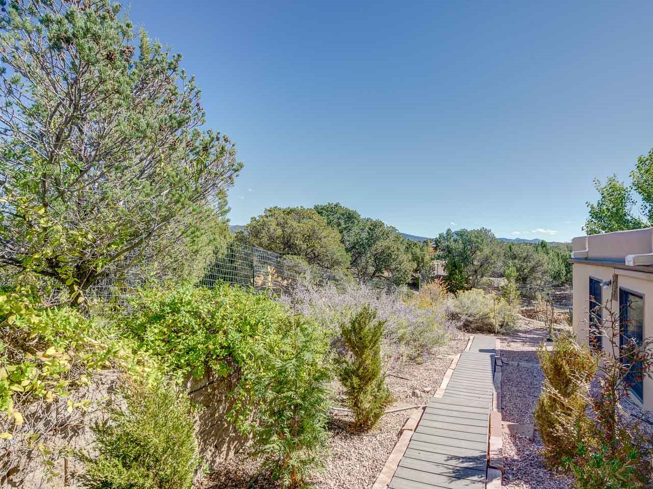 Private Santa Fe Retreat: Main House & Casita on a secluded 0.84 acre lot makes 801 Calle David the ultimate Santa Fe compound. This stunning property is a rare find, offering both a spacious main residence and a fully equipped, private 1 bedroom/1bathroom/1 car garage guest casita for unparalleled flexibility and privacy. Main Residence Highlights (2,559 Sq Ft): 4 Bedrooms with excellent separation, plus a bonus room that can be used as a media room or space to display your art or memorabilia. This rastra constructed home has beautiful diamond finished plaster walls, custom hardwood doors and a cozy two sided fireplace for Santa Fe's cool evenings. Enjoy multiple outdoor living spaces, including two decks and two covered patios, one complete with a relaxing hot tub and some mountain views. The main house has an attached two-car garage and the casita has its own attached one-car garage. The casita (840 Sq Ft) can be a true home-away-from-home for visitors or a perfect rental opportunity. Located in a desirable Santa Fe neighborhood, this property masterfully blends the best of New Mexico's timeless architecture with the space and amenities needed for modern living. The solar array is an added bonus taking advantage of Santa Fe's average 300 days of sunshine to reduce your utility costs.