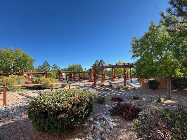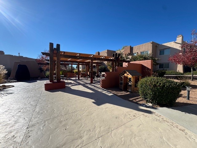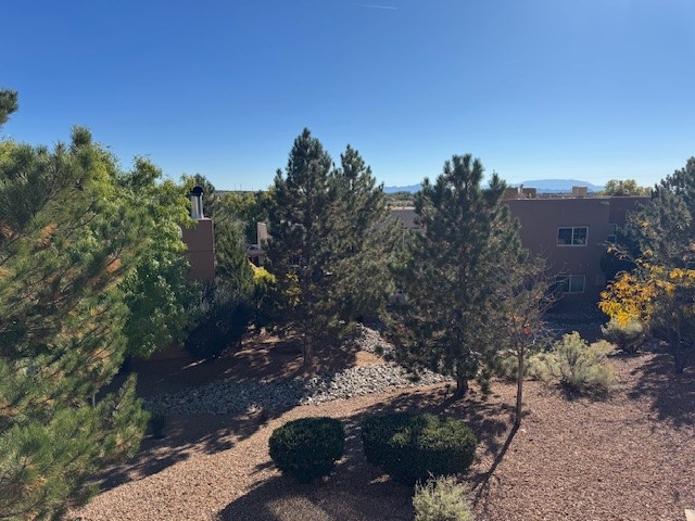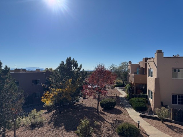 Your next home is conveniently located near the hot tub, pool, and rec facilities generously offered by the HOA. This lovely upstairs one bedroom, one bath is like brand new as it is impeccably maintained. Newer carpeted living area leads to screened door with a deck overlooking bar-be-que area and southern facing sharing views of the Sandias and Sangre glimpses. Stainless kitchen offers some privacy with window open to common area. Stackable washer and dryer tucked behind beautiful wood doors and bathroom refreshingly updated.