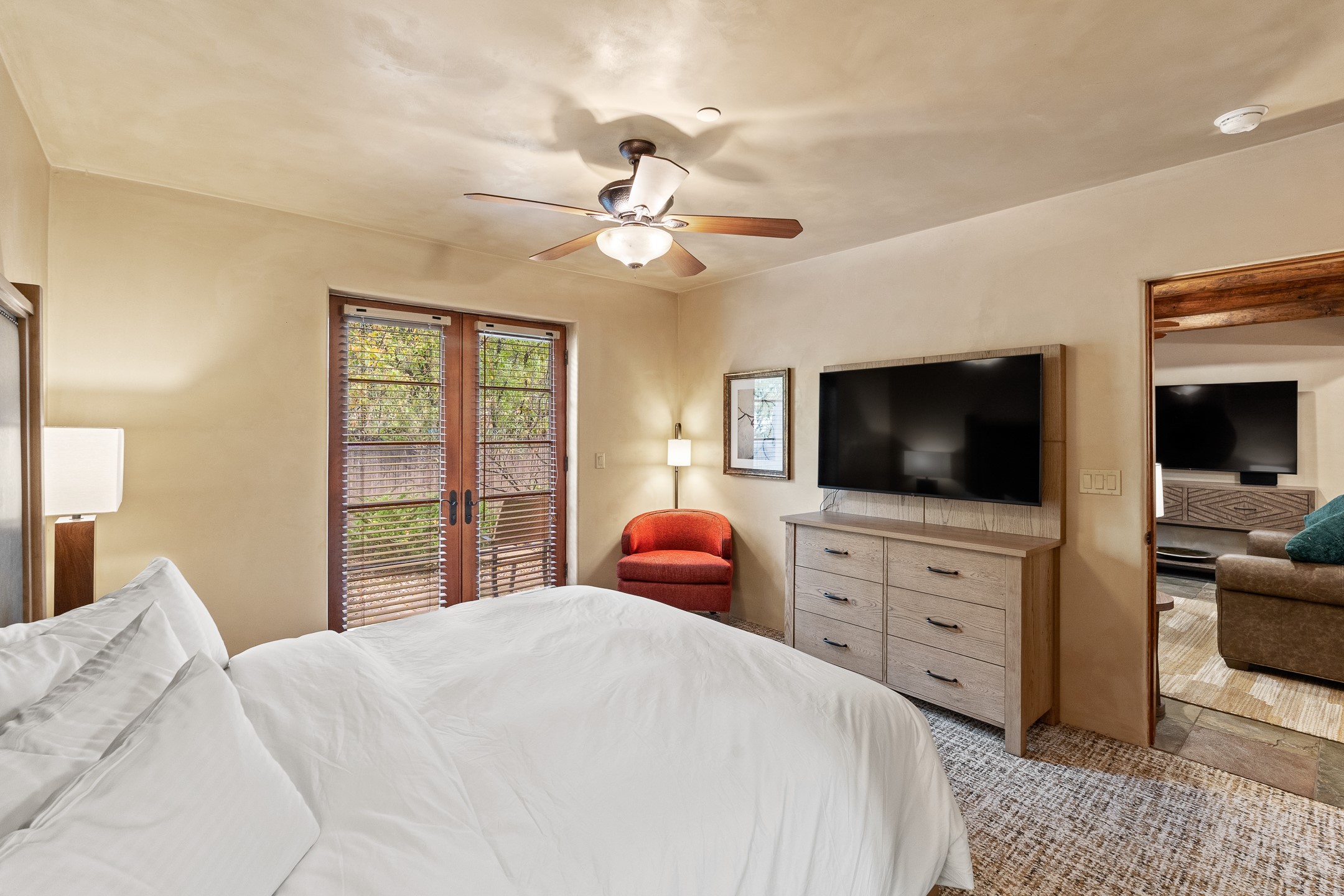 **Seller will pay 6 months of HOA fees at closing with a full-price offer!** This is a fractional ownership offering: Eighth Share Estate H, consisting of an undivided 12.5% (one-eighth) interest as tenant-in-common in Eighth Share Unit 48 at El Corazon de Santa Fe. It is a deeded 1/8th share in Terra floorplan #48H. Owners are entitled to 4 weeks per year, with the possibility of more time if it's available. Two luxurious bedrooms and bathrooms, 1300 sqft, all single level. There is a main living room with fireplace, state-of-the-art kitchen with stainless steel appliances, separate dining area, master bath with dual vanities and jetted tub, private patio, and outdoor and covered garage parking available, accessed with key code. On-site gym, beautiful outdoor gathering spaces, gated property. Walk everywhere from this condo in the heart of downtown. Owners can exchange time through the Hyatt Vacation Club and Registry Collection.