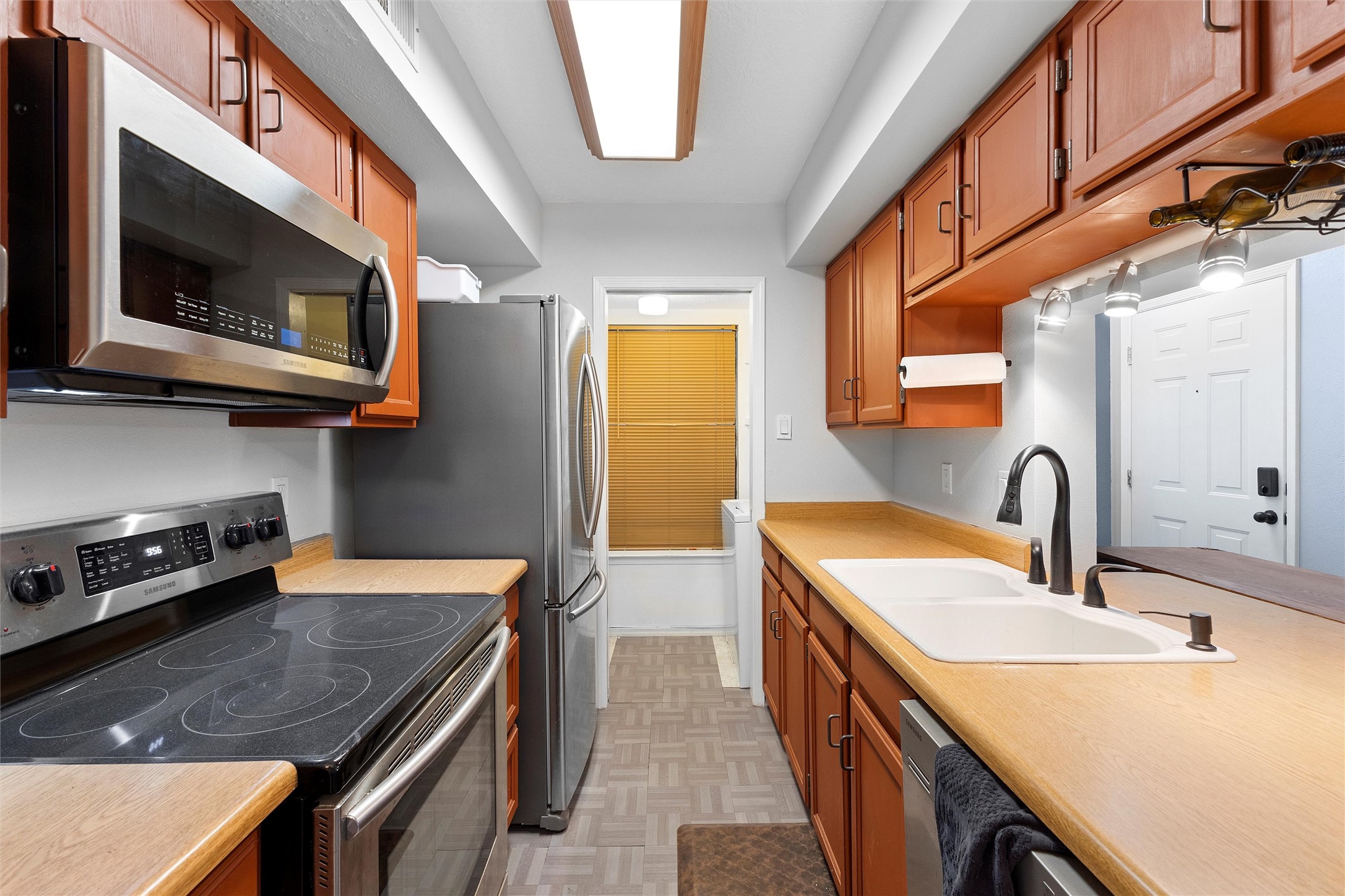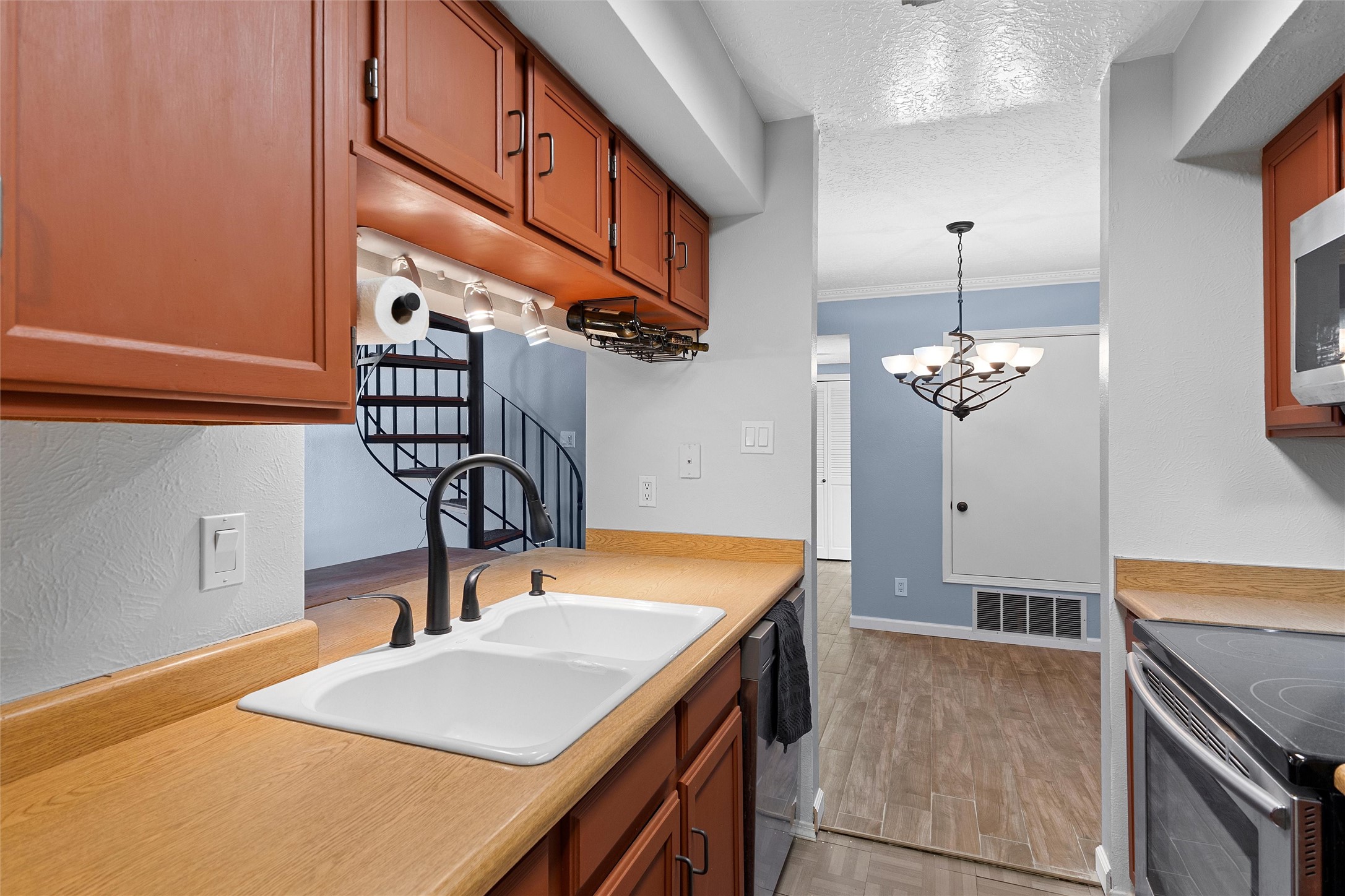 Stylish & Convenient Condo Living in Ridge Park!Welcome to this beautifully maintained 2-bedroom, 2-bath upper-level condo in the highly sought-after Ridge Park community. This bright, inviting home features an open living area with a cozy wood-burning fireplace, vaulted ceilings, and access to a covered balcony showcasing stunning views of the Jemez Mountains. The dining area flows seamlessly into a well-appointed galley kitchen, complete with sleek Samsung stainless steel appliances and a convenient pass-through window.The main-level bedroom offers its own private balcony and easy access to a full bath, while the upper-level loft bedroom serves as a peaceful retreat with an en suite bathroom, generous vanity space, and a spacious shower. Thoughtful updates include modern lighting, stylish ceiling fans, and abundant closet space, including an exterior storage closet.Additional highlights include a dedicated covered parking space directly across from the unit, plus on-site amenities such as an outdoor pool, fitness room, and clubhouse. Pet-friendly Ridge Park also features a nearby dog walking park. Centrally located in Los Alamos, you'll enjoy easy access to Ashley Pond, the public library, restaurants, shops, and LANL--everything you need for convenient and comfortable living!