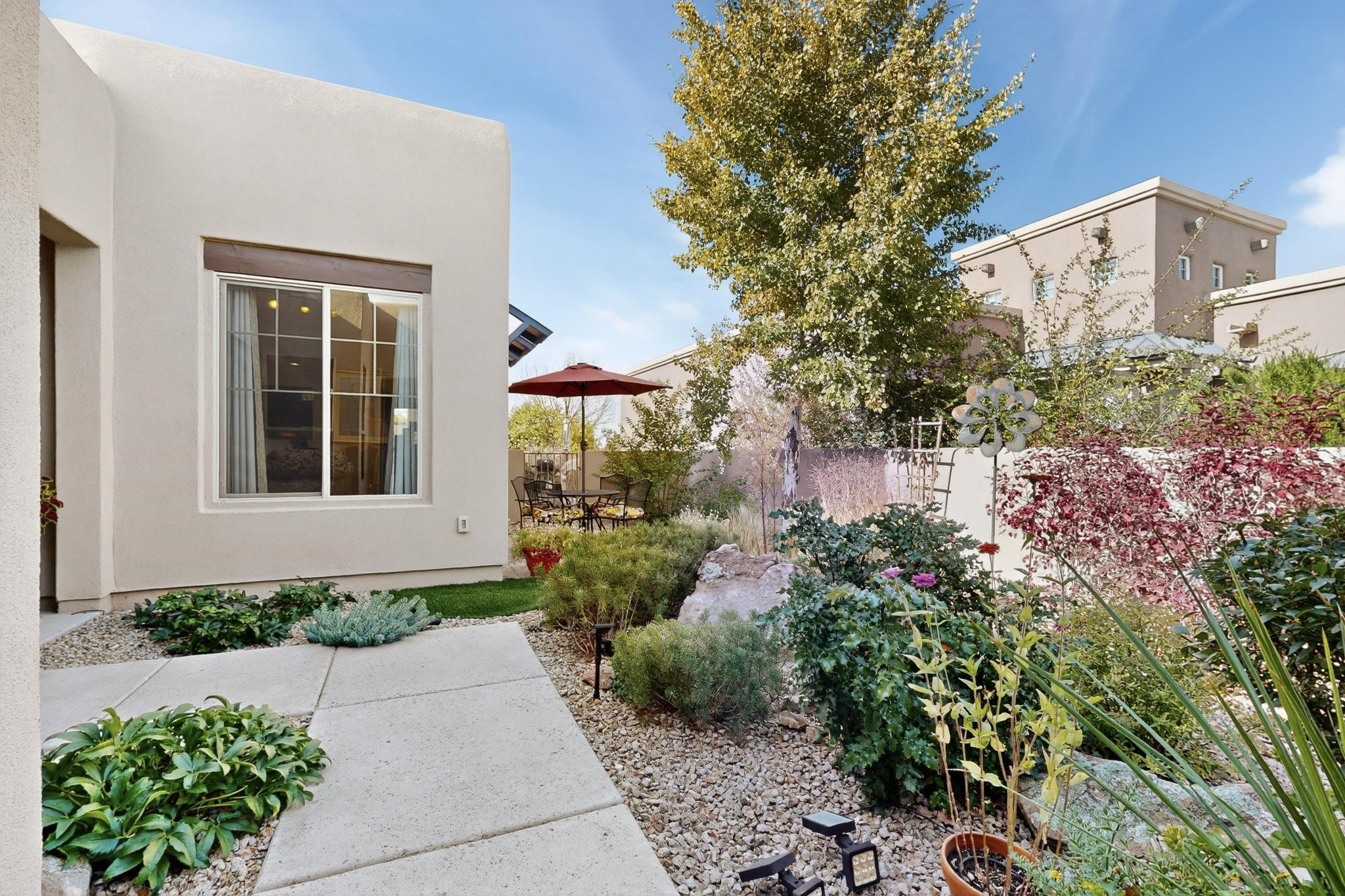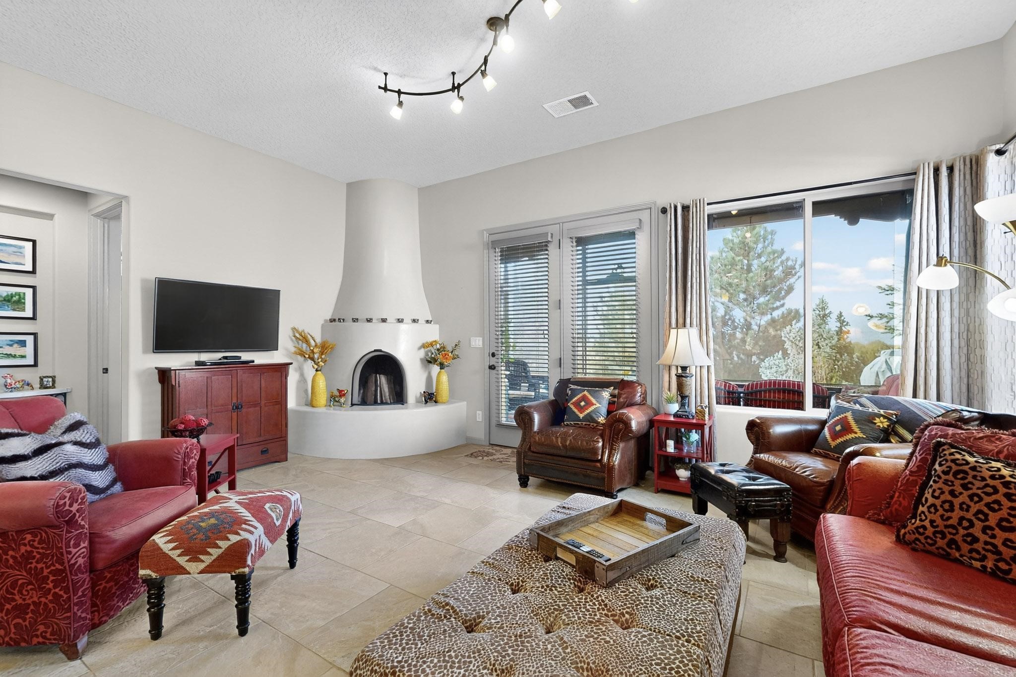 Welcome to this beautifully maintained 3-bedroom, 2-bath home in the sought-after Rancho Viejo community. Thoughtfully designed, this residence offers both comfort and flexibility -- featuring a rare 3-car garage and a versatile attached studio space, ideal for a home office, art studio, or guest suite.Enjoy the inviting open-concept living area with abundant natural light, high ceilings, and seamless flow to the outdoor spaces. The beautifully landscaped yard provides a serene retreat with sweeping views toward open space, perfect for relaxing or entertaining and watch the sunsets. Located in one of Santa Fe's most desirable neighborhoods, Rancho Viejo offers miles of walking trails, parks, and community charm -- all just a short drive from shopping, dining, and historic downtown Santa Fe.