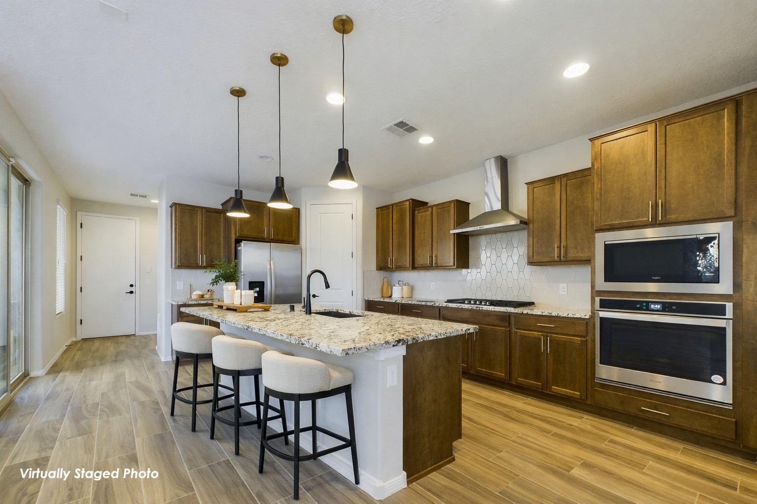 Built in 2023, this stunning home is perfectly situated in the highly sought-after Villas de Las Soleras neighborhood. Backing to a spacious park, it offers access to a basketball court, playground, dog run, walking trail, and a cabana ideal for entertaining. Inside, the home has been thoughtfully upgraded with level 4 granite countertops in the kitchen and bathrooms, wood-look tile flooring in the living and dining areas, stainless steel appliances, a 5-burner gas cooktop, and a Silgranit kitchen sink. The attached two-car garage is equipped with EV charging (125-250V, Levels 1 & 2) for added convenience. The light-filled open floor plan seamlessly connects the kitchen, dining, and great room, with two sets of sliding doors leading to a covered patio--perfect for indoor-outdoor living. Featuring three bedrooms, two full bathrooms, and a convenient downstairs half bath, this home balances style and function. The primary suite upstairs boasts a sitting area with sliding doors opening to a private balcony overlooking the park and stunning mountain views--a serene spot to enjoy the sunrise.Centrally located, the home is close to hospitals, shopping centers, dining, and more. Exceptionally well-maintained, this beautiful home is ready for you to move in and enjoy today!