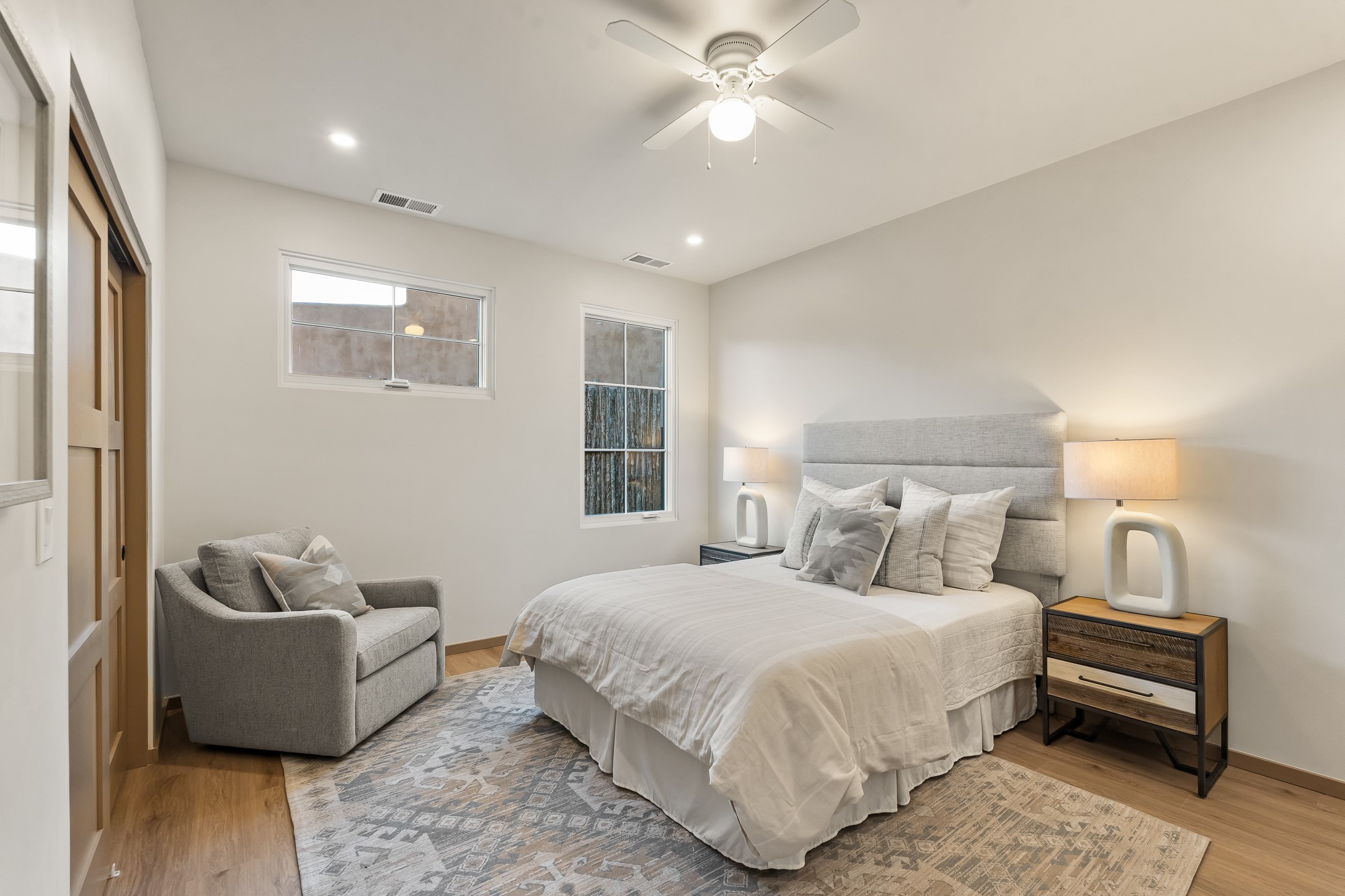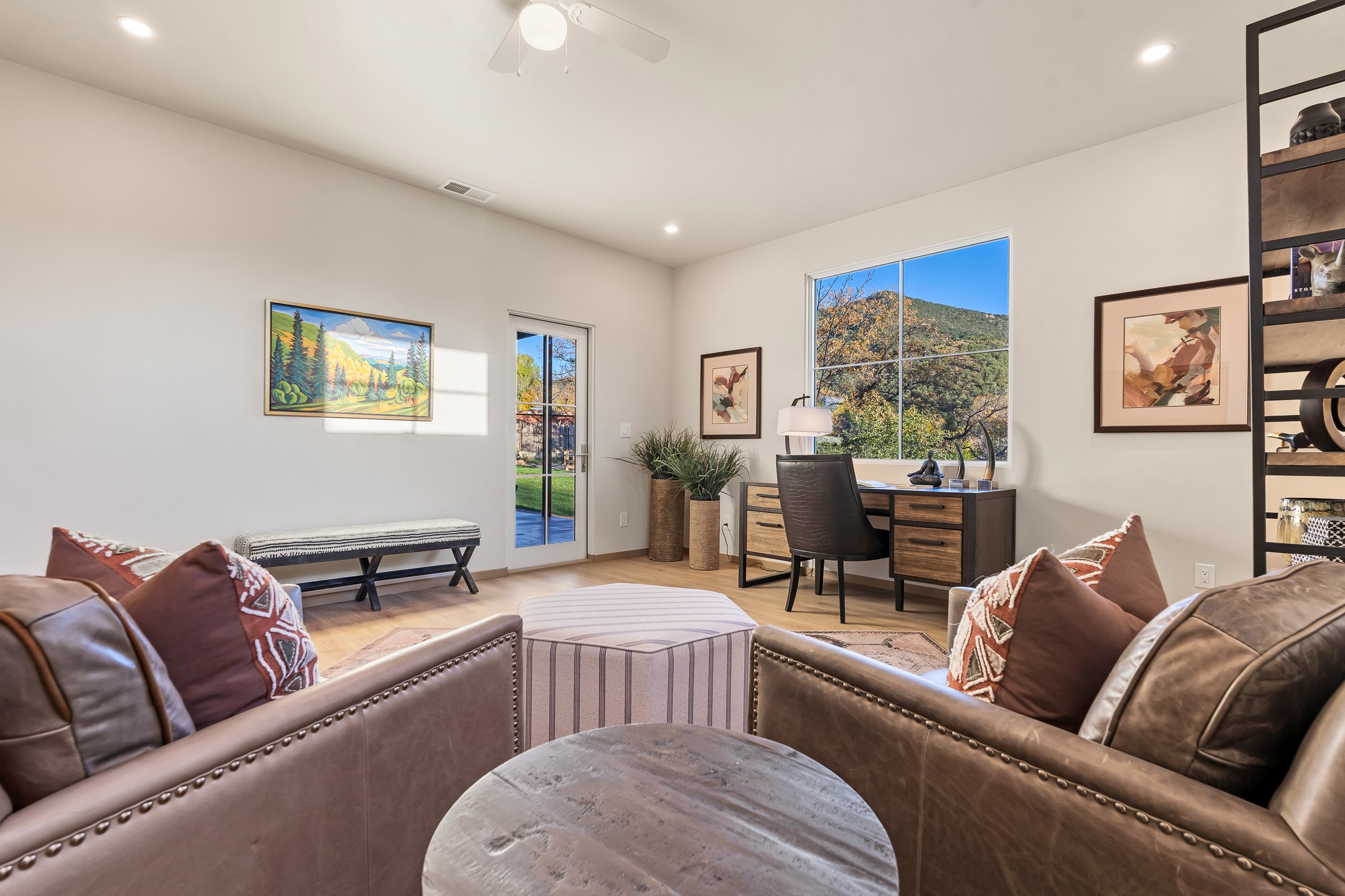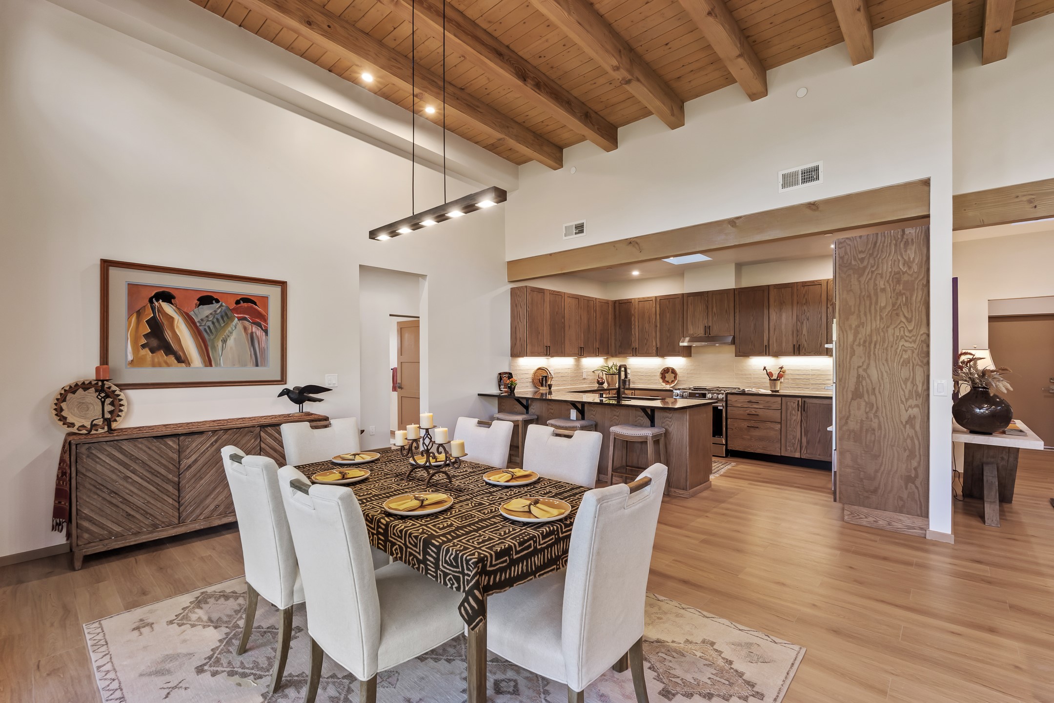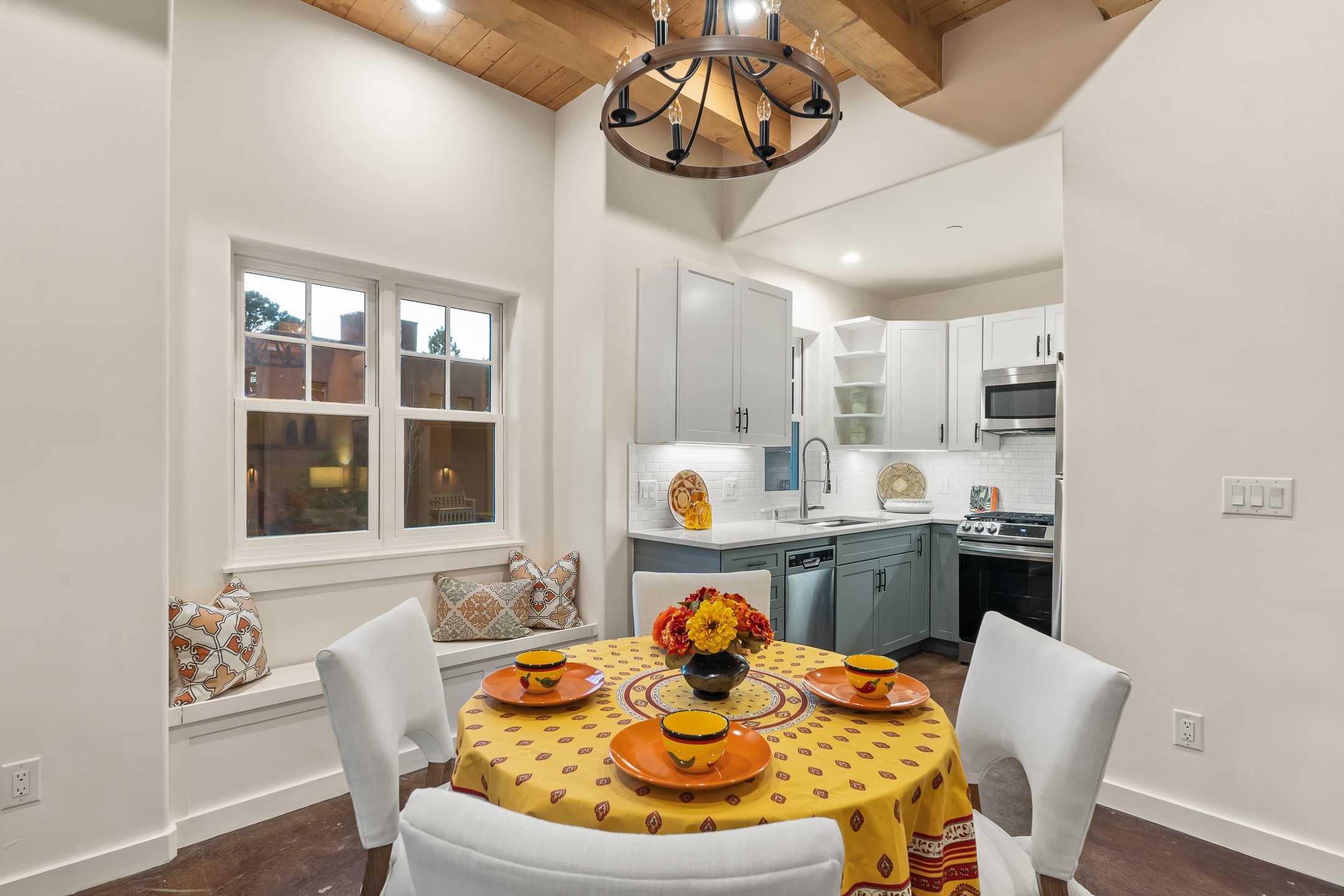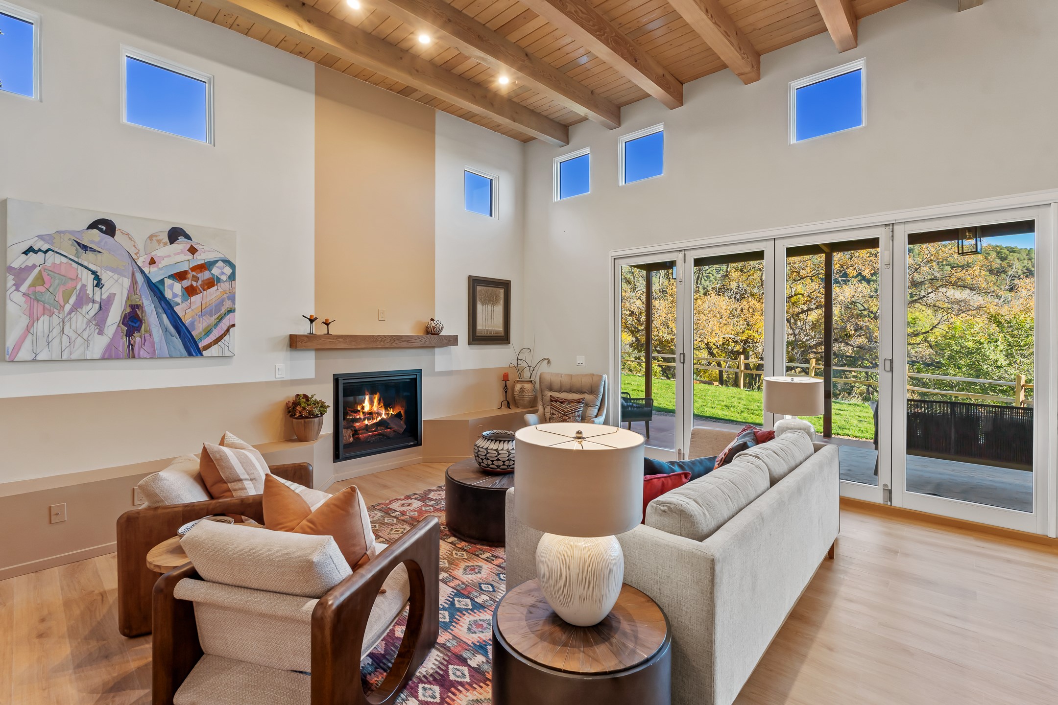 Contemporary Elegance Above the Santa Fe River Nature Preserve. Perched above the Santa Fe River Nature Preserve, with breathtaking views of Picacho Peak, this brand-new, all-single-level 2025 contemporary residence is a masterful blend of architecture, nature, and modern comfort--just minutes from Canyon Road, The Teahouse, and downtown Santa Fe.Designed for effortless living and entertaining, the main residence offers three bedrooms and two baths, an open-concept living space with soaring ceilings, wood flooring, a sleek gas fireplace with a built-in banco, and a wall of glass articulating doors that frame Picacho Peak and the surrounding foothills, inviting the outdoors in with seamless flow onto the southeast-facing, view-filled portal--perfect for entertaining or quiet moments of reflection. The open, well-designed chef's kitchen features Nocturne quartz countertops, soft-hued cabinetry, and stainless-steel appliances.Set on over half an acre, the landscaped property features lush green grass framed by a graceful grove of native oak trees and is graced by the historic Acequia, its gentle spring-fed waters flowing near the primary suite. The spa-like primary bath offers a freestanding soaking tub and a separate walk-in shower, creating a serene retreat inspired by nature.A TPO roof and two-car garage speak to both form and function, while mindful touches--fire suppression system, drip irrigation, and central air conditioning--ensure lasting peace of mind. The detached one-bedroom, one-bath casita with a full kitchen provides the ideal retreat for guests, an art studio, an office, or a rental opportunity.All a five-minute drive from Canyon Road and moments from the Dale Ball Trails, the Beaver Pond, and the Audubon, this location offers endless opportunities to connect with Santa Fe's natural beauty and culture--an inspired sanctuary for those who live beautifully.