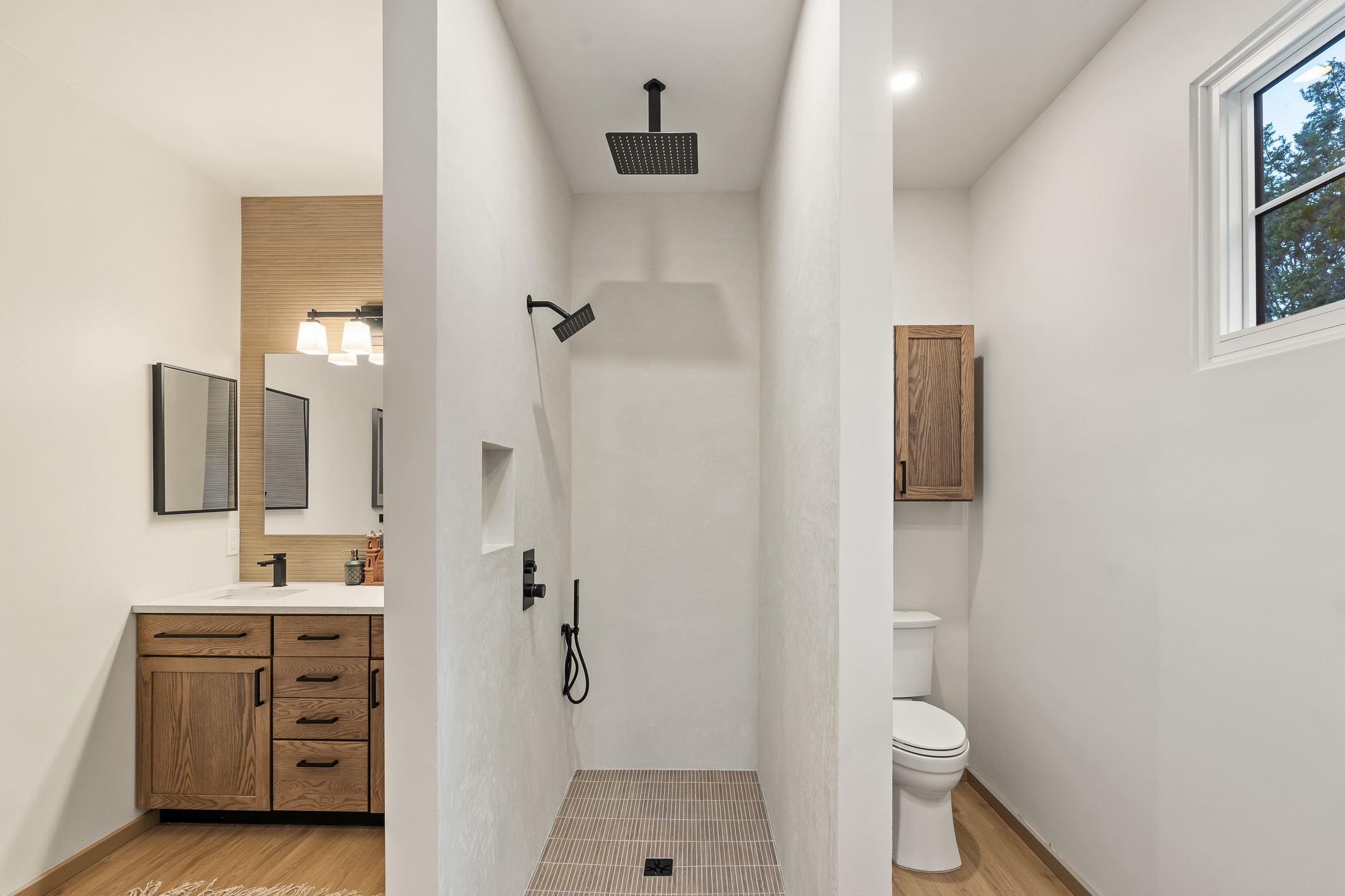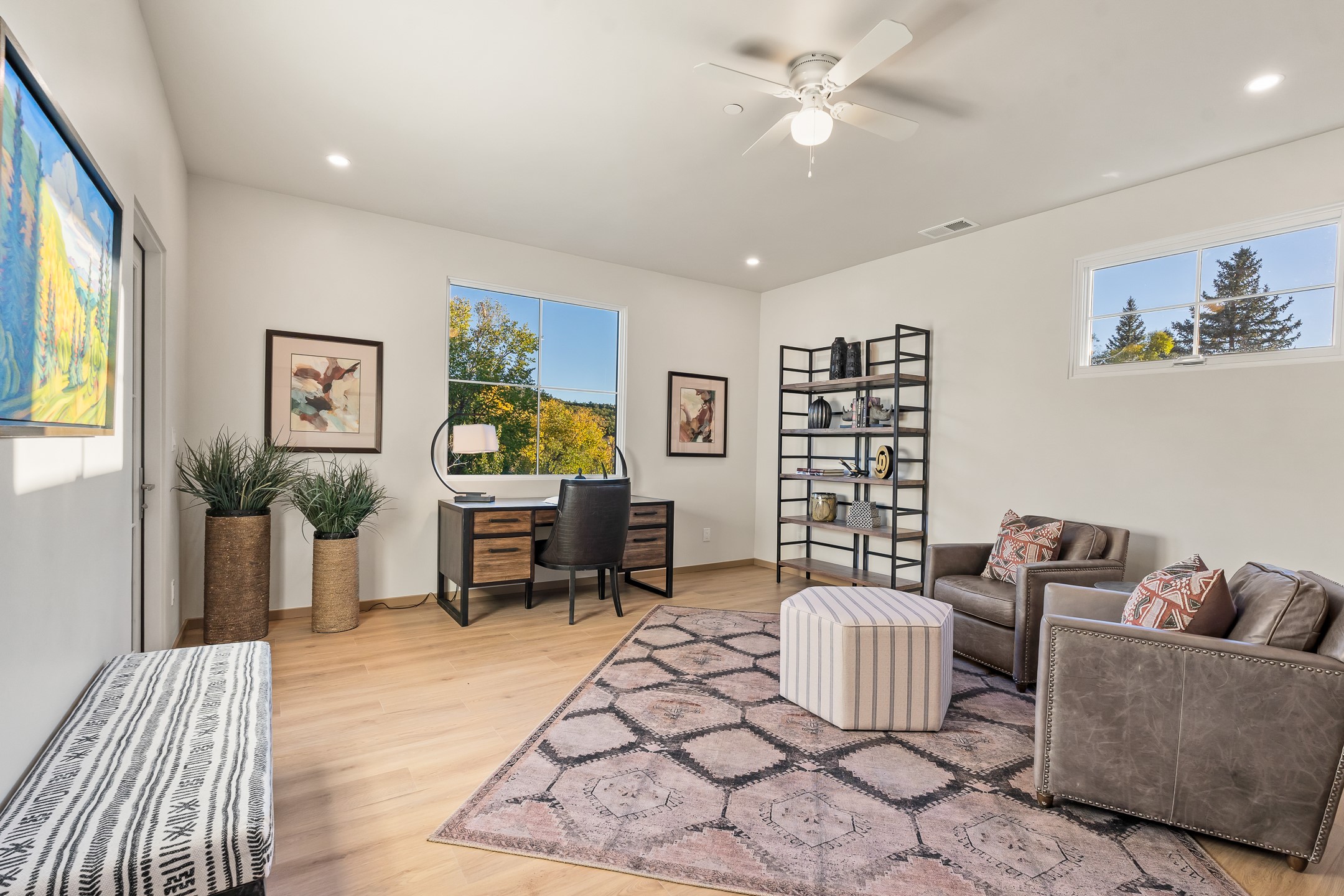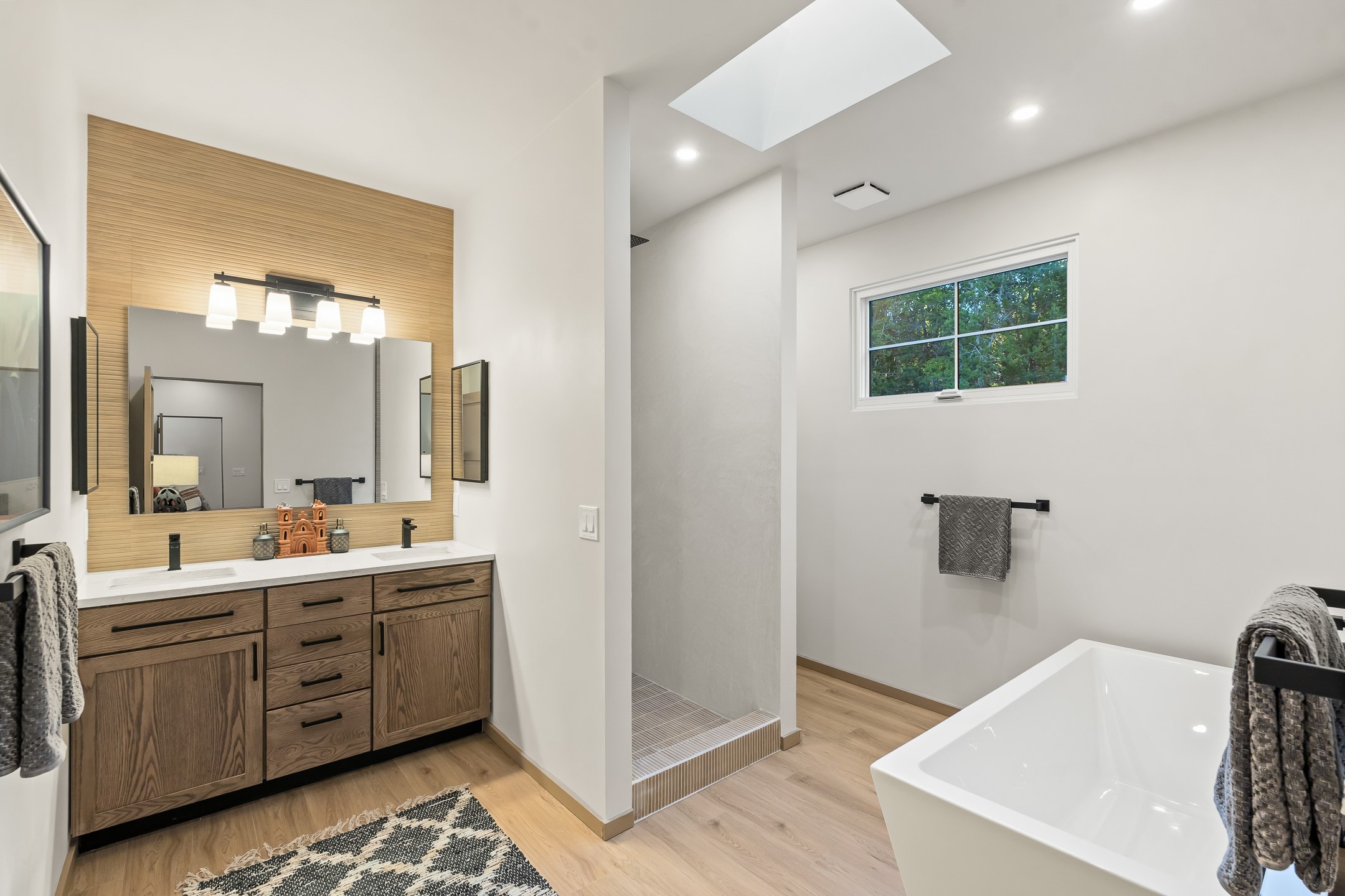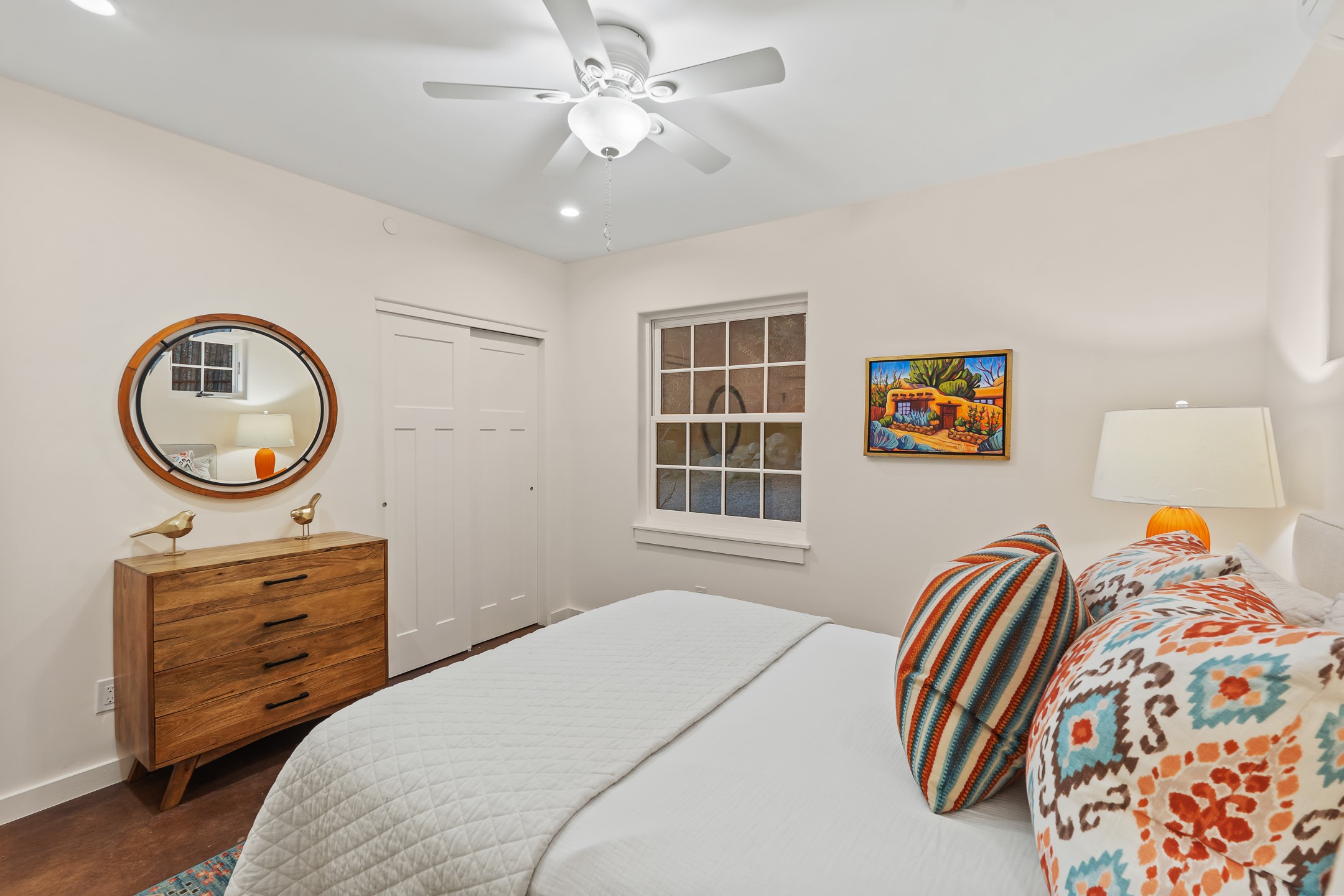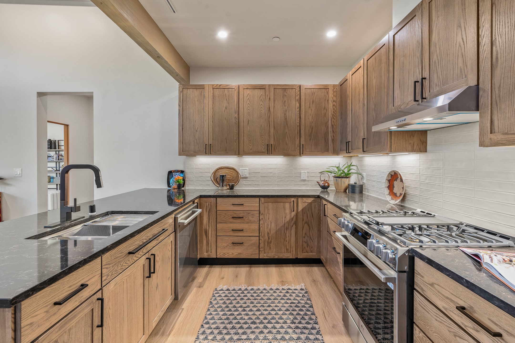 Contemporary Elegance Above the Santa Fe River Nature Preserve. Perched above the Santa Fe River Nature Preserve, with breathtaking views of Picacho Peak, this brand-new, all-single-level 2025 contemporary residence is a masterful blend of architecture, nature, and modern comfort--just minutes from Canyon Road, The Teahouse, and downtown Santa Fe.Designed for effortless living and entertaining, the main residence offers three bedrooms and two baths, an open-concept living space with soaring ceilings, wood flooring, a sleek gas fireplace with a built-in banco, and a wall of glass articulating doors that frame Picacho Peak and the surrounding foothills, inviting the outdoors in with seamless flow onto the southeast-facing, view-filled portal--perfect for entertaining or quiet moments of reflection. The open, well-designed chef's kitchen features Nocturne quartz countertops, soft-hued cabinetry, and stainless-steel appliances.Set on over half an acre, the landscaped property features lush green grass framed by a graceful grove of native oak trees and is graced by the historic Acequia, its gentle spring-fed waters flowing near the primary suite. The spa-like primary bath offers a freestanding soaking tub and a separate walk-in shower, creating a serene retreat inspired by nature.A TPO roof and two-car garage speak to both form and function, while mindful touches--fire suppression system, drip irrigation, and central air conditioning--ensure lasting peace of mind. The detached one-bedroom, one-bath casita with a full kitchen provides the ideal retreat for guests, an art studio, an office, or a rental opportunity.All a five-minute drive from Canyon Road and moments from the Dale Ball Trails, the Beaver Pond, and the Audubon, this location offers endless opportunities to connect with Santa Fe's natural beauty and culture--an inspired sanctuary for those who live beautifully.