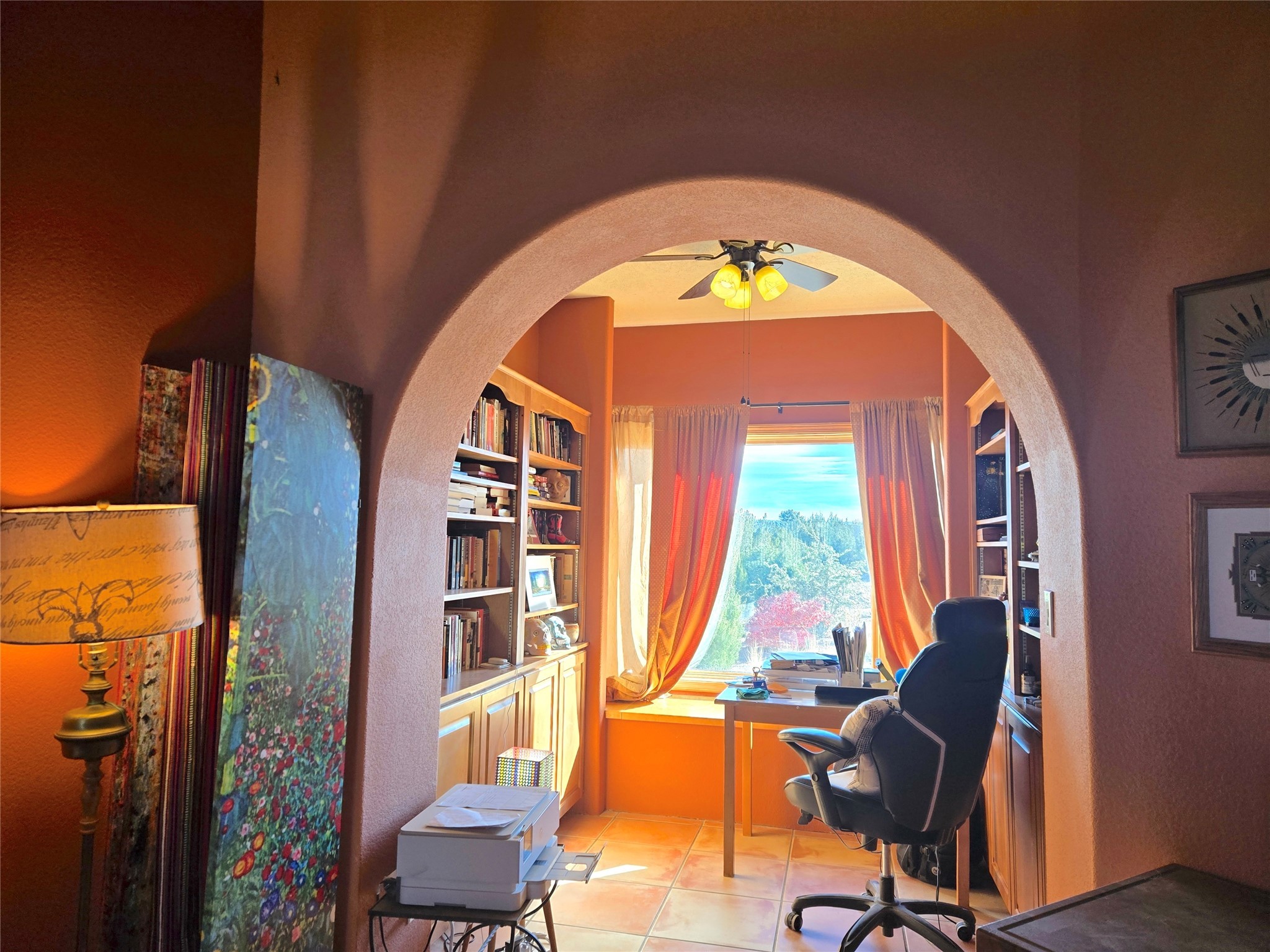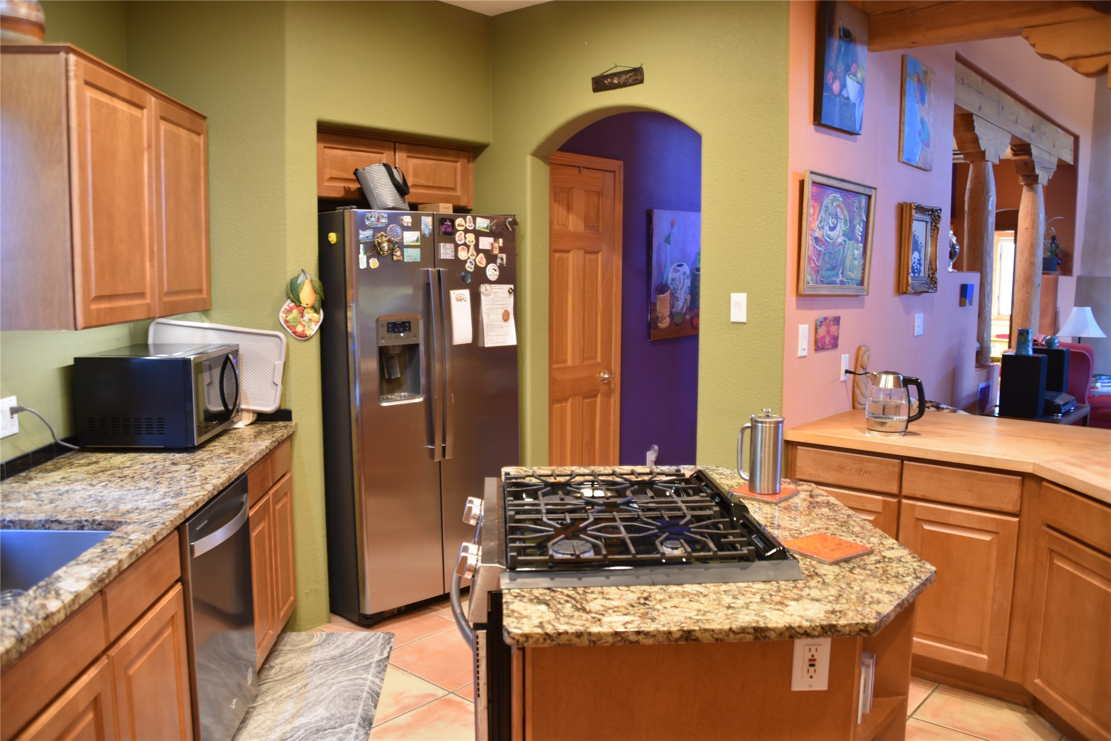 Built in 2001, this well-maintained 3-bedroom, 2-bath home combines classic Southwest design with modern upgrades. Features include hand-carved vigas, tile floors, built-in bookshelves, a kiva fireplace, large kitchen with walk-in pantry, and a spacious laundry/mudroom. The primary suite offers a walk-in shower with dual showerheads and excellent closet space.Recent improvements include a new garage door (2024), new electric circuit breaker box with solar panels (2023), Sierra Pacific windows and new water heater (2025), washer (2024), dryer (2022), dishwasher (2024), and a new coyote fence (2023). Outdoor features include a covered patio, drip irrigation, and an attached garage.The property borders the National Monument with direct access to scenic hiking trails. Enjoy fishing, boating, and camping at nearby Cochiti Lake, just one mile away. The enchanting city of Santa Fe is just a 25-minute drive, and the major metropolitan area of Albuquerque is about 45 minutes away. Enjoy country living without sacrificing nearby services, shopping, and conveniences.Beautiful craftsmanship, solid updates, and a prime location make this home a perfect New Mexico retreat.