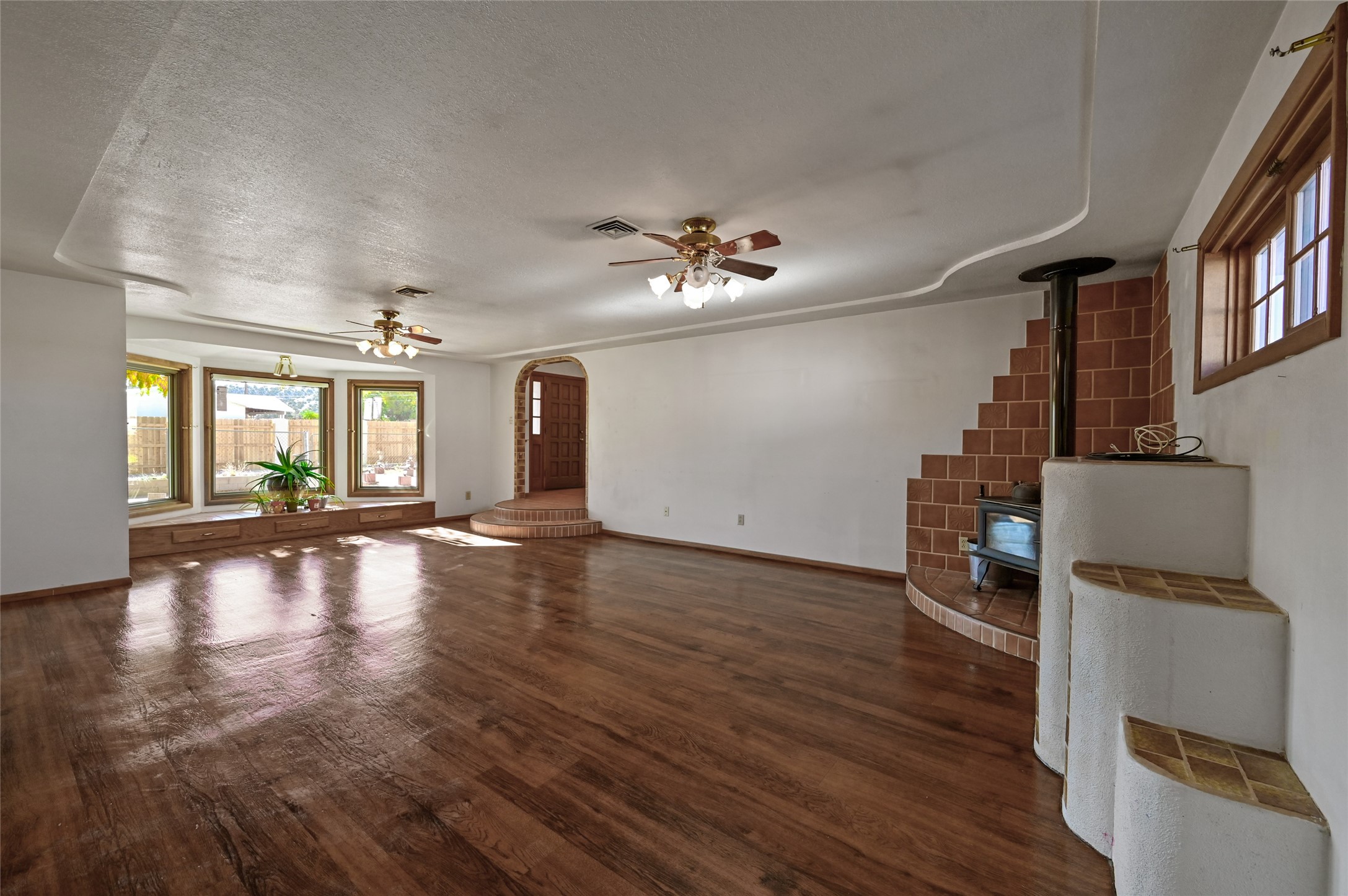 Discover a spacious and well-maintained 3-bedroom, 3-bath home with a 5-car garage, workshop, and RV parking--perfectly situated just north of Espaola. This 2,727 SF single-family home on a -acre lot offers exceptional space, versatility, and convenience in a peaceful Northern New Mexico setting. Inside, you'll find three bedrooms and three full bathrooms with a thoughtfully designed layout that provides comfortable, separate living areas. There is a wood-burning stove in the primary bedroom. The great room features updated flooring, recently replaced bay windows with Anderson windows, a wood-burning stove, mudroom, and wet bar. The laundry room includes a washer and dryer for added convenience. Perfect for car enthusiasts or hobbyists, the property includes a spacious 5-car garage with a dedicated workshop area and additional storage. There's also covered RV parking under a large carport next to the garage, along with ample extra parking for guests or equipment.The property is gated for privacy and security, and the yard is fenced. The entire -acre lot is fully enclosed together with the adjacent commercial property, which is also available for purchase (see MLS #202504908). Enjoy the best of both worlds--peaceful country living with easy access to Espaola's shops and amenities, plus short commutes to Los Alamos and Santa Fe. This home offers space, function, and opportunity--ideal for those seeking a flexible Northern New Mexico property with room to grow. New septic system installed September 2025.