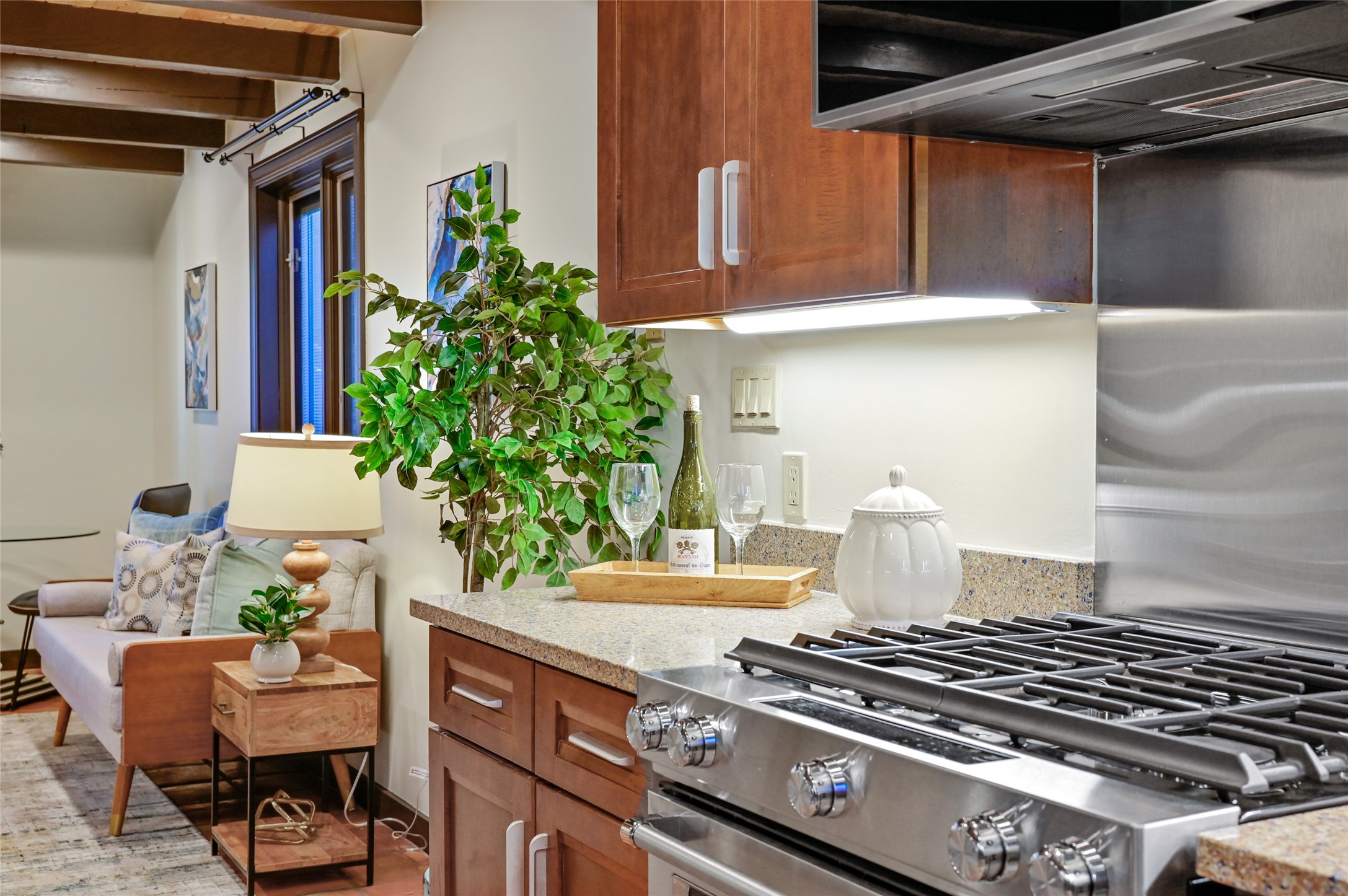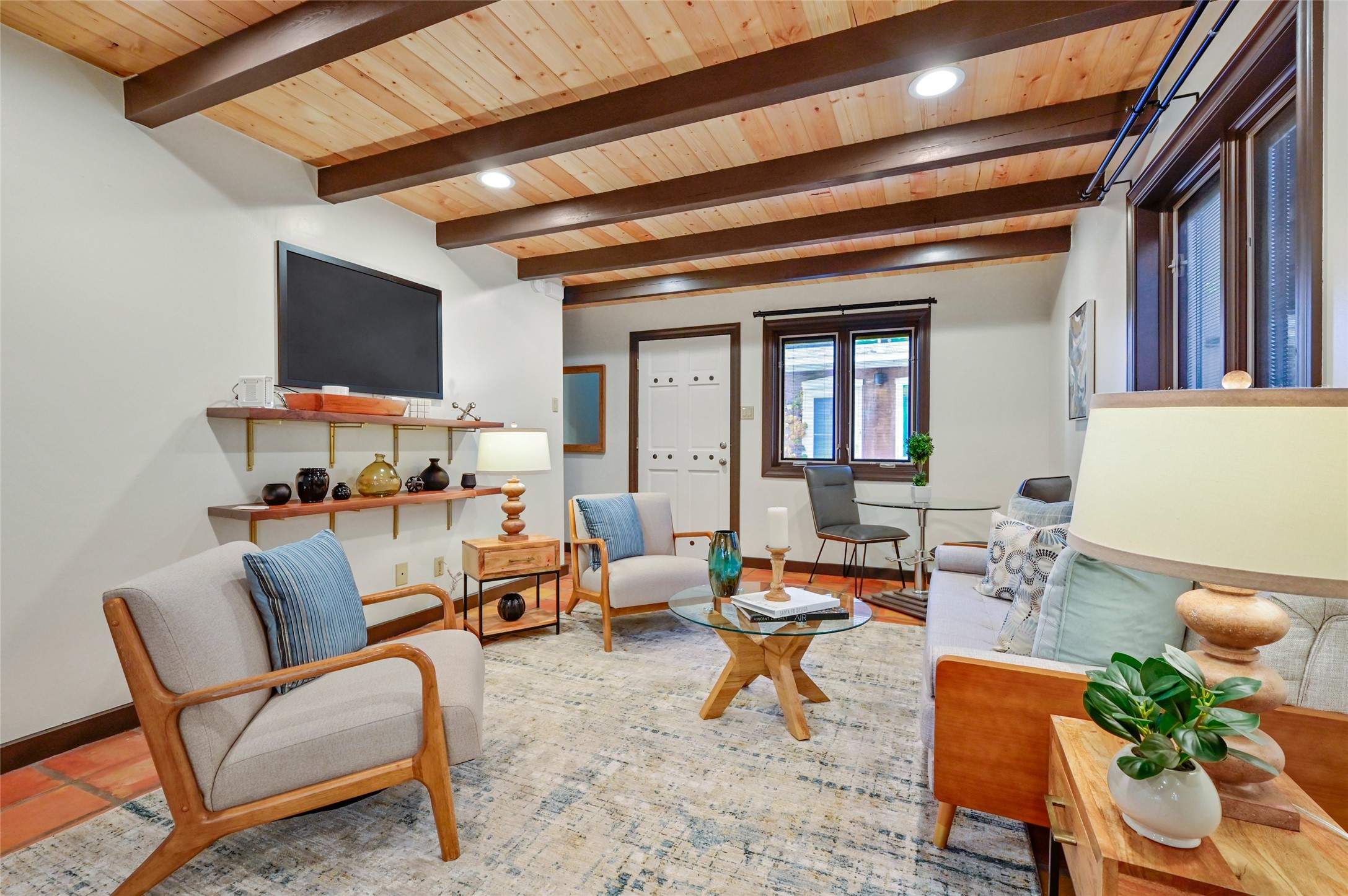 Located in the heart of the coveted Guadalupe Historic District and just minutes from the Historic Plaza and the Santa Fe Railyard, this move-in-ready two-bedroom, two-bath residence offers an elevated blend of comfort and sophistication in one of Santa Fe's most walkable and desirable neighborhoods. Thoughtfully refreshed with fresh interior paint, fully renovated bathrooms, granite kitchen countertops, and a new washer, dryer, and microwave, the home reflects a clean, modern aesthetic. A new roof with a warranty provides lasting peace of mind. A private outdoor courtyard invites year-round enjoyment, complemented by one designated parking space and guest parking. Set within a sought-after historic enclave steps from Susan's Wine & Spirits, the Santa Fe Farmers Market, acclaimed restaurants, galleries, boutiques, parks, and trails--this is refined Railyard living with effortless convenience.