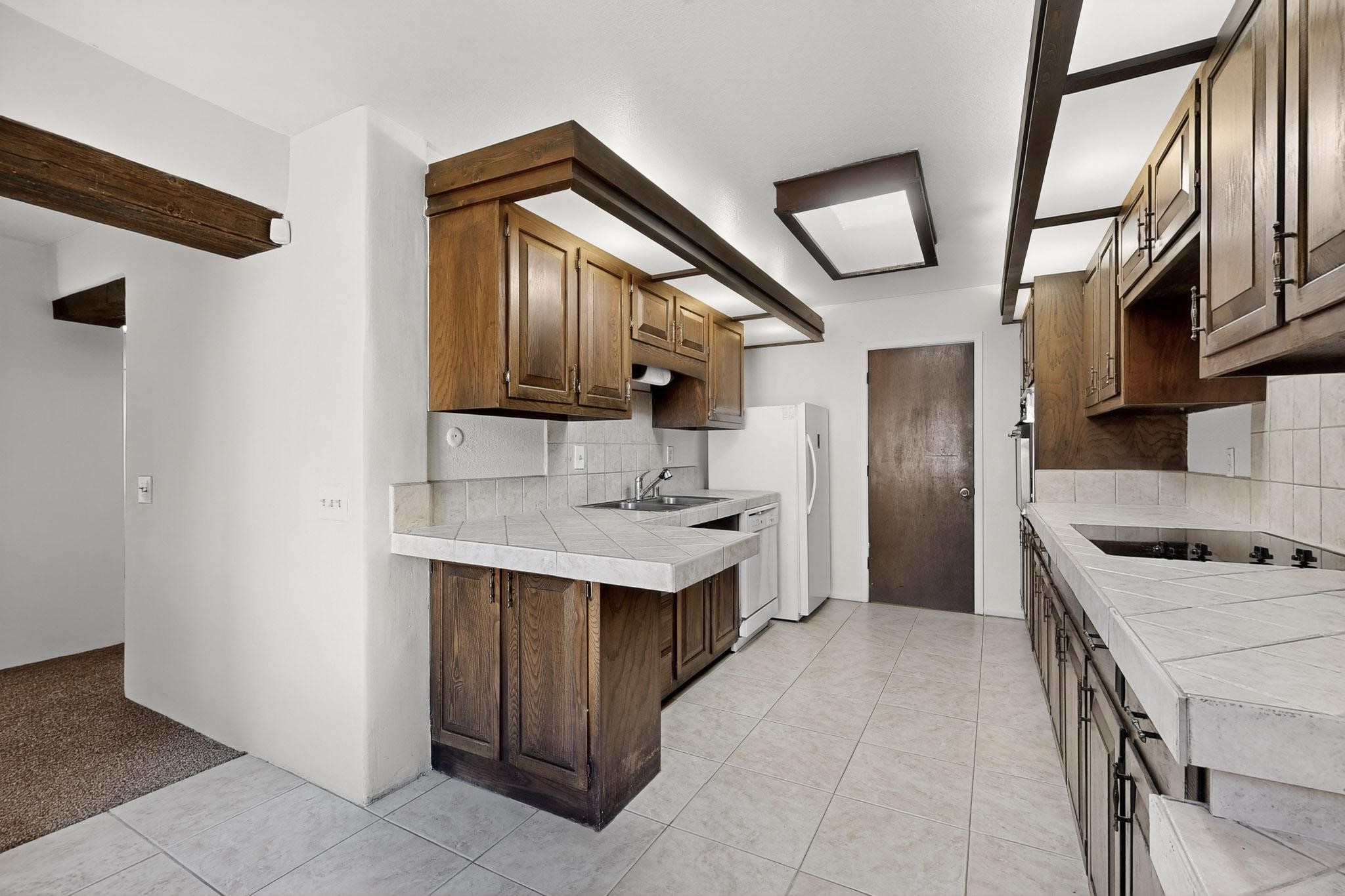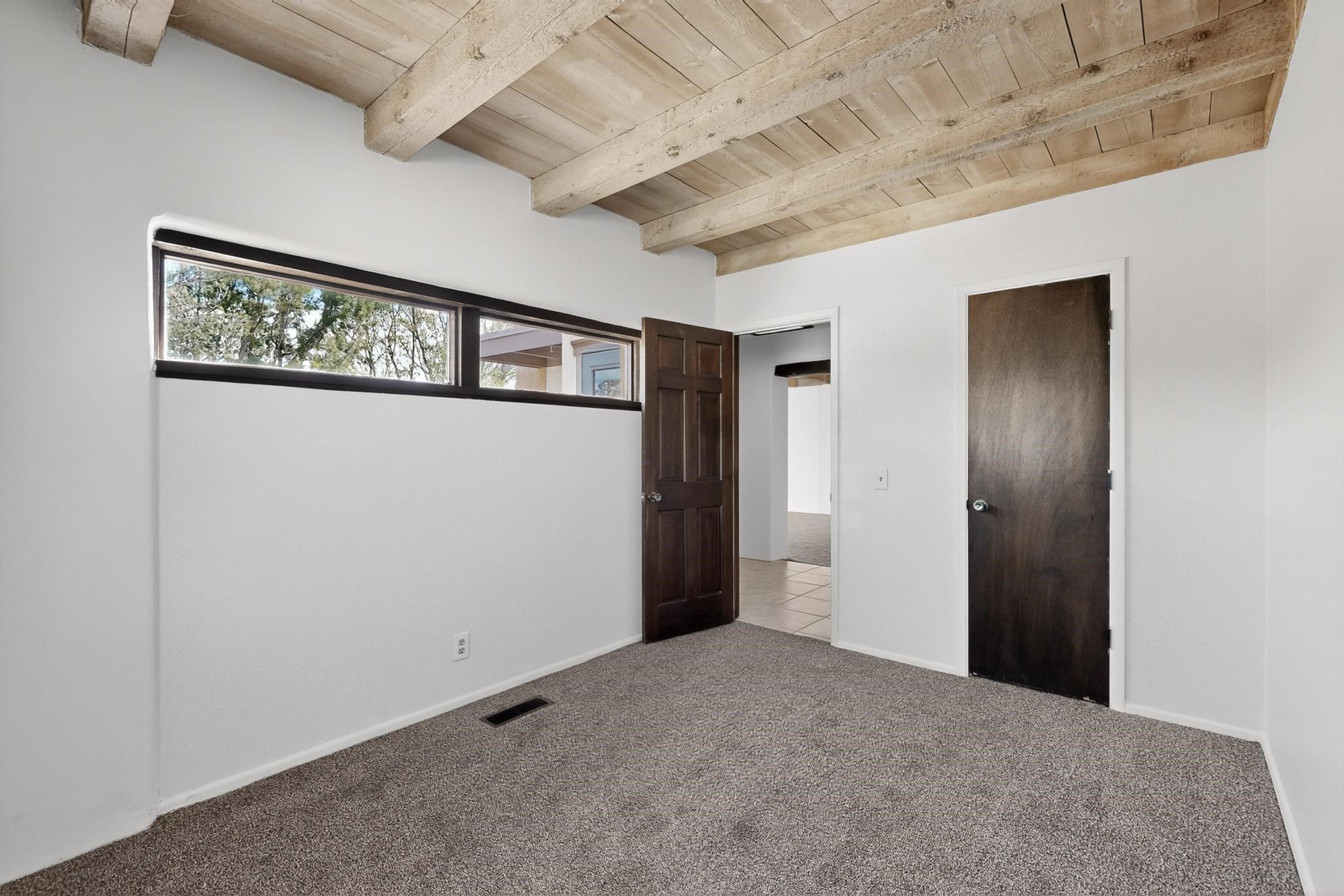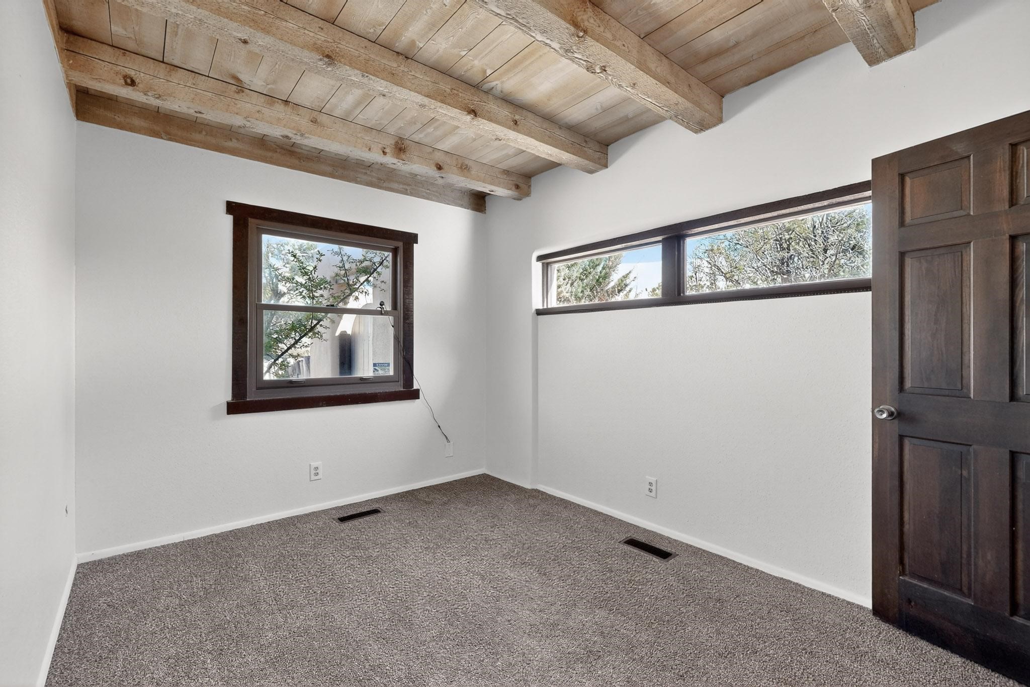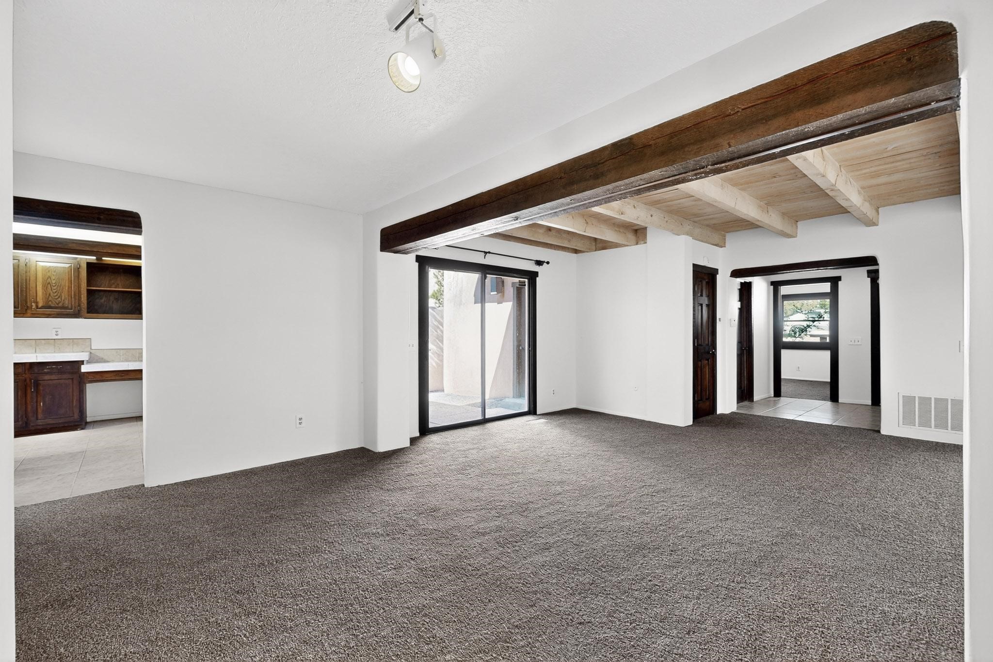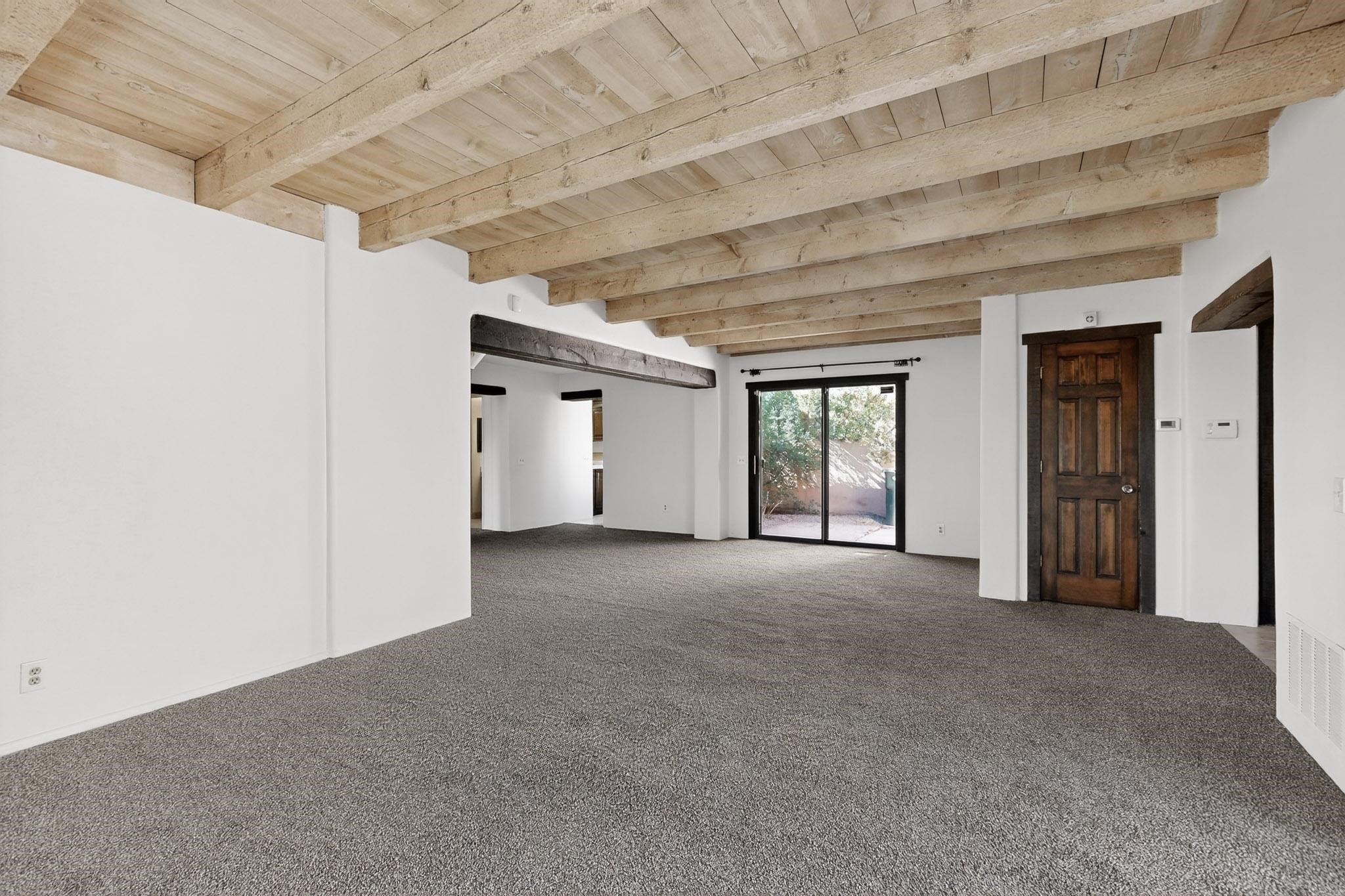 You are just going to love this beautiful free standing single level three bedroom Northside condo just a quick five minute drive to the historic Santa Fe Plaza! Beamed ceilings, wood burning kiva fireplace, two full baths, two private courtyards, a single car garage, refrigerated air conditioning, brand new carpet and mountain views!