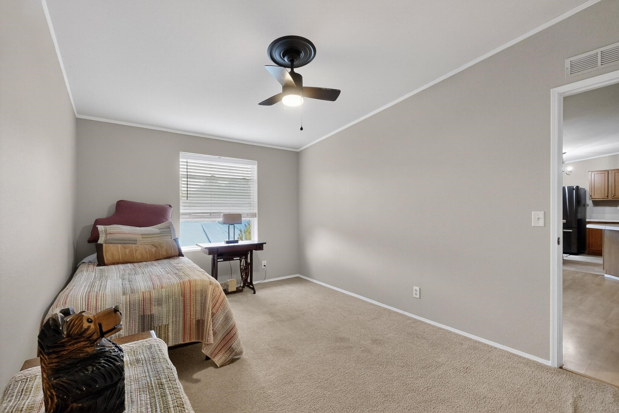 11 Corte Vargas has a 2007 3 bedroom, 2 full bath doublewide manufactured home on a permanent foundation sited on 1.026 +/- acres located in the Glorieta area, 22 minutes to Santa Fe. The home is accessed from a covered porch, has living room with wood burning stove, cook's kitchen, split bedroom floor plan, forced air heating as well as air conditioning, ample closets, washer and dryer. The area around the home is nicely landscaped with perennial flowers, walkways, covered chicken coop, 2 car carport and designated sitting and viewing area. Adjoining 5.37 acres also for sale MLS #202504963, for $124,900
