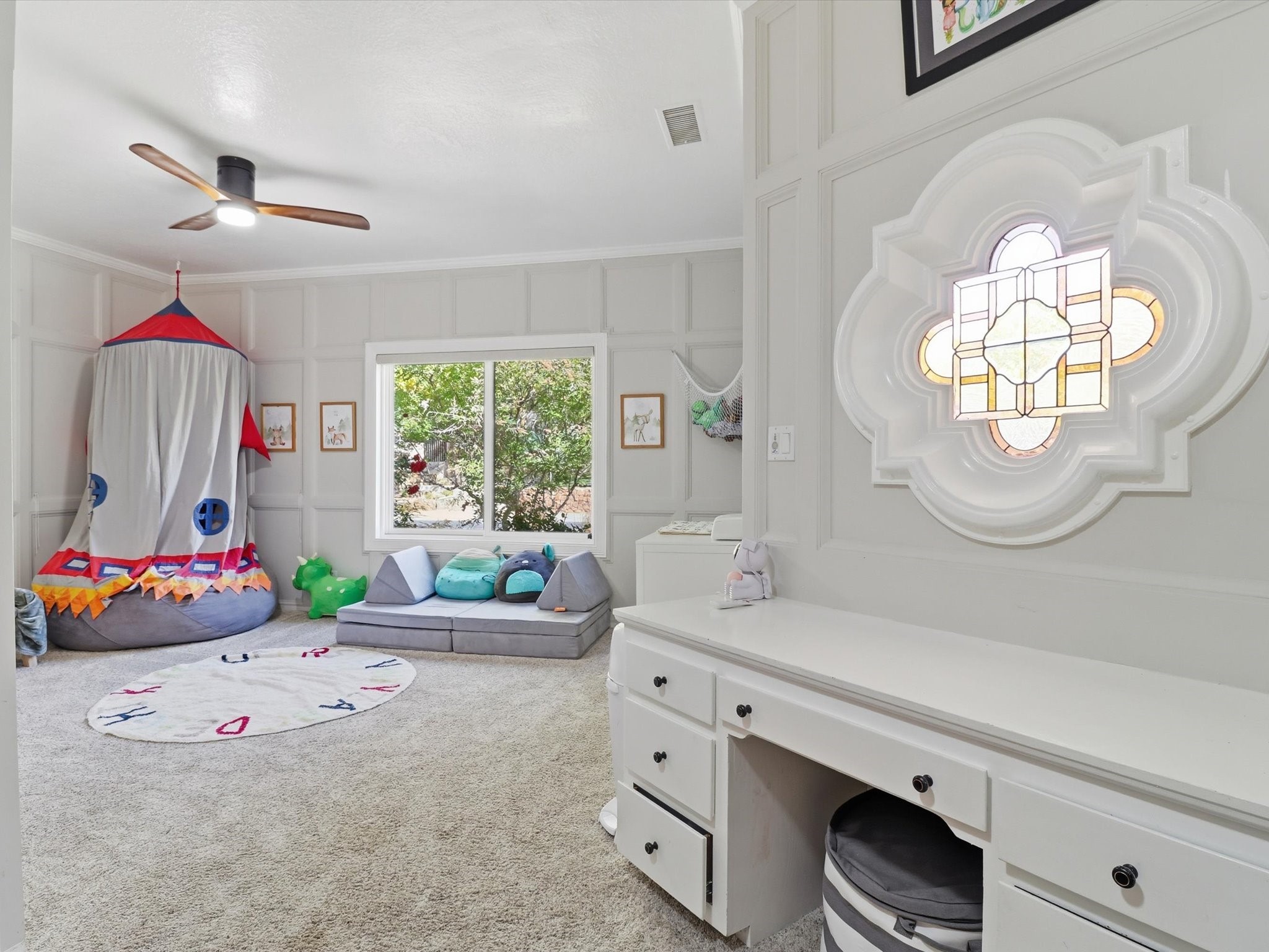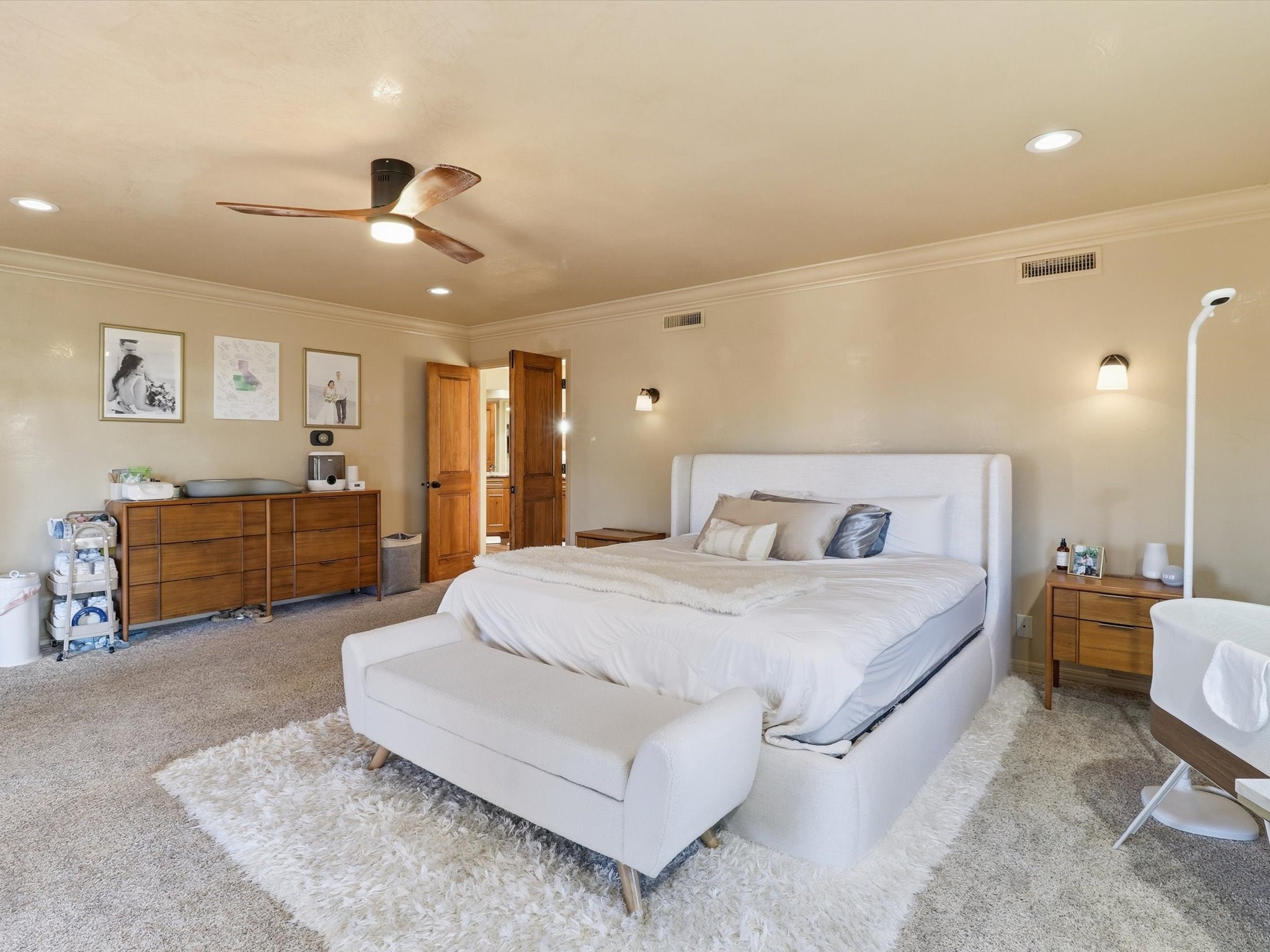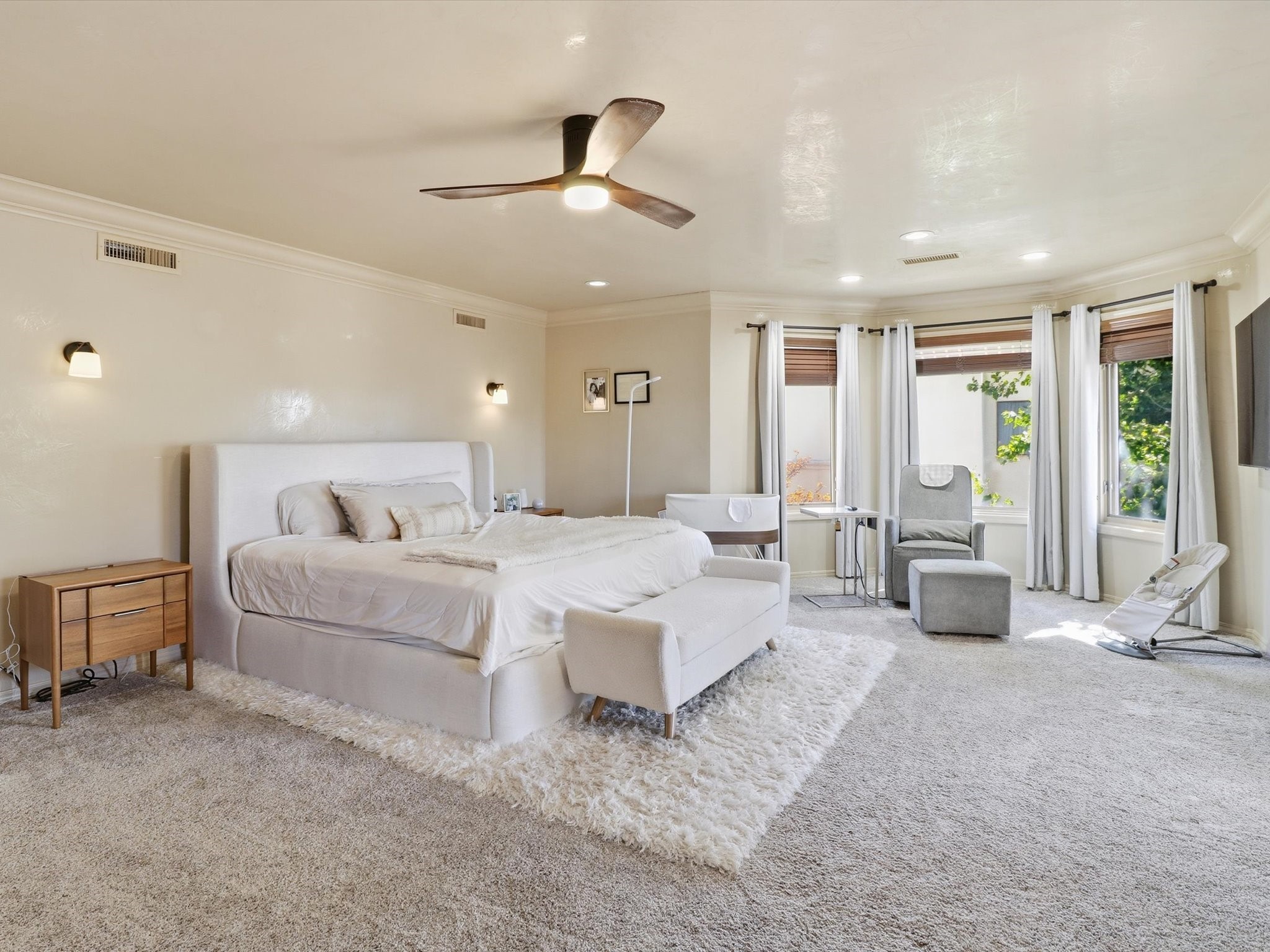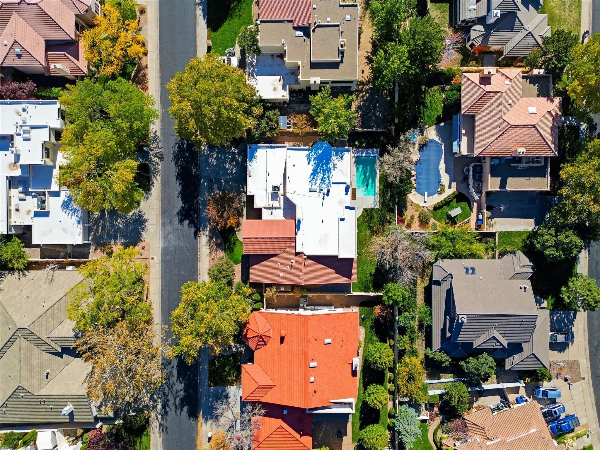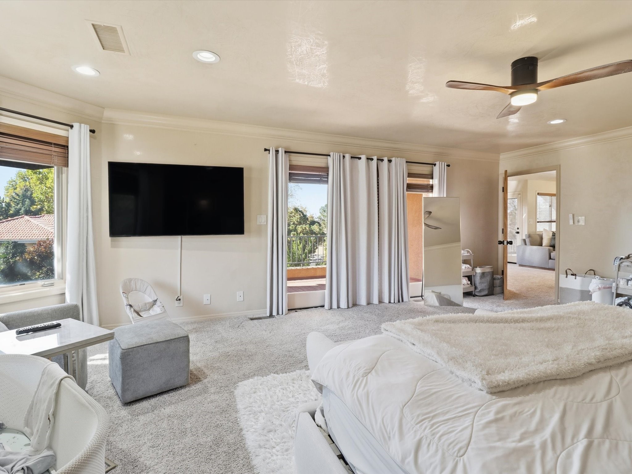 Nestled on one of Tanoan's beautiful tree lined streets, this stunning home sits nearby a cul-de-sac and within walking distance of the country club. This updated home has exquisite attention to detail, showcasing high-end finishes throughout, including Venetian plaster walls, hand-chiseled stone and hardwood floors. Upon entering the home you will appreciate the high ceilings and many windows that open to the backyard and patio, offering lots of natural light into the home. Downstairs you will find 3 generously sized bedrooms with good separation between them. Off the foyer is the formal dining room and large expansive living room with dry bar nearby. The kitchen will not disappoint, with dual ovens, granite countertops, tile backsplash and undermount lighting, plus an eat-in kitchen area. There is also a room off the back patio that is currently being used as an at home gym. The upper level is dedicated to a private primary suite, featuring a spacious bedroom, a cozy loft sitting area with balcony access, and a luxurious spa-like bath complete with a soaking tub, large shower, sauna, and generous walk-in closet. The landscaped backyard offers a beautiful lawn, multiple covered patios ideal for outdoor living and entertaining, along with a heated pool with automatic cover system. 3 car garage with EV charger, water filtration system and soft water system. Recent seller updates include replacement of a portion of the TPO roof, A/C unit, dishwasher, automated irrigation system and heated pool. Enjoy the tranquility, privacy, and security of Albuquerque's 24/7 guard-gated country club community.