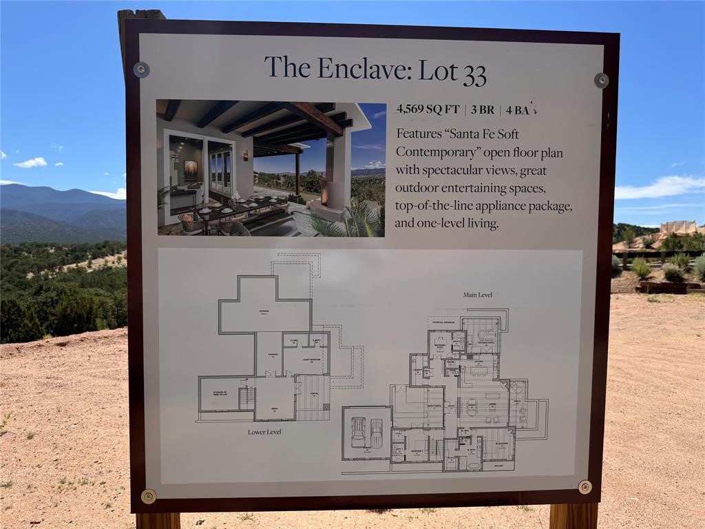 This lot includes comprehensive development and site preparation, featuring a pad-ready site and a fully designed two-level walk-out home plan. The fully approved architectural plans are complete and ready for submission to the City of Santa Fe, streamlining the building process for prospective buyers. This is a rare opportunity to construct a 2,912 square foot residence with an unfinished lower walk-out level, allowing for future expansion. Alternatively, buyers may opt to build a 4,569 squae foot home with a fully finished and functional lower level from the outset. Buyers may choose to work with Odai Construction, Monte Sereno's premier builder, or select a builder of their preference. Please note that any modifications to the existing plans are subject to review by the developer, rather than the Monte Sereno Architectural Control Committee (ACC). A two-year construction commencement requirement applies following lot purchase, ensuring timely development and preserving the intergrity of this gated enclave - located at the northnmost point of the City of Santa Fe. High-speed fiber optic internet connectivity is available, supporting modern digital lifestyles and remote work needs.