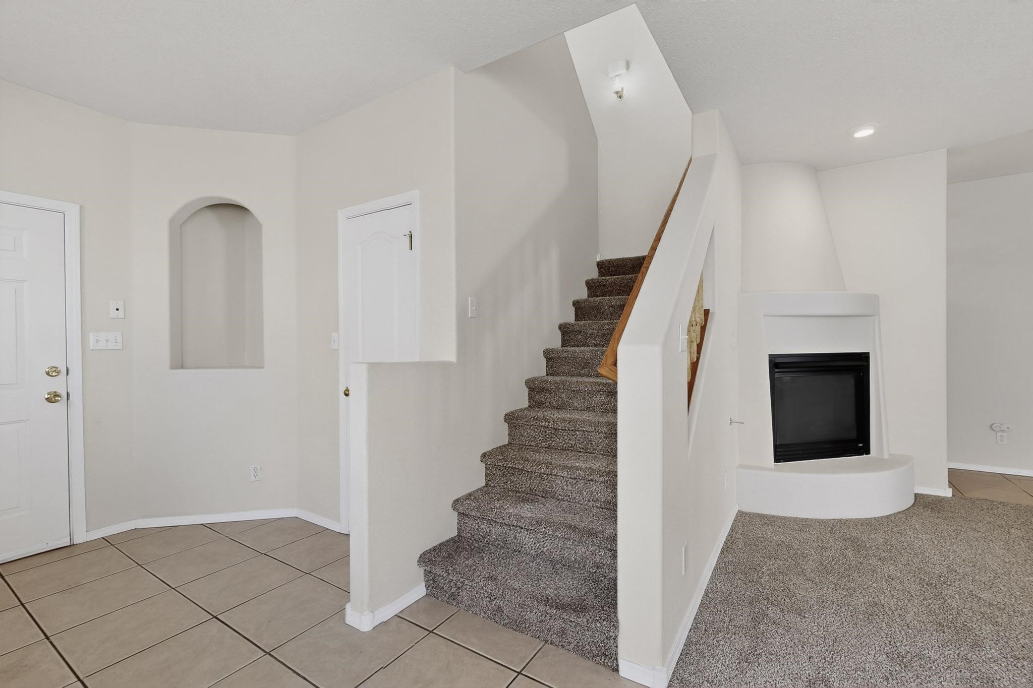 Move-in ready with No HOA in convenient close-in SE Rio Rancho location near Intel. Terrific investment with short-term (STR) or long-term rental potential. Open layout with large living room, dining area and spacious kitchen w/ generous cabinets, tile floor and built-in double ovens. Private primary suite is on the main level and features dual sinks, separate shower & soaking tub and a walk-in closet. Upstairs offers 2 additional sunny bedrooms, a full bath and a versatile loft--perfect for office, gaming or homework zone. Easy-care generous xeriscaped yard, 2-car garage and plentiful driveway parking. Neutral interior palette, great natural light, and easy access to Rio Rancho schools, shopping & dining. Great floorplan for multi-gen, roommates, work-from-home or lock-and-leave living!