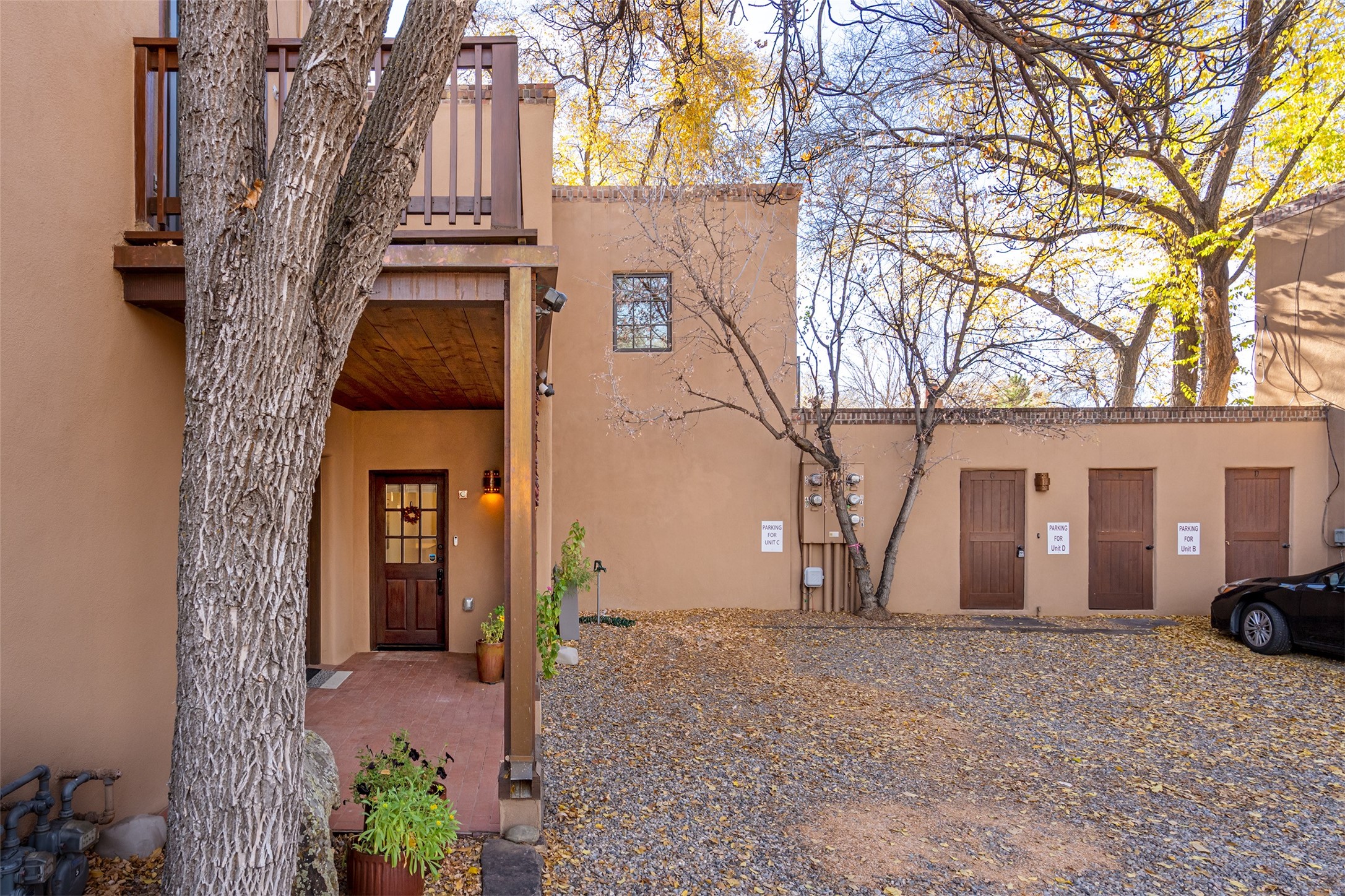 Eastside Elegance: A Contemporary Oasis Canyon Road AdjacentDiscover this beautifully remodeled condominium providing contemporary luxury and comfort. One block from Canyon Road and directly across from the scenic Santa Fe River, in a small private complex, this home embodies an inviting atmosphere that encourages relaxation and enjoyment.Inside, every detail has been meticulously crafted. The well-appointed kitchen seamlessly flows into an open living and dining area, which opens up to a private landscaped oasis. Experience outdoor living at its finest under the retractable awning, perfect for entertaining family and friends.This condo boasts numerous high-end updates, including elegant stained wood and white-oak flooring throughout, exquisite Italian tile baths and patio, and stunning quartz countertops complemented by stainless-steel appliances. The property has been enhanced with updated mechanical systems and fixtures to ensure a modern living experience.Upstairs, the spacious bedroom is bathed in natural light, featuring a generous walk-in closet that any fashion enthusiast would appreciate. A charming Juliet balcony with sliding glass doors invites fresh air, while the luxurious bath provides a peaceful retreat.Additional highlights include radiant heating, ductless AC for year-round comfort, and ample storage both inside and out. This urban escape offers unparalleled convenience, making it ideal for full-time living or a part-time getaway.Don't miss your chance to experience the perfect blend of elegance and convenience in the heart of Santa Fe's Eastside.