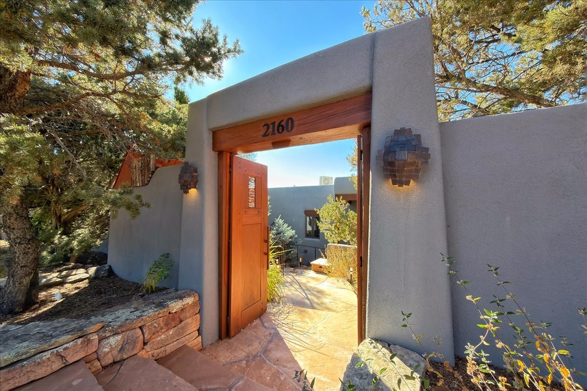 Whispering Hill--where nature's quiet beauty keeps its own gentle secrets. Set within Hyde Park Estates, this architectural statement captures panoramic vistas that are rare even for Santa Fe--a dramatic sweep of horizon, sculpted mountains, and ever-changing light. Designed with a flexible five-bedroom layout, Whispering Hill offers versatility without sacrificing elegance. The main level functions as a complete living environment, ideal for those who prefer life without stairs. A tranquil primary suite, sophisticated gathering areas, and rare hardwood cabinetry set a tone of refined luxury from the moment you arrive. Throughout the residence, artisan ceilings--each one individually crafted--serve as sculptural centerpieces across both levels and extend to the outdoor entertaining terrace, where their artistry meets the surrounding landscape with extraordinary effect. The Media Room, anchored by a gigantic viewing screen, was envisioned for cinema, live sporting events, and immersive entertainment--an atmospheric space designed for true enjoyment. The lower level continues the architectural flow with a second primary suite and additional bedrooms, each offering direct outdoor access to terraces, pathways, and quiet corners of the landscape. Outdoor living expands with multiple areas to gather, including a radiant-heated portal, a GreenHouse, secluded seating spaces designed for unplugged relaxation, and a private hot tub positioned just outside one of the lower-level bedrooms--a serene vantage point for stargazing and quiet evenings. From the elevated main terrace, you can see 10,000 Waves, Santa Fe's renowned Japanese-inspired spa nestled among the pines. Across the grounds, irrigated landscaping enhances the natural contours of the site, ensuring year-round beauty, color, and ease of care. Climate comfort is thoughtfully supported by eight strategically placed mini-splits for individualized heating and cooling, working in tandem with the primary systems to ensure four-season comfort at altitude. A pre-listing home inspection has already been completed, offering added transparency and confidence for prospective buyers. Minutes from the Santa Fe Plaza, Whispering Hill is an exceptional choice for those seeking either a full-time luxury residence or an elevated secondary retreat. With premium upgrades far too numerous to list, rare materials, master craftsmanship, and one of Santa Fe's most compelling vantage points, Whispering Hill stands as a true Santa Fe masterpiece--a seamless fusion of design, nature, and elevated mountain living.