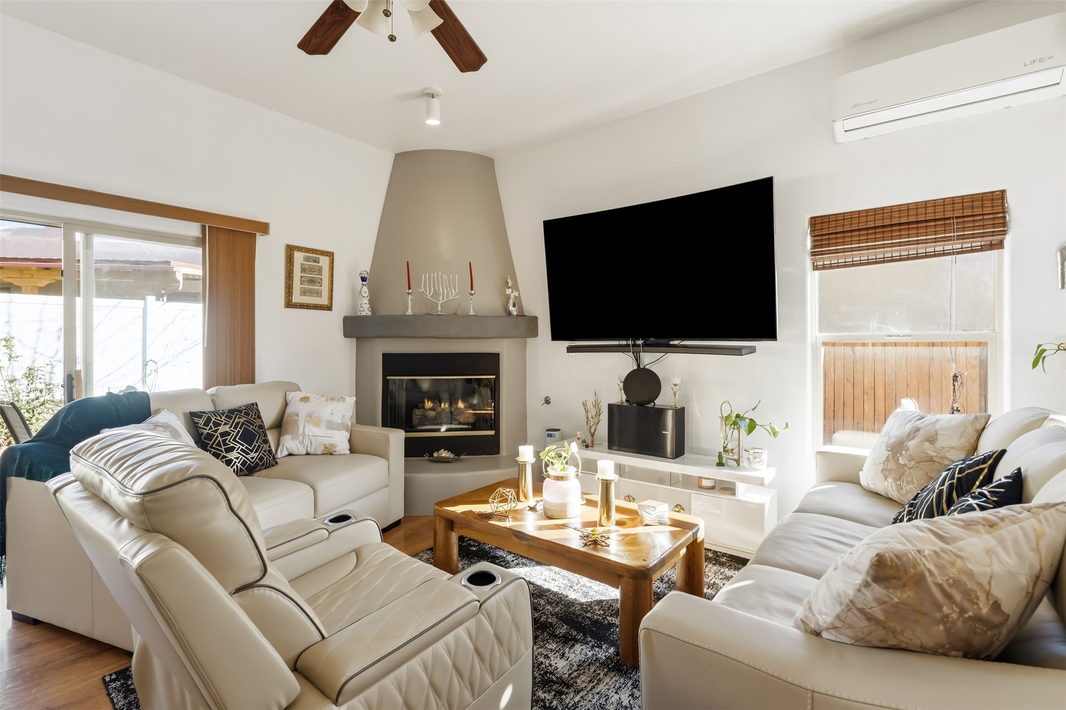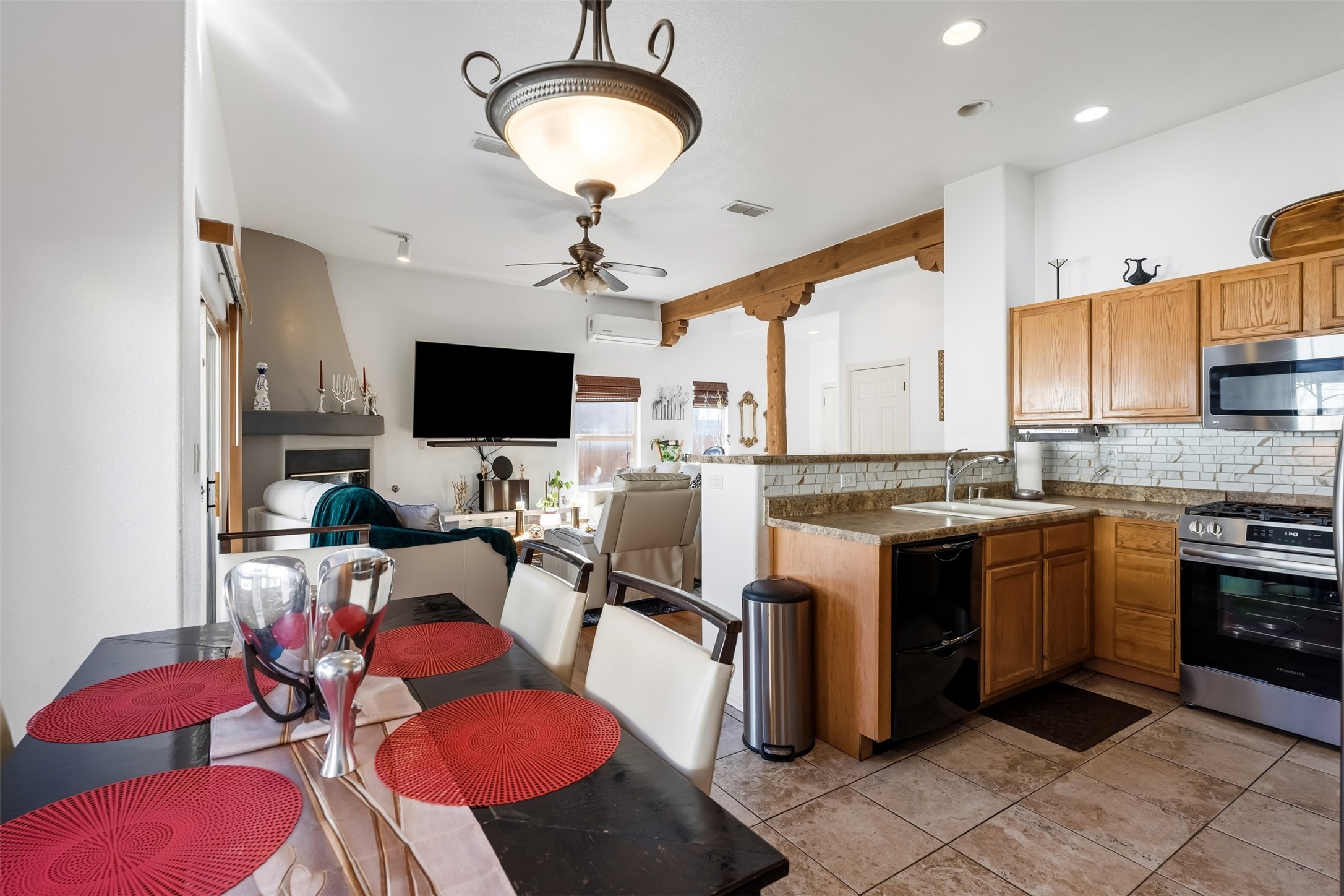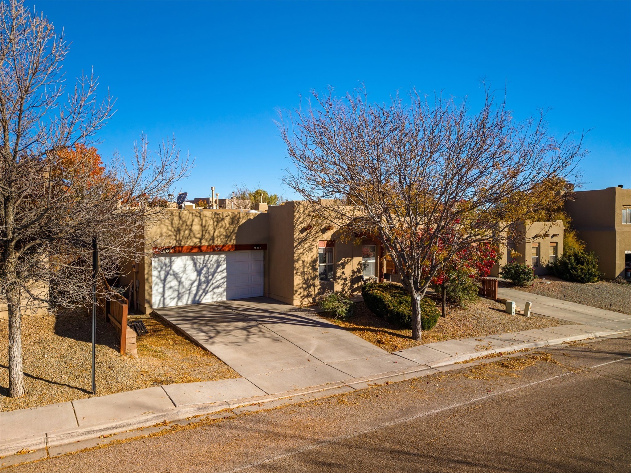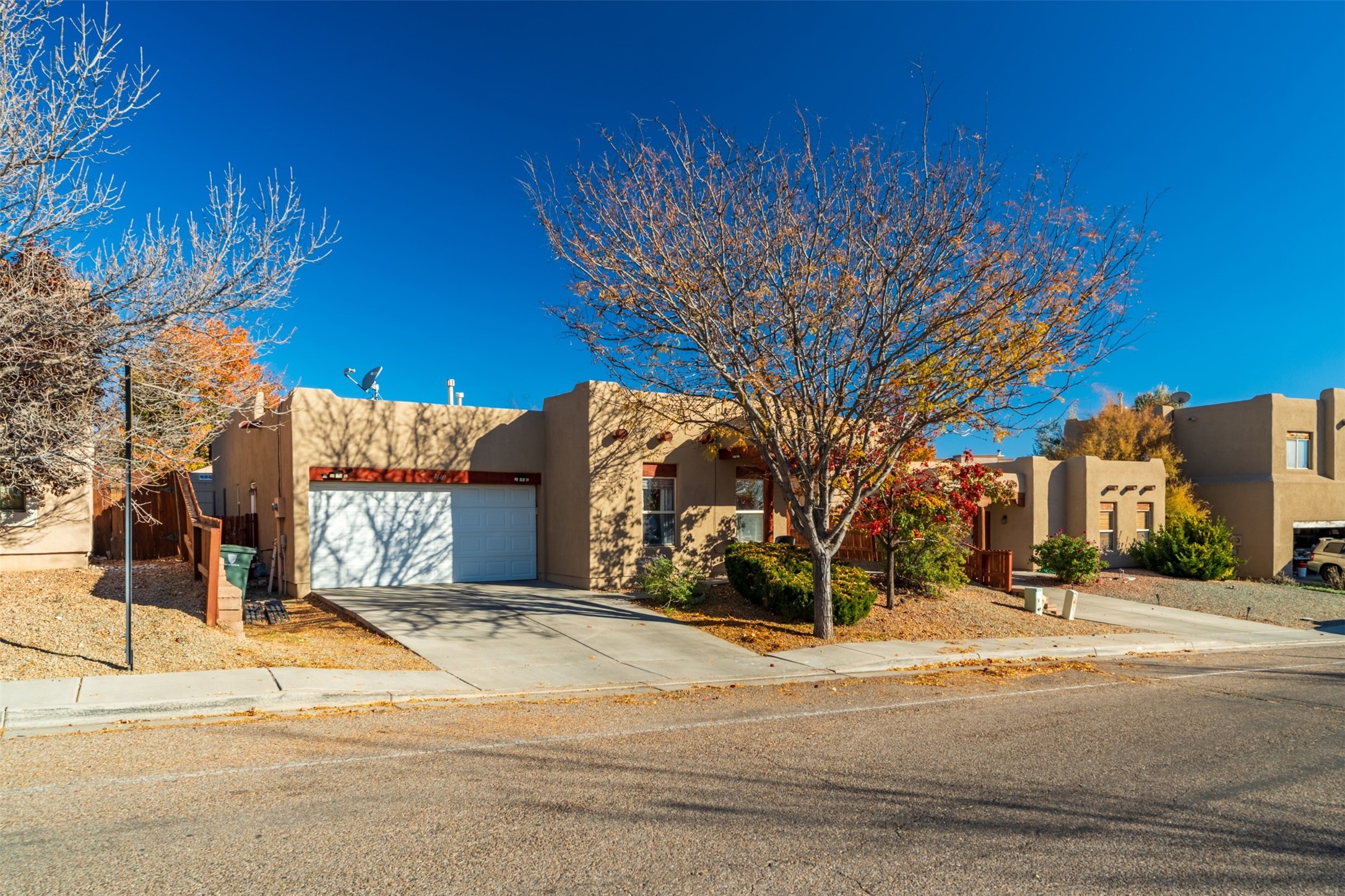 Impeccably maintained and move-in ready, this 3-bedroom, 2-bathroom residence in Tierra Contenta combines comfort, character, and convenience. The expansive living area boasts vaulted ceilings and a welcoming gas kiva fireplace, ideal for both relaxation and entertaining. Constructed in 2006, this single-level home encompasses approximately 1,359 square feet, a two-car garage, and numerous thoughtful updates.Stove, refrigerator, and microwave were recently replaced, and a mini split was installed in 2021, providing enhanced year-round comfort. Roof maintenance was completed in 2024, ensuring peace of mind and longevity.The recently landscaped yard features rose bushes, an apple tree, pine, locust, and sycamore trees, providing a tranquil outdoor retreat. With Pueblo-style stucco exterior, tile and laminate flooring, forced-air heating, and evaporative cooling, the property offers both functionality and aesthetic appeal. Situated near schools, parks, and shopping, this home presents an exceptional opportunity in a vibrant and expanding Santa Fe community.